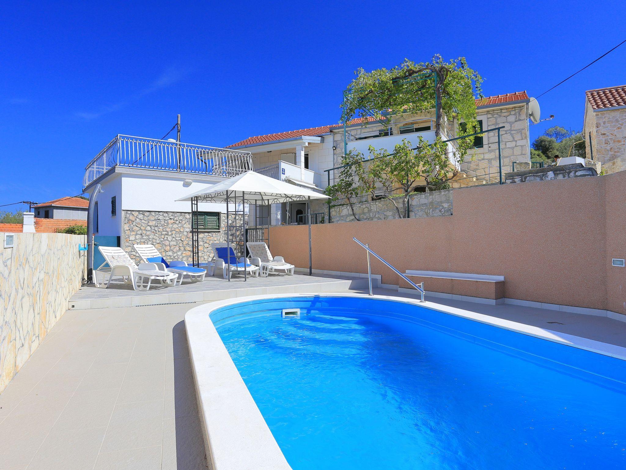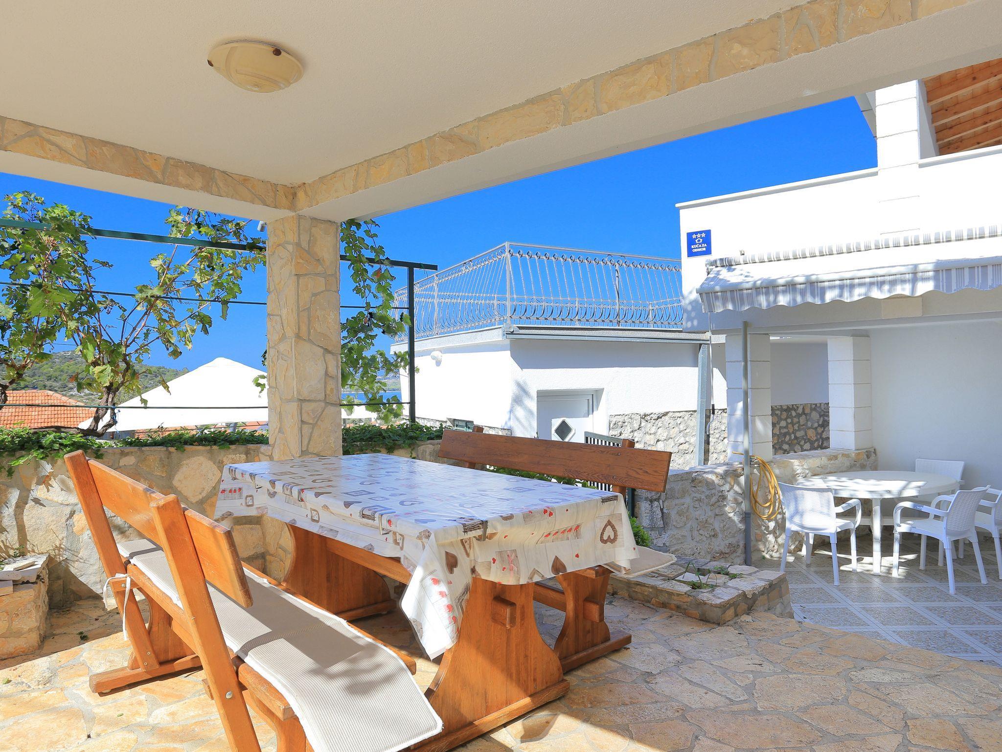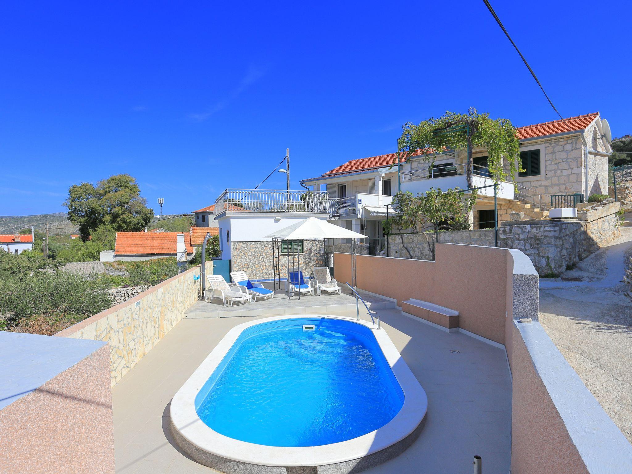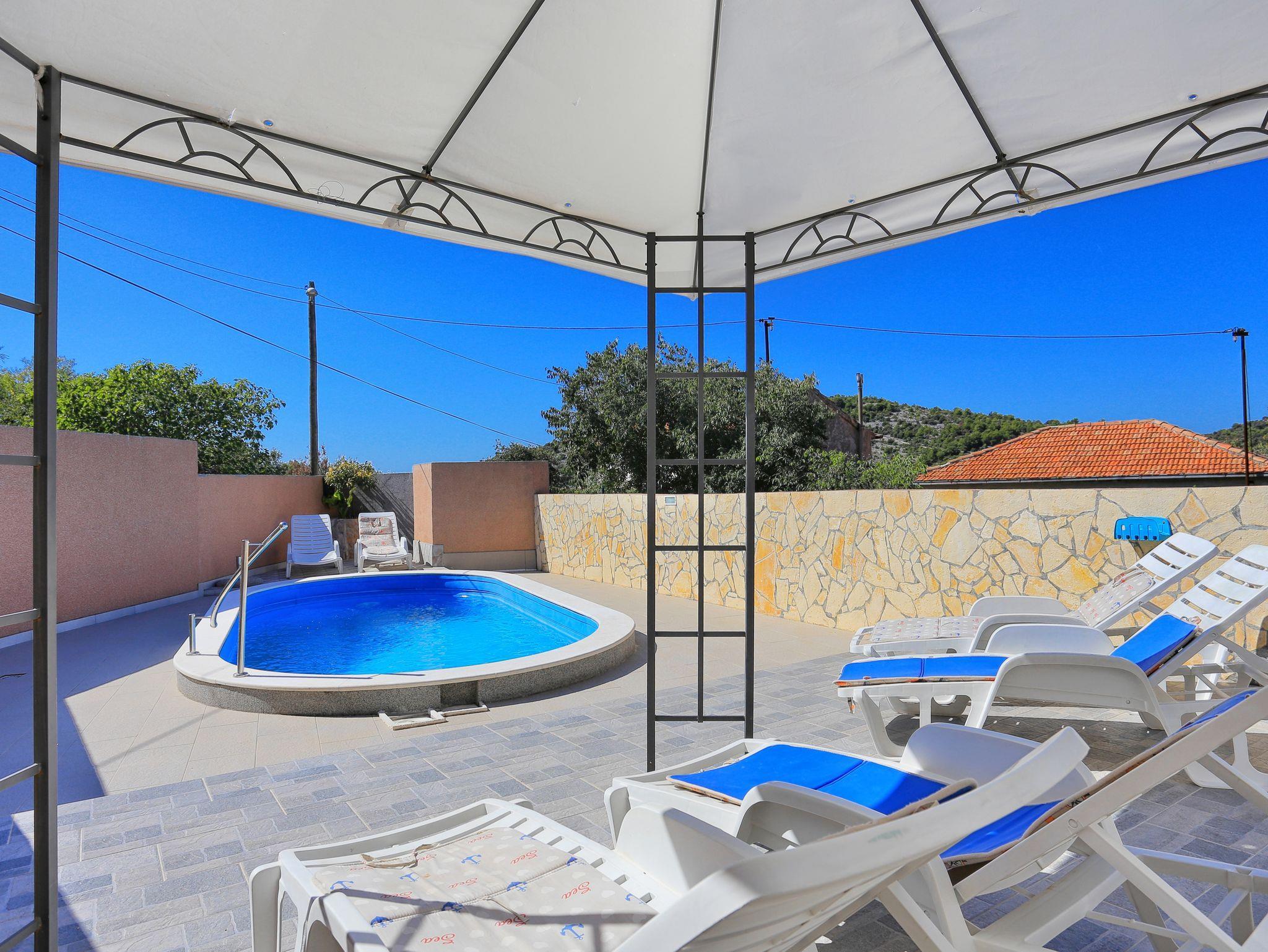 Haus bietet Platz für 9 Gäste. Die Betten sind in Schlafzimmern, die es 5 gibt, innerhalb einer Gesamtfläche von 111m2, angeordnet. Die Gäste haben eine eigene Terrasse zur Verfügung, auf der sie in warmen Sommernächten genießen können. Das Haus bietet Meerblick. Für vollen Genuss und Entspannung gibt es einen privaten Grill für Gäste dieser Unterkunft. Während ihres Aufenthalts können sich Gäste im privaten Schwimmbad entspannen. Räume der gebuchten Unterkunftseinheit werden nicht in eine Ganze verbunden. IM PREIS INBEGRIFFEN: Kurtaxe, Endreinigung, Klimatisierung, Pool, Parkplatz, Internet, Bügeleisen, Bügelbrett. VERBINDLICHE ZUSÄTZLICHE KOSTEN: Aufzahlung für Kurzaufenthalte (prozentualer Zuschlag pro Nächtigungsanzahl: 30% - 1, 20% - 2, 10% - 3). Die Verfügbarkeit zusätzlicher Dienstleistungen in Ihrem reservierten Termin und die Preise derselben (falls nicht aufgeführt) müssen im Voraus überprüft werden. Zusätzliche Dienstleistungen die in der Zahlungsaufforderung nicht aufgeführt sind werden direkt beim Vermieter bezahlt, angenommen der Gast nutzt auch diese.