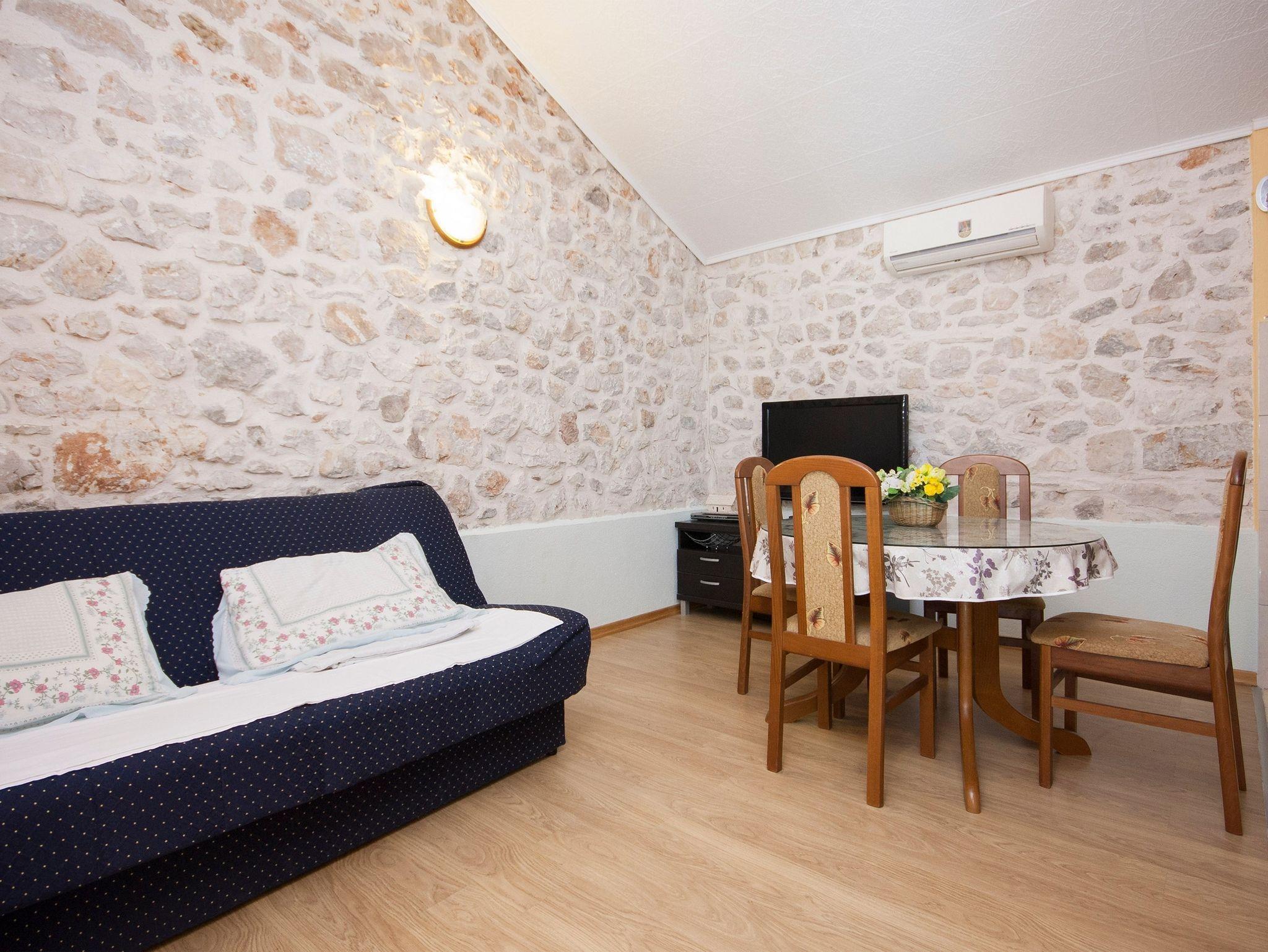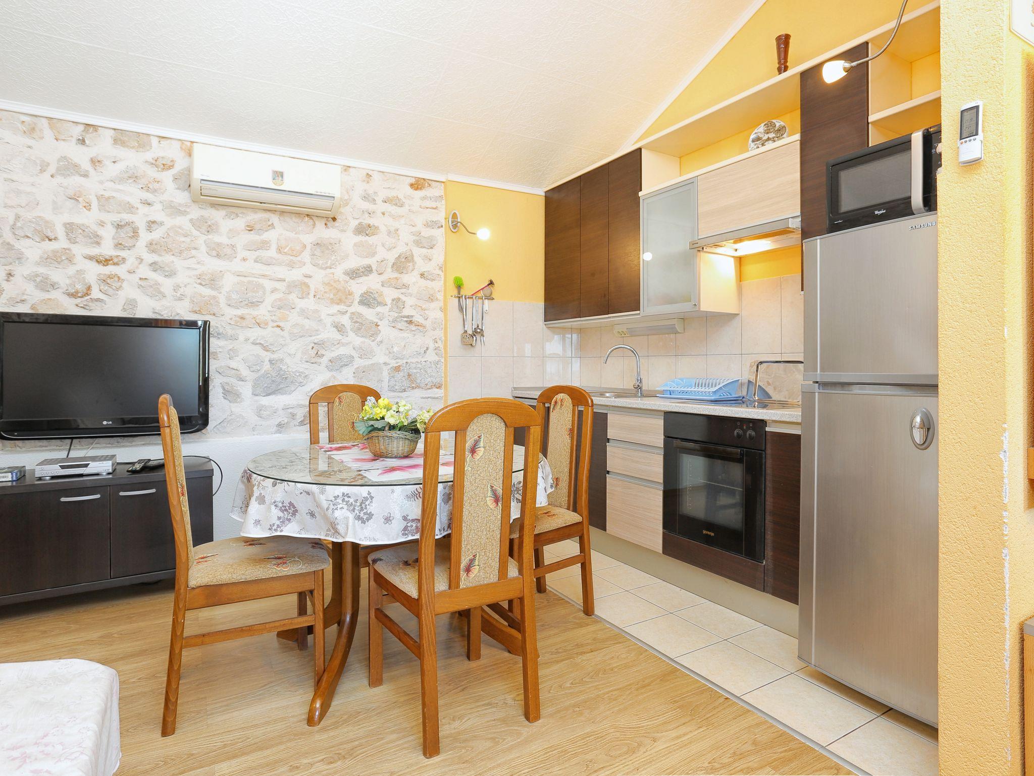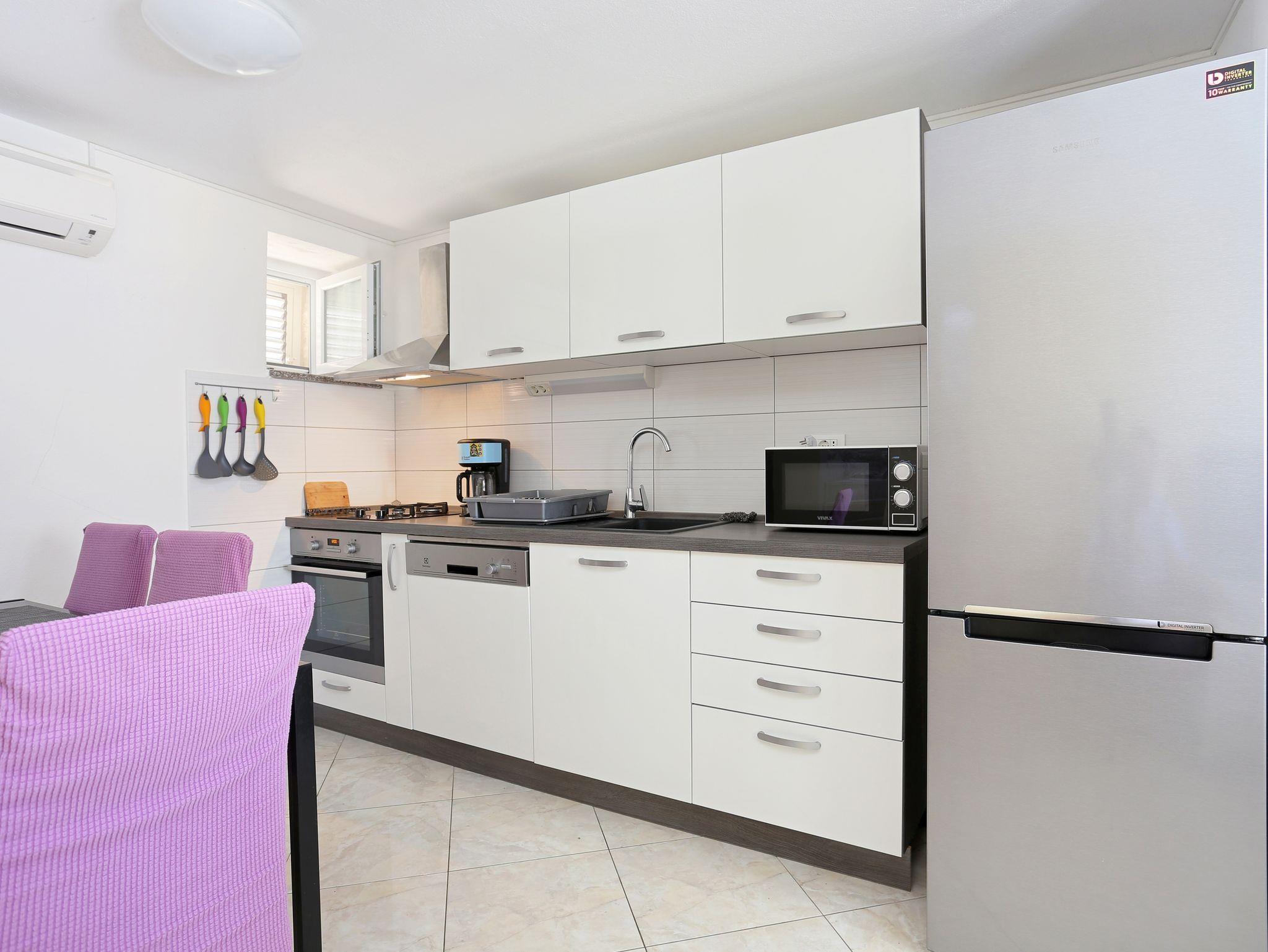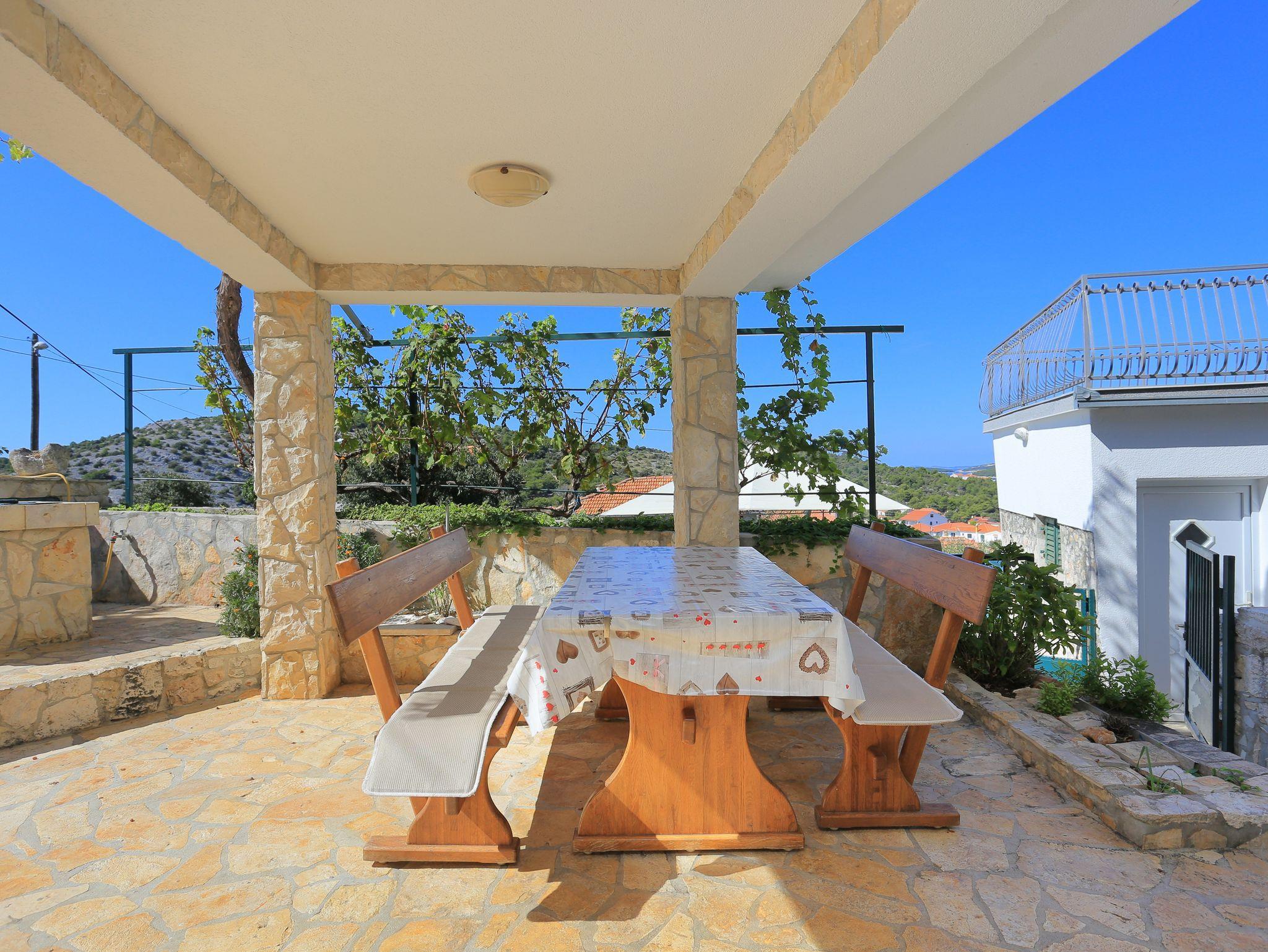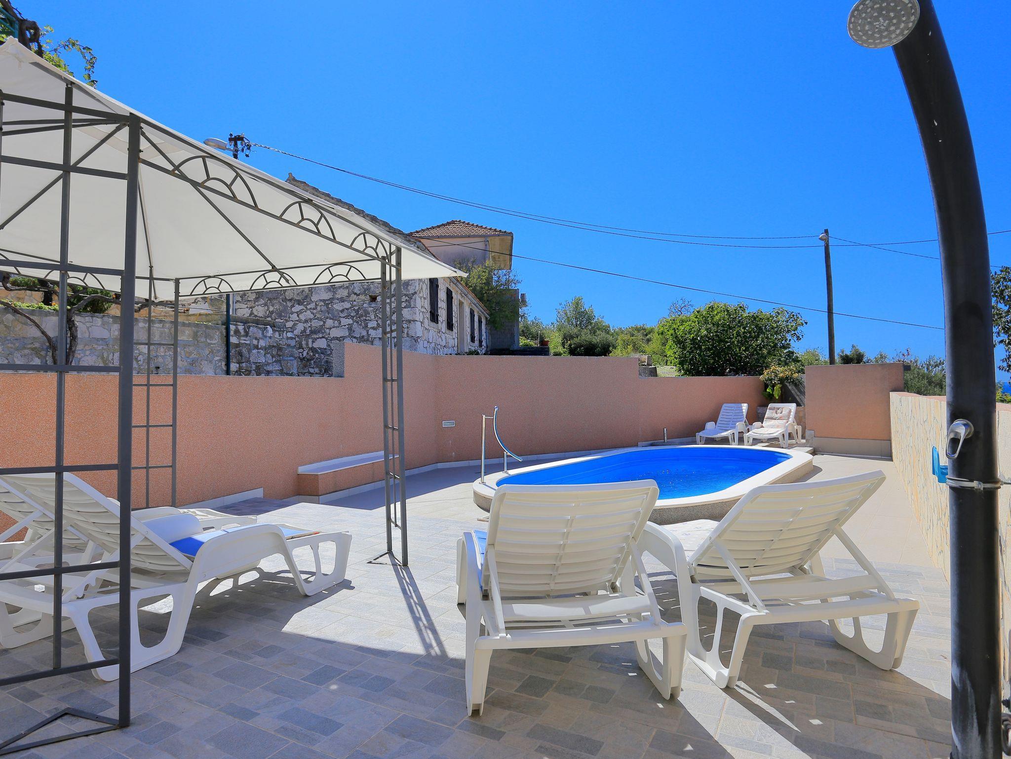 Haus bietet Platz für 9 Gäste. Die Betten sind in Schlafzimmern, die es 5 gibt, innerhalb einer Gesamtfläche von 111m2, angeordnet. Die Gäste haben eine eigene Terrasse zur Verfügung, auf der sie in warmen Sommernächten genießen können. Das Haus bietet Meerblick. Für vollen Genuss und Entspannung gibt es einen privaten Grill für Gäste dieser Unterkunft. Während ihres Aufenthalts können sich Gäste im privaten Schwimmbad entspannen. Räume der gebuchten Unterkunftseinheit werden nicht in eine Ganze verbunden. IM PREIS INBEGRIFFEN: Kurtaxe, Endreinigung, Klimatisierung, Pool, Parkplatz, Internet, Bügeleisen, Bügelbrett. VERBINDLICHE ZUSÄTZLICHE KOSTEN: Aufzahlung für Kurzaufenthalte (prozentualer Zuschlag pro Nächtigungsanzahl: 30% - 1, 20% - 2, 10% - 3). Die Verfügbarkeit zusätzlicher Dienstleistungen in Ihrem reservierten Termin und die Preise derselben (falls nicht aufgeführt) müssen im Voraus überprüft werden. Zusätzliche Dienstleistungen die in der Zahlungsaufforderung nicht aufgeführt sind werden direkt beim Vermieter bezahlt, angenommen der Gast nutzt auch diese.