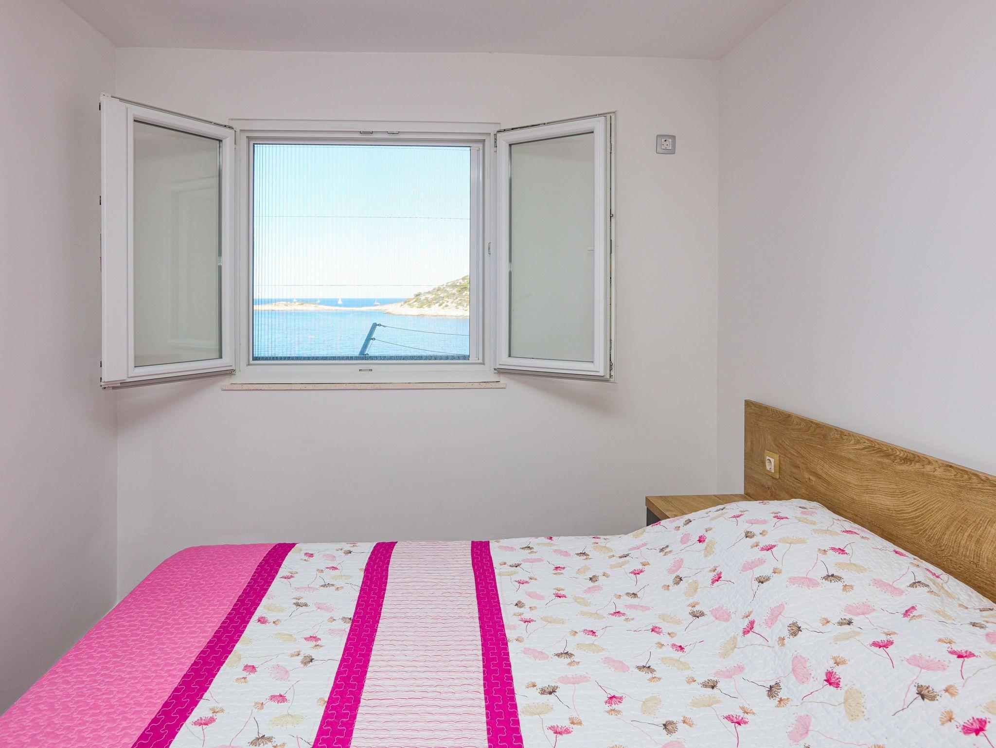 Ferienwohnung bietet Platz für 4 Gäste. Die Betten sind in Schlafzimmern, die es 2 gibt, innerhalb einer Gesamtfläche von 35m2, angeordnet. Die Gäste haben einen eigenen Balkon zur Verfügung, auf der sie in warmen Sommernächten genießen können. Das Apartment bietet Meerblick. Es ist erlaubt, Speisen auf dem Gemeinschafts-Grill vorzubereiten. IM PREIS INBEGRIFFEN: Kurtaxe, Endreinigung, Klimatisierung, Parkplatz, Internet, Bootsanlegeplatz, Kinderbett, Bügeleisen, Bügelbrett, tragbarer Grill, Sonnenschirm. VERBINDLICHE ZUSÄTZLICHE KOSTEN: Aufzahlung für Kurzaufenthalte (prozentualer Zuschlag pro Nächtigungsanzahl: 30% - 1, 20% - 2, 10% - 3). Die Verfügbarkeit zusätzlicher Dienstleistungen in Ihrem reservierten Termin und die Preise derselben (falls nicht aufgeführt) müssen im Voraus überprüft werden. Zusätzliche Dienstleistungen die in der Zahlungsaufforderung nicht aufgeführt sind werden direkt beim Vermieter bezahlt, angenommen der Gast nutzt auch diese. Ermäßigung auf den Grundpreis: Gratistag 14=13 (bei einem Aufenthalt von 14 Tagen oder mehr erhalten Sie einen Gratistag für den Aufenthalt bis 31.12.26).