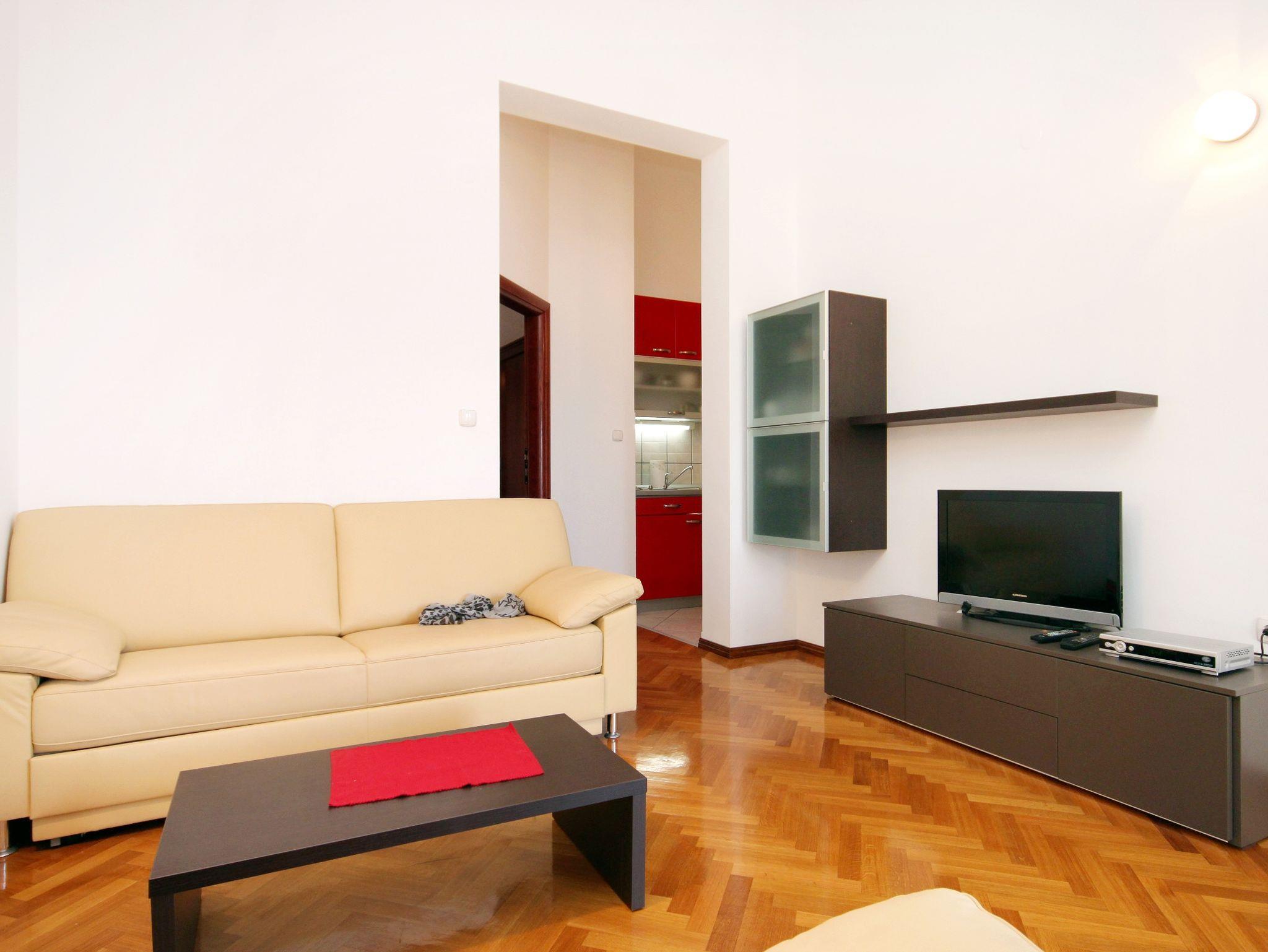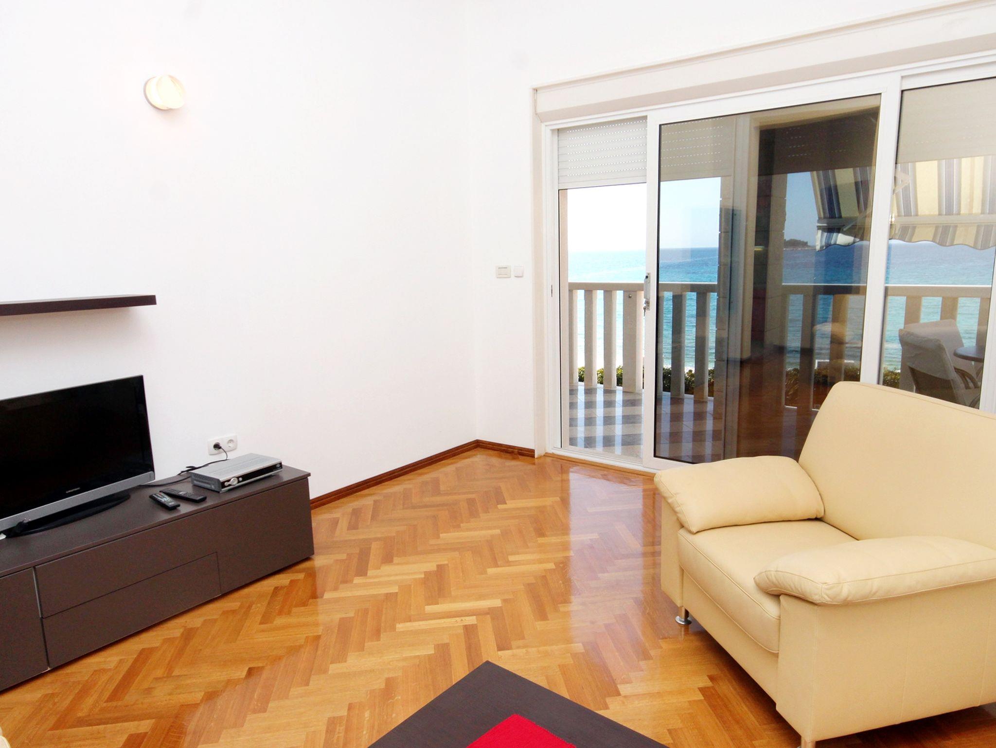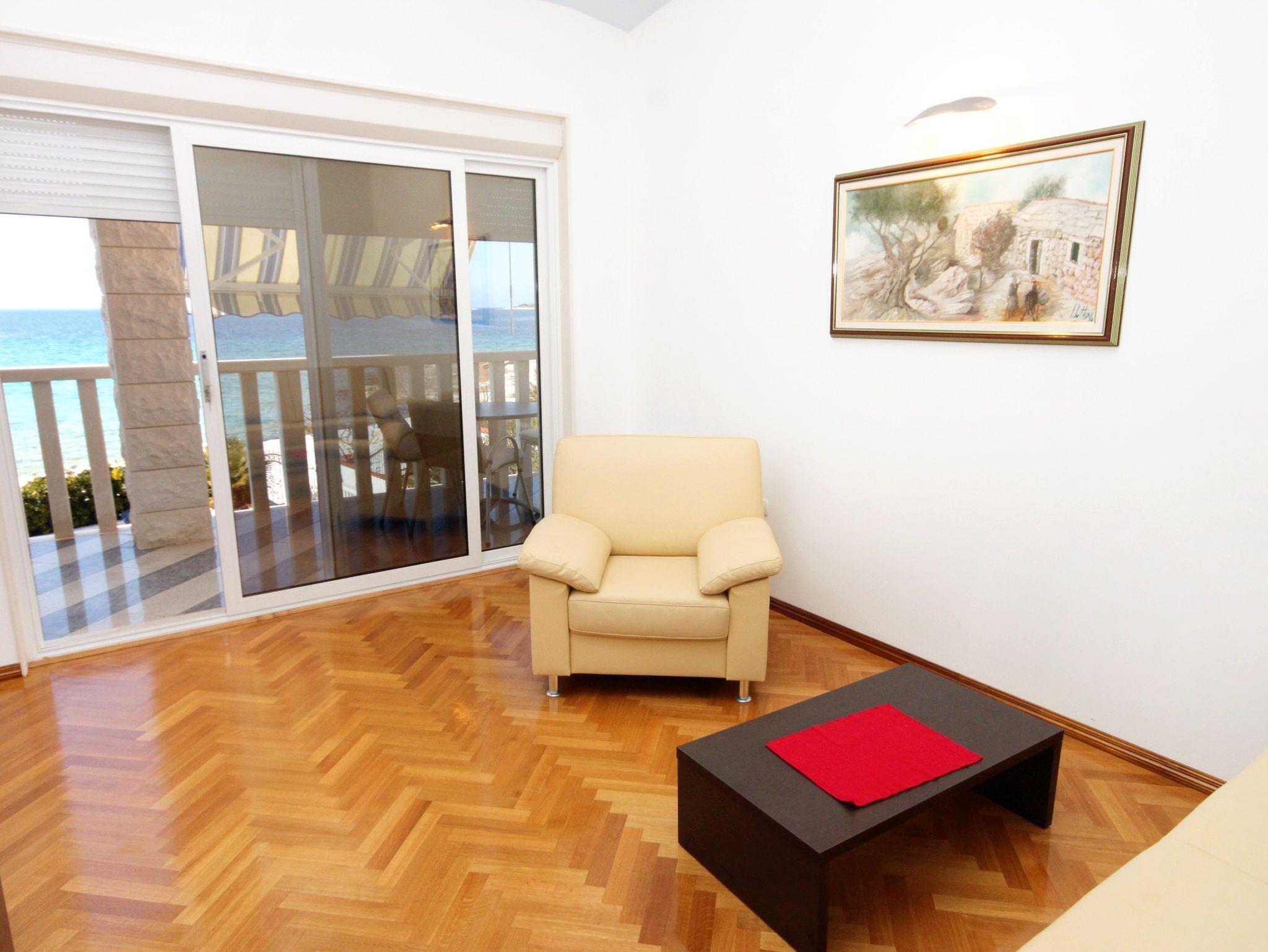 Ferienwohnung bietet Platz für 4 Gäste. Die Betten sind in Schlafzimmern, die es 1 gibt, und in Wohnzimmer, innerhalb einer Gesamtfläche von 31m2, angeordnet. Die Gäste haben eine eigene Terrasse zur Verfügung, auf der sie in warmen Sommernächten genießen können. Das Apartment bietet Meerblick. Es ist erlaubt, Speisen auf dem Gemeinschafts-Grill vorzubereiten. Während ihres Aufenthalts können Gäste das gemeinsam zur Nutzung stehende Schwimmbad benutzen. IM PREIS INBEGRIFFEN: Kurtaxe, Endreinigung, Klimatisierung, Zentralheizung, Pool, Parkplatz, Internet, Wäschewaschen, Kinderbett, Bügelbrett, Föhn. VERBINDLICHE ZUSÄTZLICHE KOSTEN: Aufzahlung für Kurzaufenthalte (prozentualer Zuschlag pro Nächtigungsanzahl: 30% - 1, 20% - 2, 10% - 3). Die Verfügbarkeit zusätzlicher Dienstleistungen in Ihrem reservierten Termin und die Preise derselben (falls nicht aufgeführt) müssen im Voraus überprüft werden. Zusätzliche Dienstleistungen die in der Zahlungsaufforderung nicht aufgeführt sind werden direkt beim Vermieter bezahlt, angenommen der Gast nutzt auch diese.