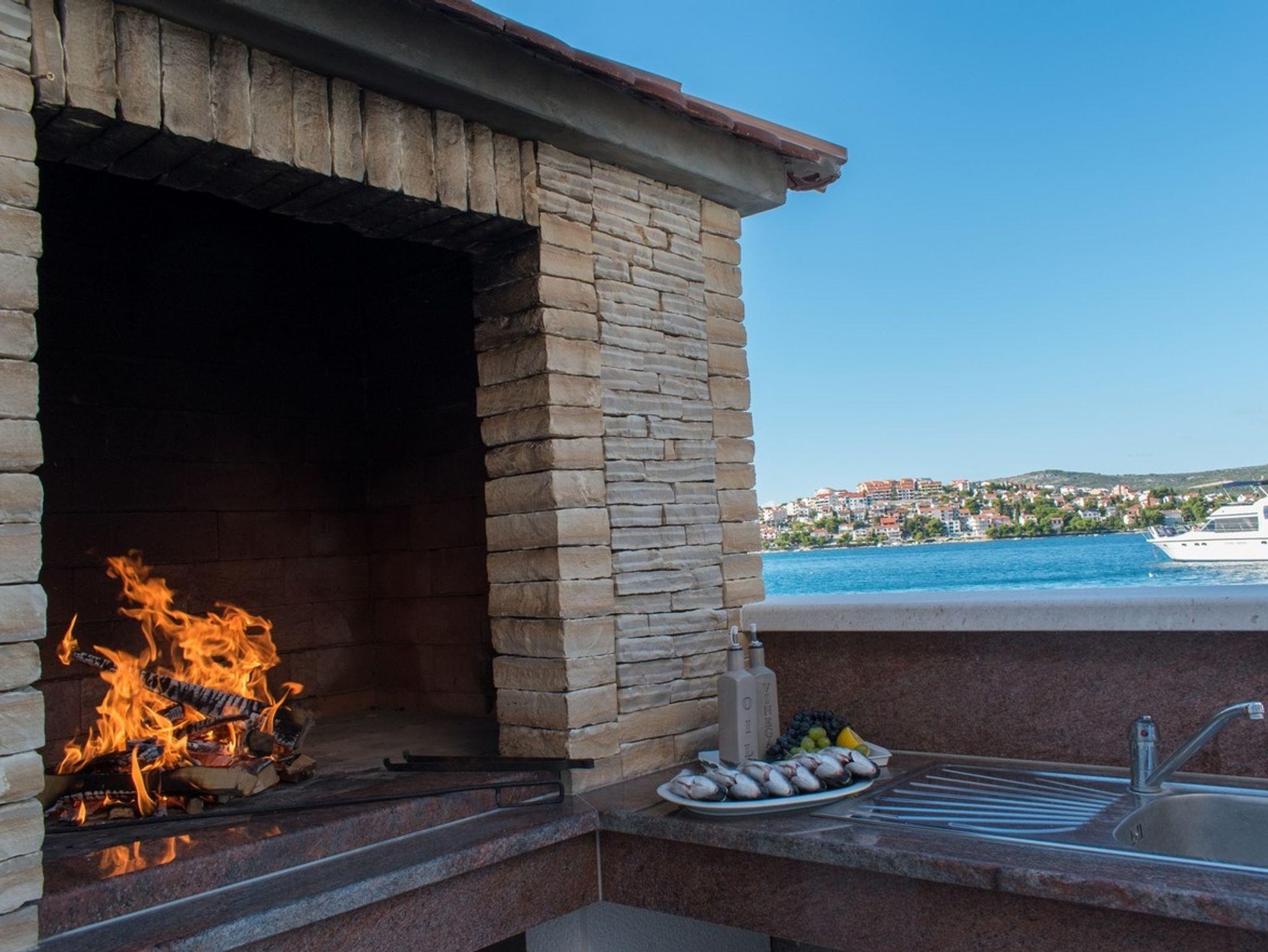 Haus bietet Platz für 12 Gäste. Die Betten sind in Schlafzimmern, die es 6 gibt, innerhalb einer Gesamtfläche von 184m2, angeordnet. Die Gäste haben eine eigene Terrasse zur Verfügung, auf der sie in warmen Sommernächten genießen können. Das Haus bietet Meerblick. Für vollen Genuss und Entspannung gibt es einen privaten Grill für Gäste dieser Unterkunft. IM PREIS INBEGRIFFEN: Kurtaxe, Endreinigung, Klimatisierung, Internet, Bootsanlegeplatz, Kinderbett, Zusatzbett, Bügeleisen, Bügelbrett, Föhn, Liegestühle. Die Verfügbarkeit zusätzlicher Dienstleistungen in Ihrem reservierten Termin und die Preise derselben (falls nicht aufgeführt) müssen im Voraus überprüft werden. Zusätzliche Dienstleistungen die in der Zahlungsaufforderung nicht aufgeführt sind werden direkt beim Vermieter bezahlt, angenommen der Gast nutzt auch diese.