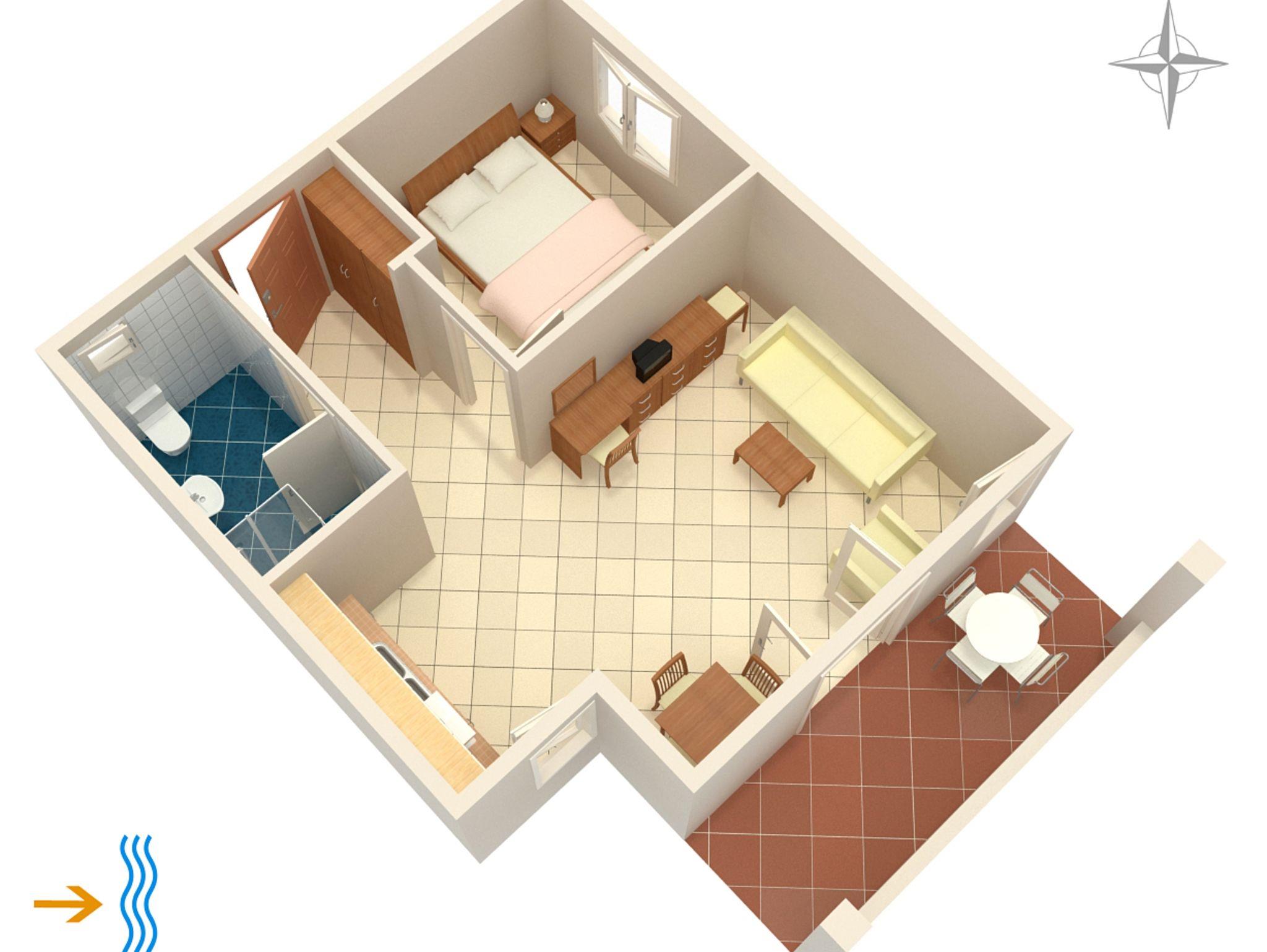 Ferienwohnung bietet Platz für 3 Gäste. Die Betten sind in Schlafzimmern, die es 1 gibt, und in Wohnzimmer, innerhalb einer Gesamtfläche von 39m2, angeordnet. Die Gäste haben eine eigene Terrasse zur Verfügung, auf der sie in warmen Sommernächten genießen können. Das Apartment bietet Meerblick. Es ist erlaubt, Speisen auf dem Gemeinschafts-Grill vorzubereiten. In der Unterkunftseinheit besteht die Möglichkeit des Mitbringens von Haustieren gegen Aufpreis. In der gebuchten Unterkunftseinheit zahlt man am Ort ein Depositum ( der Preis ist an der Internetseite angeführt ). IM PREIS INBEGRIFFEN: Kurtaxe, Endreinigung, Klimatisierung, Parkplatz, Internet, Kinderbett, Föhn. VERBINDLICHE ZUSÄTZLICHE KOSTEN: Kaution (100,00 € Einmalzahlung), Aufzahlung für Kurzaufenthalte (prozentualer Zuschlag pro Nächtigungsanzahl: 30% - 1, 20% - 2, 10% - 3). UNVERBINDLICHE ZUSÄTZLICHE KOSTEN: Wäschewaschen (5,00 € Waschen), Bootsanlegeplatz (25,00 € pro Nacht), Haustiere (20,00 € pro Nacht). Die Verfügbarkeit zusätzlicher Dienstleistungen in Ihrem reservierten Termin und die Preise derselben (falls nicht aufgeführt) müssen im Voraus überprüft werden. Zusätzliche Dienstleistungen die in der Zahlungsaufforderung nicht aufgeführt sind werden direkt beim Vermieter bezahlt, angenommen der Gast nutzt auch diese.