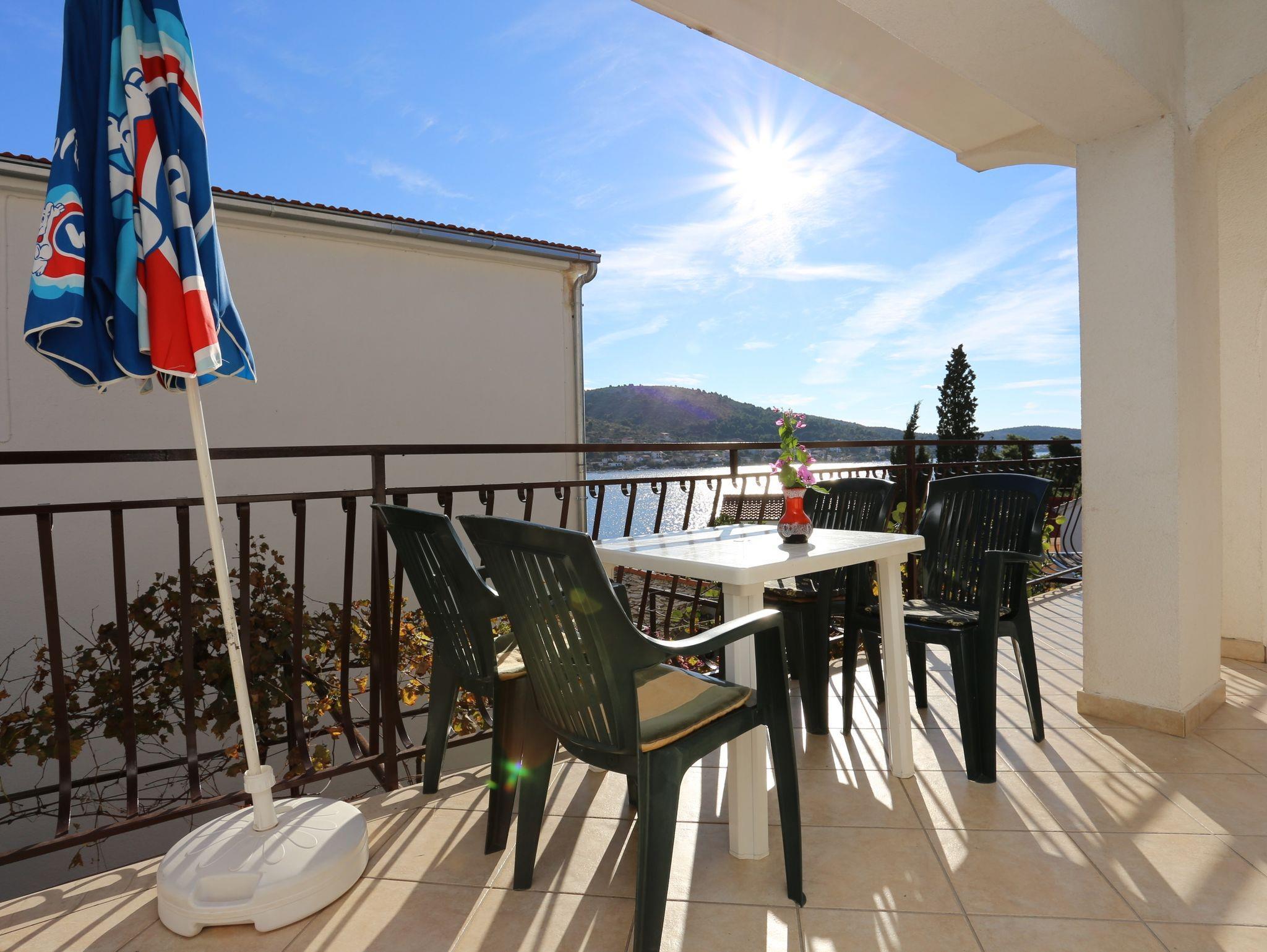 Ferienwohnung bietet Platz für 4 Gäste. Die Betten sind in Schlafzimmern, die es 2 gibt, innerhalb einer Gesamtfläche von 42m2, angeordnet. Die Gäste haben eine eigene Terrasse zur Verfügung, auf der sie in warmen Sommernächten genießen können. Das Apartment bietet Meerblick. Es ist erlaubt, Speisen auf dem Gemeinschafts-Grill vorzubereiten. IM PREIS INBEGRIFFEN: Kurtaxe, Endreinigung, Klimatisierung, Parkplatz, Internet, Bootsanlegeplatz, Bügeleisen, Föhn. VERBINDLICHE ZUSÄTZLICHE KOSTEN: Aufzahlung für Kurzaufenthalte (prozentualer Zuschlag pro Nächtigungsanzahl: 30% - 1, 20% - 2, 10% - 3). UNVERBINDLICHE ZUSÄTZLICHE KOSTEN: Zusatzbett (7,00 € pro Nacht). Die Verfügbarkeit zusätzlicher Dienstleistungen in Ihrem reservierten Termin und die Preise derselben (falls nicht aufgeführt) müssen im Voraus überprüft werden. Zusätzliche Dienstleistungen die in der Zahlungsaufforderung nicht aufgeführt sind werden direkt beim Vermieter bezahlt, angenommen der Gast nutzt auch diese.