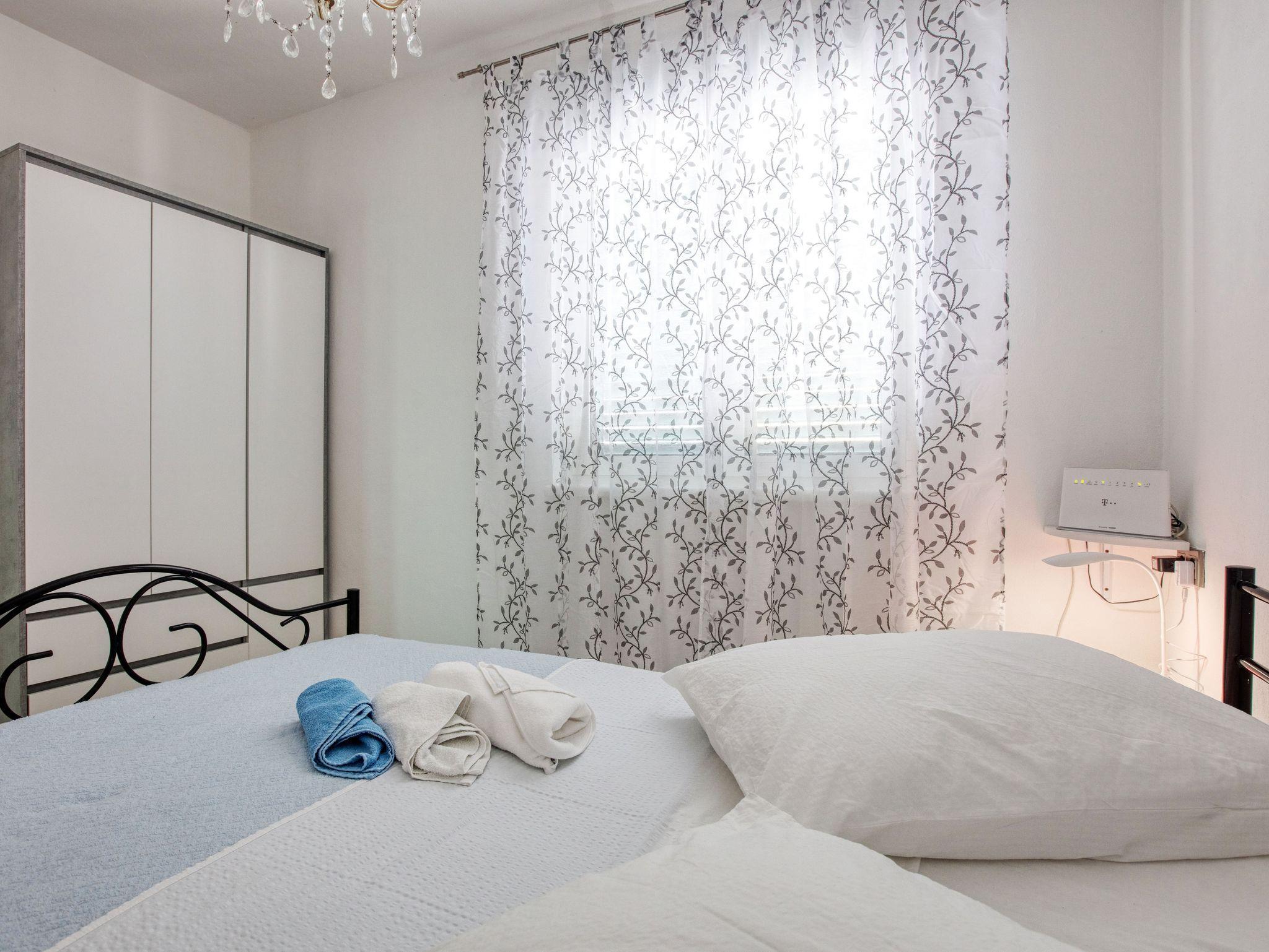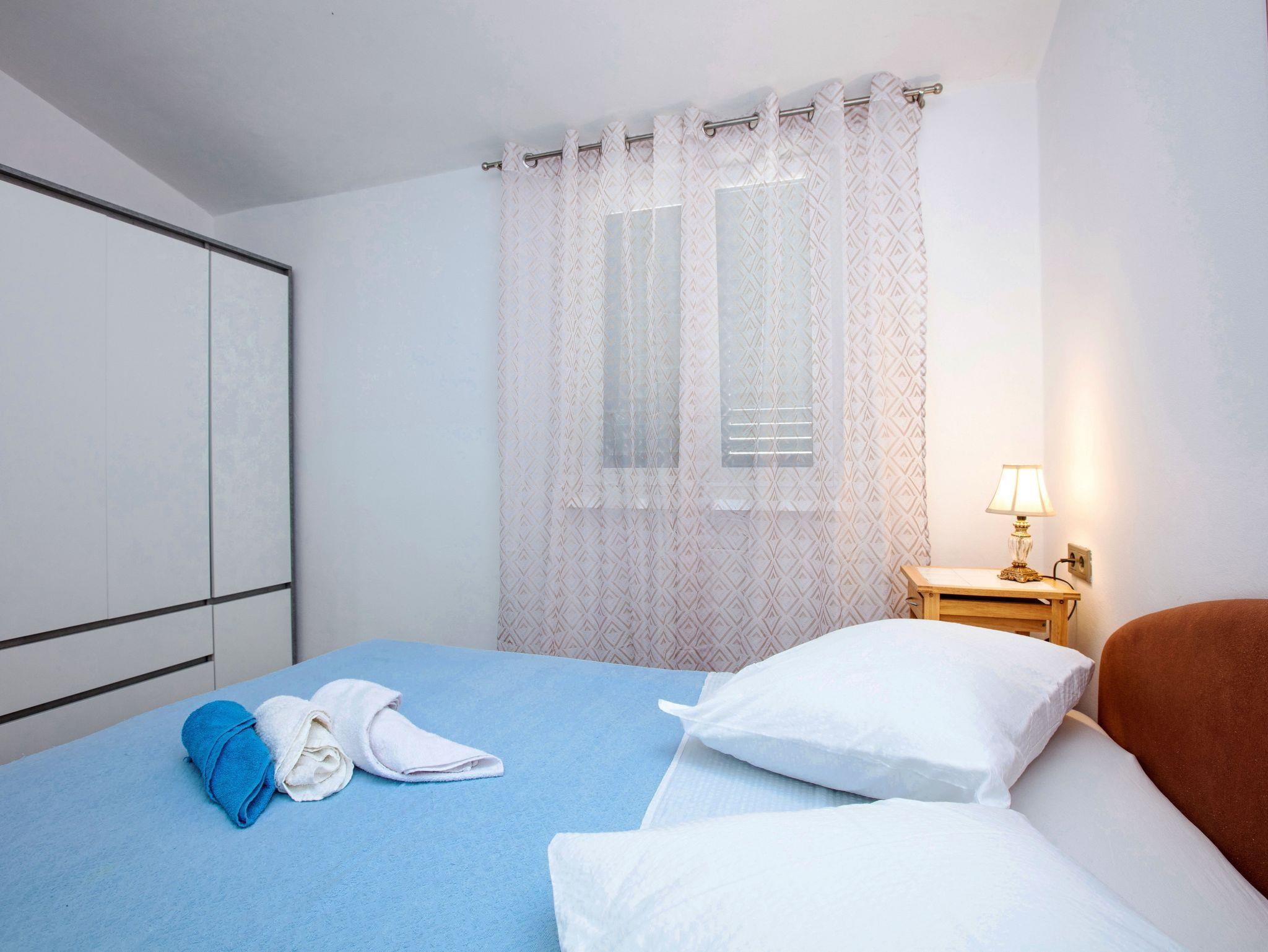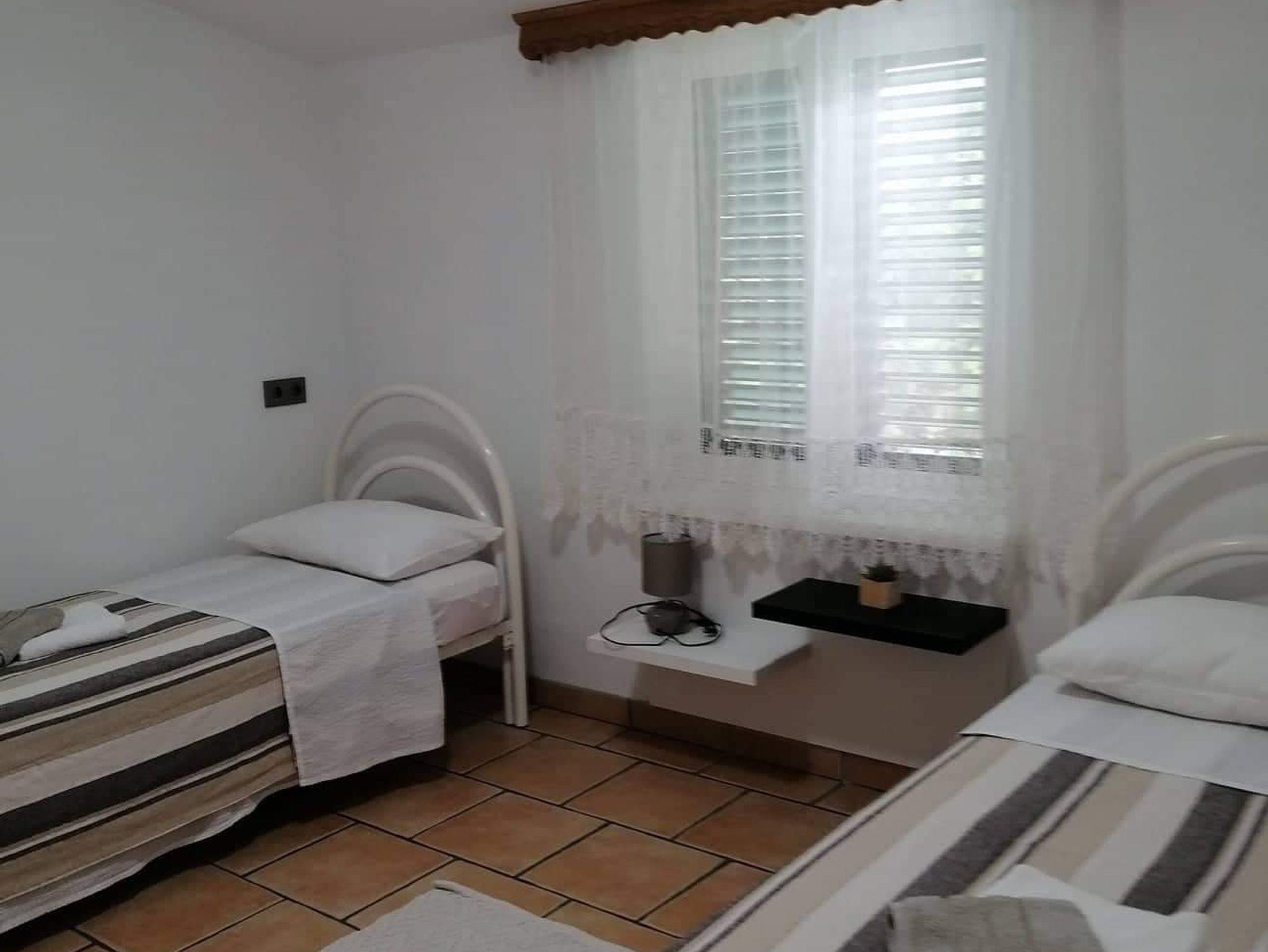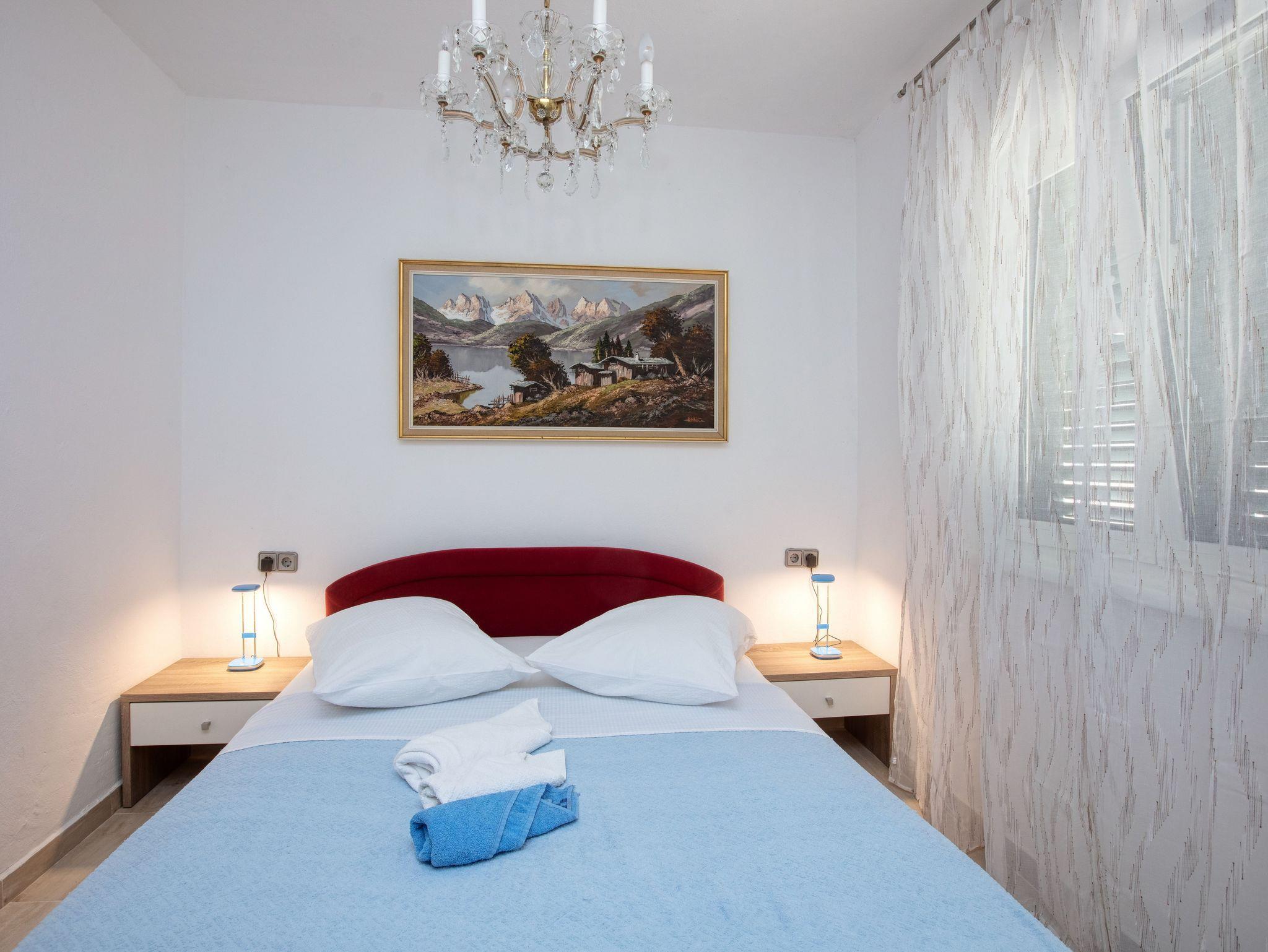 Haus bietet Platz für 12 Gäste. Die Betten sind in Schlafzimmern, die es 5 gibt, und in Wohnzimmer, innerhalb einer Gesamtfläche von 106m2, angeordnet. Die Gäste haben eine eigene Terrasse zur Verfügung, auf der sie in warmen Sommernächten genießen können. Für vollen Genuss und Entspannung gibt es einen privaten Grill für Gäste dieser Unterkunft. Räume der gebuchten Unterkunftseinheit werden nicht in eine Ganze verbunden. IM PREIS INBEGRIFFEN: Kurtaxe, Endreinigung, Klimatisierung, Parkplatz, Internet, Kinderbett, Föhn. VERBINDLICHE ZUSÄTZLICHE KOSTEN: Aufzahlung für Kurzaufenthalte (prozentualer Zuschlag pro Nächtigungsanzahl: 30% - 1, 20% - 2, 10% - 3). UNVERBINDLICHE ZUSÄTZLICHE KOSTEN: Bootsanlegeplatz (10,00 € pro Nacht). Die Verfügbarkeit zusätzlicher Dienstleistungen in Ihrem reservierten Termin und die Preise derselben (falls nicht aufgeführt) müssen im Voraus überprüft werden. Zusätzliche Dienstleistungen die in der Zahlungsaufforderung nicht aufgeführt sind werden direkt beim Vermieter bezahlt, angenommen der Gast nutzt auch diese.