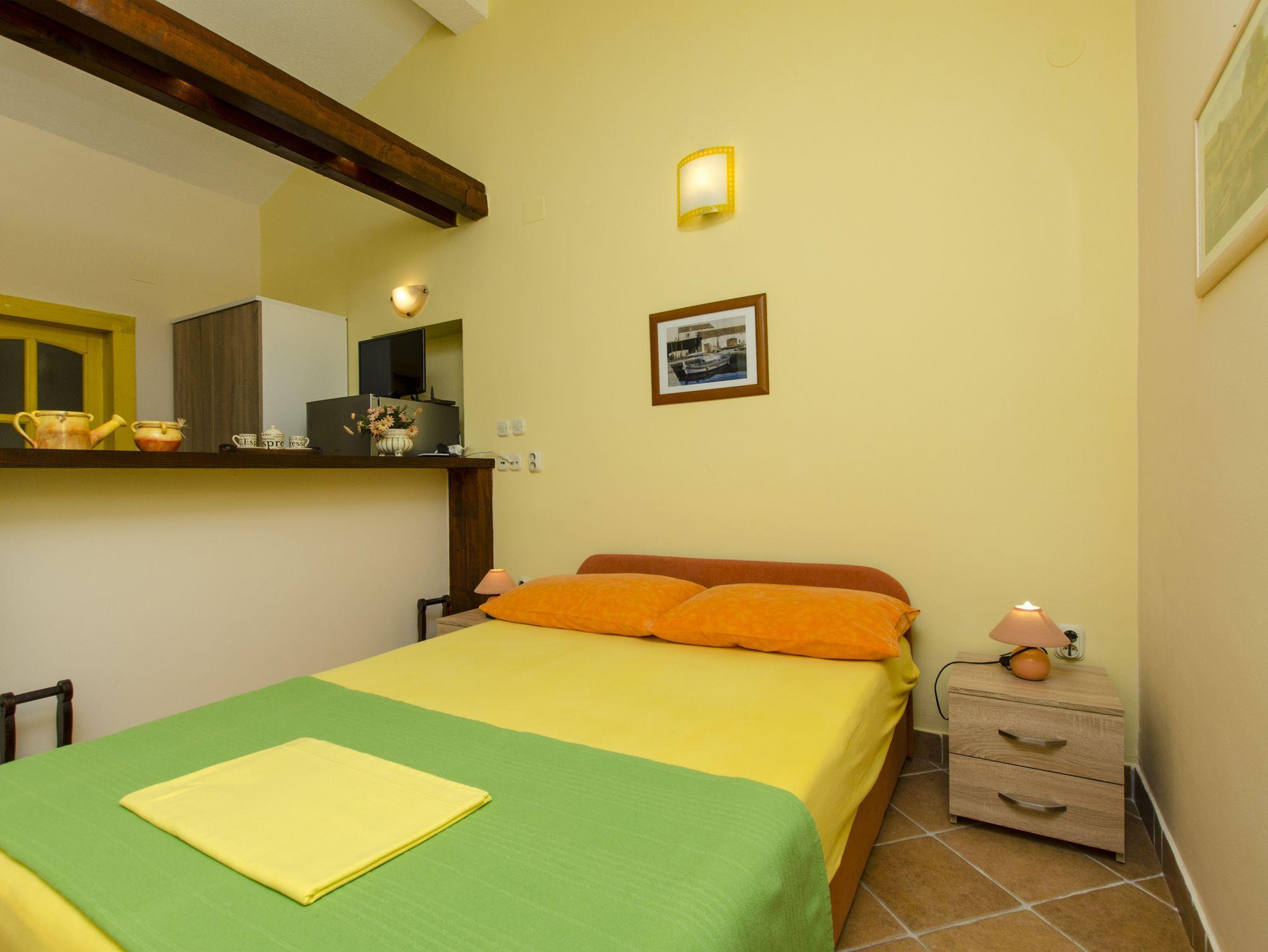 Studio bietet Platz für 2 Gäste. Die Betten sind in Schlafzimmern, die es 1 gibt, innerhalb einer Gesamtfläche von 24m2, angeordnet. Die Gäste haben eine eigene Terrasse zur Verfügung, auf der sie in warmen Sommernächten genießen können. Das Studio-Apartment bietet Meerblick. Es ist erlaubt, Speisen auf dem Gemeinschafts-Grill vorzubereiten. IM PREIS INBEGRIFFEN: Kurtaxe, Endreinigung, Klimatisierung, Parkplatz, Internet. Die Verfügbarkeit zusätzlicher Dienstleistungen in Ihrem reservierten Termin und die Preise derselben (falls nicht aufgeführt) müssen im Voraus überprüft werden. Zusätzliche Dienstleistungen die in der Zahlungsaufforderung nicht aufgeführt sind werden direkt beim Vermieter bezahlt, angenommen der Gast nutzt auch diese. Ermäßigung auf den Grundpreis: Gratistag 14=13 (bei einem Aufenthalt von 14 Tagen oder mehr erhalten Sie einen Gratistag für den Aufenthalt bis 31.12.26).