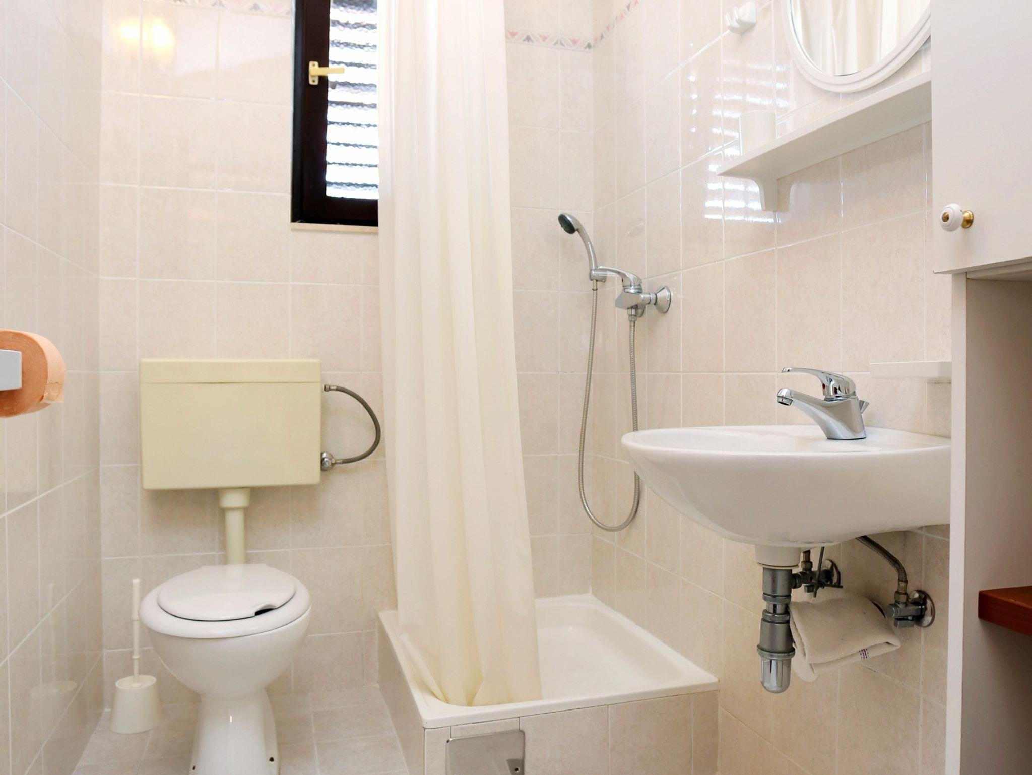 Ferienwohnung bietet Platz für 7 Gäste. Die Betten sind in Schlafzimmern, die es 3 gibt, innerhalb einer Gesamtfläche von 56m2, angeordnet. Die Gäste haben eine eigene Terrasse zur Verfügung, auf der sie in warmen Sommernächten genießen können. Das Apartment bietet Meerblick. Es ist erlaubt, Speisen auf dem Gemeinschafts-Grill vorzubereiten. IM PREIS INBEGRIFFEN: Kurtaxe, Endreinigung, Parkplatz, Internet, Bootsanlegeplatz. VERBINDLICHE ZUSÄTZLICHE KOSTEN: Aufzahlung für Kurzaufenthalte (prozentualer Zuschlag pro Nächtigungsanzahl: 30% - 1, 20% - 2, 10% - 3). UNVERBINDLICHE ZUSÄTZLICHE KOSTEN: Klimatisierung (10,00 € pro Nacht), Wäschewaschen (5,00 € Waschen). Die Verfügbarkeit zusätzlicher Dienstleistungen in Ihrem reservierten Termin und die Preise derselben (falls nicht aufgeführt) müssen im Voraus überprüft werden. Zusätzliche Dienstleistungen die in der Zahlungsaufforderung nicht aufgeführt sind werden direkt beim Vermieter bezahlt, angenommen der Gast nutzt auch diese.