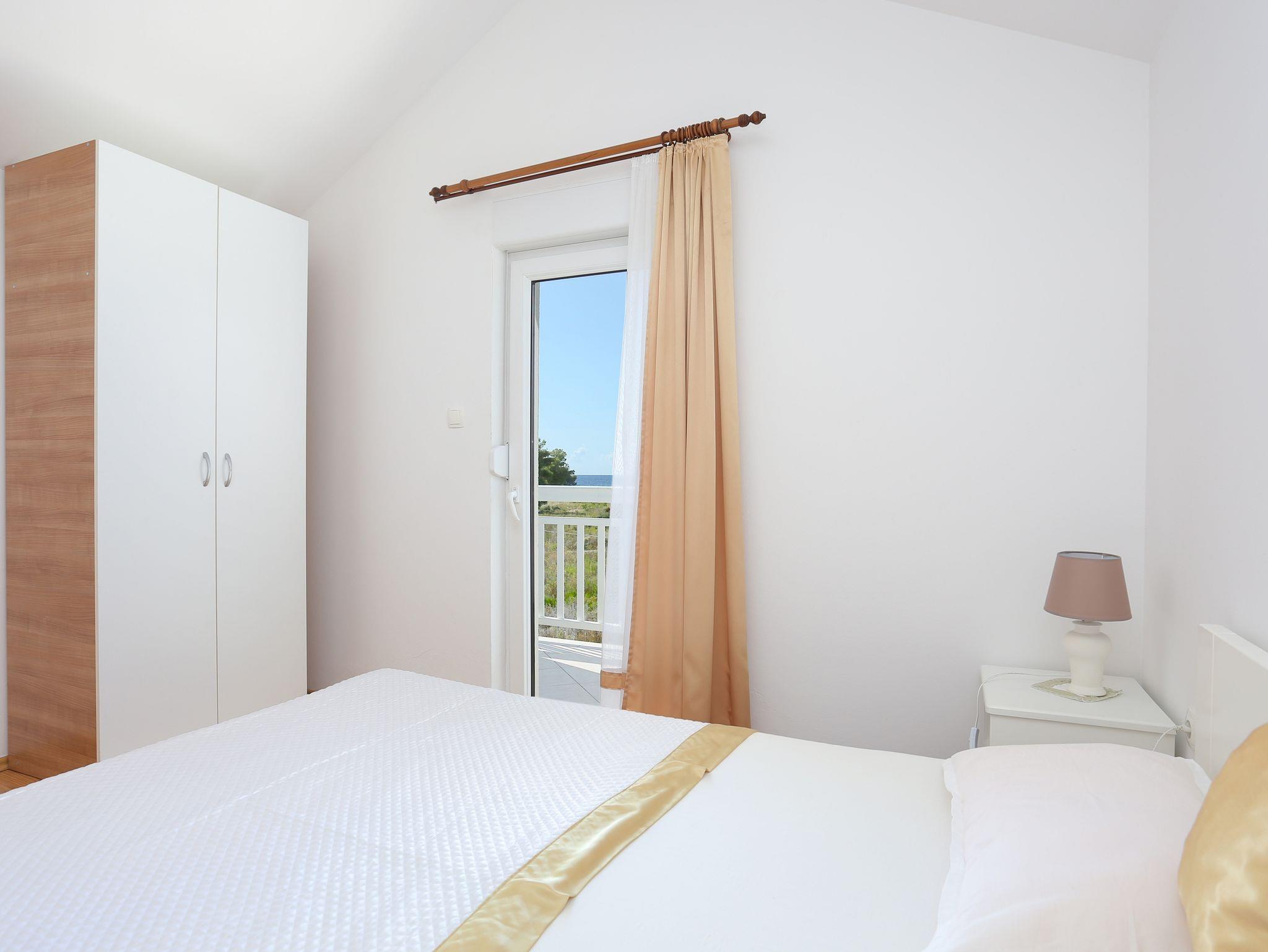 Ferienwohnung bietet Platz für 4 Gäste. Die Betten sind in Schlafzimmern, die es 1 gibt, und in Wohnzimmer, innerhalb einer Gesamtfläche von 38m2, angeordnet. Die Gäste haben eine eigene Terrasse zur Verfügung, auf der sie in warmen Sommernächten genießen können. Das Apartment bietet Meerblick. Es ist erlaubt, Speisen auf dem Gemeinschafts-Grill vorzubereiten. IM PREIS INBEGRIFFEN: Kurtaxe, Endreinigung, Klimatisierung, Parkplatz, Internet, Kinderbett, Bügeleisen, Bügelbrett. VERBINDLICHE ZUSÄTZLICHE KOSTEN: Aufzahlung für Kurzaufenthalte (prozentualer Zuschlag pro Nächtigungsanzahl: 30% - 1, 20% - 2, 10% - 3). UNVERBINDLICHE ZUSÄTZLICHE KOSTEN: Wäschewaschen (1,00 € Waschen). Die Verfügbarkeit zusätzlicher Dienstleistungen in Ihrem reservierten Termin und die Preise derselben (falls nicht aufgeführt) müssen im Voraus überprüft werden. Zusätzliche Dienstleistungen die in der Zahlungsaufforderung nicht aufgeführt sind werden direkt beim Vermieter bezahlt, angenommen der Gast nutzt auch diese.