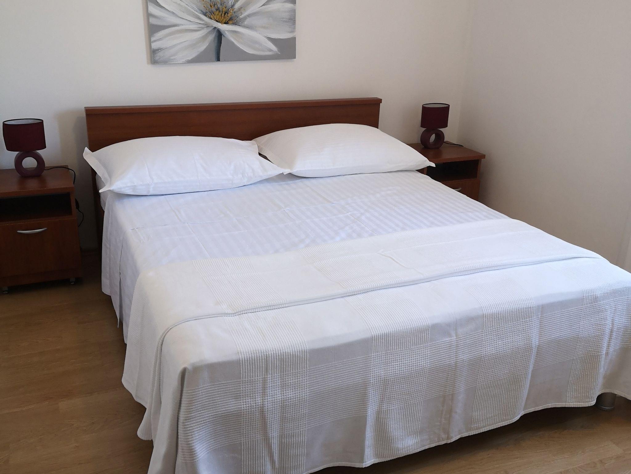 Ferienwohnung bietet Platz für 4 Gäste. Die Betten sind in Schlafzimmern, die es 2 gibt, innerhalb einer Gesamtfläche von 58m2, angeordnet. Die Gäste haben eine eigene Terrasse zur Verfügung, auf der sie in warmen Sommernächten genießen können. Das Apartment bietet Meerblick. IM PREIS INBEGRIFFEN: Kurtaxe, Endreinigung, Klimatisierung, Parkplatz, Internet, Bootsanlegeplatz. VERBINDLICHE ZUSÄTZLICHE KOSTEN: Aufzahlung für Kurzaufenthalte (prozentualer Zuschlag pro Nächtigungsanzahl: 30% - 1, 20% - 2, 10% - 3). Die Verfügbarkeit zusätzlicher Dienstleistungen in Ihrem reservierten Termin und die Preise derselben (falls nicht aufgeführt) müssen im Voraus überprüft werden. Zusätzliche Dienstleistungen die in der Zahlungsaufforderung nicht aufgeführt sind werden direkt beim Vermieter bezahlt, angenommen der Gast nutzt auch diese.