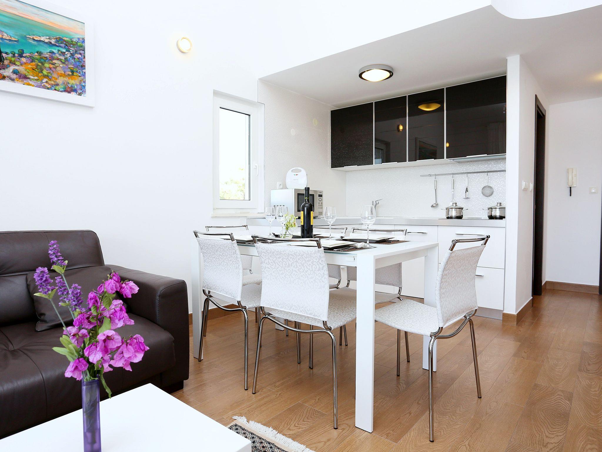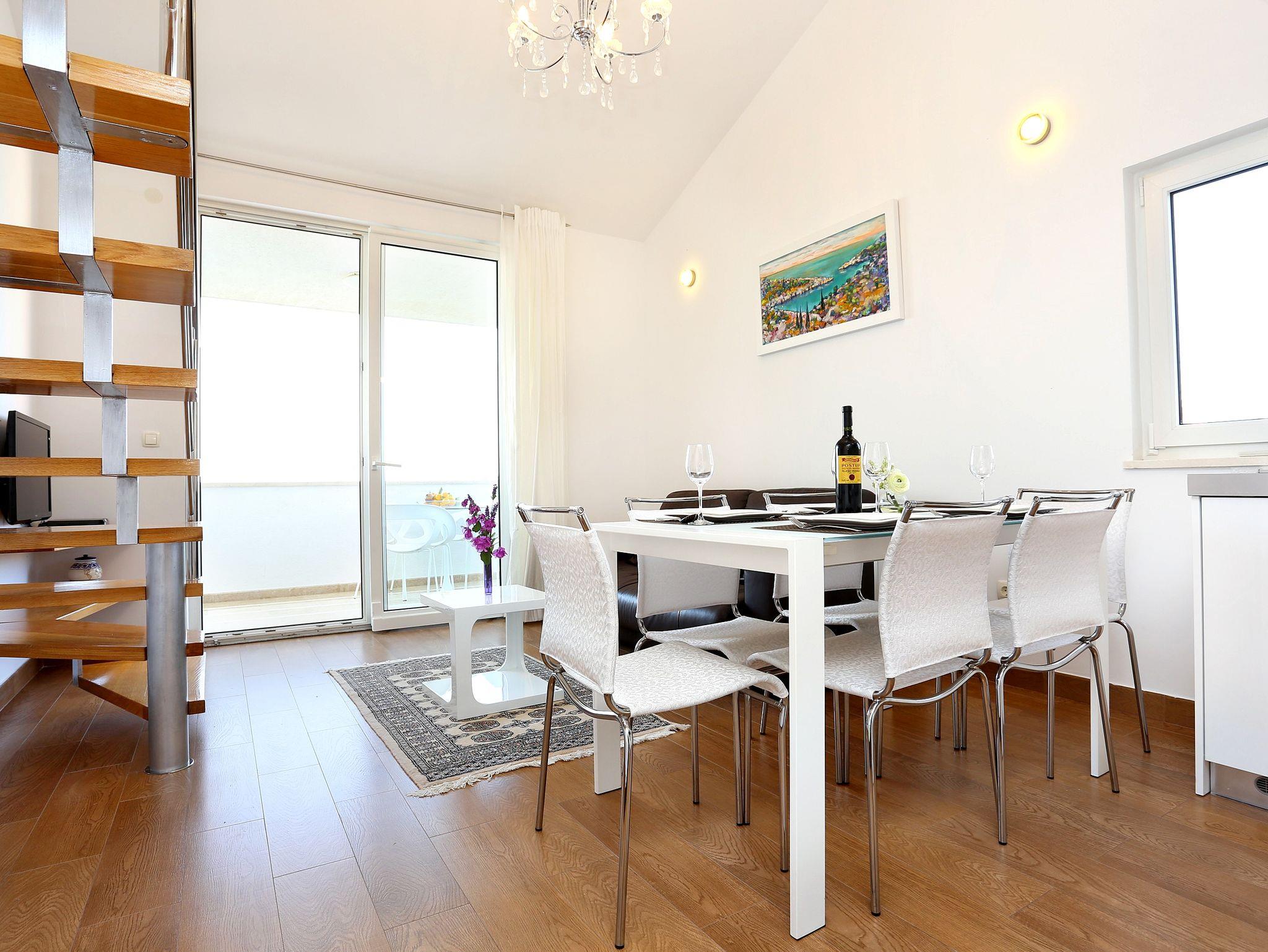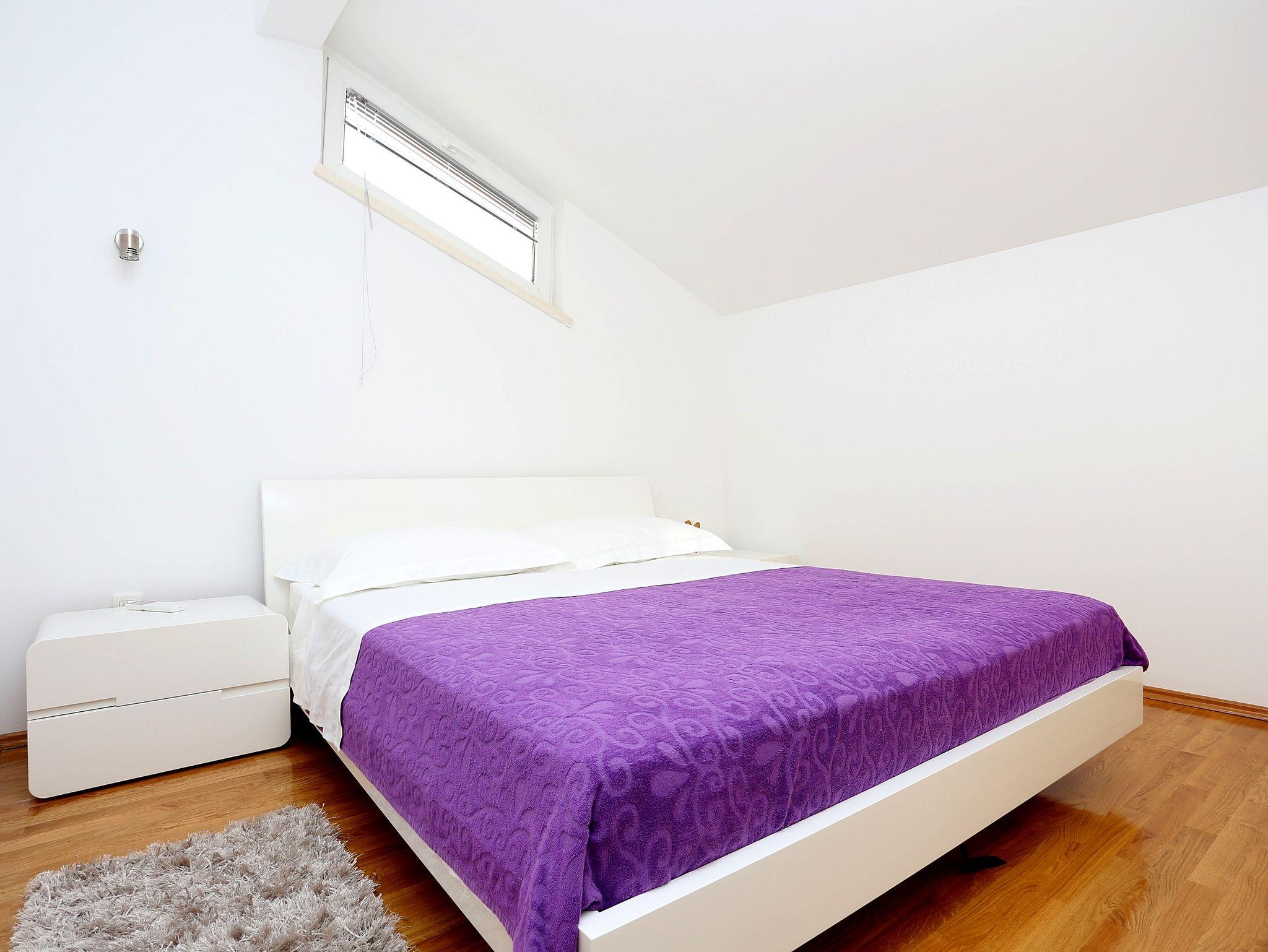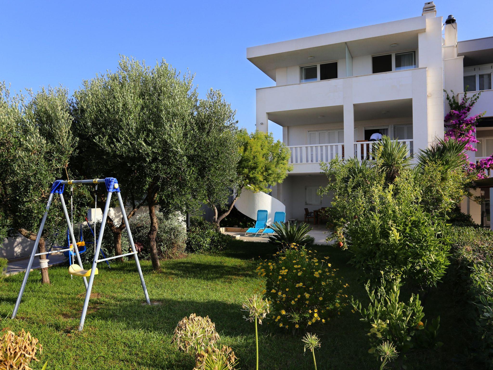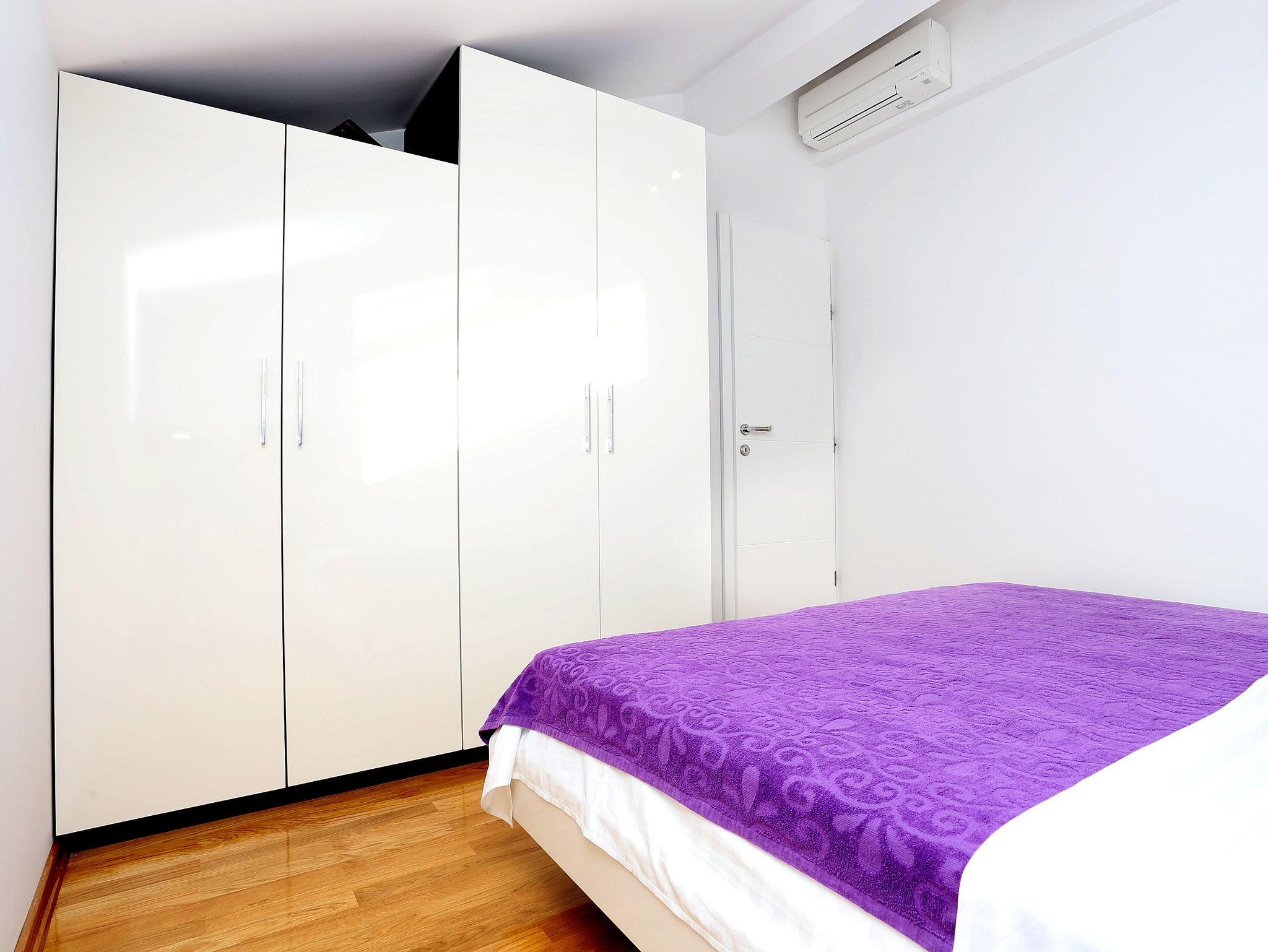 Ferienwohnung bietet Platz für 6 Gäste. Die Betten sind in Schlafzimmern, die es 2 gibt, und in Wohnzimmer, innerhalb einer Gesamtfläche von 67m2, angeordnet. Die Gäste haben eine eigene Terrasse zur Verfügung, auf der sie in warmen Sommernächten genießen können. Das Apartment bietet Meerblick. Es ist erlaubt, Speisen auf dem Gemeinschafts-Grill vorzubereiten. IM PREIS INBEGRIFFEN: Kurtaxe, Endreinigung, Klimatisierung, Parkplatz, Internet, Kinderbett, Bügeleisen, Bügelbrett, Föhn, tragbarer Grill, Sonnenschirm, Liegestühle. Die Verfügbarkeit zusätzlicher Dienstleistungen in Ihrem reservierten Termin und die Preise derselben (falls nicht aufgeführt) müssen im Voraus überprüft werden. Zusätzliche Dienstleistungen die in der Zahlungsaufforderung nicht aufgeführt sind werden direkt beim Vermieter bezahlt, angenommen der Gast nutzt auch diese.