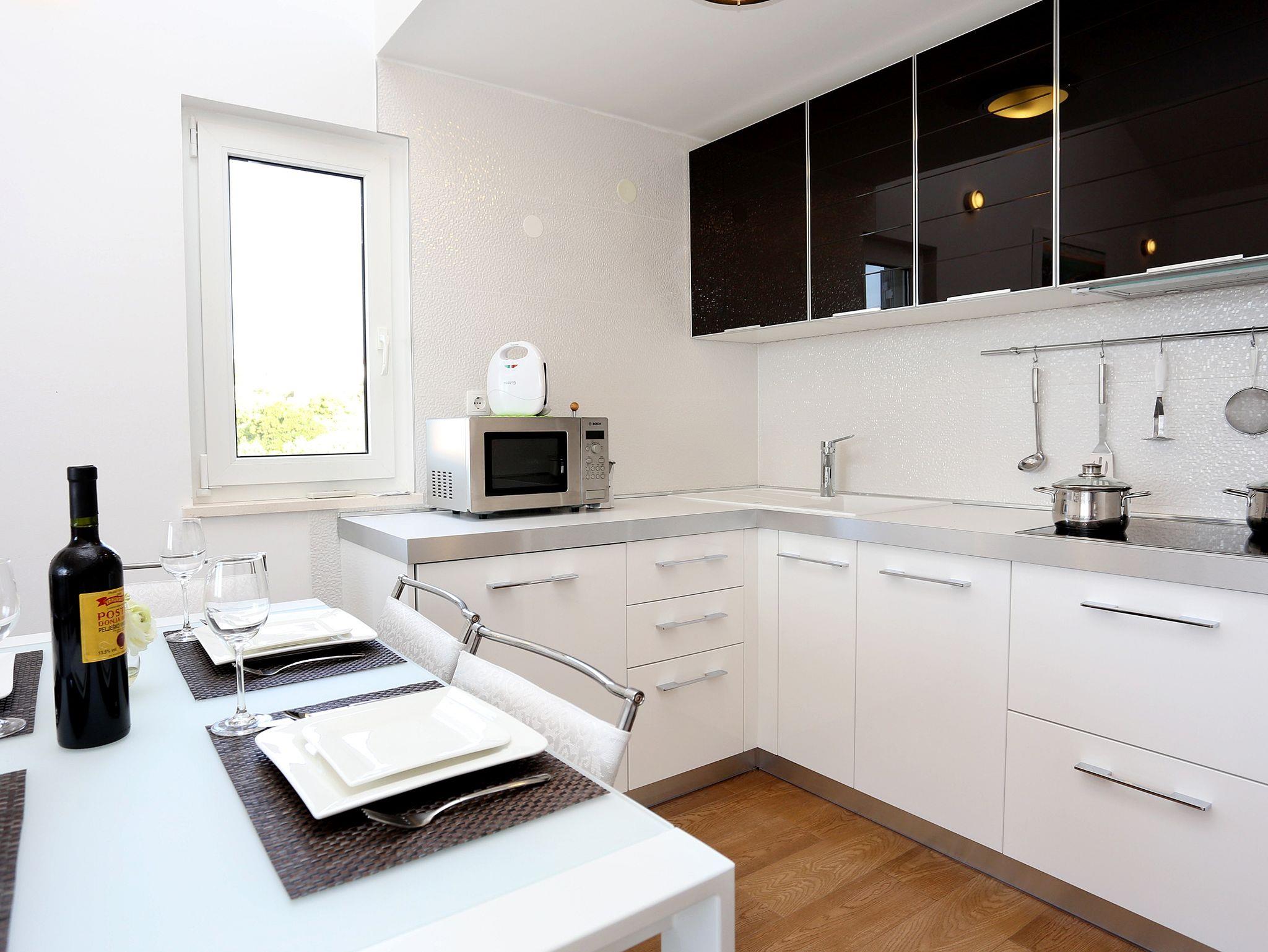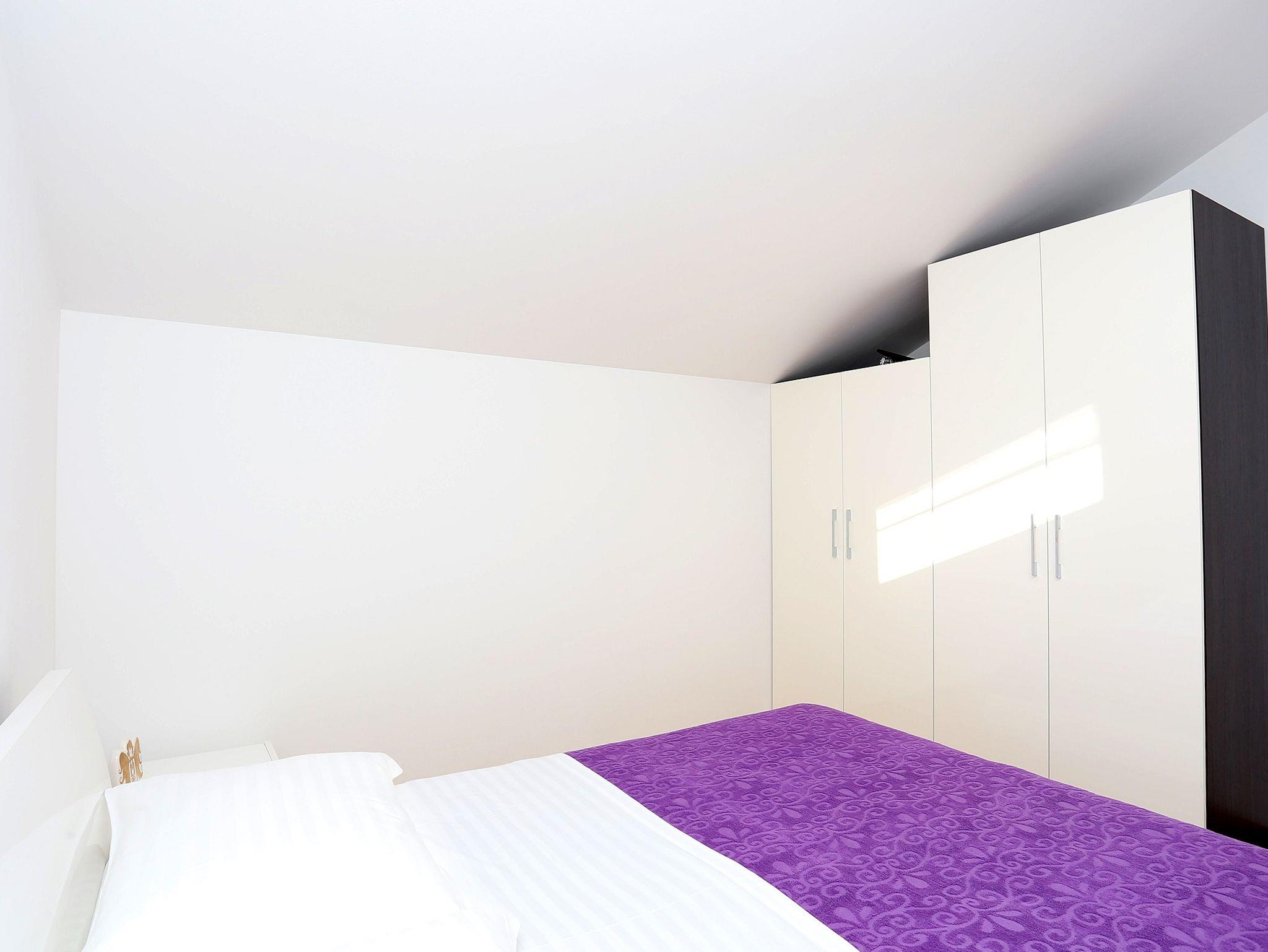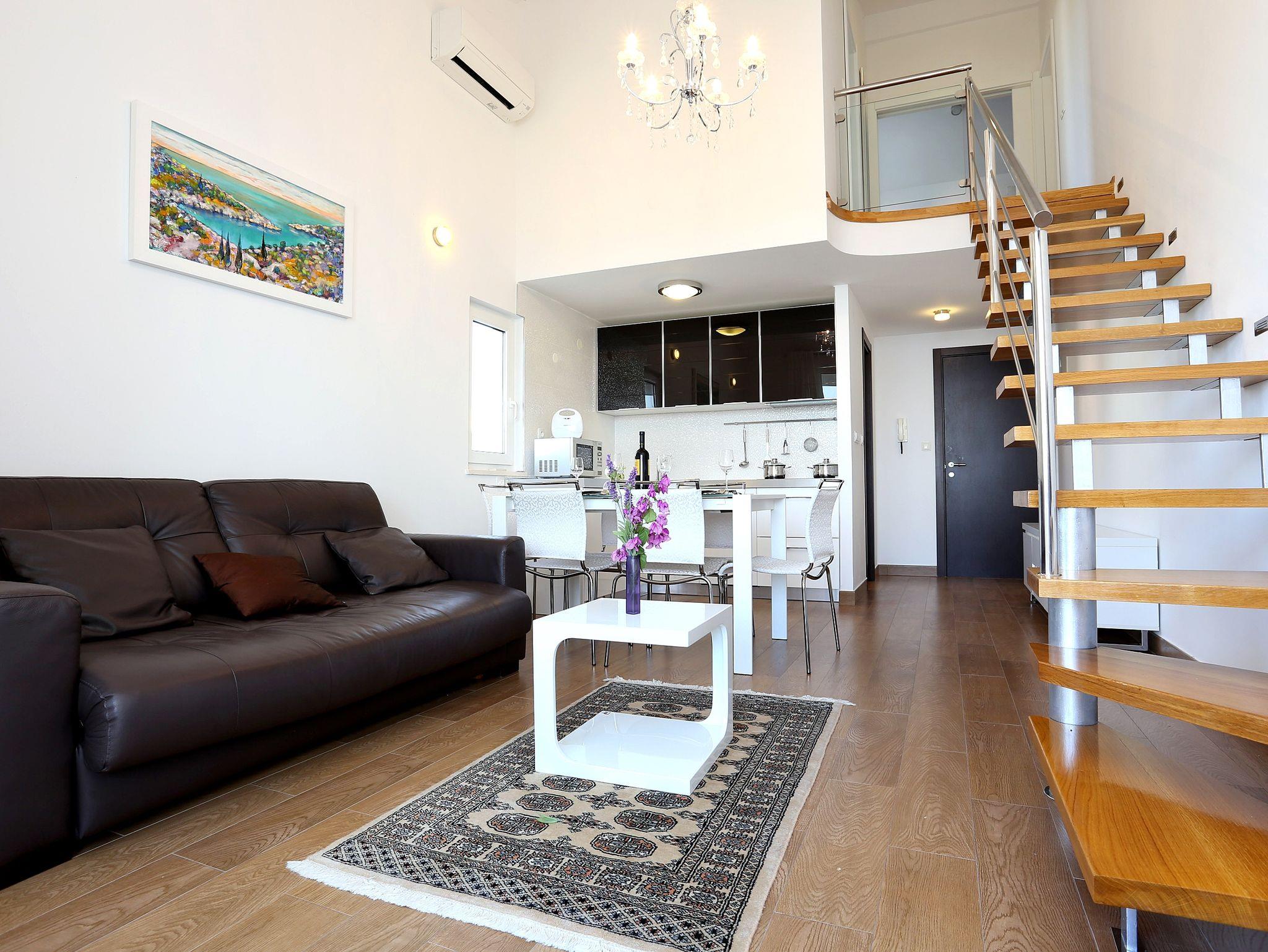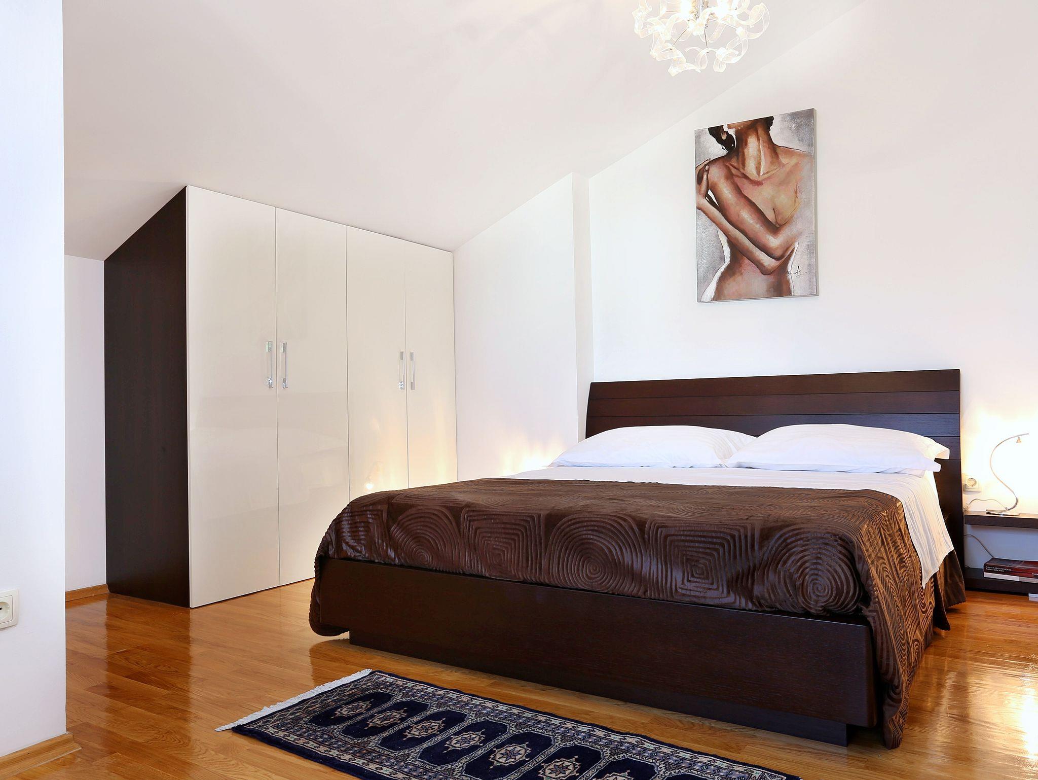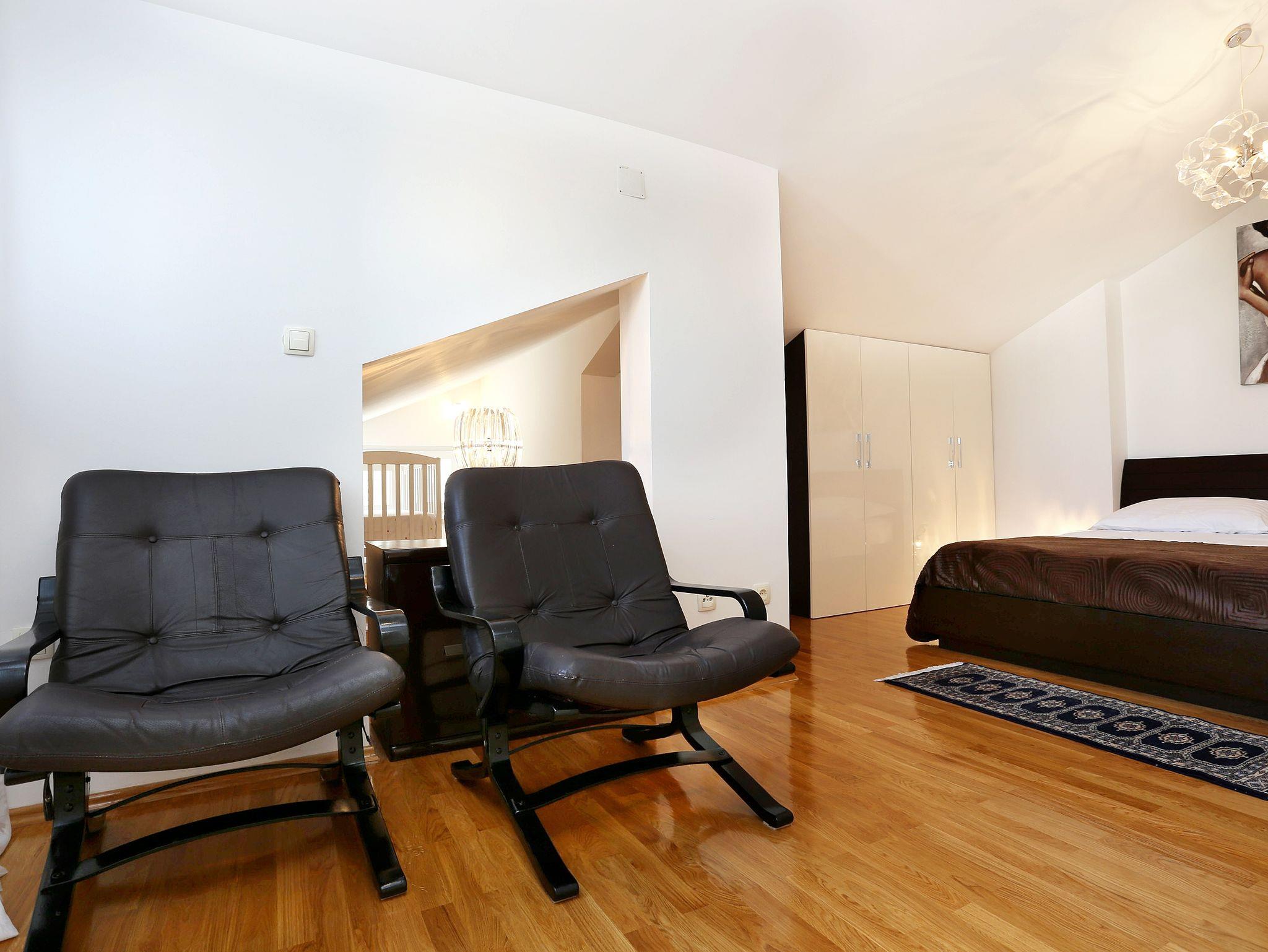 Ferienwohnung bietet Platz für 6 Gäste. Die Betten sind in Schlafzimmern, die es 2 gibt, und in Wohnzimmer, innerhalb einer Gesamtfläche von 67m2, angeordnet. Die Gäste haben eine eigene Terrasse zur Verfügung, auf der sie in warmen Sommernächten genießen können. Das Apartment bietet Meerblick. Es ist erlaubt, Speisen auf dem Gemeinschafts-Grill vorzubereiten. IM PREIS INBEGRIFFEN: Kurtaxe, Endreinigung, Klimatisierung, Parkplatz, Internet, Kinderbett, Bügeleisen, Bügelbrett, Föhn, tragbarer Grill, Sonnenschirm, Liegestühle. Die Verfügbarkeit zusätzlicher Dienstleistungen in Ihrem reservierten Termin und die Preise derselben (falls nicht aufgeführt) müssen im Voraus überprüft werden. Zusätzliche Dienstleistungen die in der Zahlungsaufforderung nicht aufgeführt sind werden direkt beim Vermieter bezahlt, angenommen der Gast nutzt auch diese.
