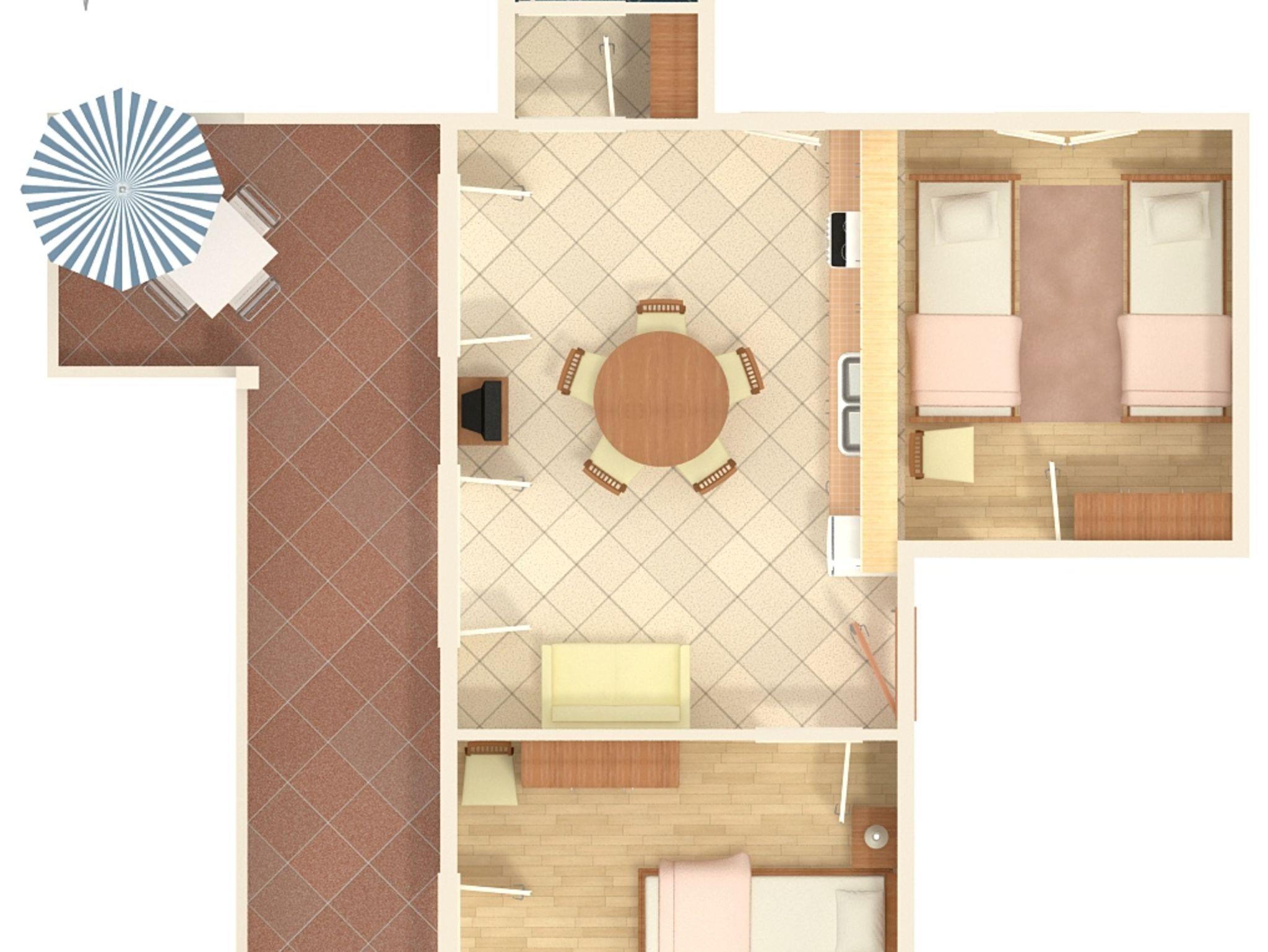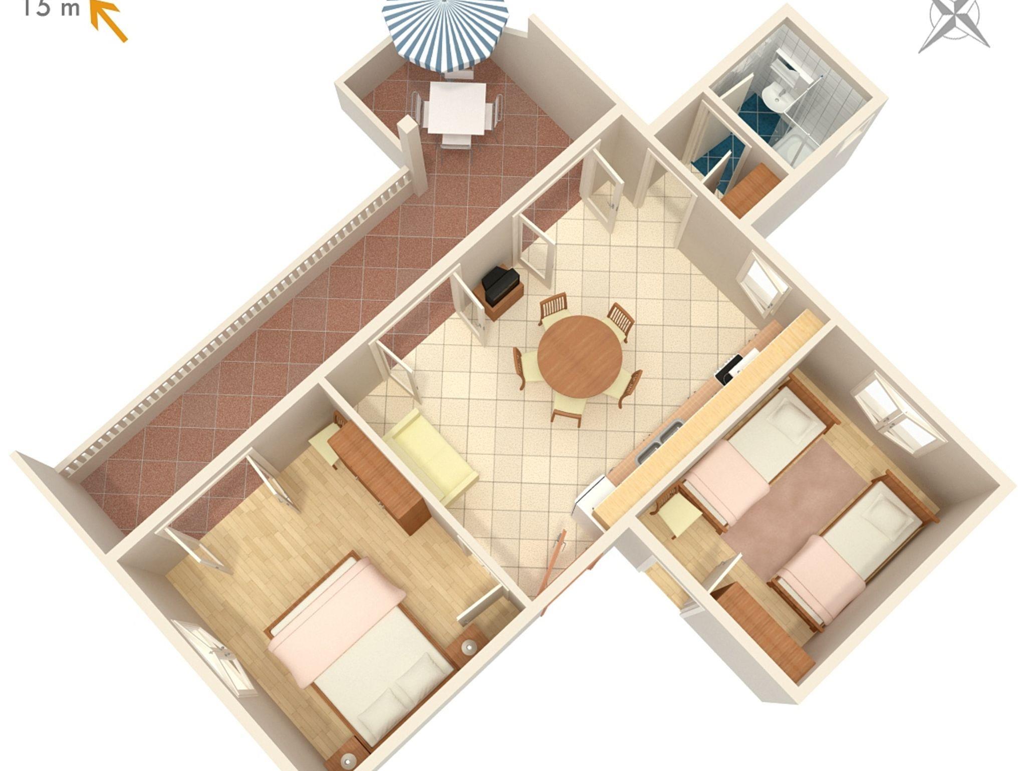 Ferienwohnung bietet Platz für 5 Gäste. Die Betten sind in Schlafzimmern, die es 2 gibt, und in Wohnzimmer, innerhalb einer Gesamtfläche von 61m2, angeordnet. Die Gäste haben eine eigene Terrasse zur Verfügung, auf der sie in warmen Sommernächten genießen können. Das Apartment bietet Meerblick. Unterkunftseinheit hat Räume, die von dem Rest der Einheit abgetrennt werden. IM PREIS INBEGRIFFEN: Kurtaxe, Endreinigung, Klimatisierung, Parkplatz, Internet, Föhn. Die Verfügbarkeit zusätzlicher Dienstleistungen in Ihrem reservierten Termin und die Preise derselben (falls nicht aufgeführt) müssen im Voraus überprüft werden. Zusätzliche Dienstleistungen die in der Zahlungsaufforderung nicht aufgeführt sind werden direkt beim Vermieter bezahlt, angenommen der Gast nutzt auch diese.