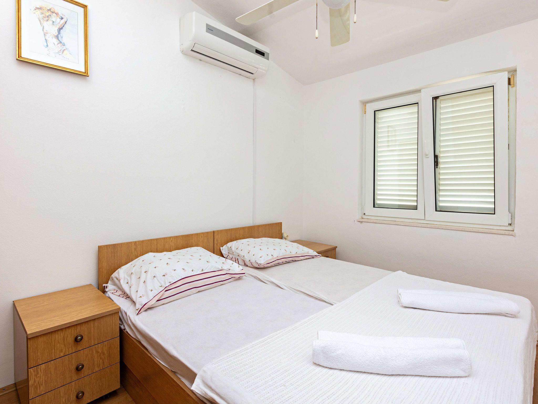 Ferienwohnung bietet Platz für 2 Gäste. Die Betten sind in Schlafzimmern, die es 1 gibt, innerhalb einer Gesamtfläche von 40m2, angeordnet. Die Gäste haben eine eigene Terrasse zur Verfügung, auf der sie in warmen Sommernächten genießen können. Das Apartment bietet Meerblick. IM PREIS INBEGRIFFEN: Kurtaxe, Endreinigung, Klimatisierung, Parkplatz, Internet, Kinderbett, Bügeleisen, Föhn. VERBINDLICHE ZUSÄTZLICHE KOSTEN: Aufzahlung für Kurzaufenthalte (prozentualer Zuschlag pro Nächtigungsanzahl: 30% - 1, 20% - 2, 10% - 3). Die Verfügbarkeit zusätzlicher Dienstleistungen in Ihrem reservierten Termin und die Preise derselben (falls nicht aufgeführt) müssen im Voraus überprüft werden. Zusätzliche Dienstleistungen die in der Zahlungsaufforderung nicht aufgeführt sind werden direkt beim Vermieter bezahlt, angenommen der Gast nutzt auch diese.