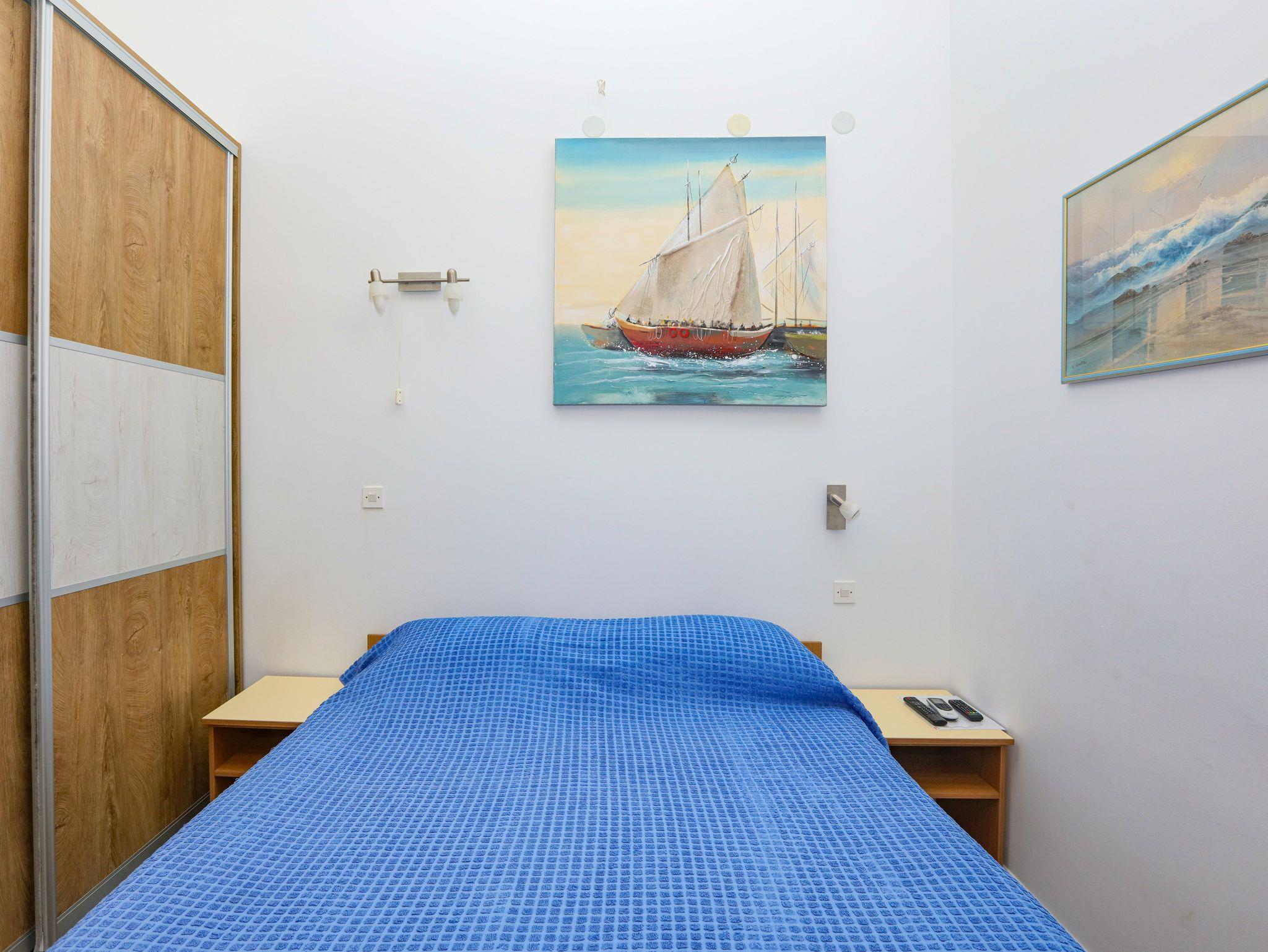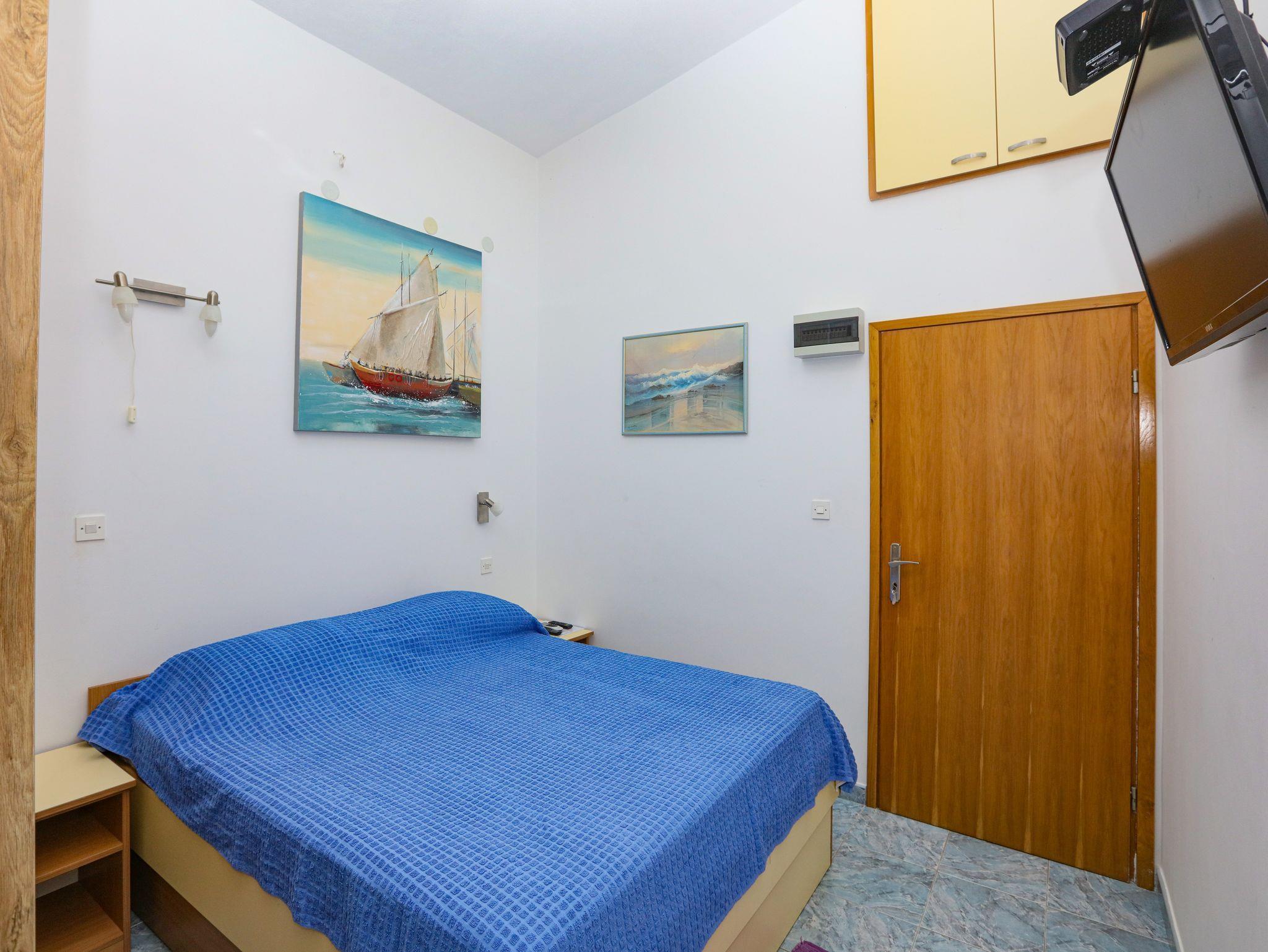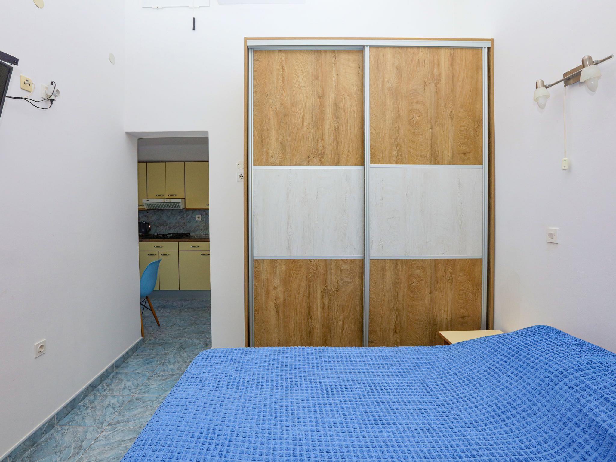 Studio bietet Platz für 2 Gäste. Die Betten sind in Schlafzimmern, die es 1 gibt, innerhalb einer Gesamtfläche von 19m2, angeordnet. Die Gäste haben einen eigenen Balkon zur Verfügung, auf der sie in warmen Sommernächten genießen können. Das Studio-Apartment bietet Meerblick. Es ist erlaubt, Speisen auf dem Gemeinschafts-Grill vorzubereiten. IM PREIS INBEGRIFFEN: Kurtaxe, Endreinigung, Klimatisierung, Parkplatz, Internet, Bootsanlegeplatz, Kinderbett, Bügeleisen, Bügelbrett, tragbarer Grill, Sonnenschirm. VERBINDLICHE ZUSÄTZLICHE KOSTEN: Aufzahlung für Kurzaufenthalte (prozentualer Zuschlag pro Nächtigungsanzahl: 30% - 1, 20% - 2, 10% - 3). Die Verfügbarkeit zusätzlicher Dienstleistungen in Ihrem reservierten Termin und die Preise derselben (falls nicht aufgeführt) müssen im Voraus überprüft werden. Zusätzliche Dienstleistungen die in der Zahlungsaufforderung nicht aufgeführt sind werden direkt beim Vermieter bezahlt, angenommen der Gast nutzt auch diese. Ermäßigung auf den Grundpreis: Gratistag 14=13 (bei einem Aufenthalt von 14 Tagen oder mehr erhalten Sie einen Gratistag für den Aufenthalt bis 31.12.26).