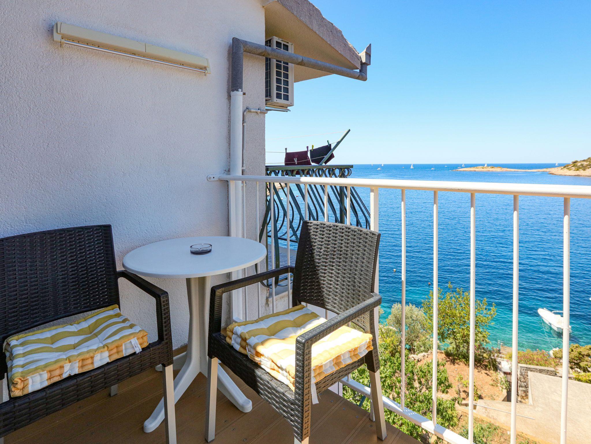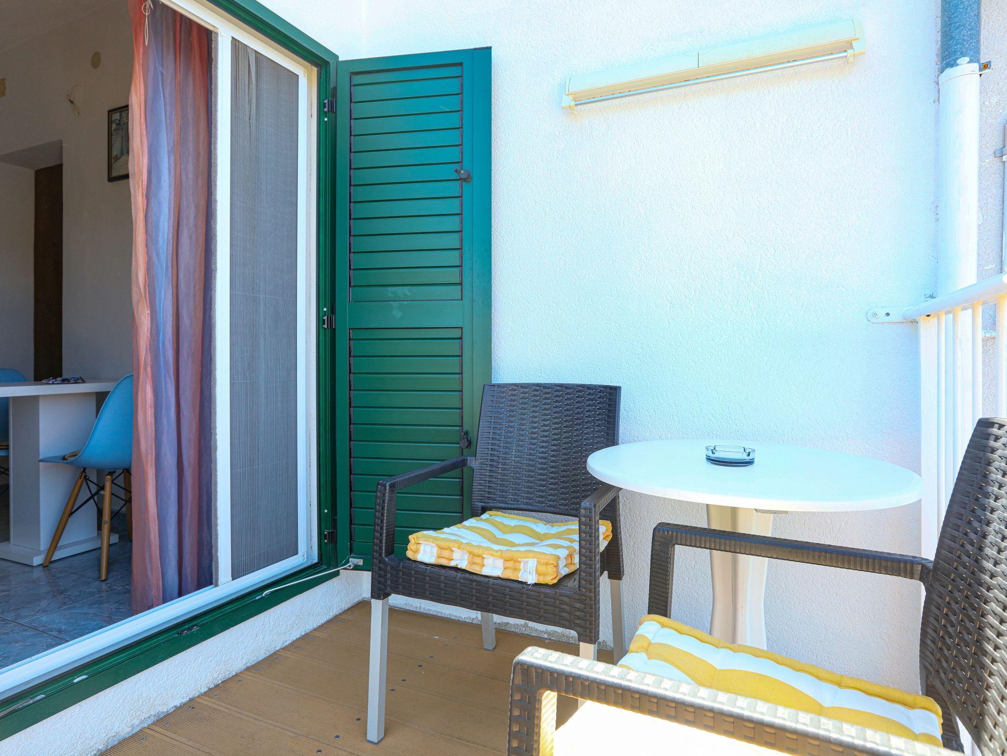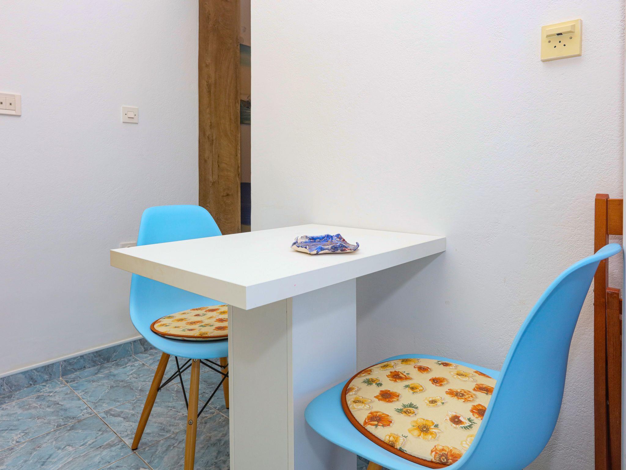Studio bietet Platz für 2 Gäste. Die Betten sind in Schlafzimmern, die es 1 gibt, innerhalb einer Gesamtfläche von 19m2, angeordnet. Die Gäste haben einen eigenen Balkon zur Verfügung, auf der sie in warmen Sommernächten genießen können. Das Studio-Apartment bietet Meerblick. Es ist erlaubt, Speisen auf dem Gemeinschafts-Grill vorzubereiten. IM PREIS INBEGRIFFEN: Kurtaxe, Endreinigung, Klimatisierung, Parkplatz, Internet, Bootsanlegeplatz, Kinderbett, Bügeleisen, Bügelbrett, tragbarer Grill, Sonnenschirm. VERBINDLICHE ZUSÄTZLICHE KOSTEN: Aufzahlung für Kurzaufenthalte (prozentualer Zuschlag pro Nächtigungsanzahl: 30% - 1, 20% - 2, 10% - 3). Die Verfügbarkeit zusätzlicher Dienstleistungen in Ihrem reservierten Termin und die Preise derselben (falls nicht aufgeführt) müssen im Voraus überprüft werden. Zusätzliche Dienstleistungen die in der Zahlungsaufforderung nicht aufgeführt sind werden direkt beim Vermieter bezahlt, angenommen der Gast nutzt auch diese. Ermäßigung auf den Grundpreis: Gratistag 14=13 (bei einem Aufenthalt von 14 Tagen oder mehr erhalten Sie einen Gratistag für den Aufenthalt bis 31.12.26).