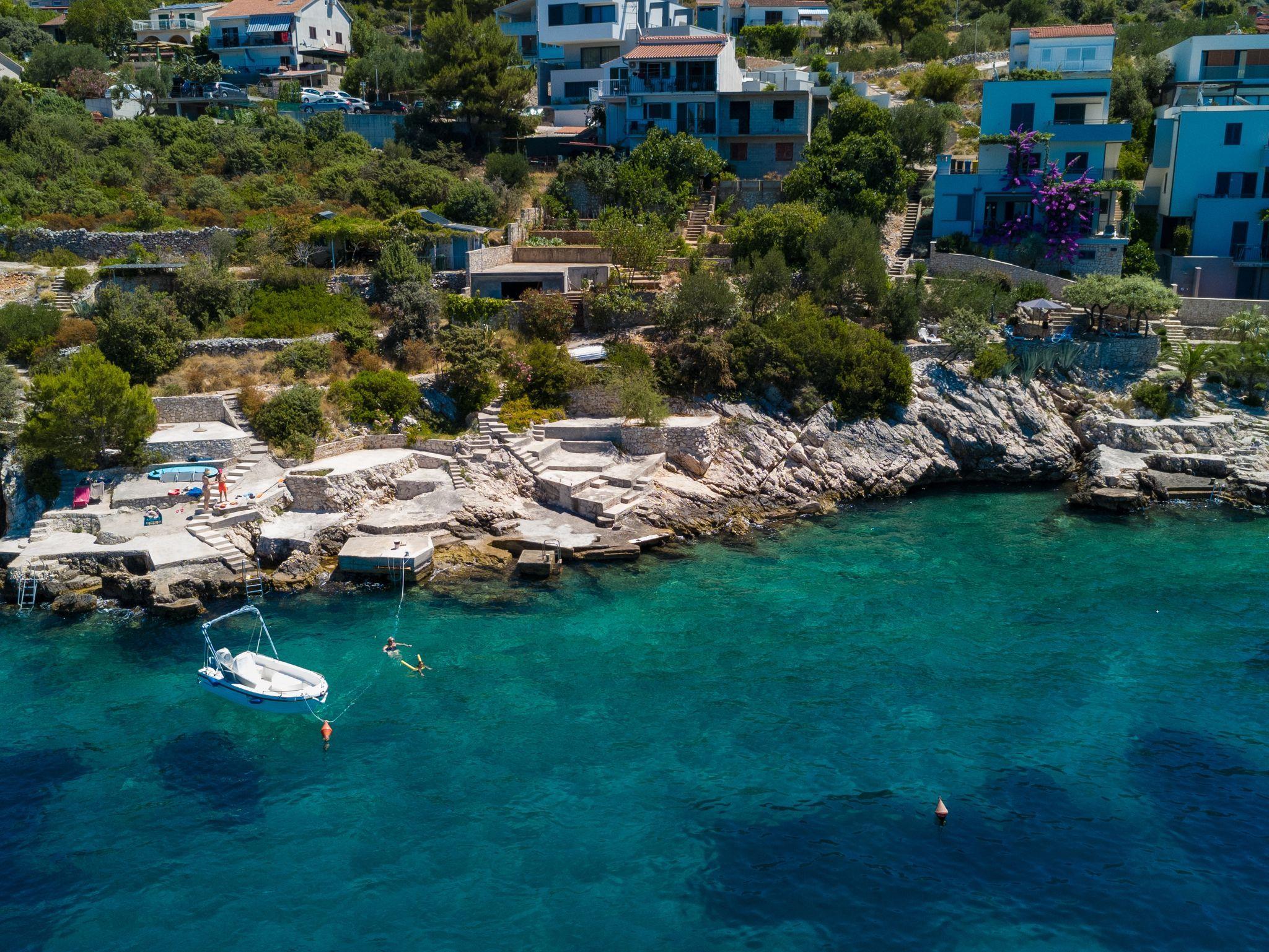 Umgebung des Objekts (Ordentlich), Hof (15m2, Sitzbereich), Parkplatz (Anzahl der Parkplätze: 4, Entfernung vom Objekt: im Hof), Grill: gemeinsam, WiFi Internet, Bootsanlegeplatz (Entfernung vom Objekt: 30 m, Bootsanlegeplatztyp: an der Küste), Bügeleisen, Bügelbrett, Tragbarer Grill, Sonnenschirm, Kinderbett