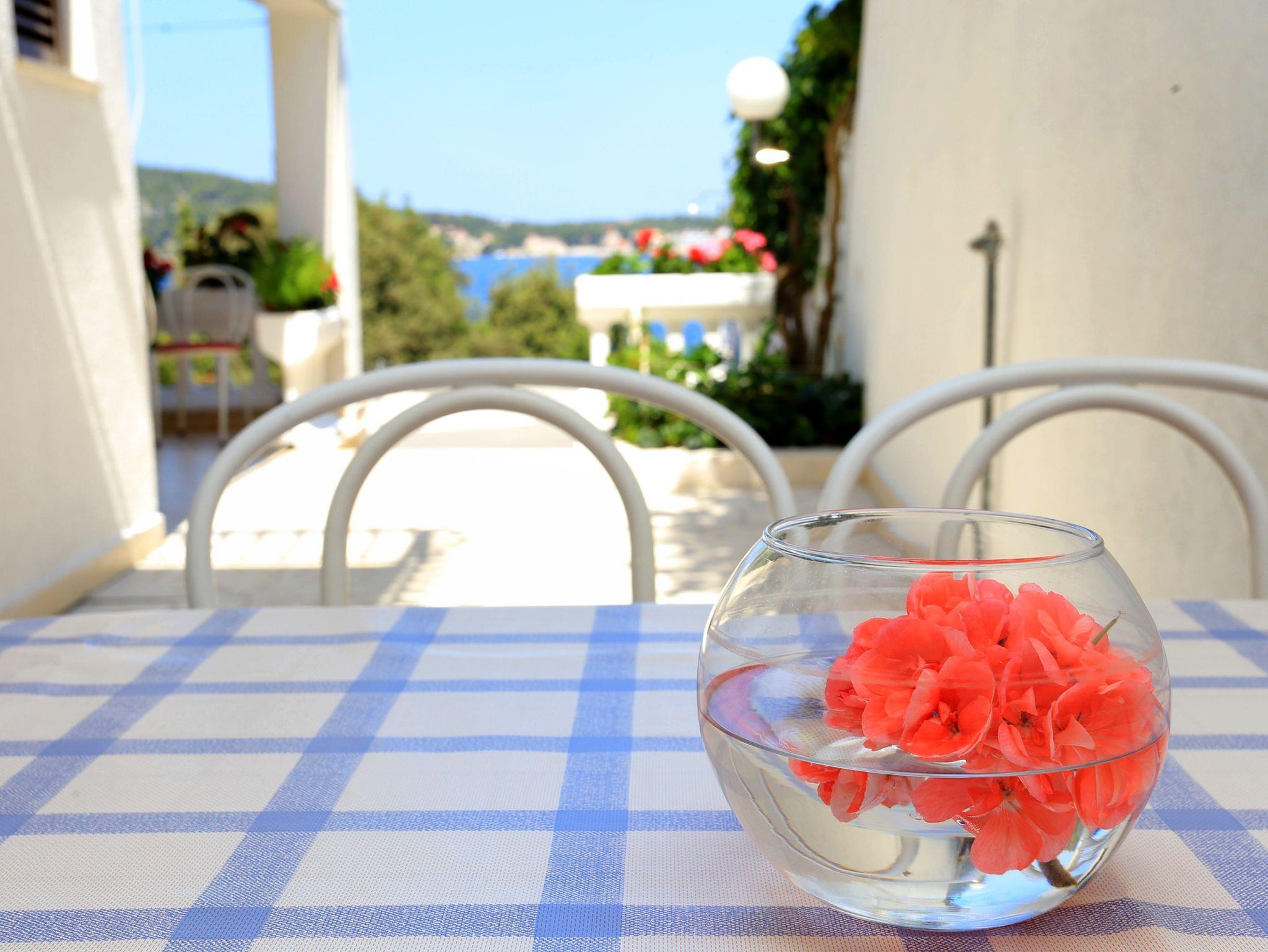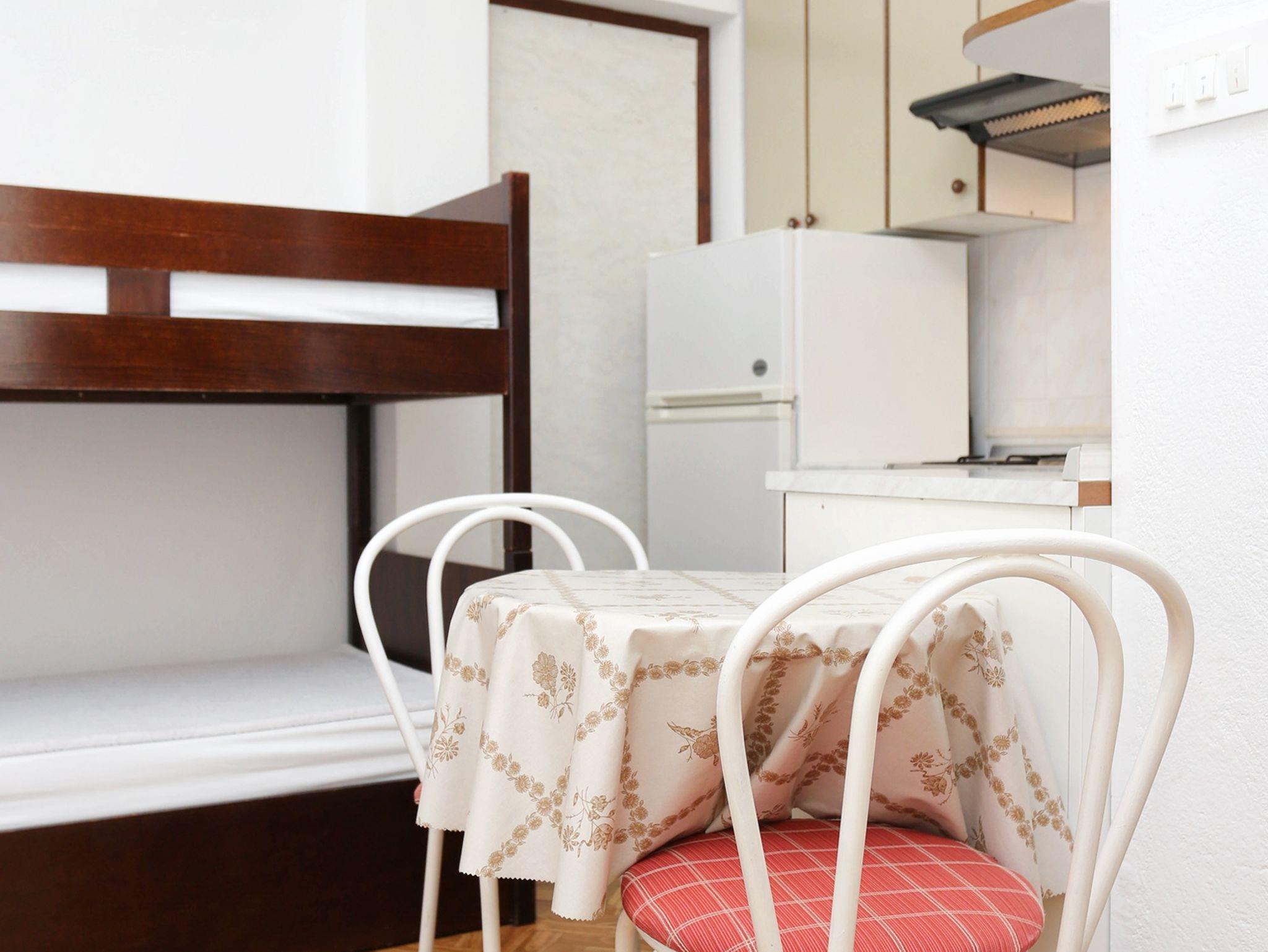 Studio bietet Platz für 4 Gäste. Die Betten sind in Schlafzimmern, die es 1 gibt, innerhalb einer Gesamtfläche von 17m2, angeordnet. Die Gäste haben eine eigene Terrasse zur Verfügung, auf der sie in warmen Sommernächten genießen können. Das Studio-Apartment bietet Meerblick. Es ist erlaubt, Speisen auf dem Gemeinschafts-Grill vorzubereiten. IM PREIS INBEGRIFFEN: Kurtaxe, Endreinigung, Parkplatz, Internet, Bootsanlegeplatz. VERBINDLICHE ZUSÄTZLICHE KOSTEN: Aufzahlung für Kurzaufenthalte (prozentualer Zuschlag pro Nächtigungsanzahl: 30% - 1, 20% - 2, 10% - 3). UNVERBINDLICHE ZUSÄTZLICHE KOSTEN: Klimatisierung (10,00 € pro Nacht), Wäschewaschen (5,00 € Waschen). Die Verfügbarkeit zusätzlicher Dienstleistungen in Ihrem reservierten Termin und die Preise derselben (falls nicht aufgeführt) müssen im Voraus überprüft werden. Zusätzliche Dienstleistungen die in der Zahlungsaufforderung nicht aufgeführt sind werden direkt beim Vermieter bezahlt, angenommen der Gast nutzt auch diese.
