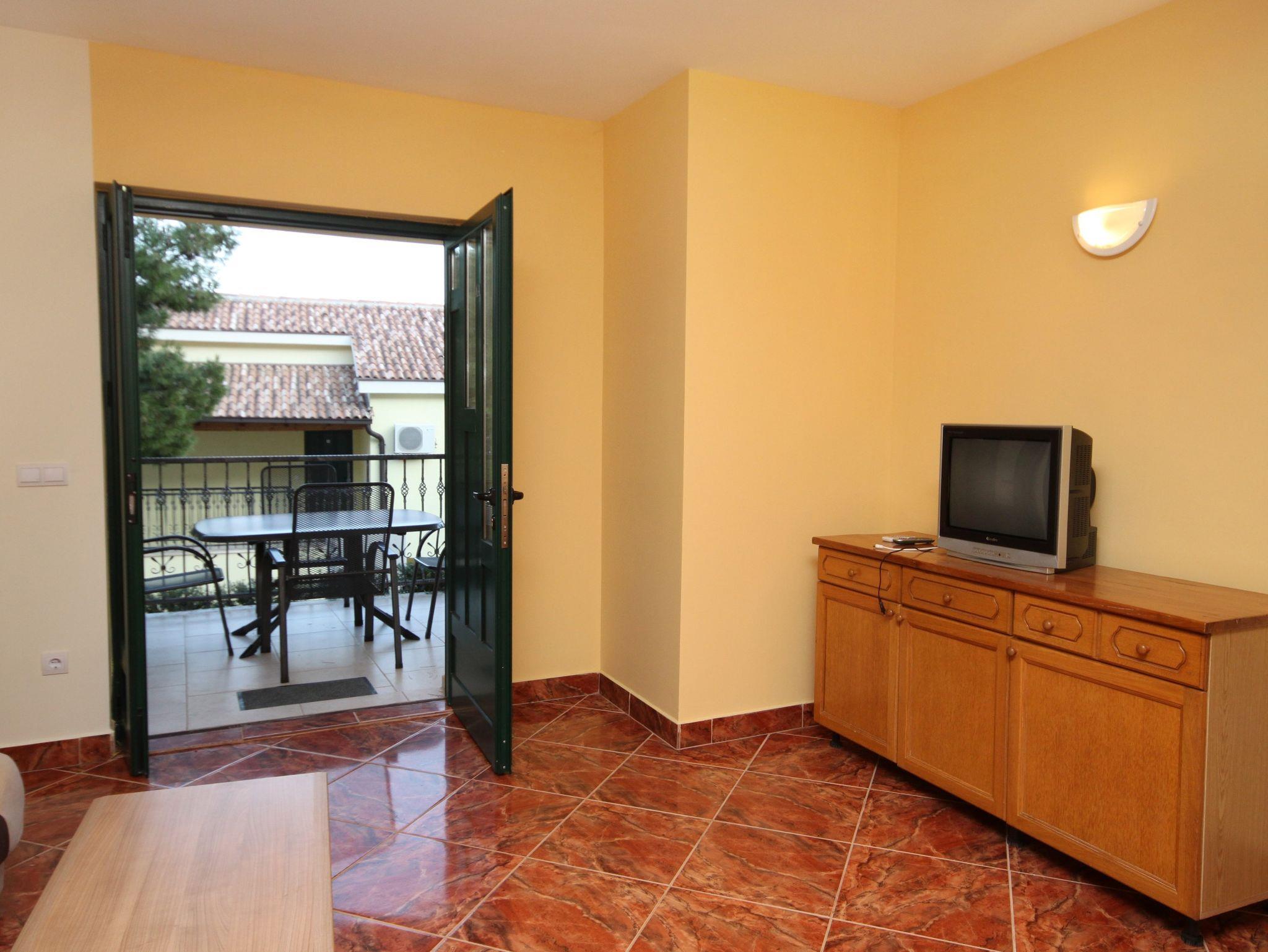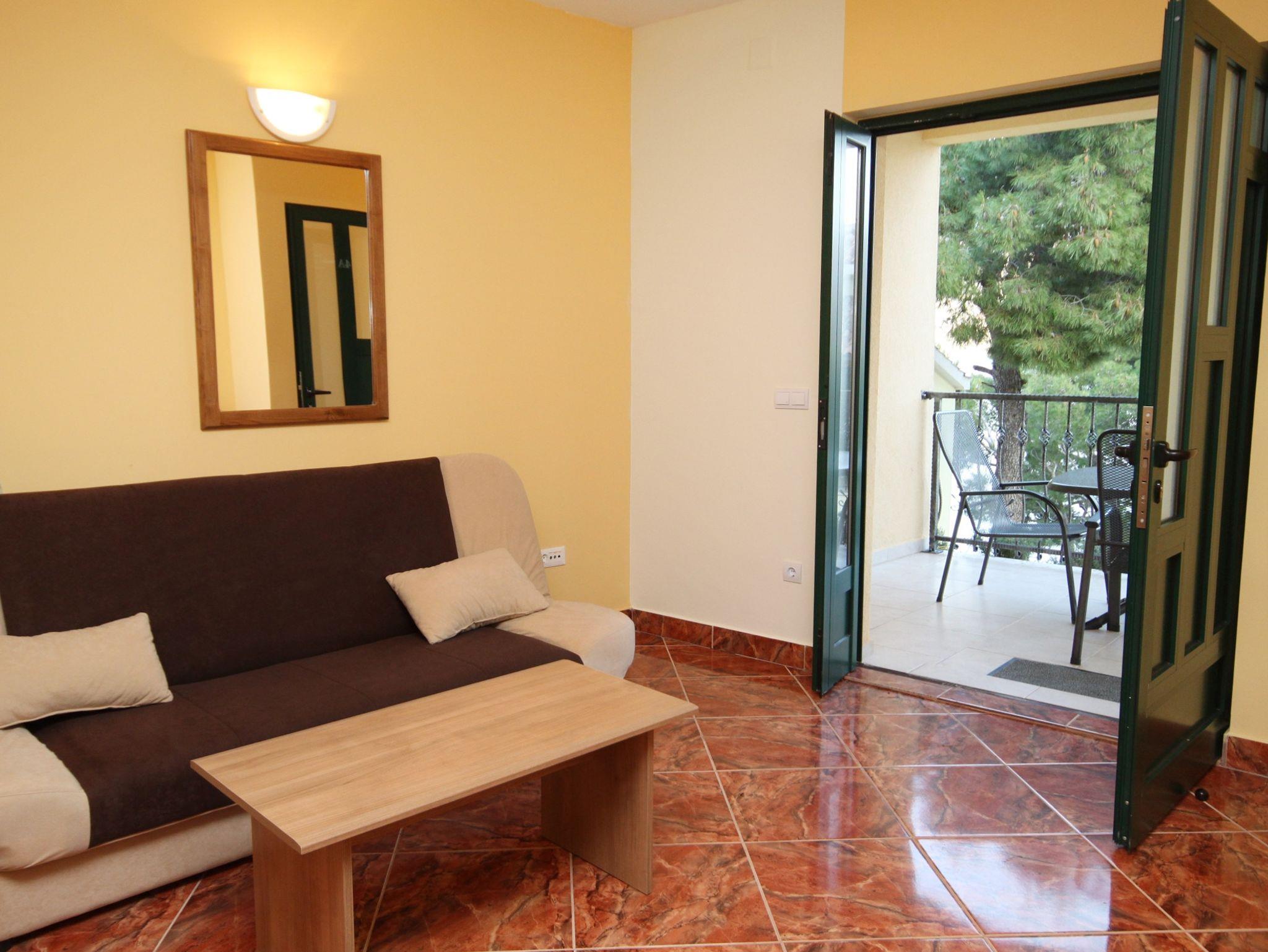 Ferienwohnung bietet Platz für 5 Gäste. Die Betten sind in Schlafzimmern, die es 2 gibt, und in Wohnzimmer, innerhalb einer Gesamtfläche von 48m2, angeordnet. Die Gäste haben eine eigene Terrasse zur Verfügung, auf der sie in warmen Sommernächten genießen können. Das Apartment bietet Meerblick. Es ist erlaubt, Speisen auf dem Gemeinschafts-Grill vorzubereiten. In der Unterkunftseinheit besteht die Möglichkeit des Mitbringens von Haustieren gegen Aufpreis. In der gebuchten Unterkunftseinheit zahlt man am Ort ein Depositum ( der Preis ist an der Internetseite angeführt ). IM PREIS INBEGRIFFEN: Kurtaxe, Endreinigung, Klimatisierung, Parkplatz, Internet, Kinderbett, Föhn. VERBINDLICHE ZUSÄTZLICHE KOSTEN: Kaution (100,00 € Einmalzahlung), Aufzahlung für Kurzaufenthalte (prozentualer Zuschlag pro Nächtigungsanzahl: 30% - 1, 20% - 2, 10% - 3). UNVERBINDLICHE ZUSÄTZLICHE KOSTEN: Wäschewaschen (5,00 € Waschen), Bootsanlegeplatz (25,00 € pro Nacht), Haustiere (20,00 € pro Nacht). Die Verfügbarkeit zusätzlicher Dienstleistungen in Ihrem reservierten Termin und die Preise derselben (falls nicht aufgeführt) müssen im Voraus überprüft werden. Zusätzliche Dienstleistungen die in der Zahlungsaufforderung nicht aufgeführt sind werden direkt beim Vermieter bezahlt, angenommen der Gast nutzt auch diese.