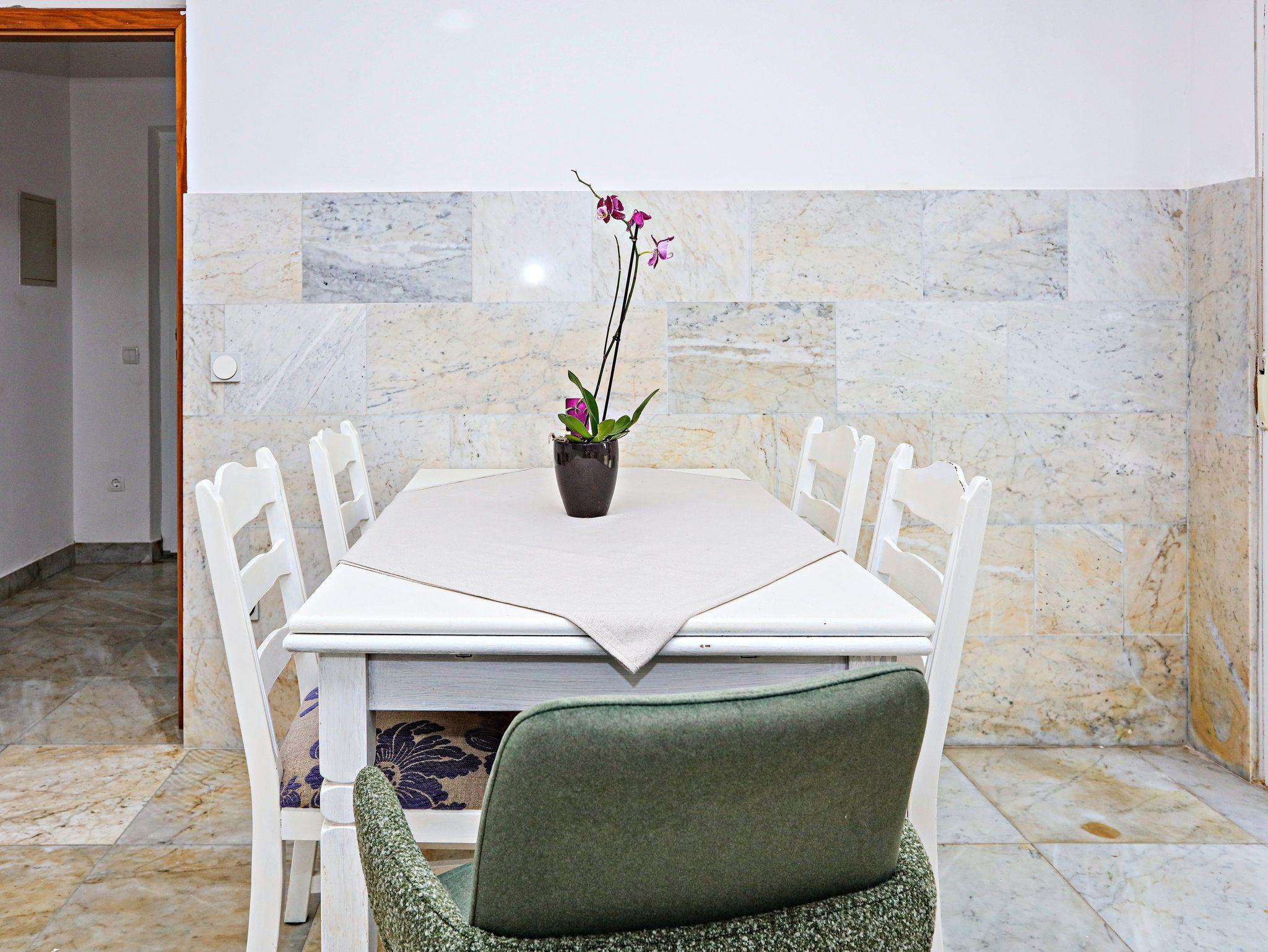 Haus bietet Platz für 10 Gäste. Die Betten sind in Schlafzimmern, die es 5 gibt, innerhalb einer Gesamtfläche von 217m2, angeordnet. Die Gäste haben eine eigene Terrasse zur Verfügung, auf der sie in warmen Sommernächten genießen können. Das Haus bietet Meerblick. Für vollen Genuss und Entspannung gibt es einen privaten Grill für Gäste dieser Unterkunft. IM PREIS INBEGRIFFEN: Kurtaxe, Endreinigung, Klimatisierung, Parkplatz, Internet, Bootsanlegeplatz, Bügelbrett, Föhn, Liegestühle. VERBINDLICHE ZUSÄTZLICHE KOSTEN: Aufzahlung für Kurzaufenthalte (prozentualer Zuschlag pro Nächtigungsanzahl: 30% - 1, 20% - 2, 10% - 3). Die Verfügbarkeit zusätzlicher Dienstleistungen in Ihrem reservierten Termin und die Preise derselben (falls nicht aufgeführt) müssen im Voraus überprüft werden. Zusätzliche Dienstleistungen die in der Zahlungsaufforderung nicht aufgeführt sind werden direkt beim Vermieter bezahlt, angenommen der Gast nutzt auch diese.