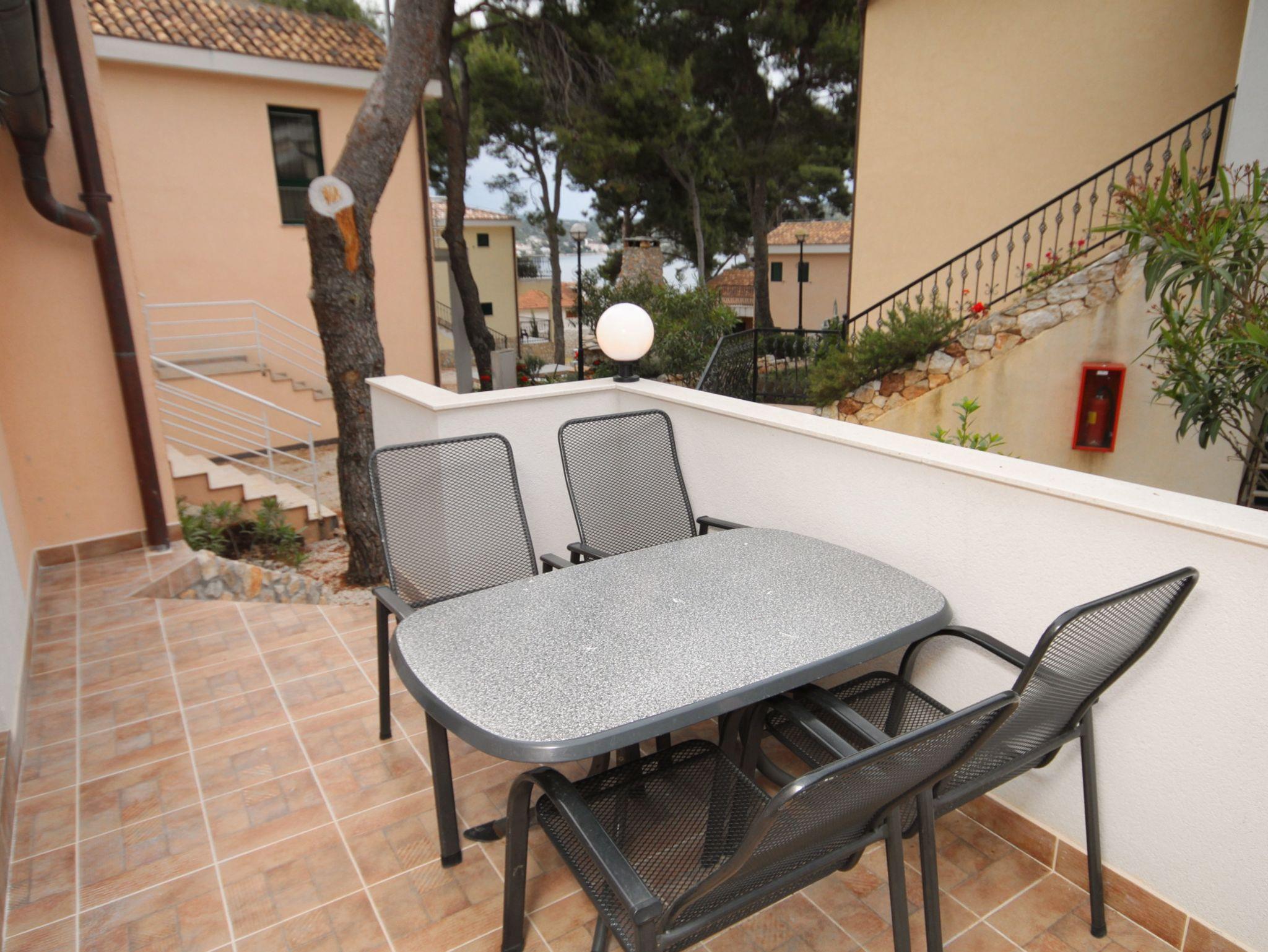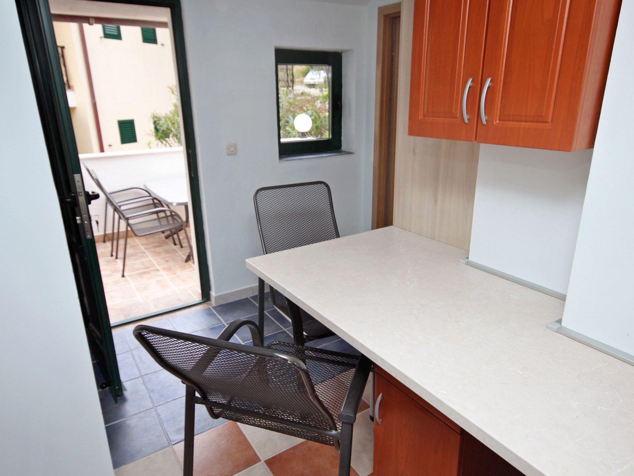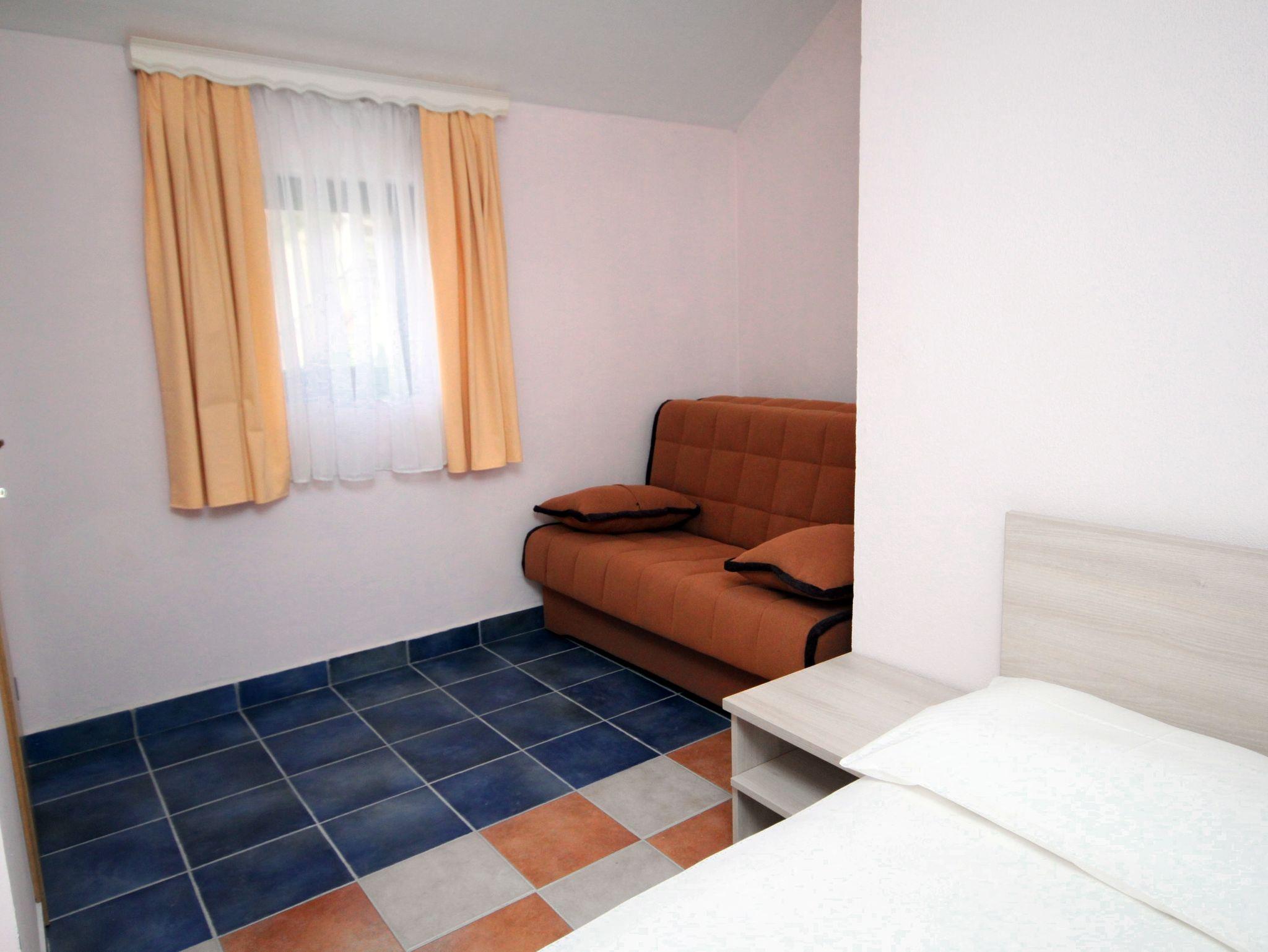 Ferienwohnung bietet Platz für 5 Gäste. Die Betten sind in Schlafzimmern, die es 2 gibt, innerhalb einer Gesamtfläche von 31m2, angeordnet. Die Gäste haben eine eigene Terrasse zur Verfügung, auf der sie in warmen Sommernächten genießen können. Das Apartment bietet Meerblick. Es ist erlaubt, Speisen auf dem Gemeinschafts-Grill vorzubereiten. In der Unterkunftseinheit besteht die Möglichkeit des Mitbringens von Haustieren gegen Aufpreis. In der gebuchten Unterkunftseinheit zahlt man am Ort ein Depositum ( der Preis ist an der Internetseite angeführt ). IM PREIS INBEGRIFFEN: Kurtaxe, Endreinigung, Parkplatz, Internet, Kinderbett, Föhn. VERBINDLICHE ZUSÄTZLICHE KOSTEN: Kaution (100,00 € Einmalzahlung), Aufzahlung für Kurzaufenthalte (prozentualer Zuschlag pro Nächtigungsanzahl: 30% - 1, 20% - 2, 10% - 3). UNVERBINDLICHE ZUSÄTZLICHE KOSTEN: Wäschewaschen (5,00 € Waschen), Bootsanlegeplatz (25,00 € pro Nacht), Haustiere (20,00 € pro Nacht). Die Verfügbarkeit zusätzlicher Dienstleistungen in Ihrem reservierten Termin und die Preise derselben (falls nicht aufgeführt) müssen im Voraus überprüft werden. Zusätzliche Dienstleistungen die in der Zahlungsaufforderung nicht aufgeführt sind werden direkt beim Vermieter bezahlt, angenommen der Gast nutzt auch diese.