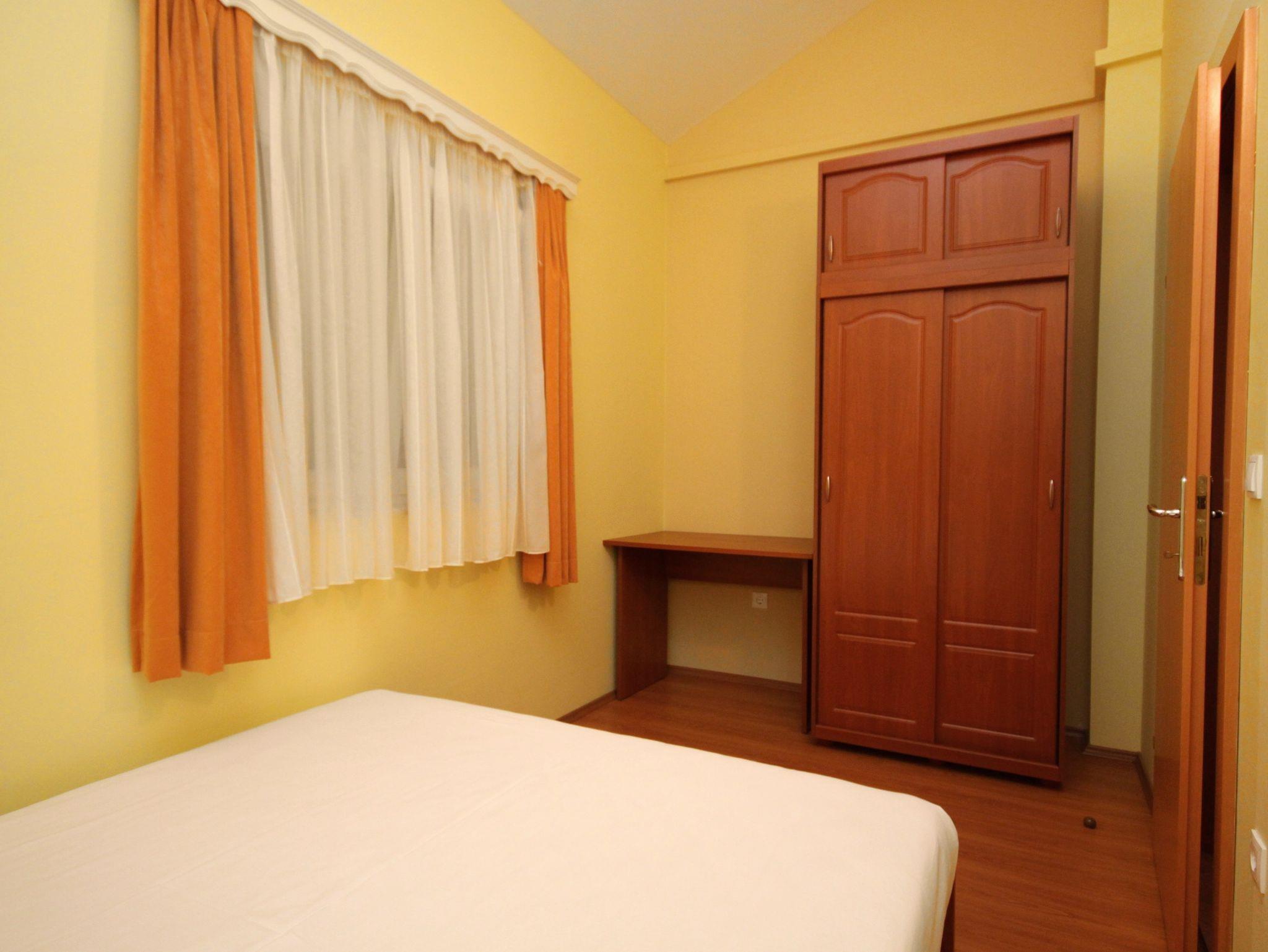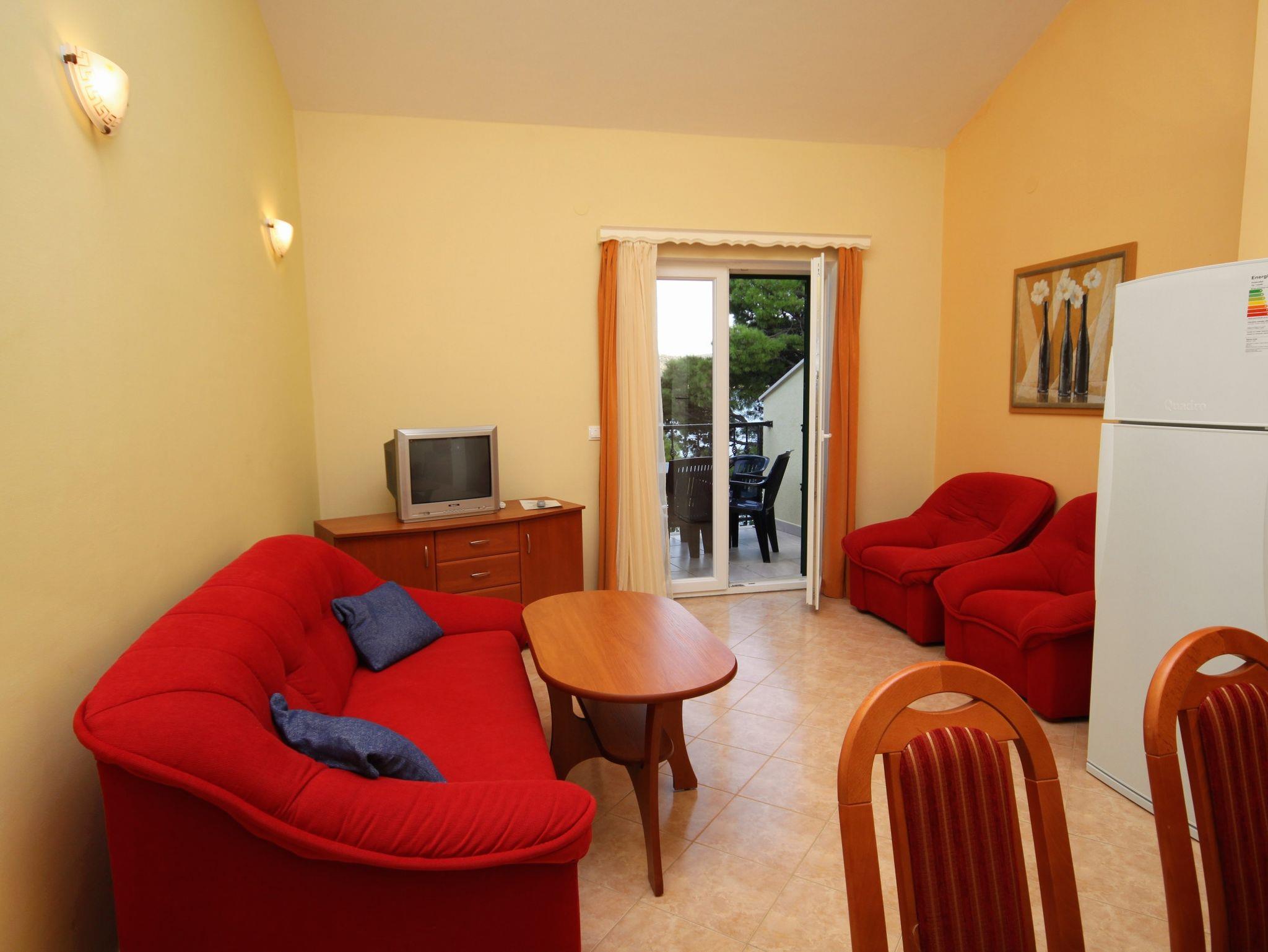 Ferienwohnung bietet Platz für 5 Gäste. Die Betten sind in Schlafzimmern, die es 2 gibt, und in Wohnzimmer, innerhalb einer Gesamtfläche von 49m2, angeordnet. Die Gäste haben eine eigene Terrasse zur Verfügung, auf der sie in warmen Sommernächten genießen können. Das Apartment bietet Meerblick. Es ist erlaubt, Speisen auf dem Gemeinschafts-Grill vorzubereiten. In der Unterkunftseinheit besteht die Möglichkeit des Mitbringens von Haustieren gegen Aufpreis. In der gebuchten Unterkunftseinheit zahlt man am Ort ein Depositum ( der Preis ist an der Internetseite angeführt ). IM PREIS INBEGRIFFEN: Kurtaxe, Endreinigung, Klimatisierung, Parkplatz, Internet, Kinderbett, Föhn. VERBINDLICHE ZUSÄTZLICHE KOSTEN: Kaution (100,00 € Einmalzahlung), Aufzahlung für Kurzaufenthalte (prozentualer Zuschlag pro Nächtigungsanzahl: 30% - 1, 20% - 2, 10% - 3). UNVERBINDLICHE ZUSÄTZLICHE KOSTEN: Wäschewaschen (5,00 € Waschen), Bootsanlegeplatz (25,00 € pro Nacht), Haustiere (20,00 € pro Nacht). Die Verfügbarkeit zusätzlicher Dienstleistungen in Ihrem reservierten Termin und die Preise derselben (falls nicht aufgeführt) müssen im Voraus überprüft werden. Zusätzliche Dienstleistungen die in der Zahlungsaufforderung nicht aufgeführt sind werden direkt beim Vermieter bezahlt, angenommen der Gast nutzt auch diese.
