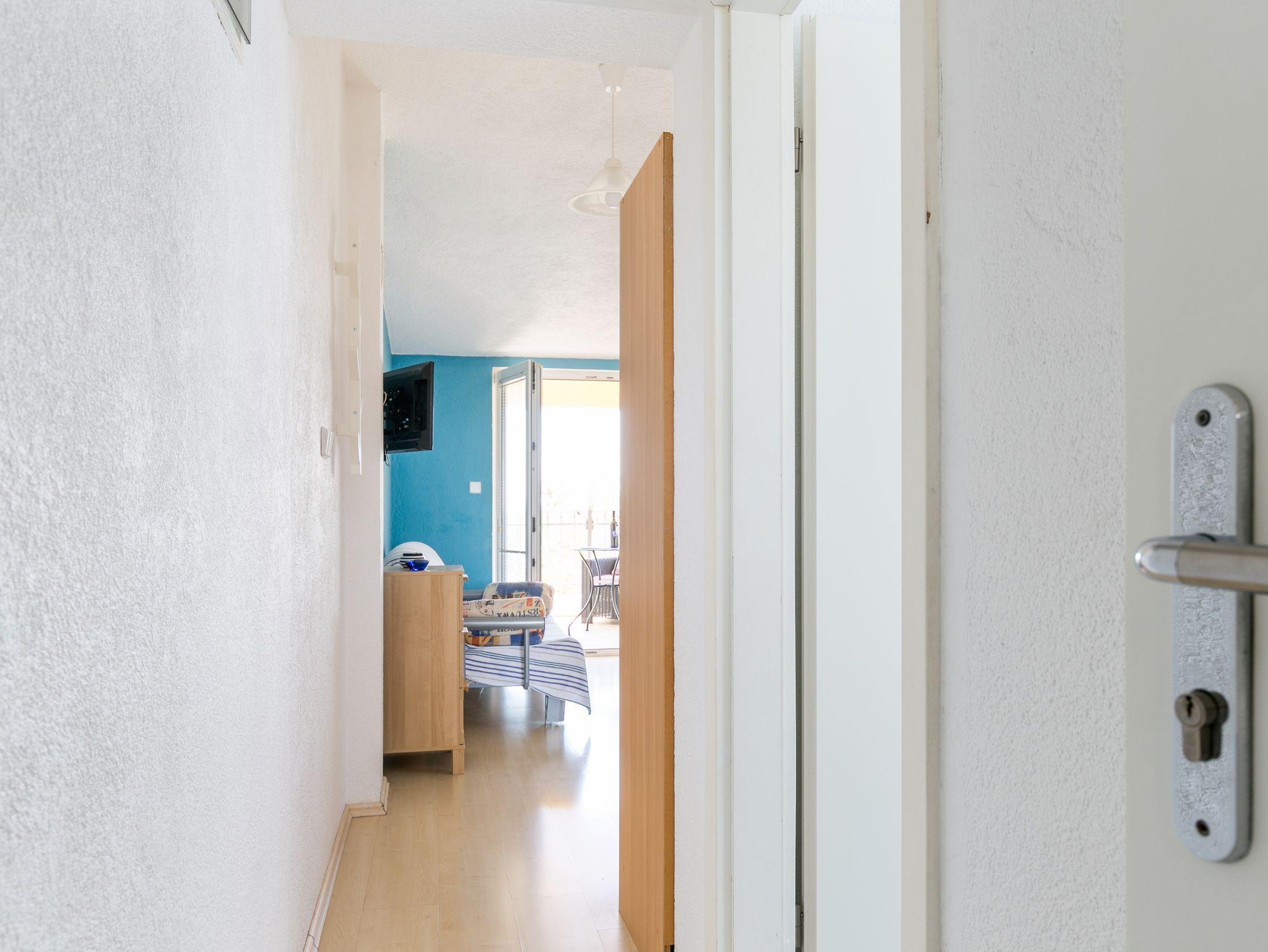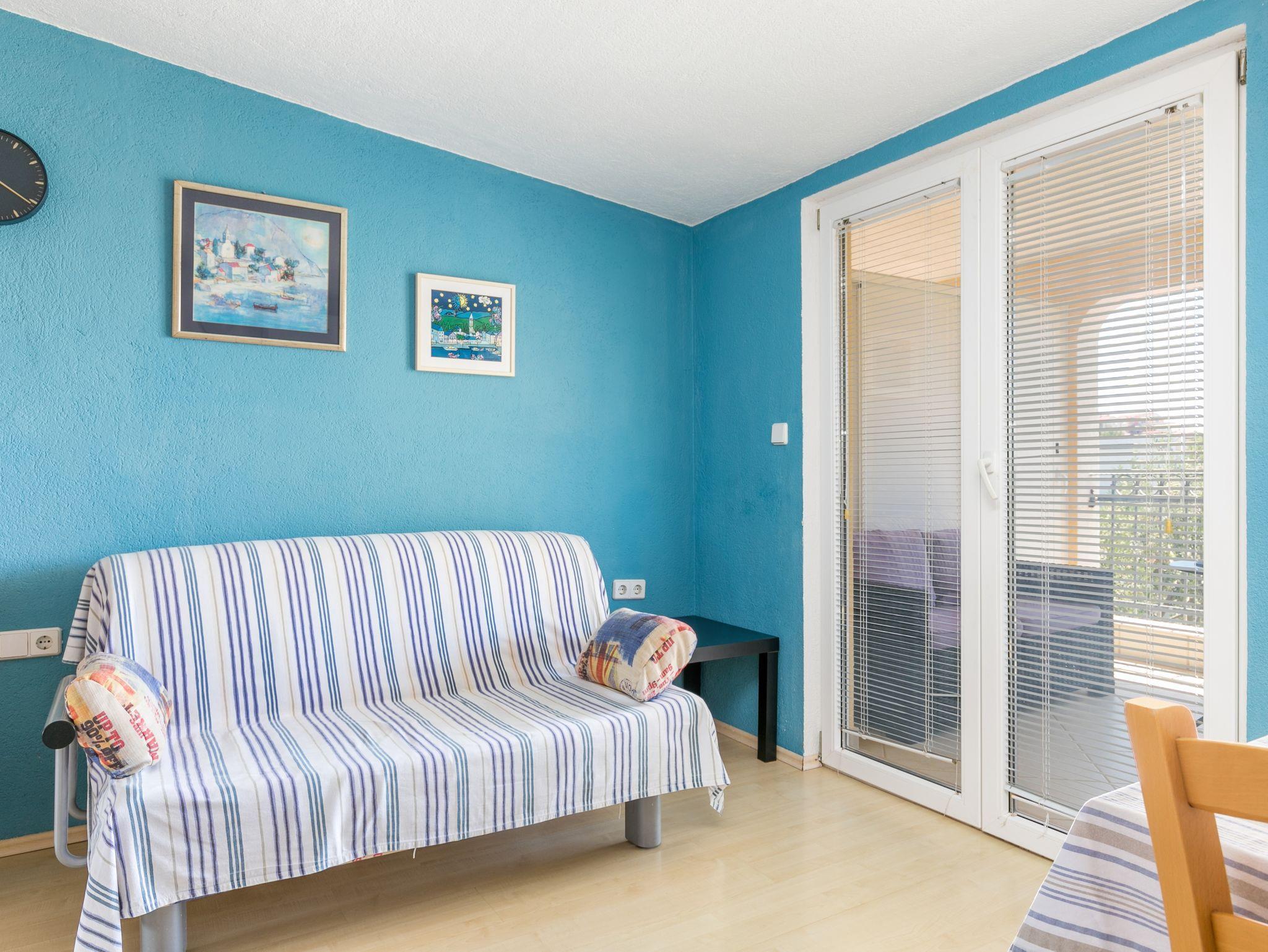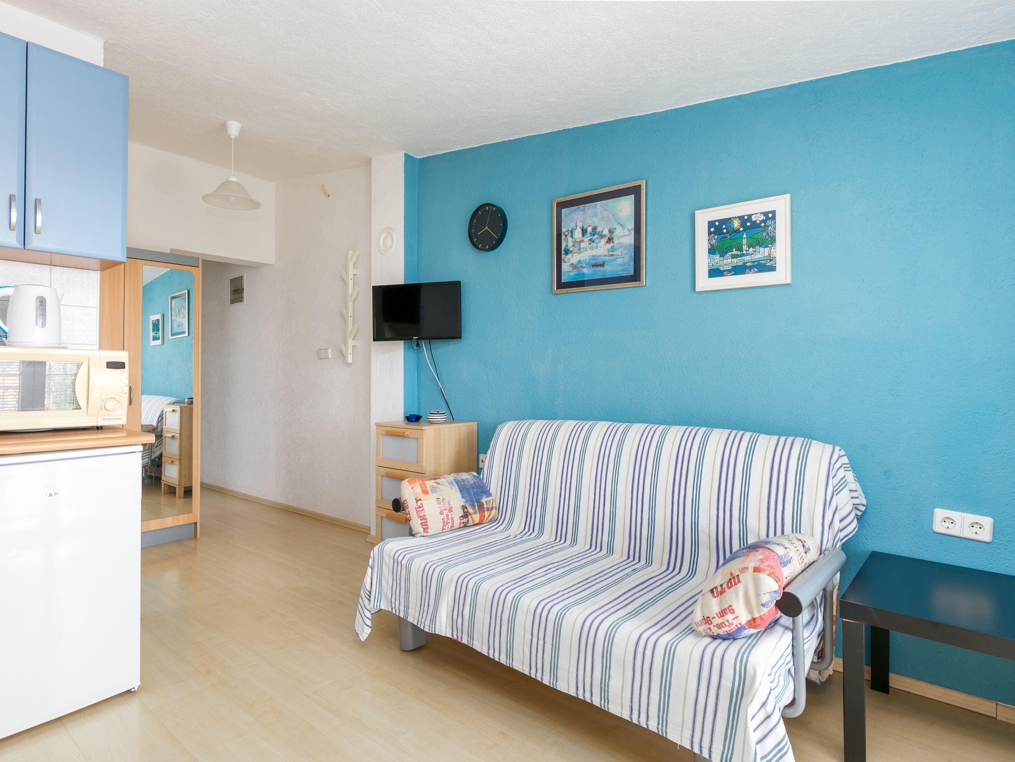 Ferienwohnung bietet Platz für 2 Gäste. Die Betten sind in Schlafzimmern, die es 1 gibt, innerhalb einer Gesamtfläche von 31m2, angeordnet. Die Gäste haben eine eigene Terrasse zur Verfügung, auf der sie in warmen Sommernächten genießen können. Das Apartment bietet Meerblick. Es ist erlaubt, Speisen auf dem Gemeinschafts-Grill vorzubereiten. IM PREIS INBEGRIFFEN: Kurtaxe, Endreinigung, Klimatisierung, Parkplatz, Internet, Kinderbett, Bügeleisen, Bügelbrett, Föhn, 2 Kinderbettchen (im Preis enthalten). VERBINDLICHE ZUSÄTZLICHE KOSTEN: Aufzahlung für Kurzaufenthalte (prozentualer Zuschlag pro Nächtigungsanzahl: 30% - 1, 20% - 2, 10% - 3). Die Verfügbarkeit zusätzlicher Dienstleistungen in Ihrem reservierten Termin und die Preise derselben (falls nicht aufgeführt) müssen im Voraus überprüft werden. Zusätzliche Dienstleistungen die in der Zahlungsaufforderung nicht aufgeführt sind werden direkt beim Vermieter bezahlt, angenommen der Gast nutzt auch diese.