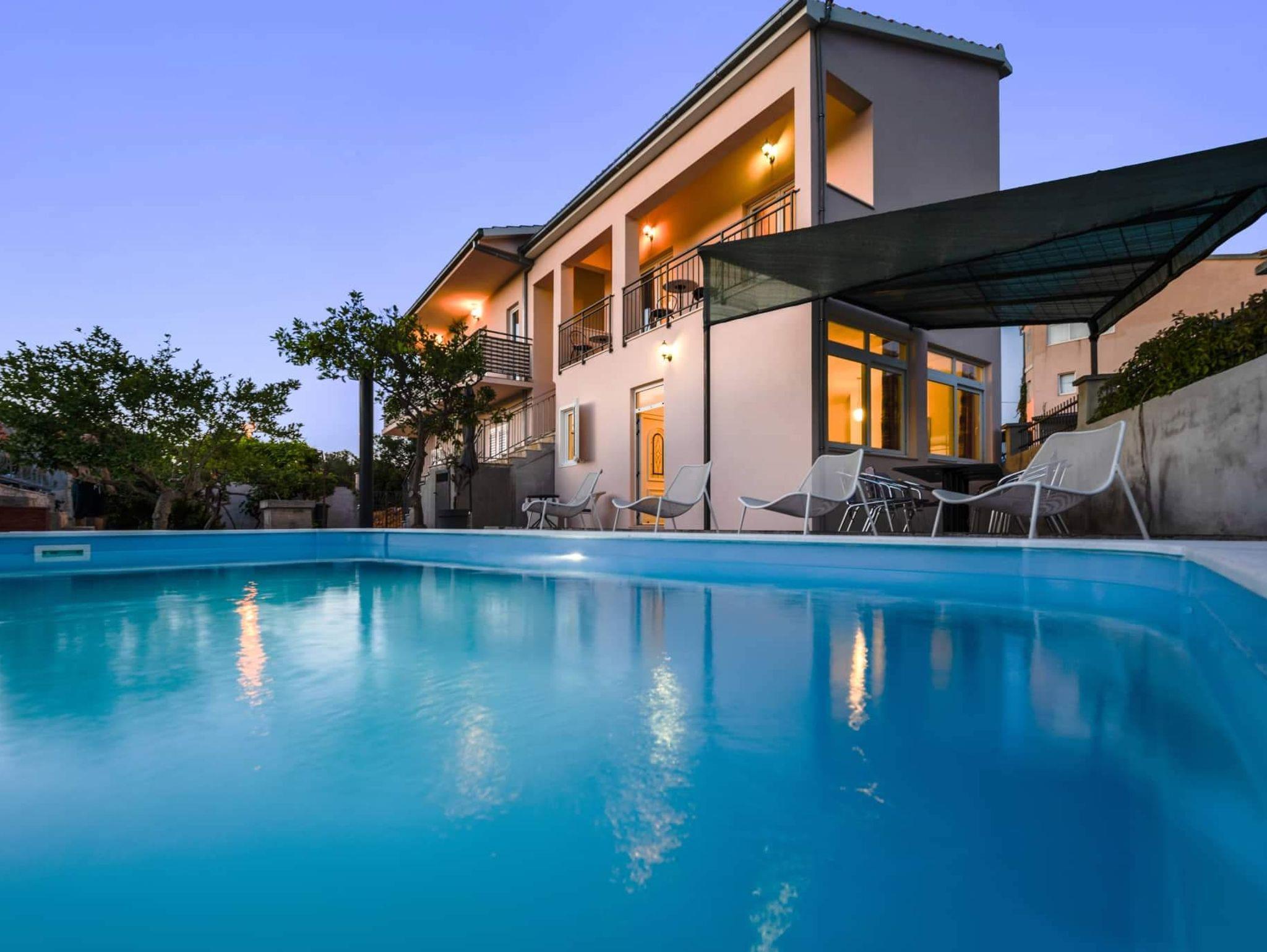 Haus bietet Platz für 8 Gäste. Die Betten sind in Schlafzimmern, die es 4 gibt, innerhalb einer Gesamtfläche von 100m2, angeordnet. Die Gäste haben einen eigenen Balkon zur Verfügung, auf der sie in warmen Sommernächten genießen können. Das Haus bietet Meerblick. Für vollen Genuss und Entspannung gibt es einen privaten Grill für Gäste dieser Unterkunft. Während ihres Aufenthalts können sich Gäste im privaten Schwimmbad entspannen. Räume der gebuchten Unterkunftseinheit werden nicht in eine Ganze verbunden. IM PREIS INBEGRIFFEN: Kurtaxe, Endreinigung, Klimatisierung, Zentralheizung, Pool, Parkplatz, Internet, Bügeleisen, Bügelbrett, Föhn. Die Verfügbarkeit zusätzlicher Dienstleistungen in Ihrem reservierten Termin und die Preise derselben (falls nicht aufgeführt) müssen im Voraus überprüft werden. Zusätzliche Dienstleistungen die in der Zahlungsaufforderung nicht aufgeführt sind werden direkt beim Vermieter bezahlt, angenommen der Gast nutzt auch diese. Ermäßigung auf den Grundpreis: Gratistag 14=13 (bei einem Aufenthalt von 14 Tagen oder mehr erhalten Sie einen Gratistag für den Aufenthalt bis 31.12.26).