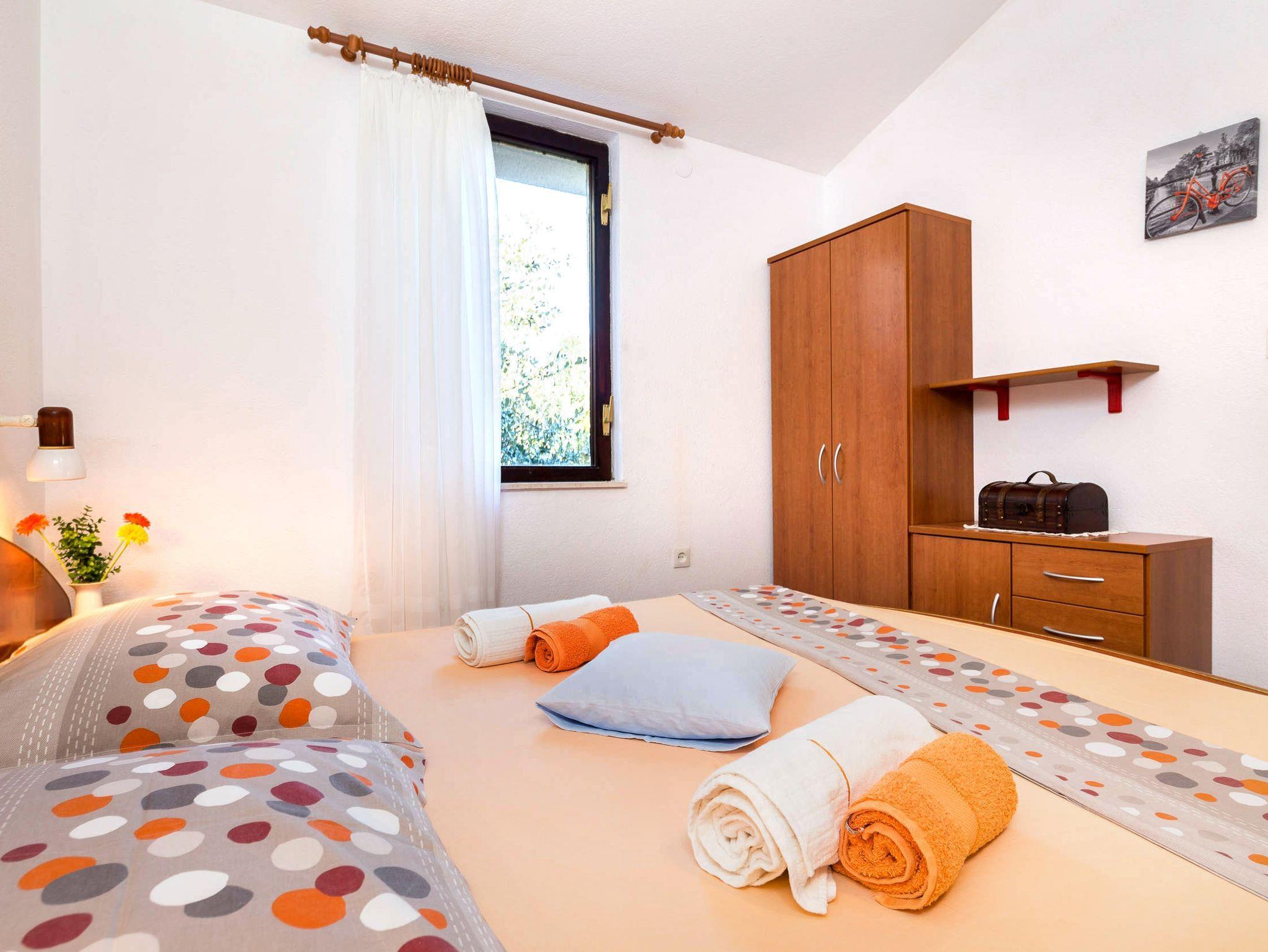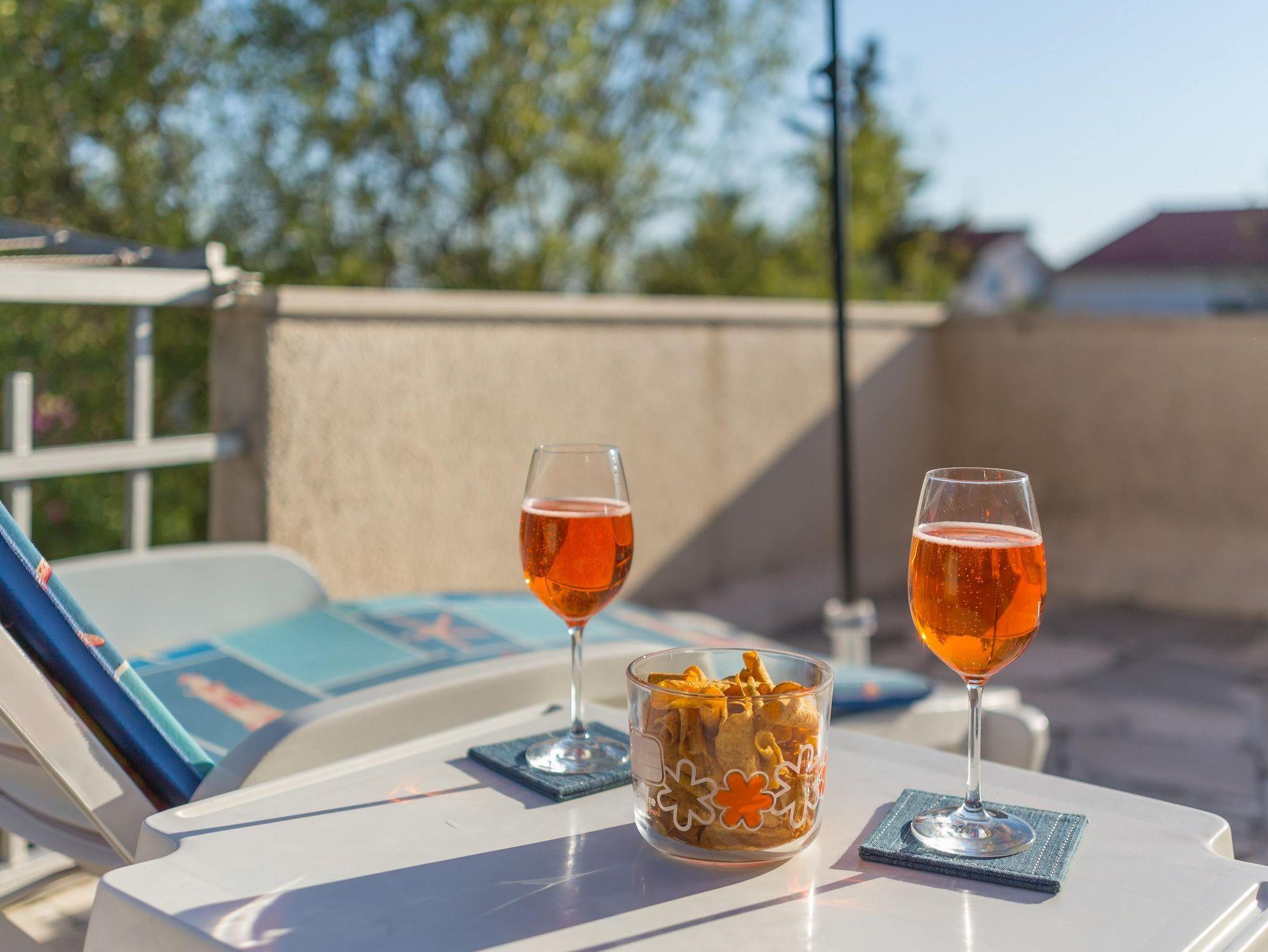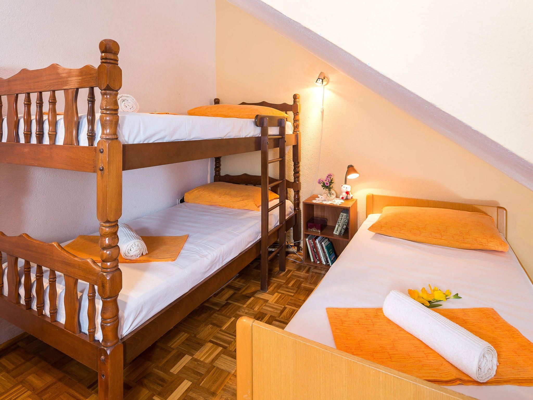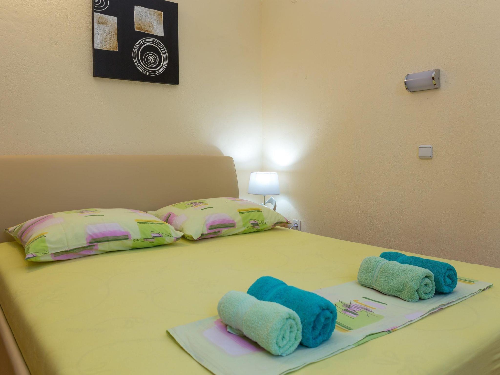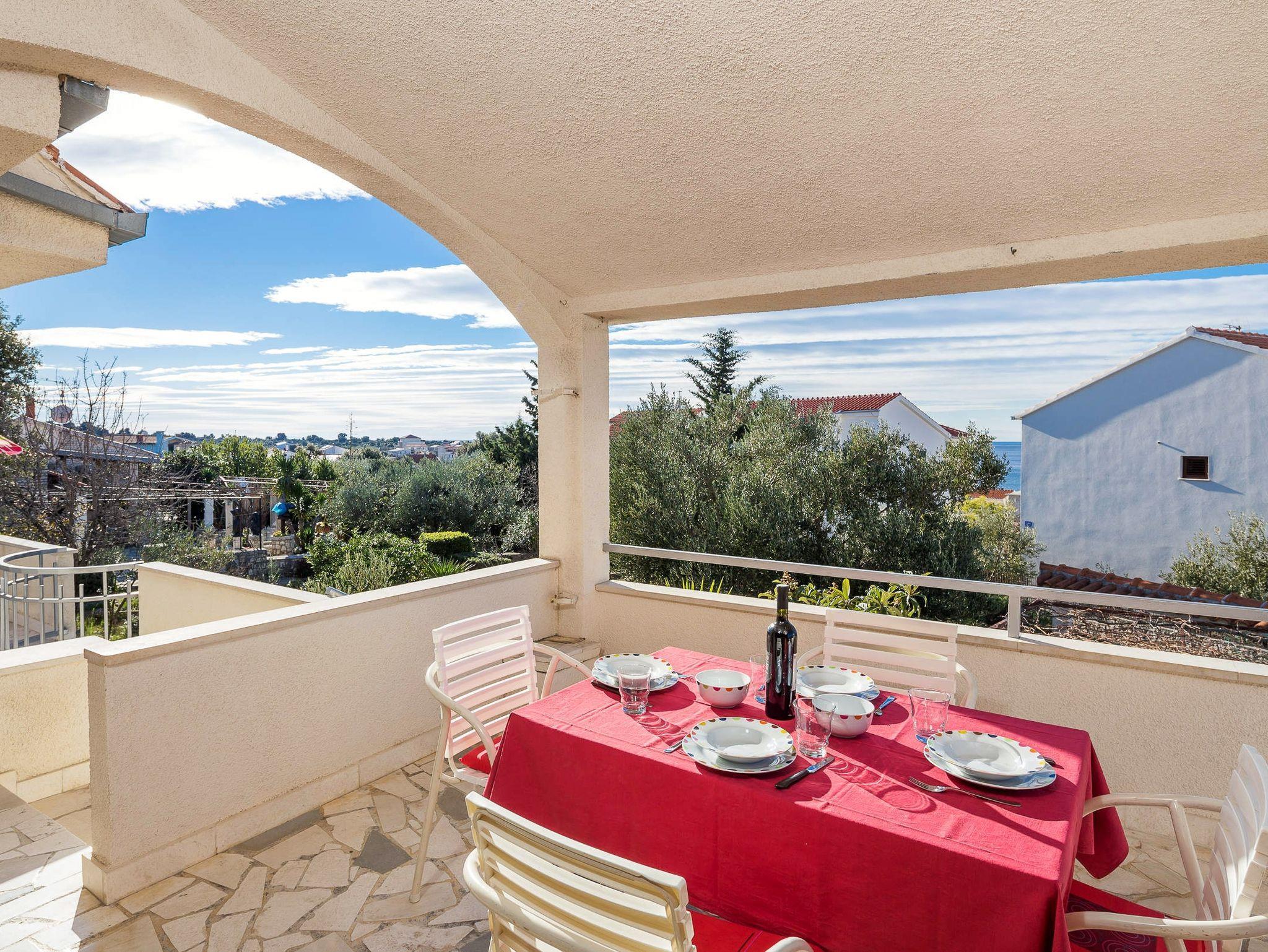 Haus bietet Platz für 8 Gäste. Die Betten sind in Schlafzimmern, die es 3 gibt, und in Wohnzimmer, innerhalb einer Gesamtfläche von 70m2, angeordnet. Die Gäste haben eine eigene Terrasse zur Verfügung, auf der sie in warmen Sommernächten genießen können. Das Haus bietet Meerblick. Für vollen Genuss und Entspannung gibt es einen privaten Grill für Gäste dieser Unterkunft. IM PREIS INBEGRIFFEN: Kurtaxe, Endreinigung, Klimatisierung, Parkplatz, Internet, Kinderbett, Bügeleisen, Bügelbrett, Föhn, tragbarer Grill, Sonnenschirm. Die Verfügbarkeit zusätzlicher Dienstleistungen in Ihrem reservierten Termin und die Preise derselben (falls nicht aufgeführt) müssen im Voraus überprüft werden. Zusätzliche Dienstleistungen die in der Zahlungsaufforderung nicht aufgeführt sind werden direkt beim Vermieter bezahlt, angenommen der Gast nutzt auch diese. Ermäßigung auf den Grundpreis: Gratistag 21=19 (bei einem Aufenthalt von 21 Tagen oder mehr erhalten Sie 2 Gratistage für den Aufenthalt bis 31.12.26).