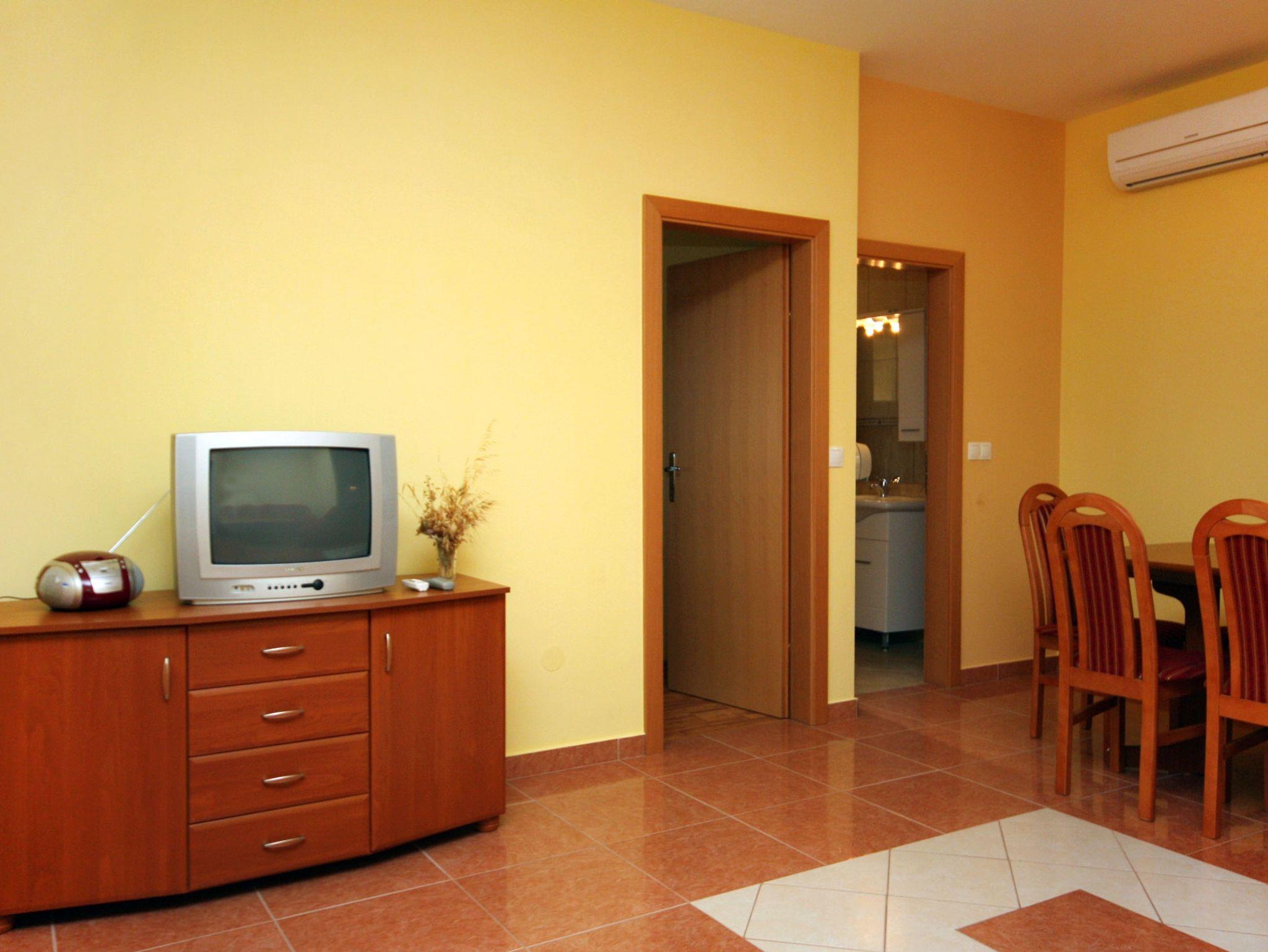 Ferienwohnung bietet Platz für 5 Gäste. Die Betten sind in Schlafzimmern, die es 2 gibt, und in Wohnzimmer, innerhalb einer Gesamtfläche von 55m2, angeordnet. Die Gäste haben eine eigene Terrasse zur Verfügung, auf der sie in warmen Sommernächten genießen können. Das Apartment bietet Meerblick. Es ist erlaubt, Speisen auf dem Gemeinschafts-Grill vorzubereiten. In der Unterkunftseinheit besteht die Möglichkeit des Mitbringens von Haustieren gegen Aufpreis. In der gebuchten Unterkunftseinheit zahlt man am Ort ein Depositum ( der Preis ist an der Internetseite angeführt ). IM PREIS INBEGRIFFEN: Kurtaxe, Endreinigung, Klimatisierung, Parkplatz, Internet, Kinderbett, Föhn. VERBINDLICHE ZUSÄTZLICHE KOSTEN: Kaution (100,00 € Einmalzahlung), Aufzahlung für Kurzaufenthalte (prozentualer Zuschlag pro Nächtigungsanzahl: 30% - 1, 20% - 2, 10% - 3). UNVERBINDLICHE ZUSÄTZLICHE KOSTEN: Wäschewaschen (5,00 € Waschen), Bootsanlegeplatz (25,00 € pro Nacht), Haustiere (20,00 € pro Nacht). Die Verfügbarkeit zusätzlicher Dienstleistungen in Ihrem reservierten Termin und die Preise derselben (falls nicht aufgeführt) müssen im Voraus überprüft werden. Zusätzliche Dienstleistungen die in der Zahlungsaufforderung nicht aufgeführt sind werden direkt beim Vermieter bezahlt, angenommen der Gast nutzt auch diese.