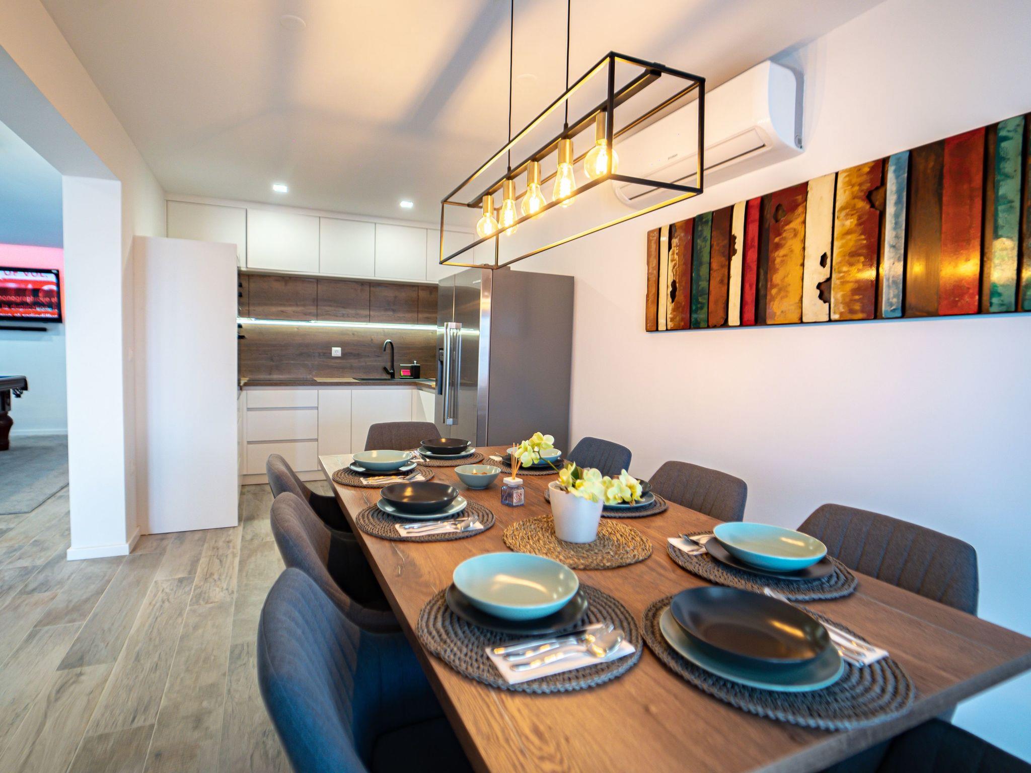 The fully fenced yard is ideal for everyone running and children's play since it ensures complete safety and peace of mind during your holiday. We all know how important it is to have a heated pool, and this luxury villa has one. By the pool, there are also comfy sun loungers. This villa is appropriate for pets if you are a pet owner.