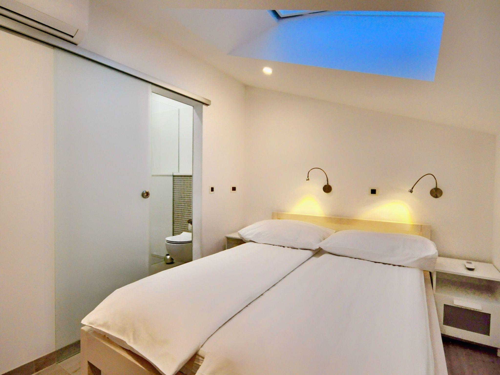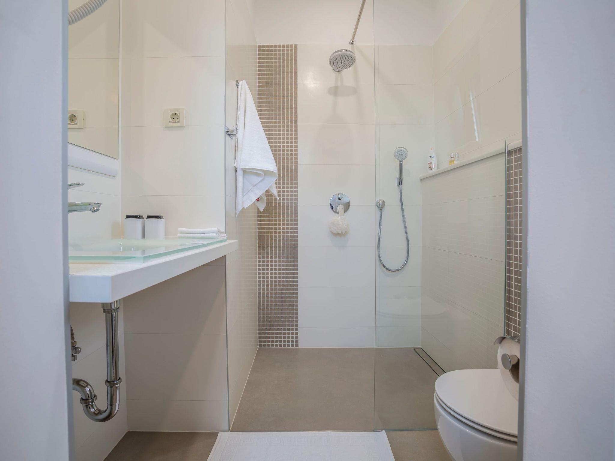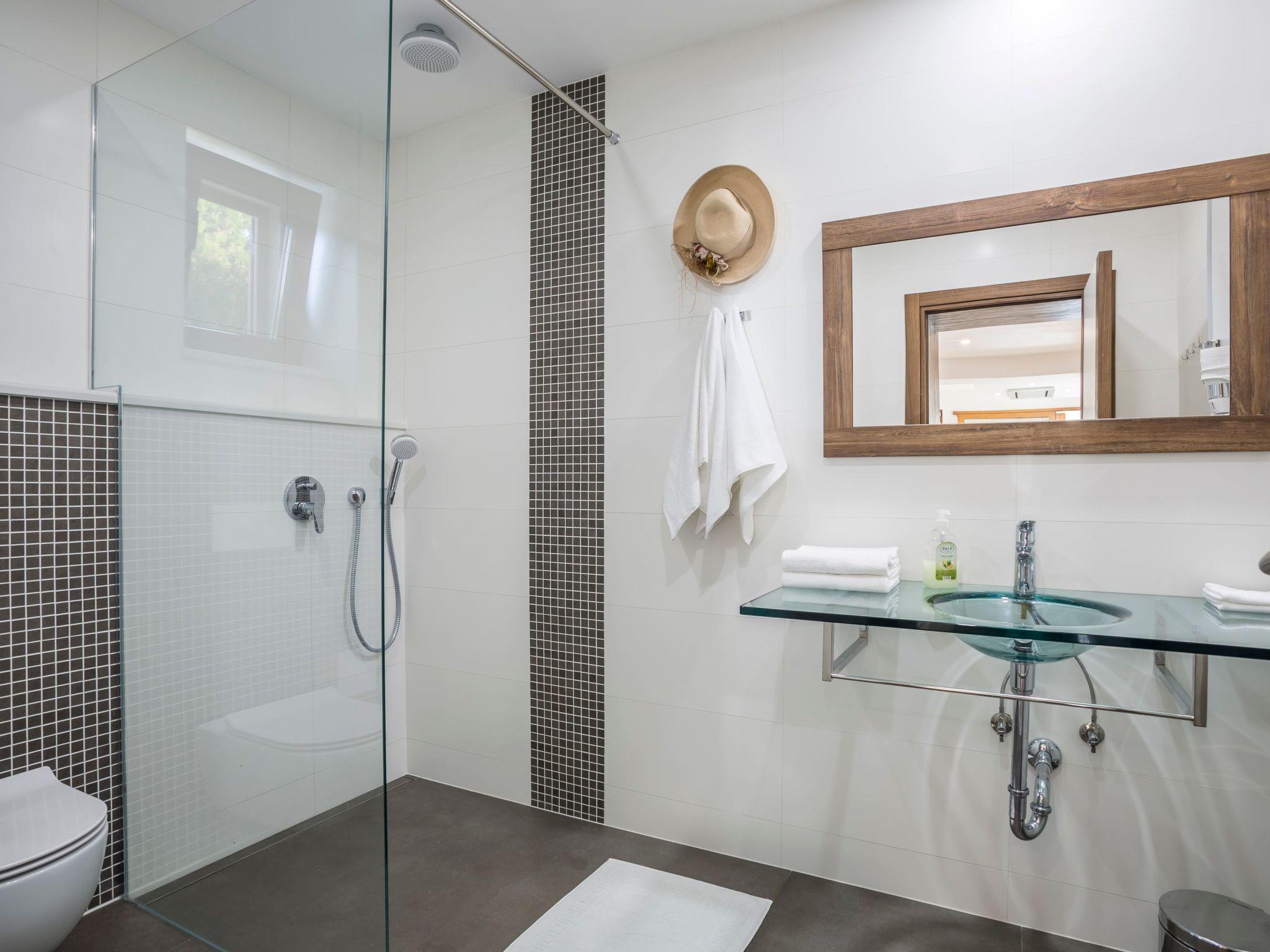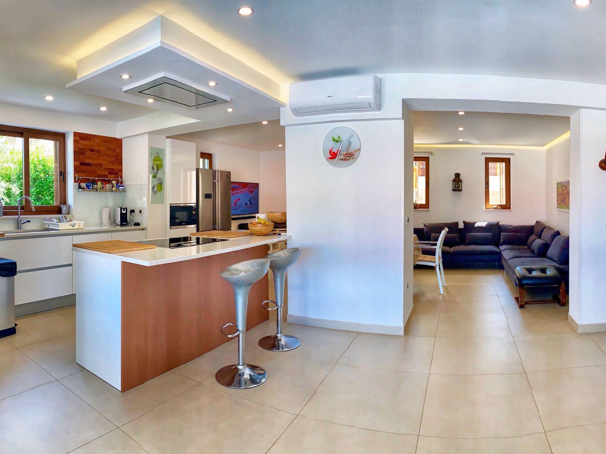 The 255m² two-storey house was fully renovated in 2016 and is suitable for ten people. It has five bedrooms, five shower rooms a main kitchen with a living room and another little kitchen unit and a living room in the attic. The 72m² ground floor has a large living room with a cooking island and a dining space. The terrace is in front of it. The first floor comprises two comfortable bedrooms, each with its own 7m² bathroom. The first floor is rounded off by a little living room with a comfortable double sofa bed (width 140cm with memory foam mattress), a TV area, a triple wardrobe and a 35m² terrace. The second floor has a big room , two bedrooms with separate bathrooms and a terrace as its own area. Four bedrooms are each furnished with a double bed, the fifth with a two single bed. The bathrooms are very modern and light. Wireless Internet access and air conditioning are provided.