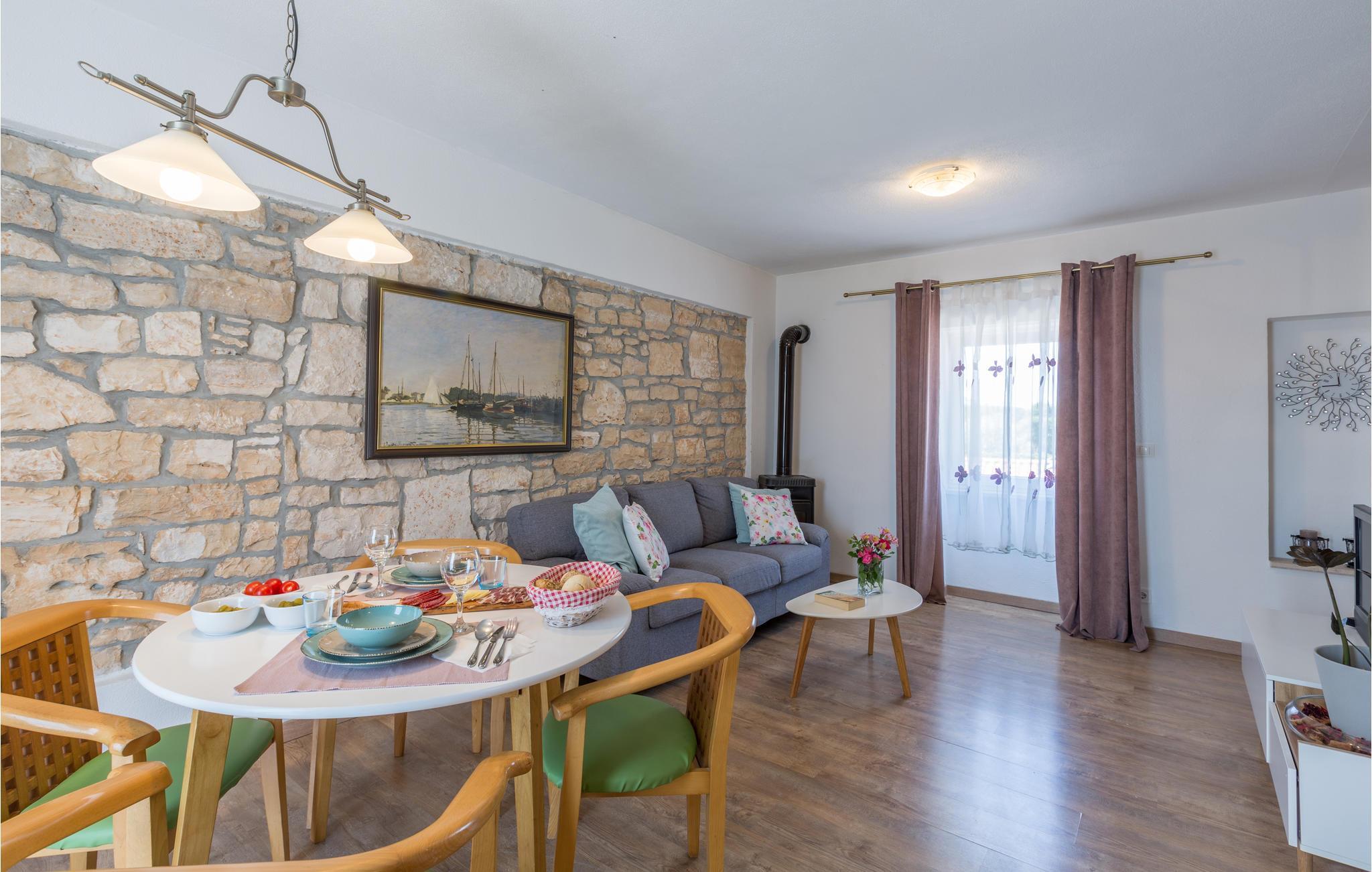 Føl jer rigtig godt tilpas i det attraktive hus, som tilbyder de perfekte rammer for en afslappende pause med sit hyggelige interiør. Her møder synlige murværker og dekorative trælofter moderne møbler, en suveræn stilfuld blanding, der gør det nemt for jer at slappe af. Efter en dejlig feriedag, som I måske har brugt på en udflugt, inviterer den komfortable sofa til at sidde behageligt sammen i lang tid, gennemgå jeres oplevelser og lægge planer for næste dag.