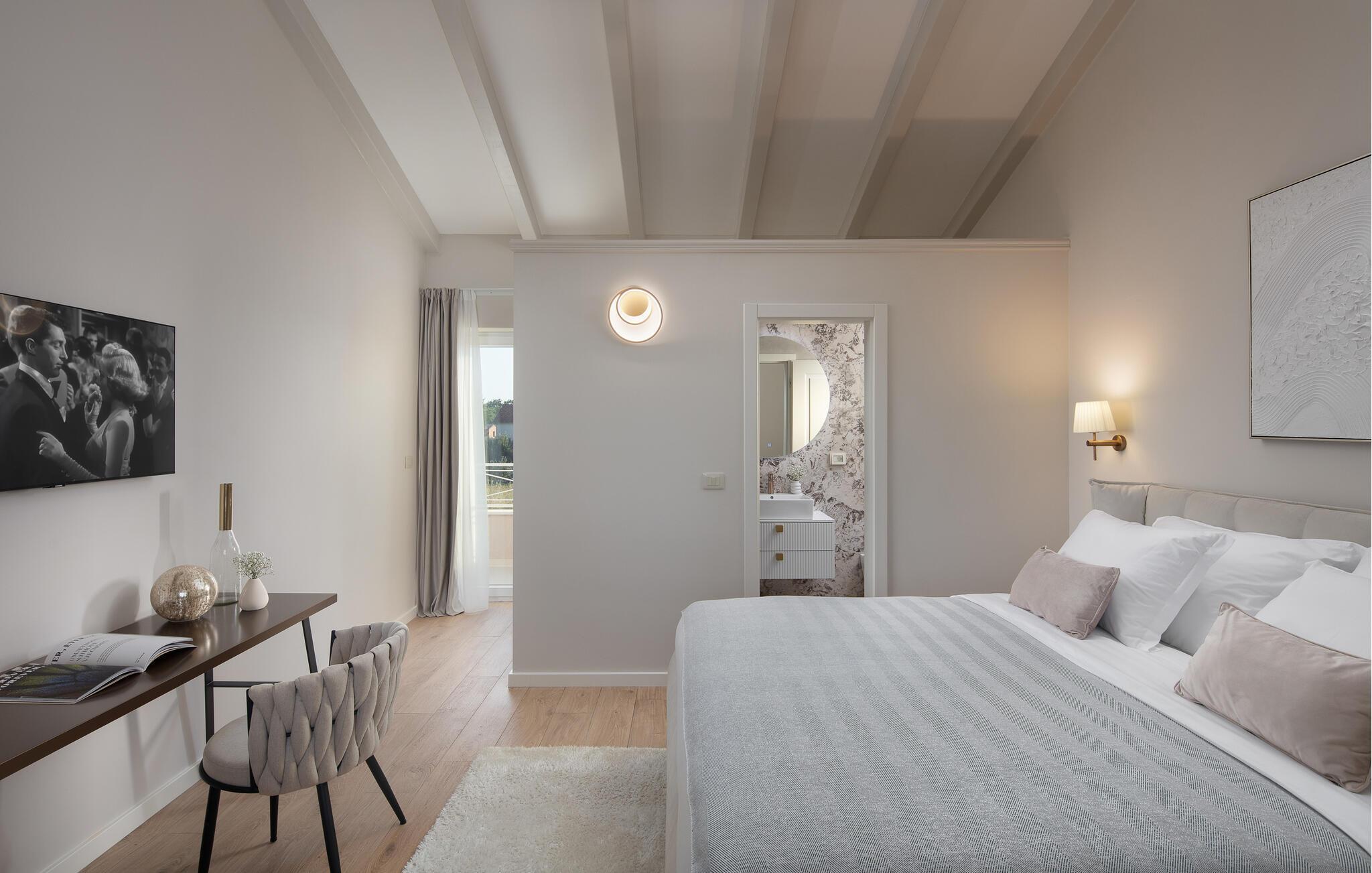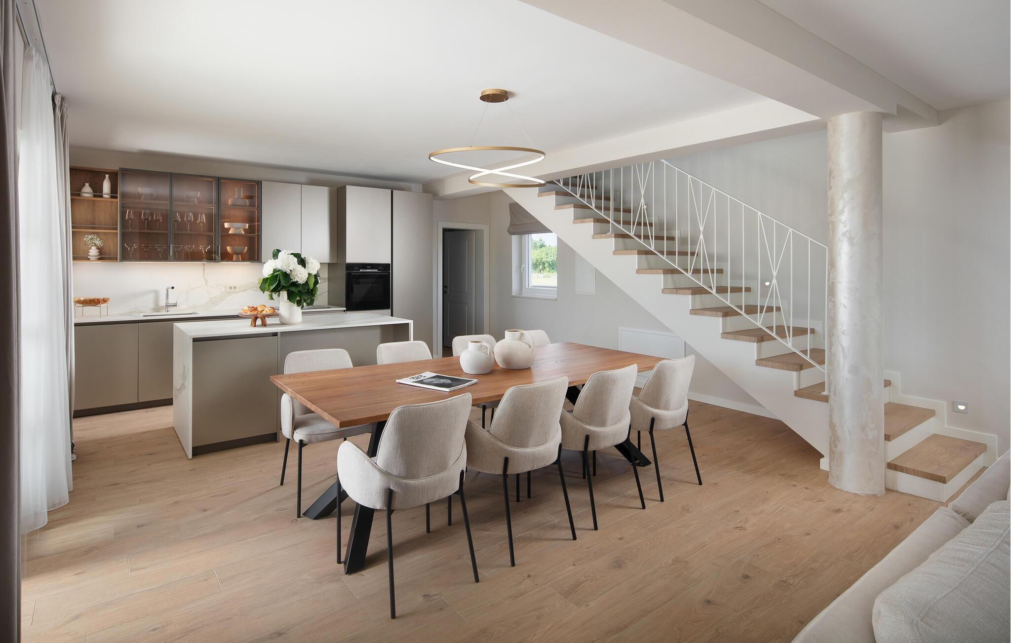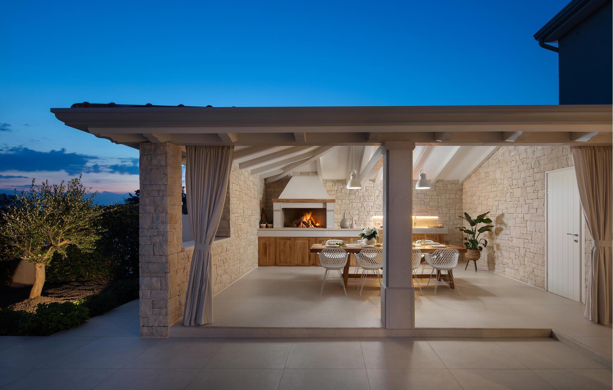 Feriehuset ligger i et af de smukkeste områder i Istrien, tæt på de charmerende middelalderbyer Zminj, Svetvincenat og Kanfanar. Udforsk det maleriske landskab på cykel eller til fods. I de talrige lokale restauranter kan I nyde det traditionelle istriske køkken. Hvis I ønsker at tilberede nogle af de lokale specialiteter selv, kan I købe friske ingredienser direkte fra de lokale. For elskere af fisk og skaldyr er den nærliggende Lim-kanal med sit rige udbud af fisk samt muslinger og østers et absolut højdepunkt. Hvis I vil opleve det pulserende byliv, kan I nå Rovinj, en tidligere fiskerlandsby og i dag et kendt turistcentrum, på få minutter i bil.