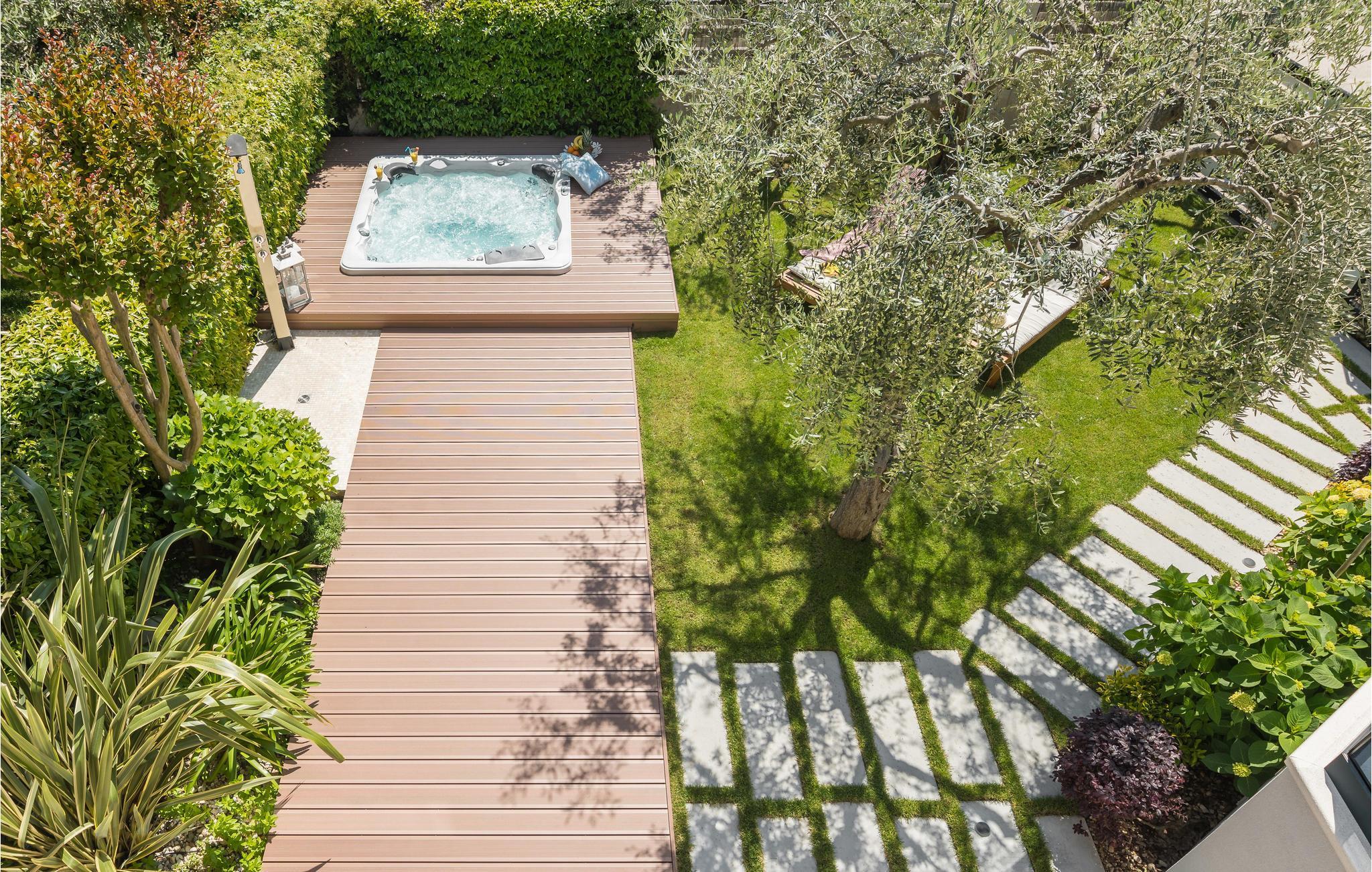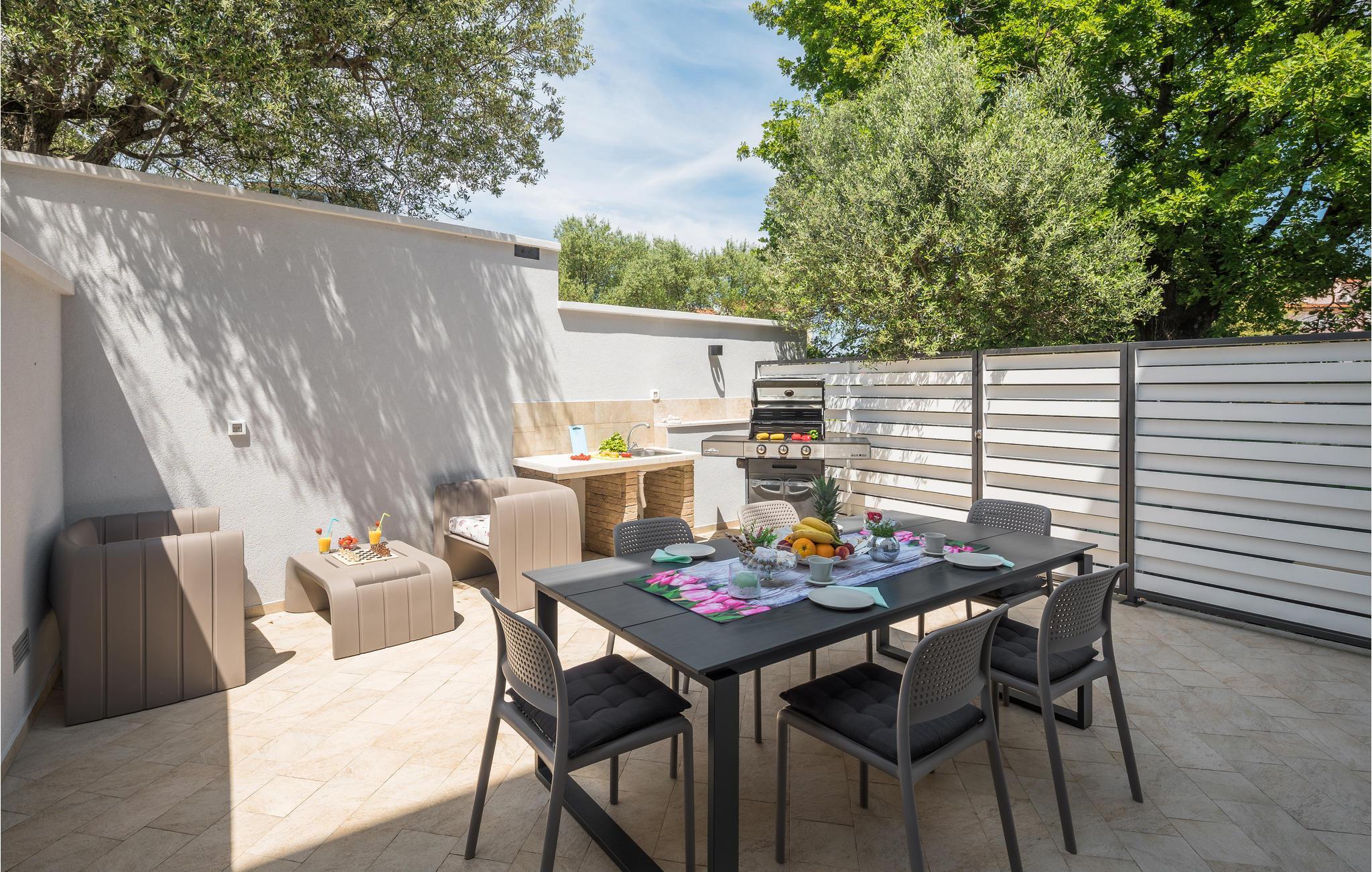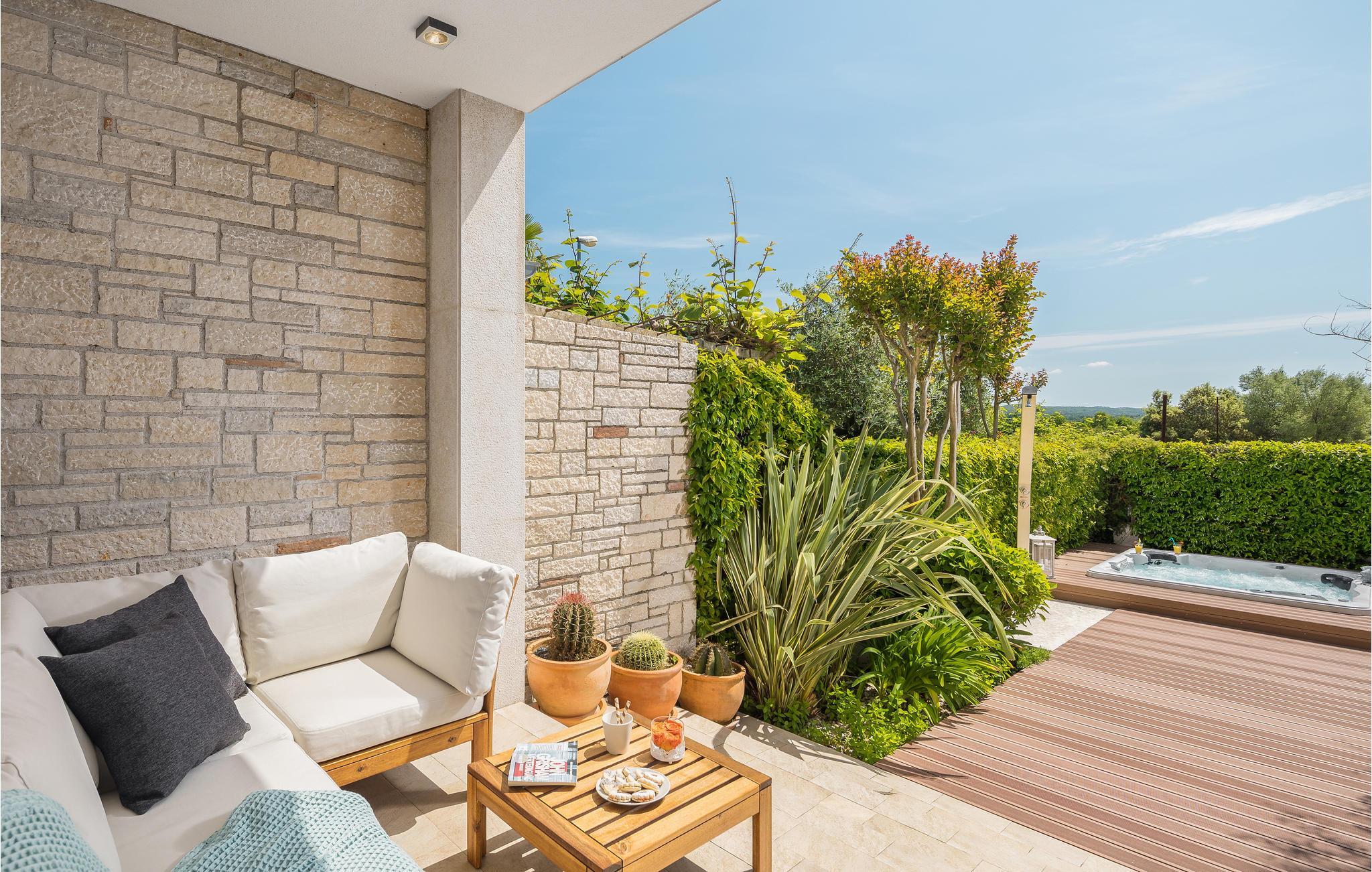 Dette skønne rækkehus er kun ca. 10 minutter til fods fra Rovinj. Tilbring de dejlige sommernætter i jeres egen gård, og nyd aftensmaden fra grillen med et glas vin til. Her står der også en udendørs whirlpool. Indretningen er meget smagfuld og komfortabel. Kør til den gamle bykerne i Rovinj, der har en romantisk atmosfære, især om natten. Opdag de smalle stræder, og gå afslappet til Den Hellige Eufemias Kirke, herfra har I en herlig udsigt. Gå heller ikke glip af sandstranden Zlatni rat, og nyd derfra en skøn udsigt til øen Crveni otok.