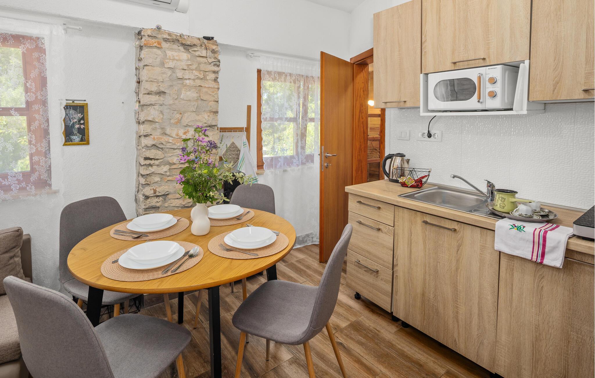 Dette komfortabelt møblerede stenhus byder jer velkommen som en del af et velholdt kompleks og lægger op til afslappende dage omgivet af naturen. Planlæg jeres aktiviteter for den kommende dag over en afslappet morgenmad, og om aftenen kan I slå jer ned i den indbydende sofa for at streame en film eller tilbringe tid sammen med at spille et brætspil.