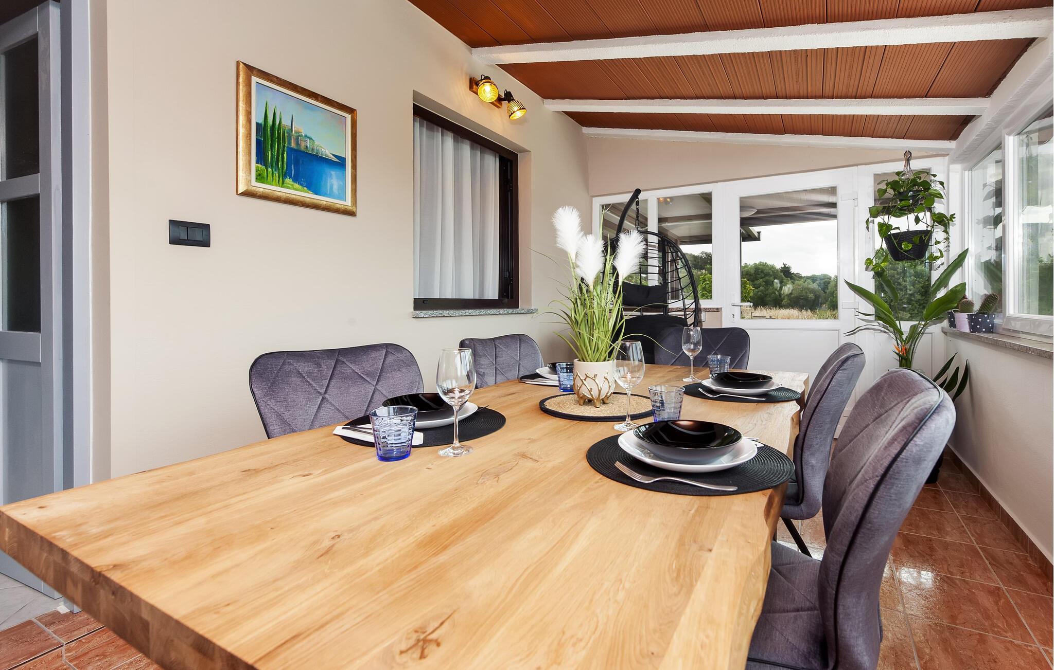 Forkæl hele familien med en fredelig ferie i dette idyllisk beliggende feriehus. Væk fra byens travlhed og kun en gåtur fra havet, kan I lægge hverdagen bag jer i dette rummelige og moderne indrettede feriehus. Madlavning er en fornøjelse i det smukke køkken - glæd jer til at nyde harmoniske måltider i den lyse spisestue med en charmerende udsigt, mens I planlægger jeres aktiviteter. Om aftenen kan I slappe af i den behagelige sofa og nyde en sjov spilleaften. Lad jeres børn lege på den indhegnede grund, mens I serverer en lækker morgenmad på terrassen eller tilbereder delikatesser på grillen efter en begivenhedsrig dag. Slentr gennem de snoede gader i Rovinjs gamle bydel, besøg Sankt Euphemias Kirke og prøv frisk fisk og skaldyr i havnen. Cykl til Punta Corrente-halvøen, tag en bådtur for at snorkle i skjulte bugter på den lille ø Sveta Katarina, besøg den charmerende vinlandsby Kanfanar eller vandr gennem den maleriske Zlatni Rt. Naturpark.