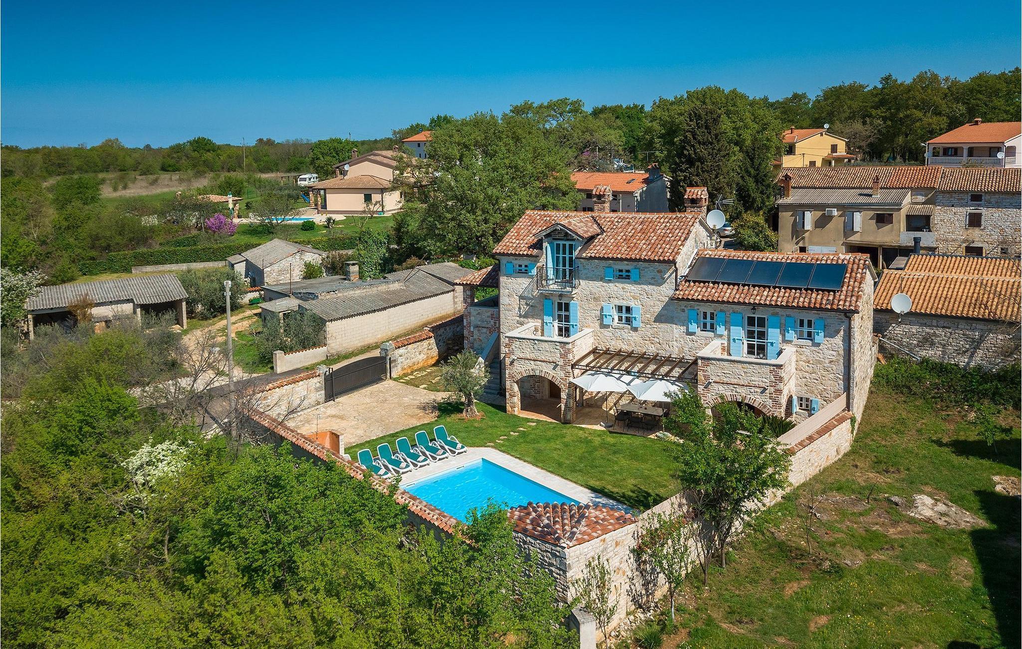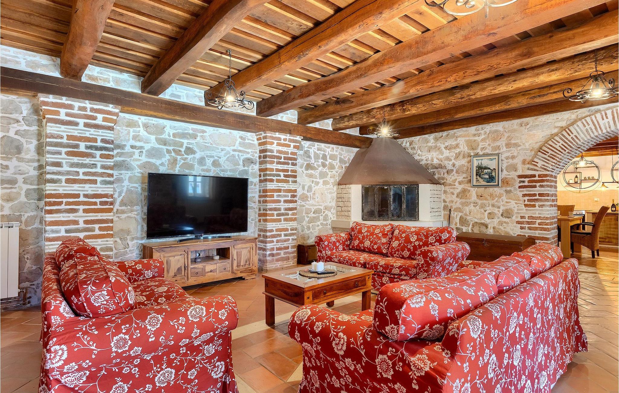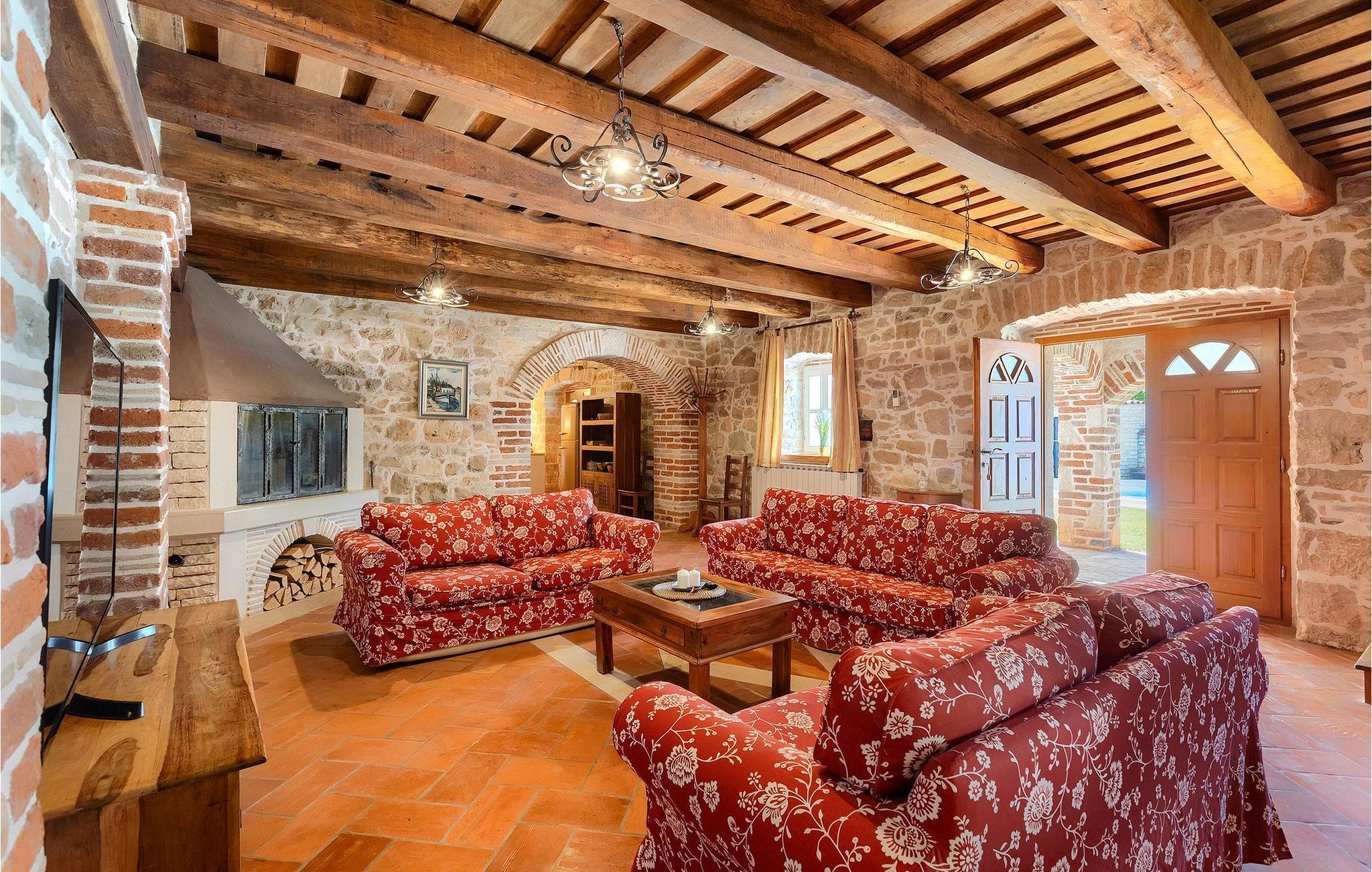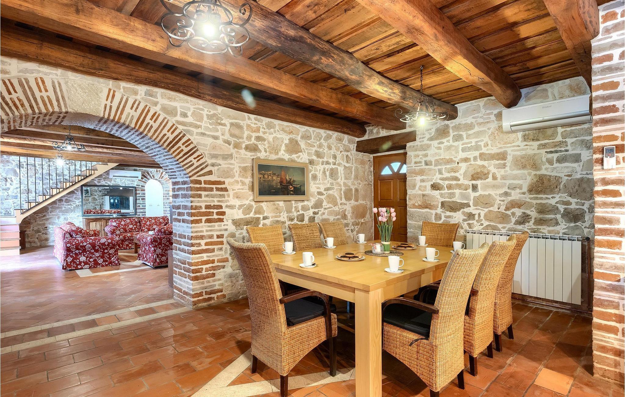 Im geräumigen Innenbereich der wunderschönen Villa Lamija findet jeder seinen Lieblingsplatz. Im Erdgeschoss der Villa befindet sich eine geräumige typisch istrische Küche, die komplett ausgestattet ist. Die Küche mit Essbereich ist mit dem gemütlichen Wohnzimmer verbunden, das Zugang zu der sonnigen Terrasse hat. Im Erdgeschoss finden Sie auch ein Schlafzimmer mit Doppelbett, privatem Bad und Zugang zur privaten Terrasse. Im ersten Stock befinden sich zwei gemütliche Schlafzimmer mit Doppelbett, jeweils privatem Bad und Terrasse. In einem dieser Schlafzimmer steht Ihnen auch eine ausziehbare Wohnlandschaft für 2 Personen zur Verfügung. Im Obergeschoss finden Sie ein geräumiges Schlafzimmer mit Doppelbett, ausziehbarer Couch, Kamin sowie privatem Bad.Villa Lamija befindet sich am Rande des kleinen Dorfes Susnjici in traumhafter Ruhelage, und doch nicht zu weit von der Autobahn. In 8km Entfernung erreichen Sie Porec mit allen Annehmlichkeiten eines attraktiven Adriaurlaubs: Traumhafte Kiesstrände, Restaurants, Cafes, Museen, Galerien und eine wunderschöne, historische Altstadt. In 10 Minuten sind Sie am Limski Fjord, wo Sie frische Muscheln genießen können, und in 20 Minuten in der Perle der Adria - Rovinj. Zum Aquapark Istralandia sind es ebenfalls nur 20 Minuten Fahrt, die sich für einen Tag voller Spass mit den Kleinen allemal lohnen.