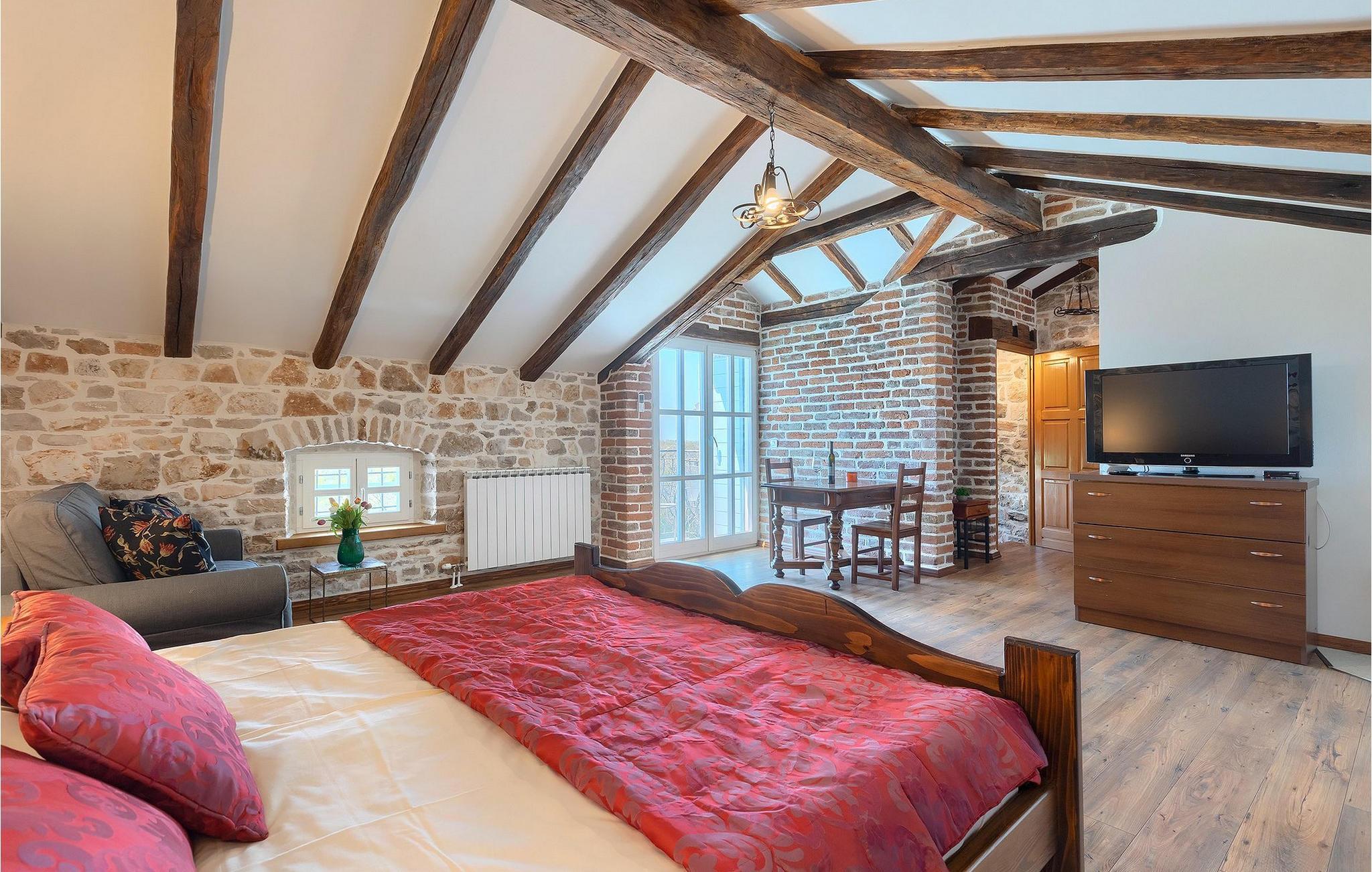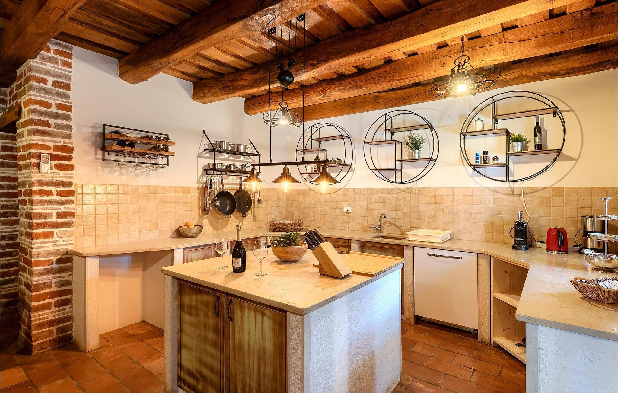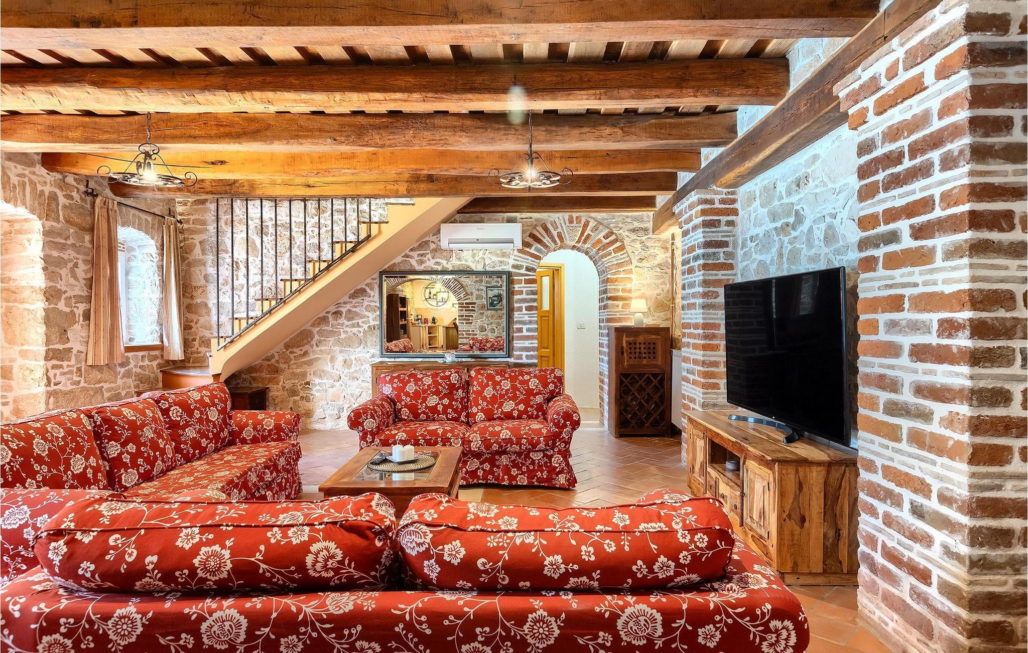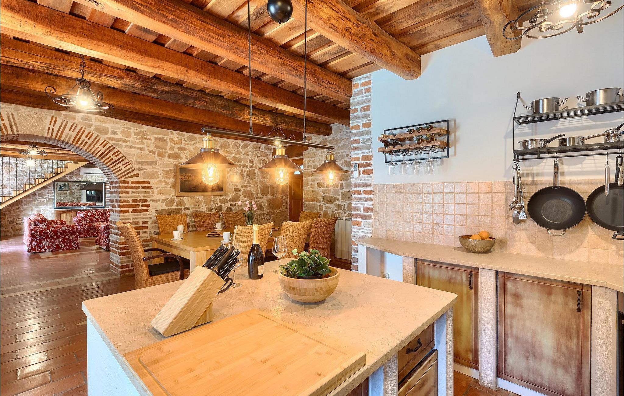 Im geräumigen Innenbereich der wunderschönen Villa Lamija findet jeder seinen Lieblingsplatz. Im Erdgeschoss der Villa befindet sich eine geräumige typisch istrische Küche, die komplett ausgestattet ist. Die Küche mit Essbereich ist mit dem gemütlichen Wohnzimmer verbunden, das Zugang zu der sonnigen Terrasse hat. Im Erdgeschoss finden Sie auch ein Schlafzimmer mit Doppelbett, privatem Bad und Zugang zur privaten Terrasse. Im ersten Stock befinden sich zwei gemütliche Schlafzimmer mit Doppelbett, jeweils privatem Bad und Terrasse. In einem dieser Schlafzimmer steht Ihnen auch eine ausziehbare Wohnlandschaft für 2 Personen zur Verfügung. Im Obergeschoss finden Sie ein geräumiges Schlafzimmer mit Doppelbett, ausziehbarer Couch, Kamin sowie privatem Bad.Villa Lamija befindet sich am Rande des kleinen Dorfes Susnjici in traumhafter Ruhelage, und doch nicht zu weit von der Autobahn. In 8km Entfernung erreichen Sie Porec mit allen Annehmlichkeiten eines attraktiven Adriaurlaubs: Traumhafte Kiesstrände, Restaurants, Cafes, Museen, Galerien und eine wunderschöne, historische Altstadt. In 10 Minuten sind Sie am Limski Fjord, wo Sie frische Muscheln genießen können, und in 20 Minuten in der Perle der Adria - Rovinj. Zum Aquapark Istralandia sind es ebenfalls nur 20 Minuten Fahrt, die sich für einen Tag voller Spass mit den Kleinen allemal lohnen.