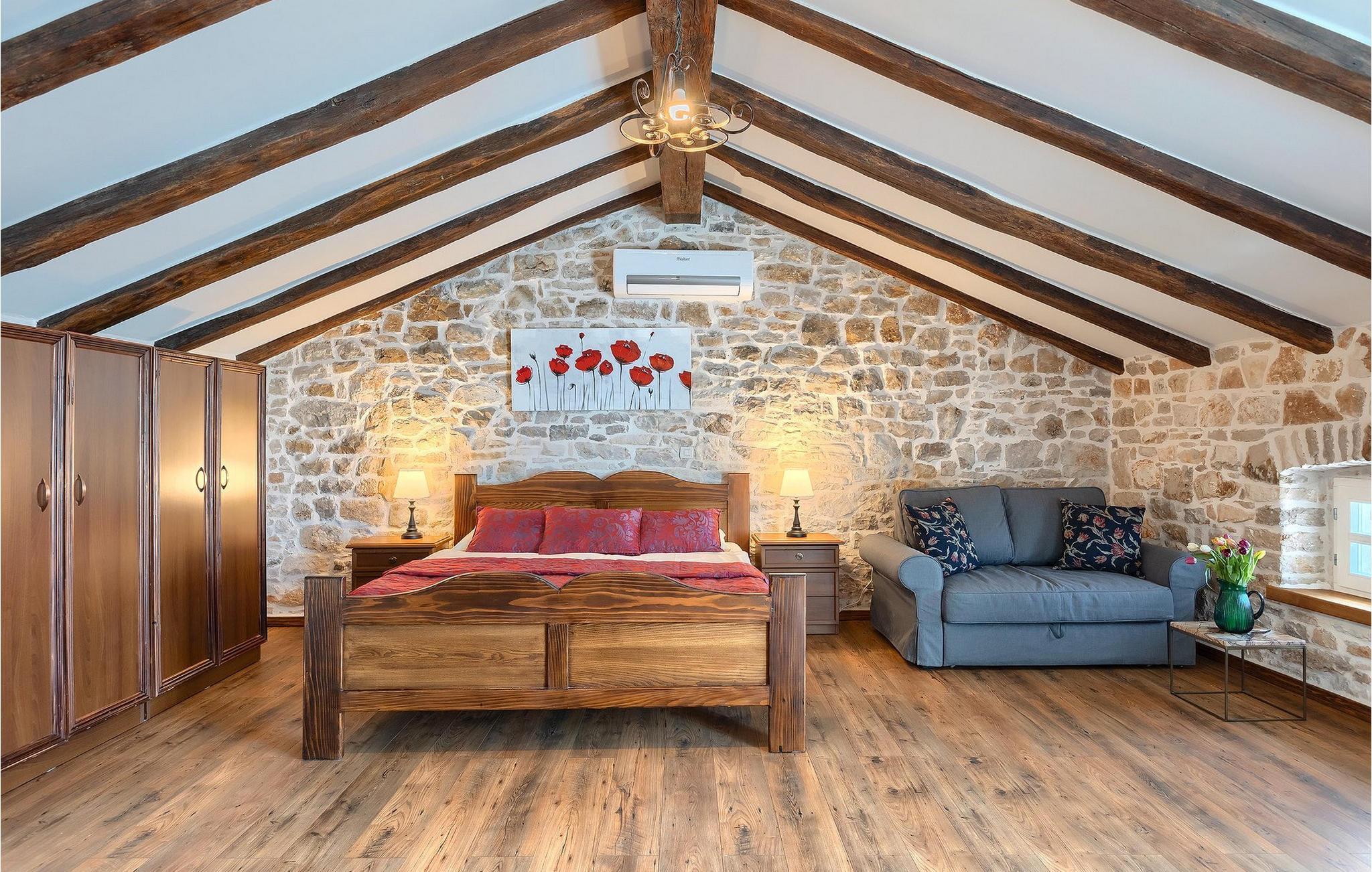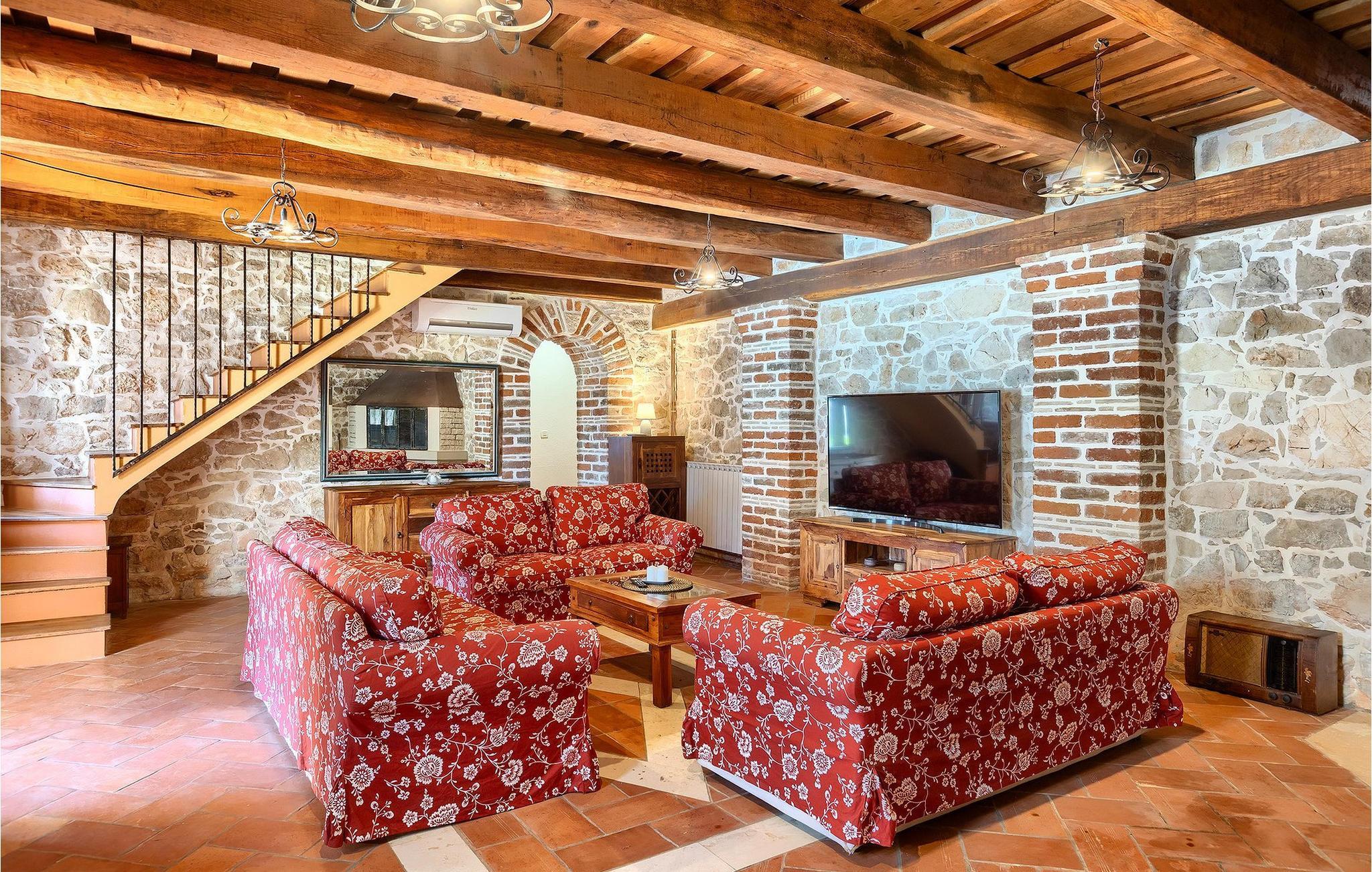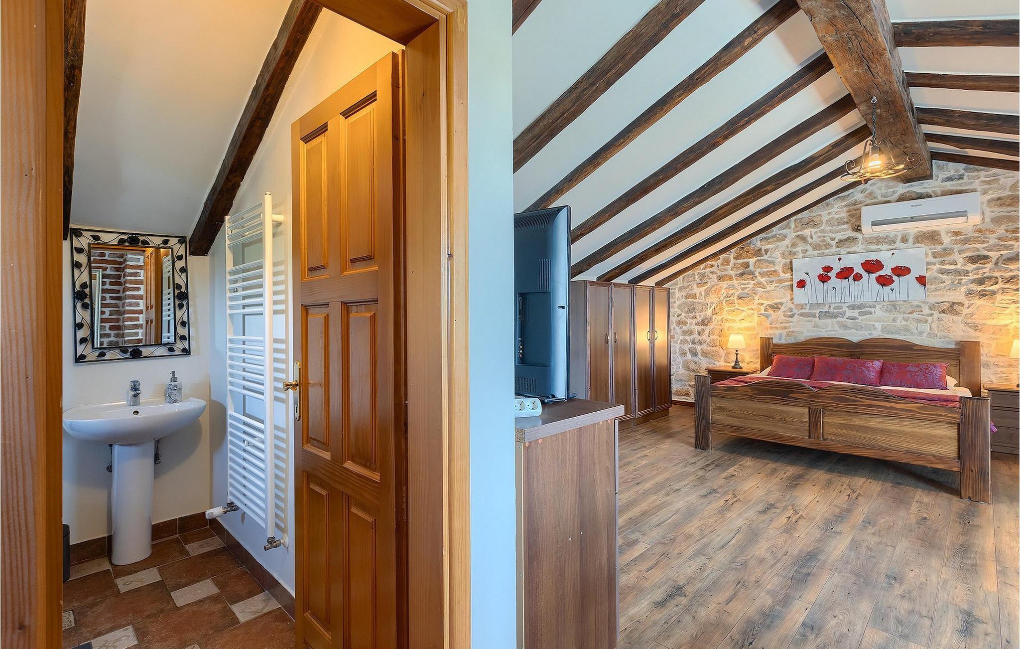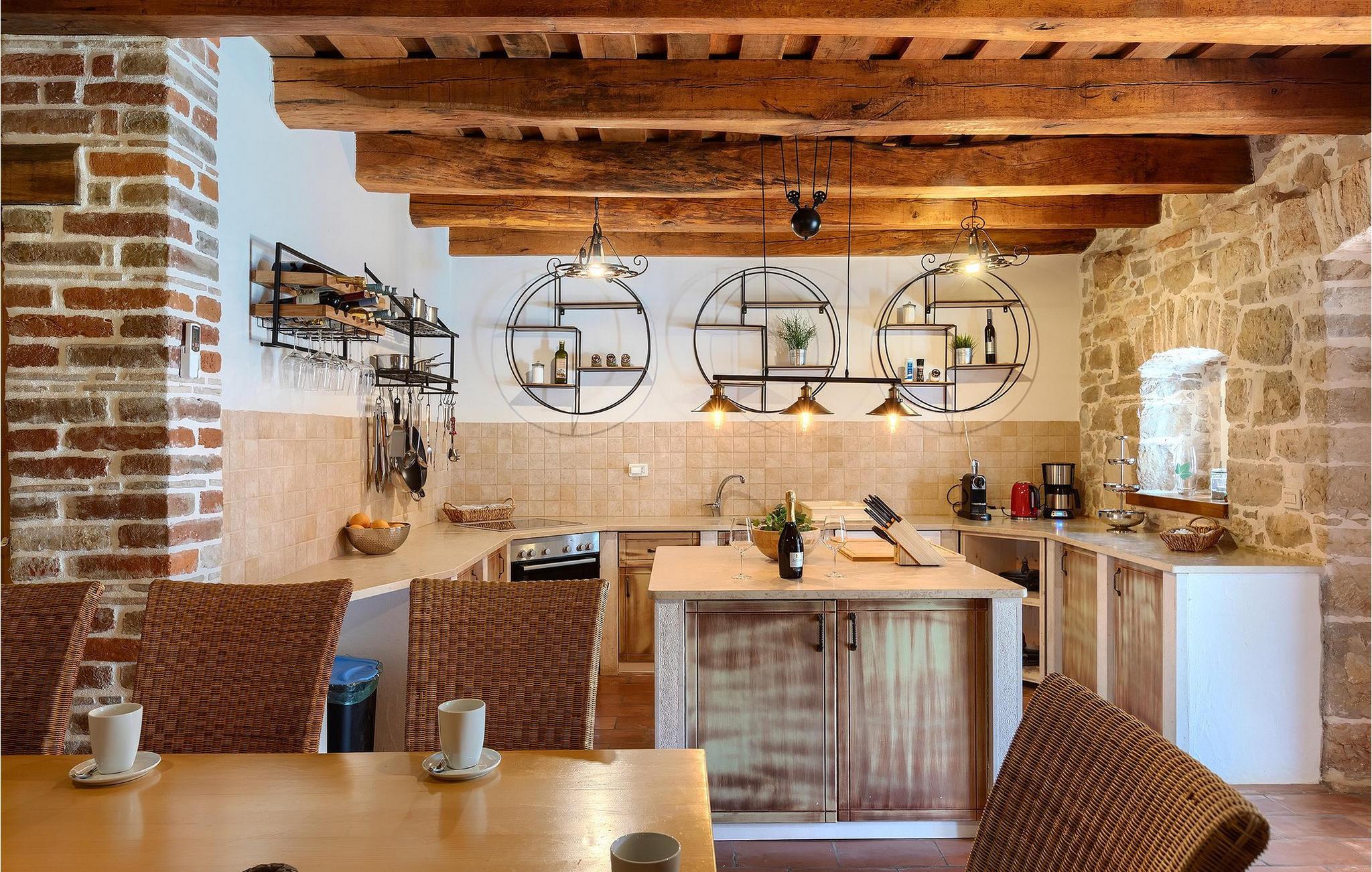 Im geräumigen Innenbereich der wunderschönen Villa Lamija findet jeder seinen Lieblingsplatz. Im Erdgeschoss der Villa befindet sich eine geräumige typisch istrische Küche, die komplett ausgestattet ist. Die Küche mit Essbereich ist mit dem gemütlichen Wohnzimmer verbunden, das Zugang zu der sonnigen Terrasse hat. Im Erdgeschoss finden Sie auch ein Schlafzimmer mit Doppelbett, privatem Bad und Zugang zur privaten Terrasse. Im ersten Stock befinden sich zwei gemütliche Schlafzimmer mit Doppelbett, jeweils privatem Bad und Terrasse. In einem dieser Schlafzimmer steht Ihnen auch eine ausziehbare Wohnlandschaft für 2 Personen zur Verfügung. Im Obergeschoss finden Sie ein geräumiges Schlafzimmer mit Doppelbett, ausziehbarer Couch, Kamin sowie privatem Bad.Villa Lamija befindet sich am Rande des kleinen Dorfes Susnjici in traumhafter Ruhelage, und doch nicht zu weit von der Autobahn. In 8km Entfernung erreichen Sie Porec mit allen Annehmlichkeiten eines attraktiven Adriaurlaubs: Traumhafte Kiesstrände, Restaurants, Cafes, Museen, Galerien und eine wunderschöne, historische Altstadt. In 10 Minuten sind Sie am Limski Fjord, wo Sie frische Muscheln genießen können, und in 20 Minuten in der Perle der Adria - Rovinj. Zum Aquapark Istralandia sind es ebenfalls nur 20 Minuten Fahrt, die sich für einen Tag voller Spass mit den Kleinen allemal lohnen.