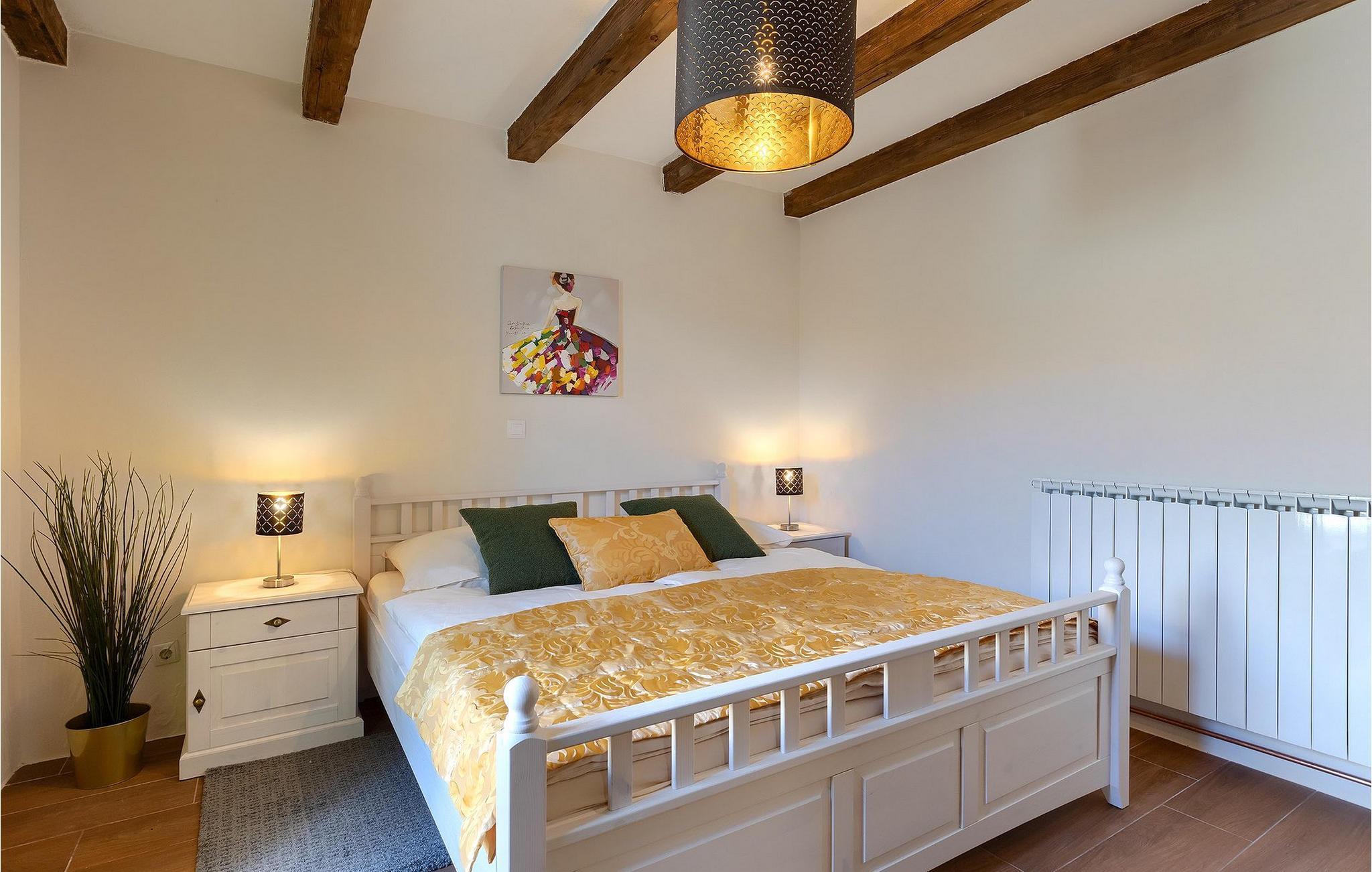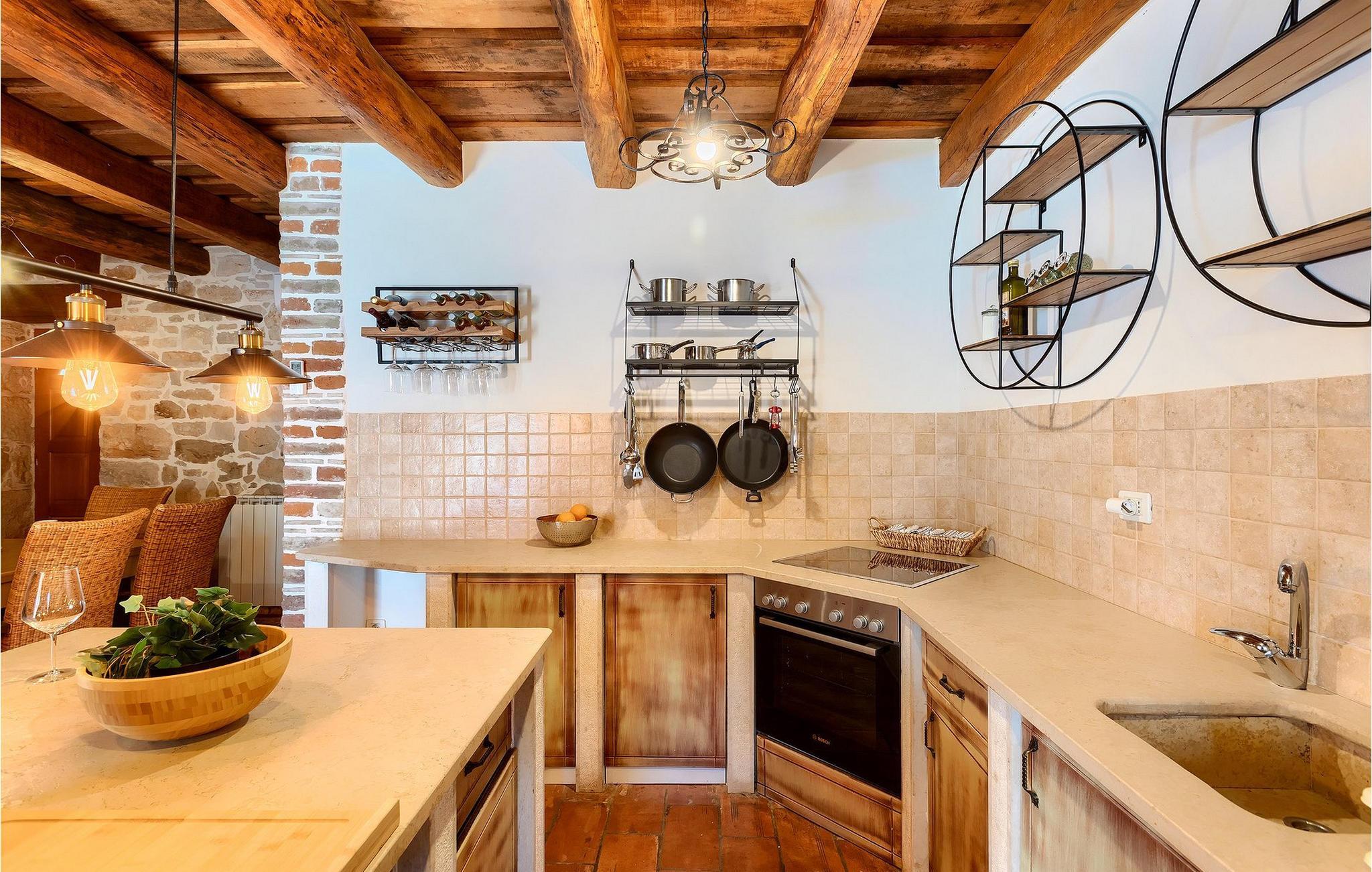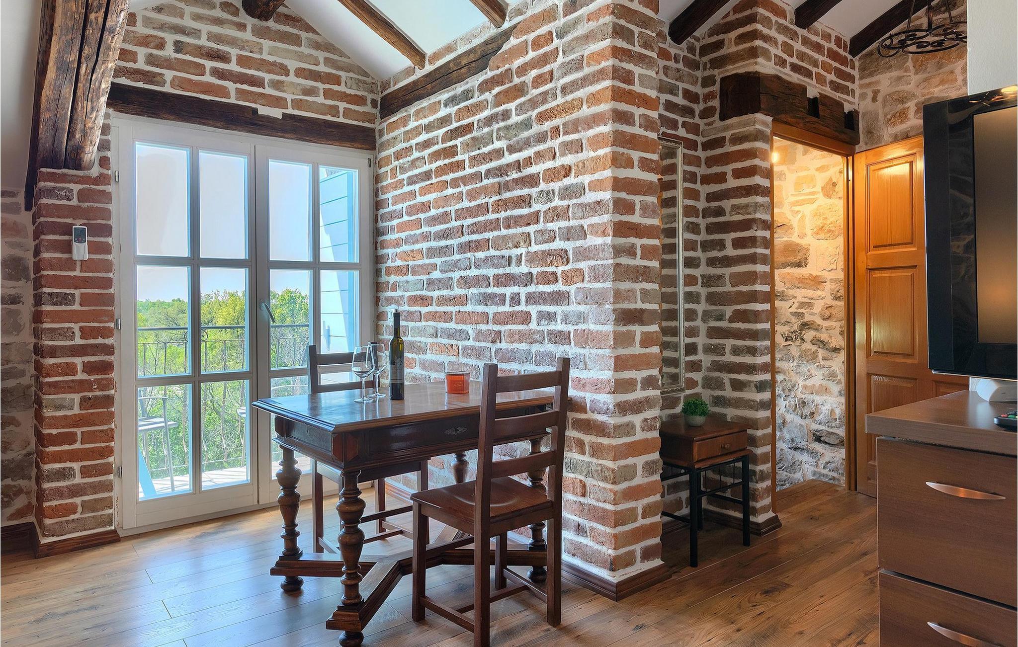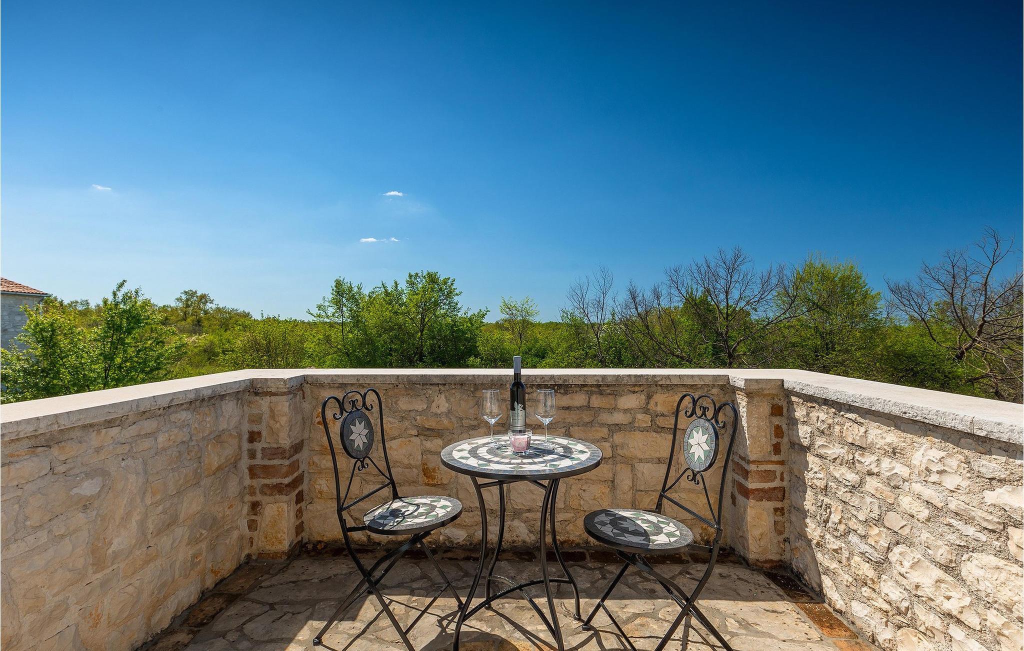 Im geräumigen Innenbereich der wunderschönen Villa Lamija findet jeder seinen Lieblingsplatz. Im Erdgeschoss der Villa befindet sich eine geräumige typisch istrische Küche, die komplett ausgestattet ist. Die Küche mit Essbereich ist mit dem gemütlichen Wohnzimmer verbunden, das Zugang zu der sonnigen Terrasse hat. Im Erdgeschoss finden Sie auch ein Schlafzimmer mit Doppelbett, privatem Bad und Zugang zur privaten Terrasse. Im ersten Stock befinden sich zwei gemütliche Schlafzimmer mit Doppelbett, jeweils privatem Bad und Terrasse. In einem dieser Schlafzimmer steht Ihnen auch eine ausziehbare Wohnlandschaft für 2 Personen zur Verfügung. Im Obergeschoss finden Sie ein geräumiges Schlafzimmer mit Doppelbett, ausziehbarer Couch, Kamin sowie privatem Bad.Villa Lamija befindet sich am Rande des kleinen Dorfes Susnjici in traumhafter Ruhelage, und doch nicht zu weit von der Autobahn. In 8km Entfernung erreichen Sie Porec mit allen Annehmlichkeiten eines attraktiven Adriaurlaubs: Traumhafte Kiesstrände, Restaurants, Cafes, Museen, Galerien und eine wunderschöne, historische Altstadt. In 10 Minuten sind Sie am Limski Fjord, wo Sie frische Muscheln genießen können, und in 20 Minuten in der Perle der Adria - Rovinj. Zum Aquapark Istralandia sind es ebenfalls nur 20 Minuten Fahrt, die sich für einen Tag voller Spass mit den Kleinen allemal lohnen.