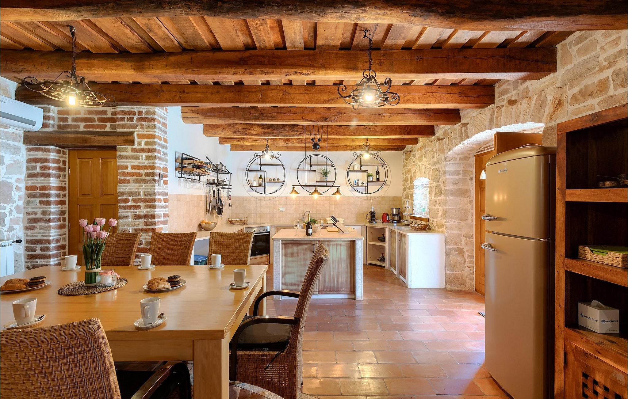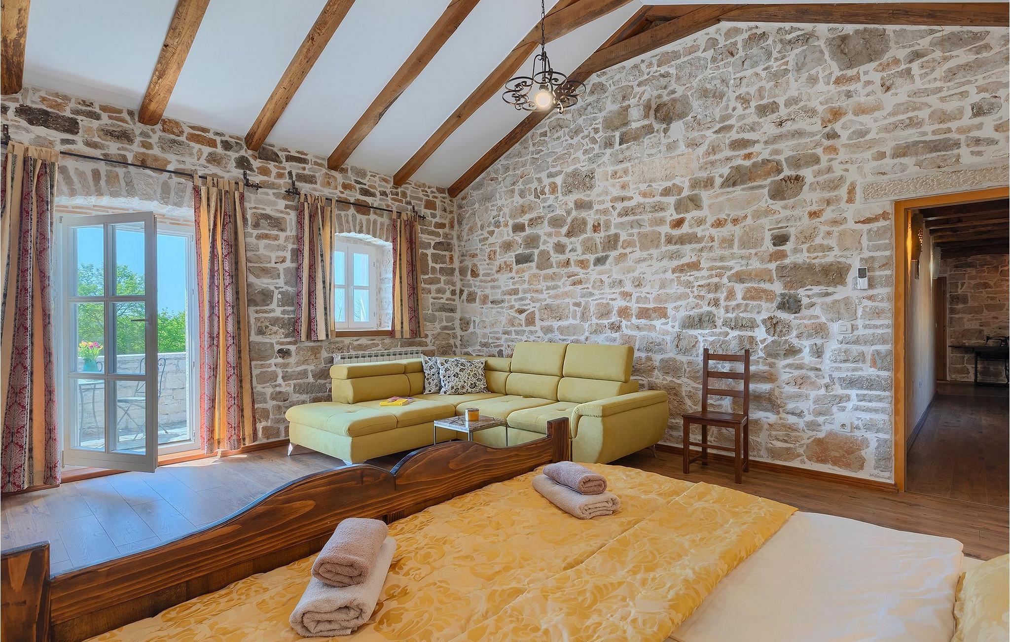 Verbringen Sie Ihren Urlaub in einer autochthonen Steinvilla mit magischer Ausstrahlung. Erbaut vor 100 Jahren, Villa Lamija wurde liebevoll mit ausschließlich originalen Materialien restauriert. Die rustikale Mischung aus Stein und Holz sowie geschmackvolle Accessoires und Möbel sorgen für eine außergewöhnliche Atmosphäre. Wunderschöne Rundbögen, ein riesiger offener Grill, zwei offene Kamine im Haus und eine originale Steinzisterne machen dieses Anwesen einzigartig.