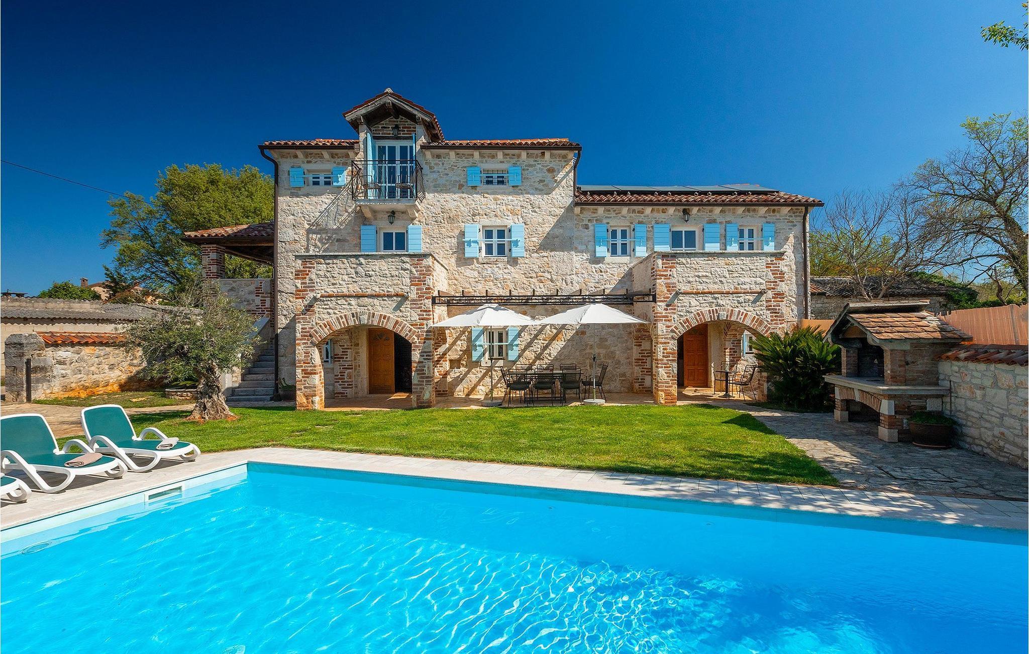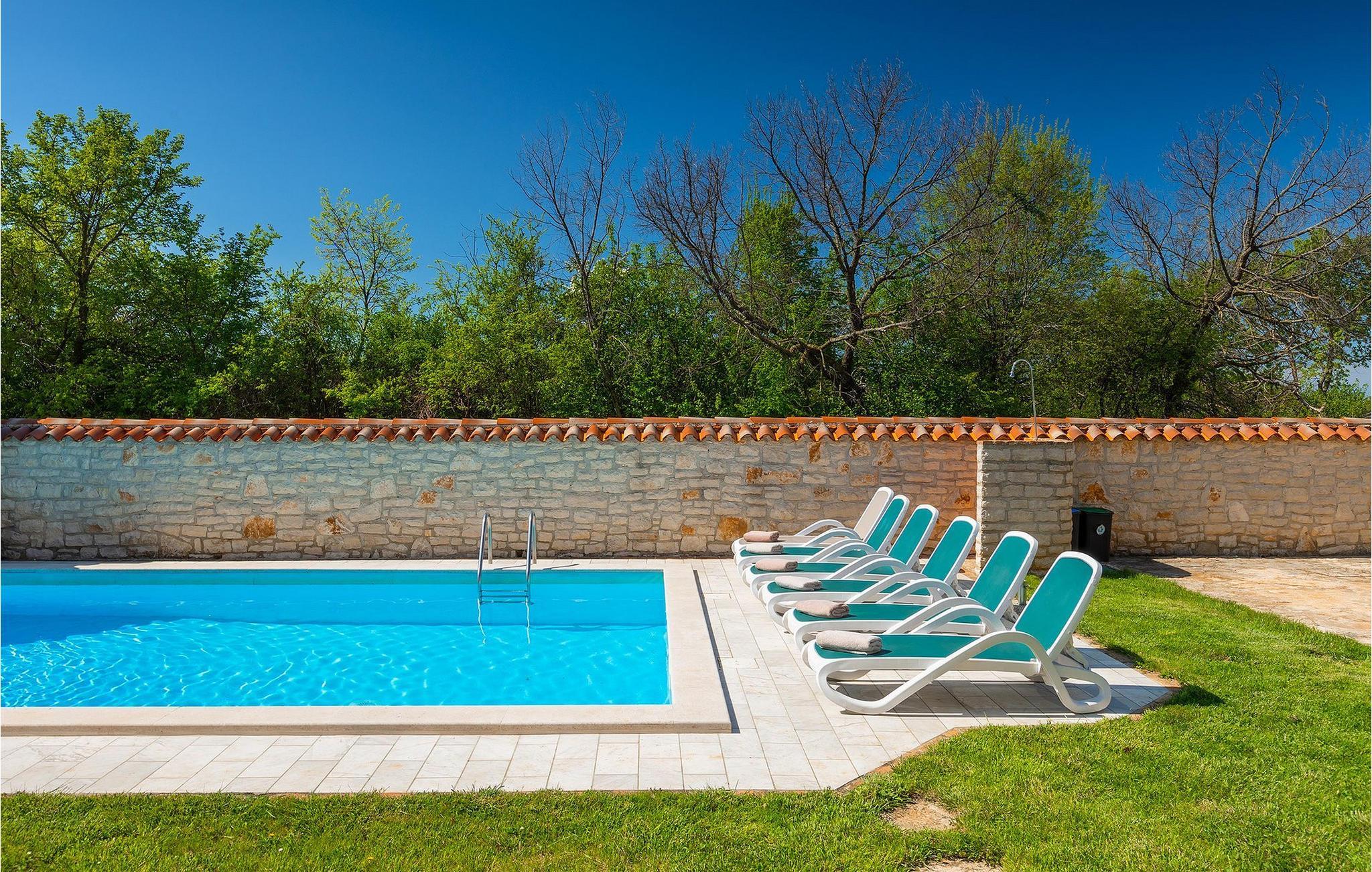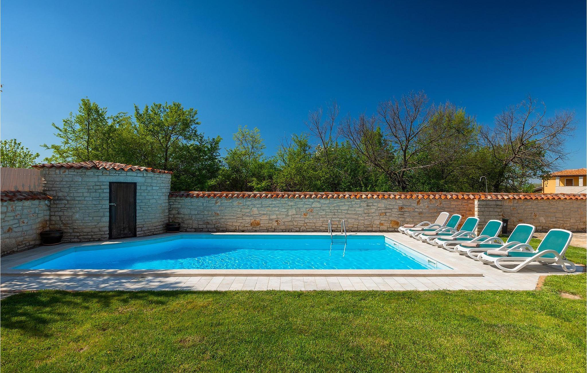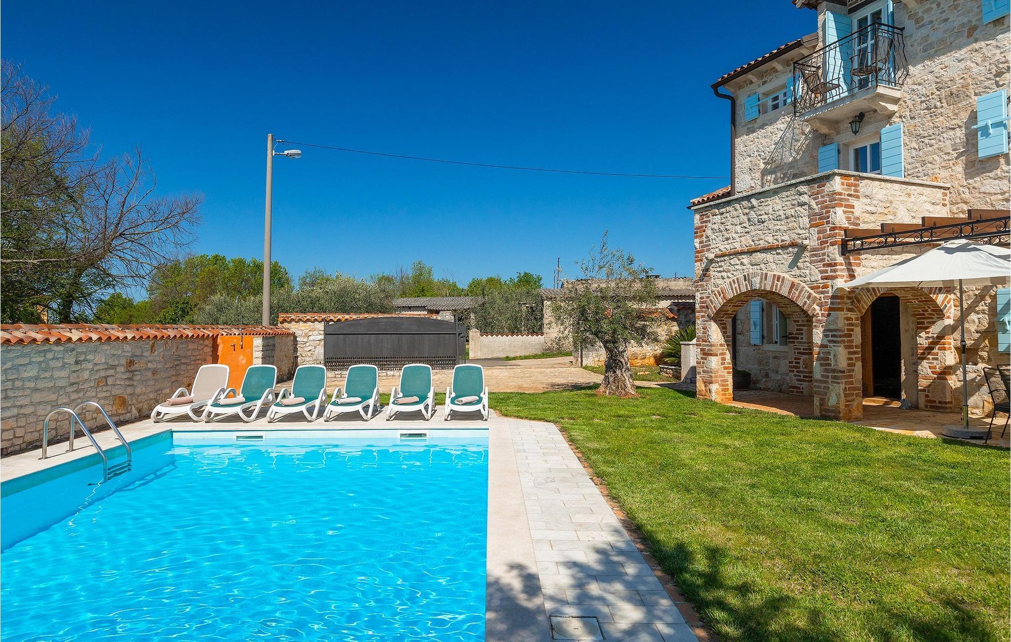 Von Sonnenaufgang bis zum -untergang übers Meer haben Sie den ganzen Tag die istrische Sonne zu Gast. Erfrischen Sie sich im attraktiven privaten Pool und lassen Sie sich auf den bequemen Liegestühlen von der Sonne trocknen. Auf der erstaunlichen Terrasse finden Sie auch einen überdachen Essbereich, wo sich ein leckeres Gericht mit den Liebsten genießen lässt. Auf der Rückseite des Hauses finden Sie zudem einen überdachten Bereich mit Tischfußball und Billardtisch.