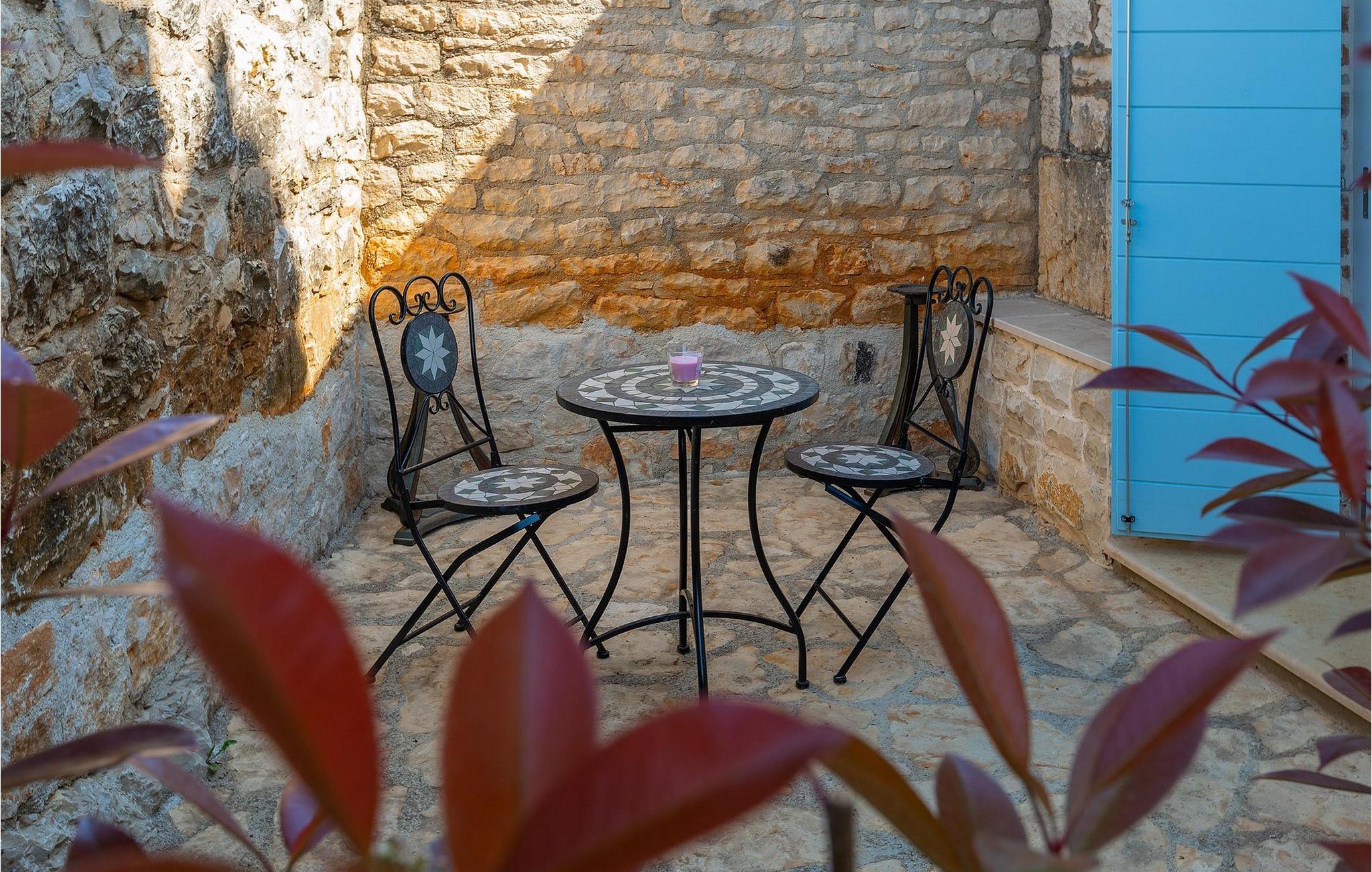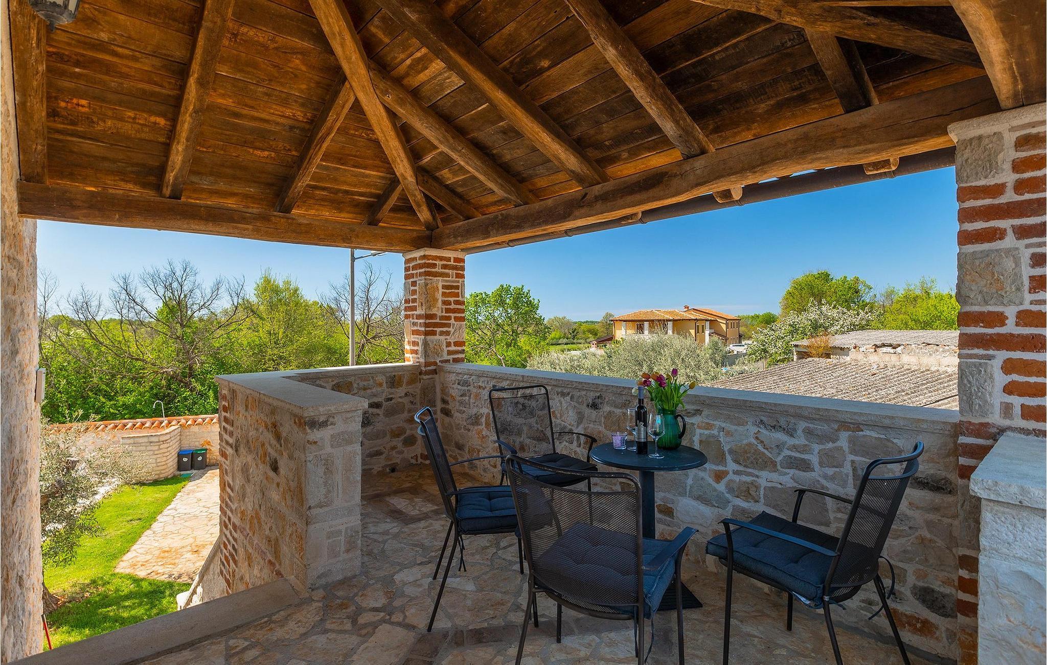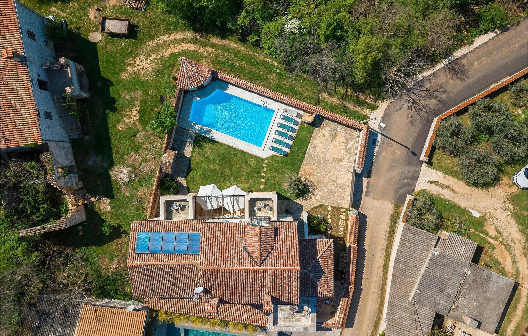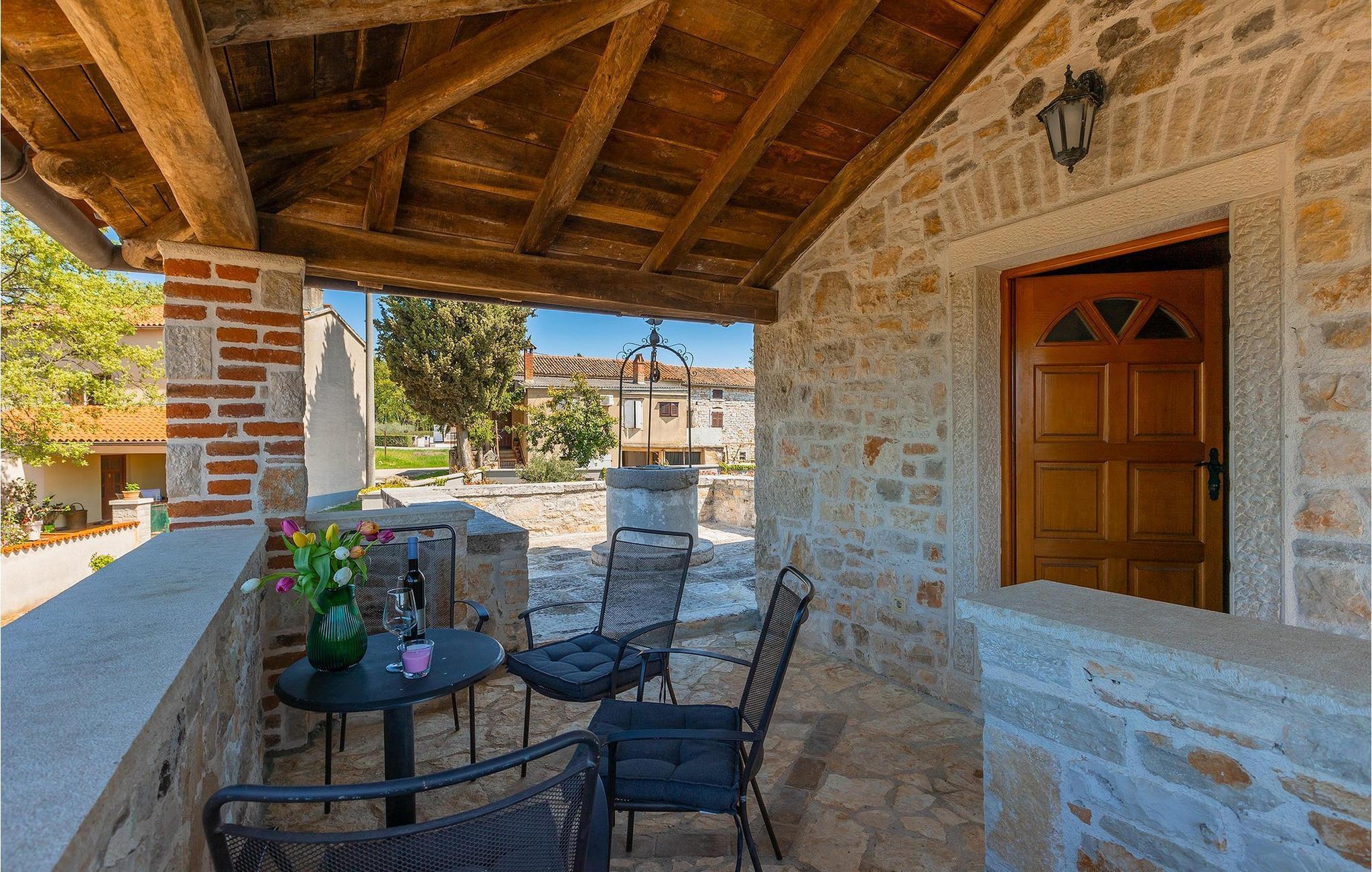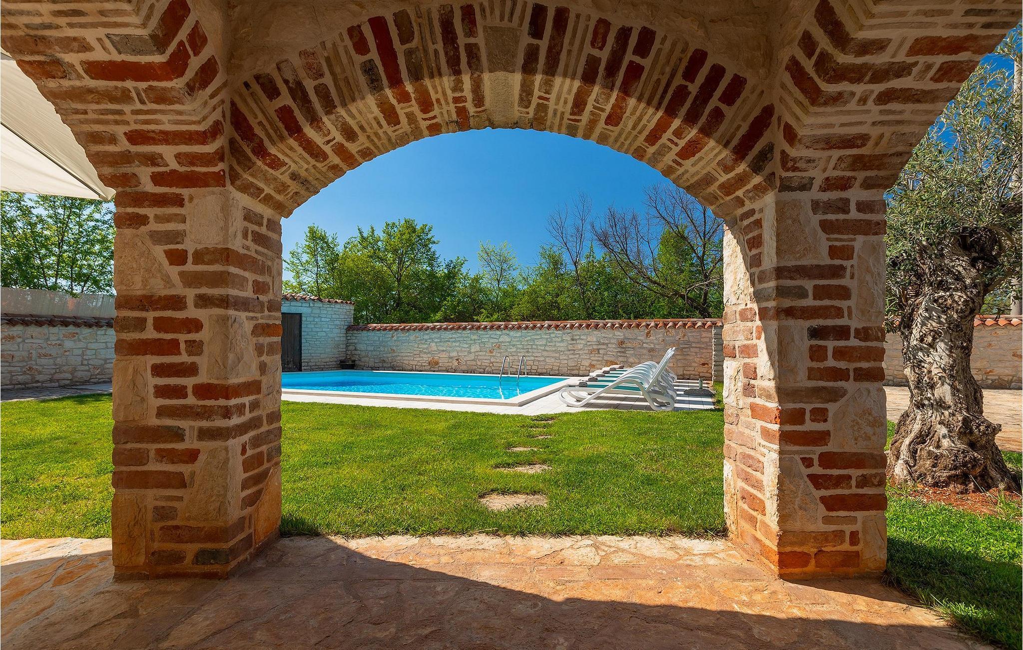 Von Sonnenaufgang bis zum -untergang übers Meer haben Sie den ganzen Tag die istrische Sonne zu Gast. Erfrischen Sie sich im attraktiven privaten Pool und lassen Sie sich auf den bequemen Liegestühlen von der Sonne trocknen. Auf der erstaunlichen Terrasse finden Sie auch einen überdachen Essbereich, wo sich ein leckeres Gericht mit den Liebsten genießen lässt. Auf der Rückseite des Hauses finden Sie zudem einen überdachten Bereich mit Tischfußball und Billardtisch.
