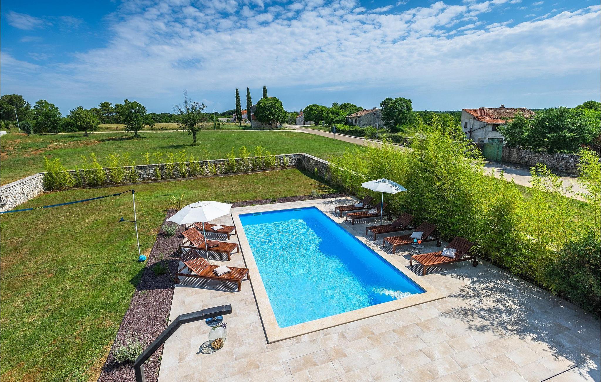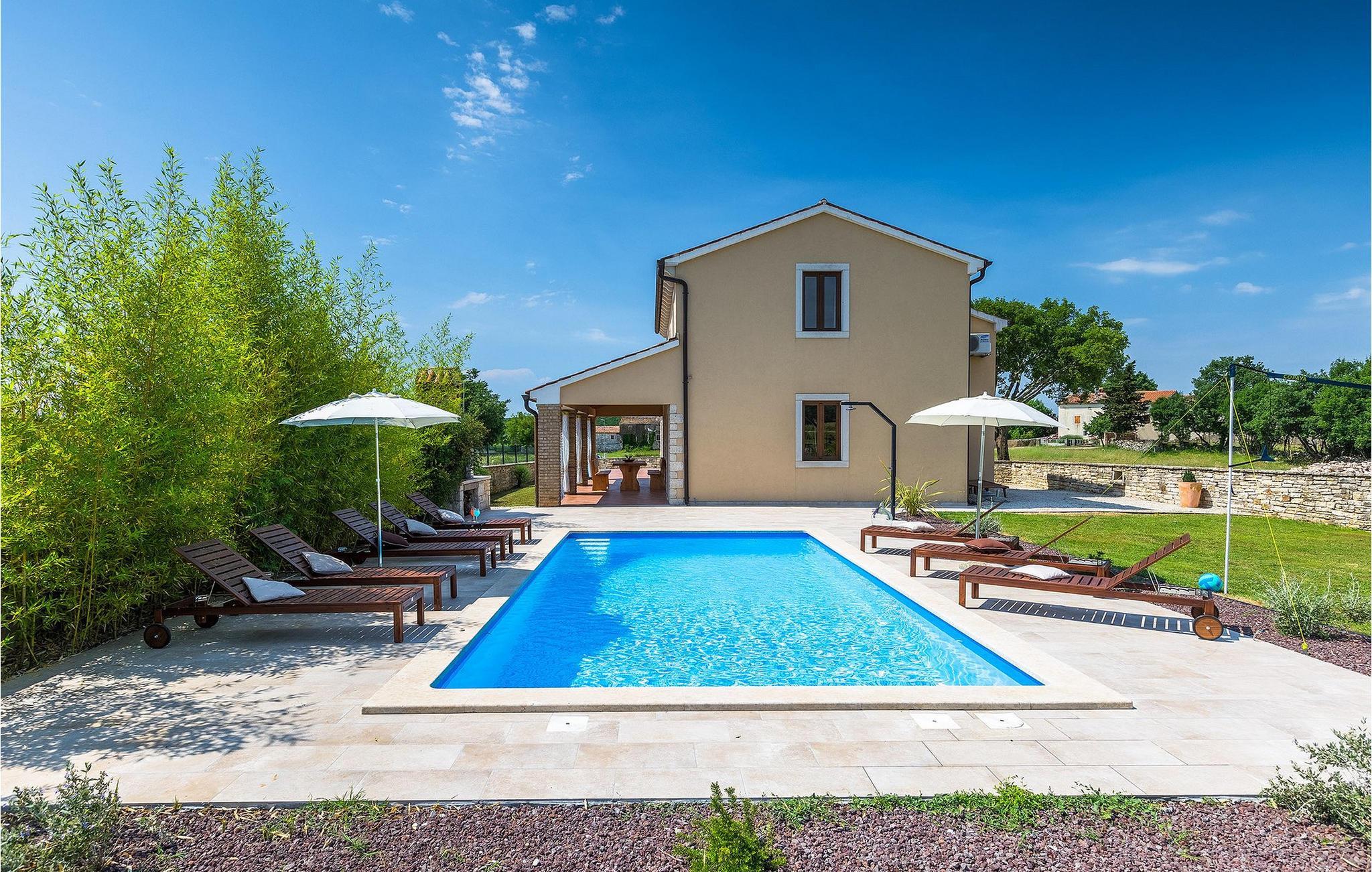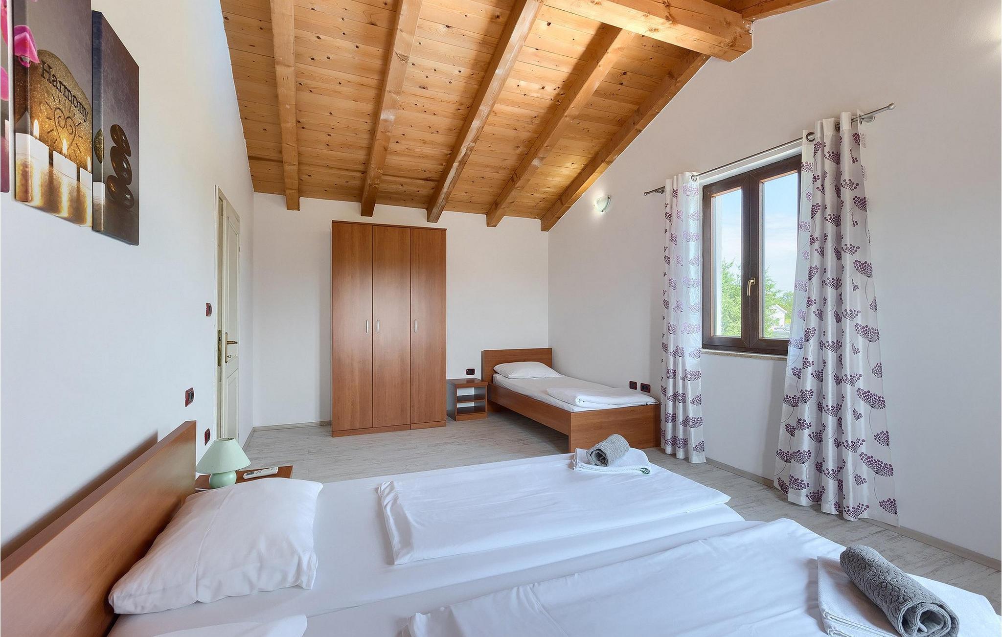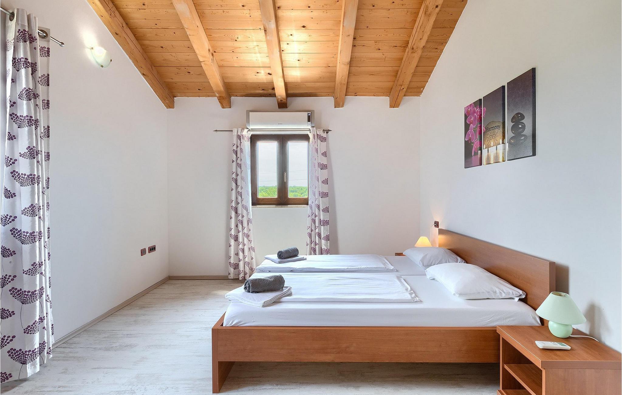 Villa Nino er en familievenlig villa med en kapacitet på op til 10 gæster. Bygget i 2010, men ifølge den traditionelle istriske stil med en masse sten og træ, vil denne villa byde dig velkommen med sin charmerende karakter. Svømmehallen er ideel på varme sommerdage, og i haven kan dine børn boltre sig og lege på trampolinen, mens du ligger på en af solsengene og nyder en kølig drink eller en god bog. Den store, overdækkede terrasse med træ-spisebord indbyder til en fantastisk morgenmad, inden du begynder at opdage regionen. Et af de 4 moderne møblerede soveværelser ligger i stueetagen. Det har en dobbeltseng og en enkeltseng. På første sal er der tre komfortable soveværelser og de to badeværelser. Alle disse soveværelser har dobbeltsenge, men et af dem har en ekstra enkeltseng. Badeværelserne har brusere. Dette hus med swimmingpool, have og parkeringsplads er fuldstændig lukket og fritliggende, hvilket giver dig den ro, du har brug for til en ideel ferie. Istrien er virkelig en fryd for øjet. Dens vandløb strømmer til havet gennem dybe dale og kløfter, som leder tankerne hen på de gamle lokale myter om kæmper. Bølgende bakker har udsigt over markerne og dalene med små byer oppe på toppene, der minder om nogle gamle malerier. Når du opdager skønheden i Kanfanar-området, vil du finde det vigtigste kulturelle monument af verdensomspændende kulturarv - middelalderbyen Dvigrad. Krmed ligger i regionen Kanfanar. Turistseværdighederne, Rovinj og Pula, og andre højdepunkter er kun en kort køretur væk. Kun 15 minutter væk fra ejendommen kan du finde de nærmeste strande med en masse rolige steder at slappe af. En bil anbefales.