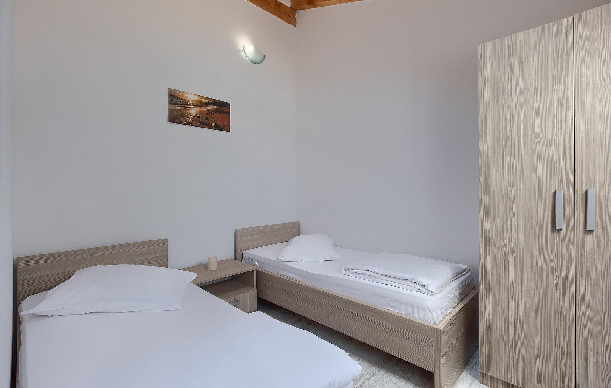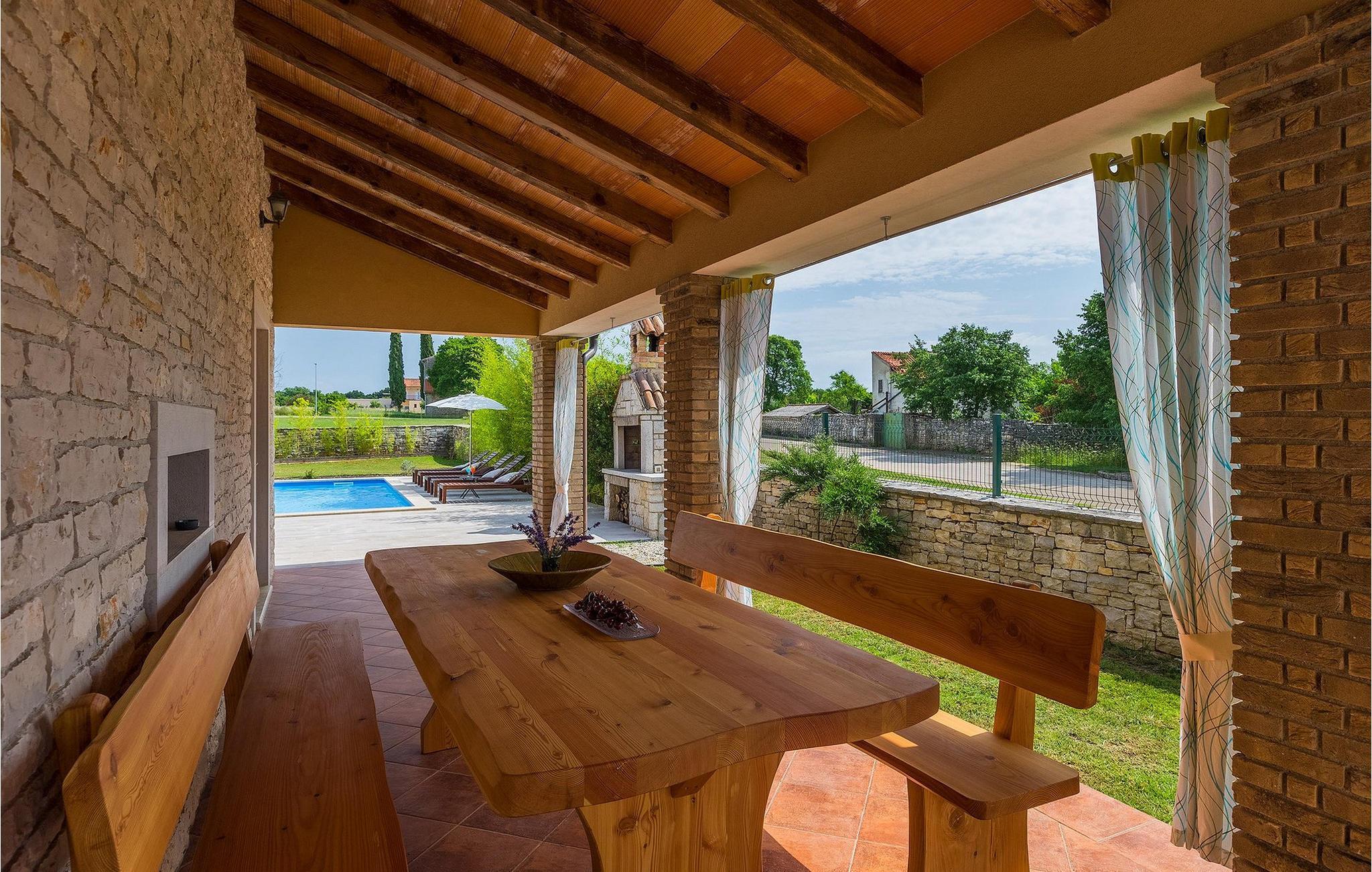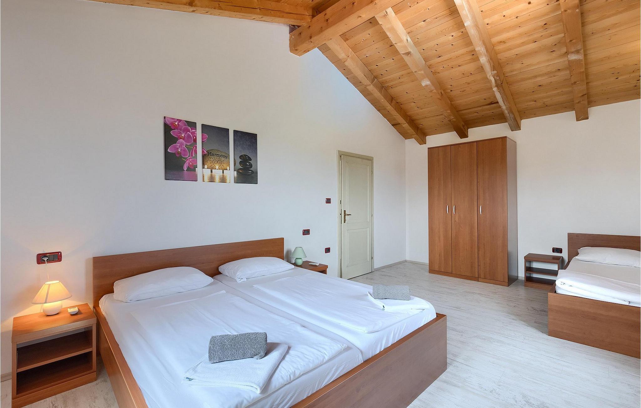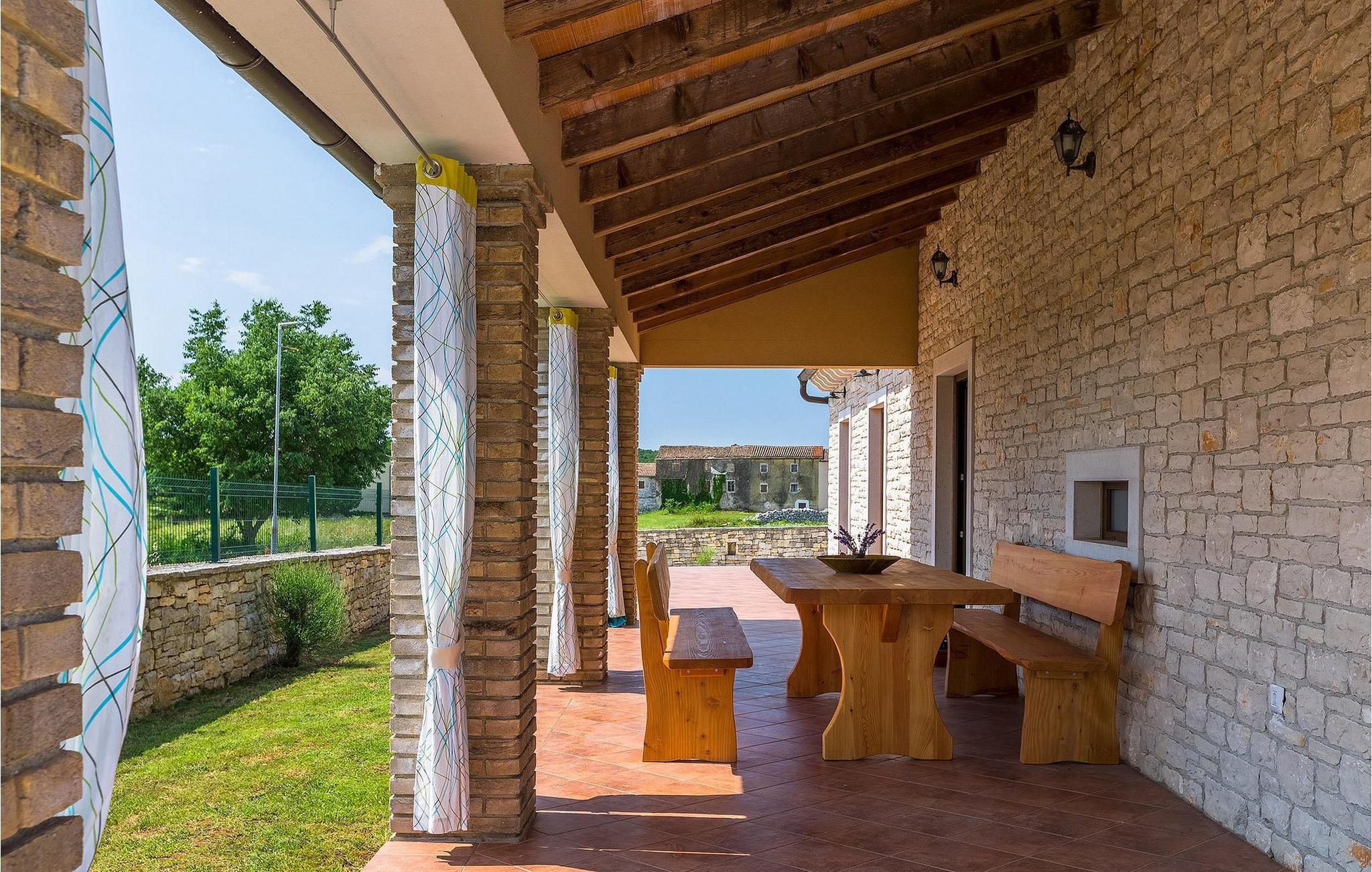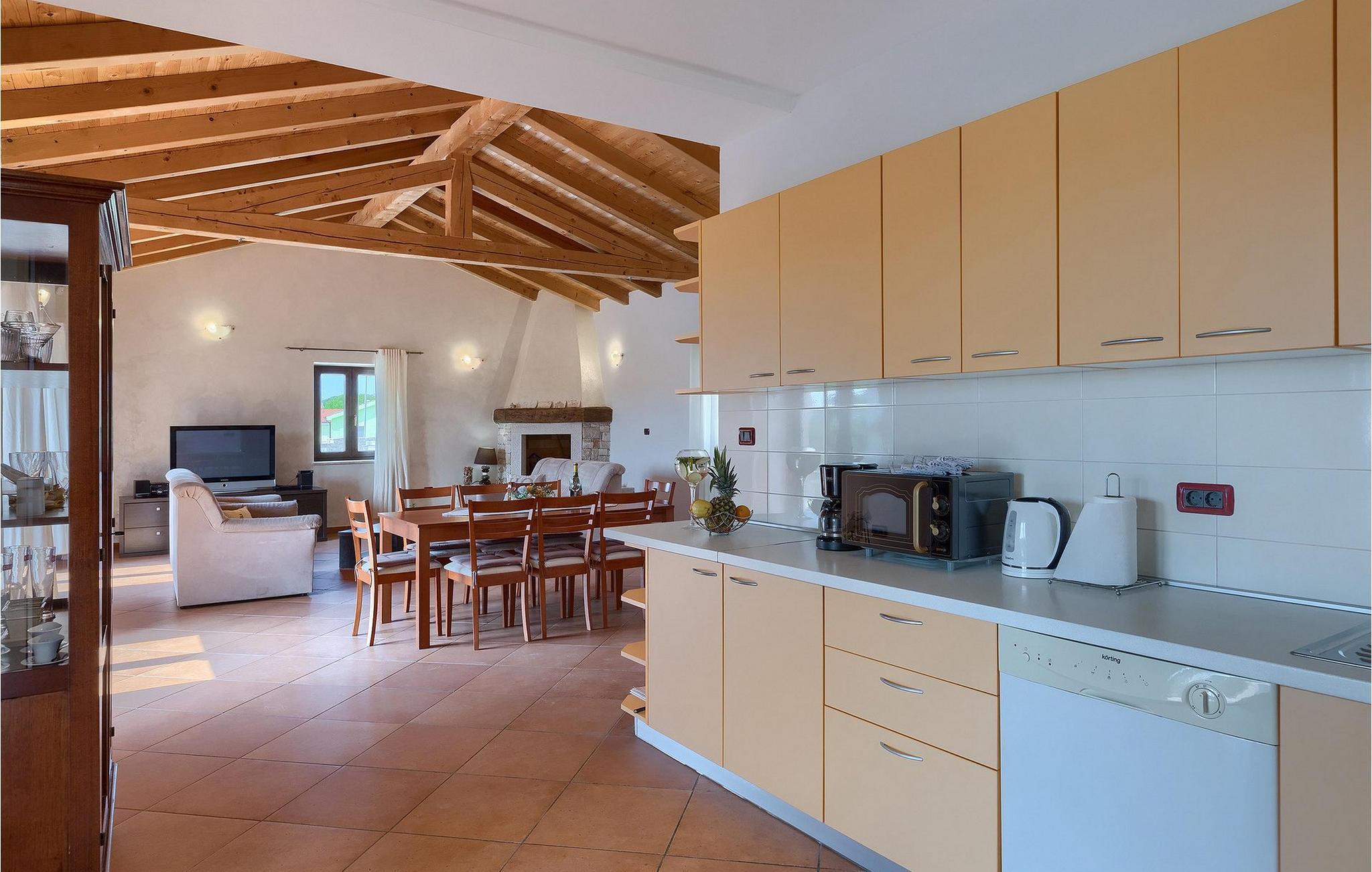 Villa Nino er en familievenlig villa med en kapacitet på op til 10 gæster. Bygget i 2010, men ifølge den traditionelle istriske stil med en masse sten og træ, vil denne villa byde dig velkommen med sin charmerende karakter. Svømmehallen er ideel på varme sommerdage, og i haven kan dine børn boltre sig og lege på trampolinen, mens du ligger på en af solsengene og nyder en kølig drink eller en god bog. Den store, overdækkede terrasse med træ-spisebord indbyder til en fantastisk morgenmad, inden du begynder at opdage regionen. Et af de 4 moderne møblerede soveværelser ligger i stueetagen. Det har en dobbeltseng og en enkeltseng. På første sal er der tre komfortable soveværelser og de to badeværelser. Alle disse soveværelser har dobbeltsenge, men et af dem har en ekstra enkeltseng. Badeværelserne har brusere. Dette hus med swimmingpool, have og parkeringsplads er fuldstændig lukket og fritliggende, hvilket giver dig den ro, du har brug for til en ideel ferie. Istrien er virkelig en fryd for øjet. Dens vandløb strømmer til havet gennem dybe dale og kløfter, som leder tankerne hen på de gamle lokale myter om kæmper. Bølgende bakker har udsigt over markerne og dalene med små byer oppe på toppene, der minder om nogle gamle malerier. Når du opdager skønheden i Kanfanar-området, vil du finde det vigtigste kulturelle monument af verdensomspændende kulturarv - middelalderbyen Dvigrad. Krmed ligger i regionen Kanfanar. Turistseværdighederne, Rovinj og Pula, og andre højdepunkter er kun en kort køretur væk. Kun 15 minutter væk fra ejendommen kan du finde de nærmeste strande med en masse rolige steder at slappe af. En bil anbefales.