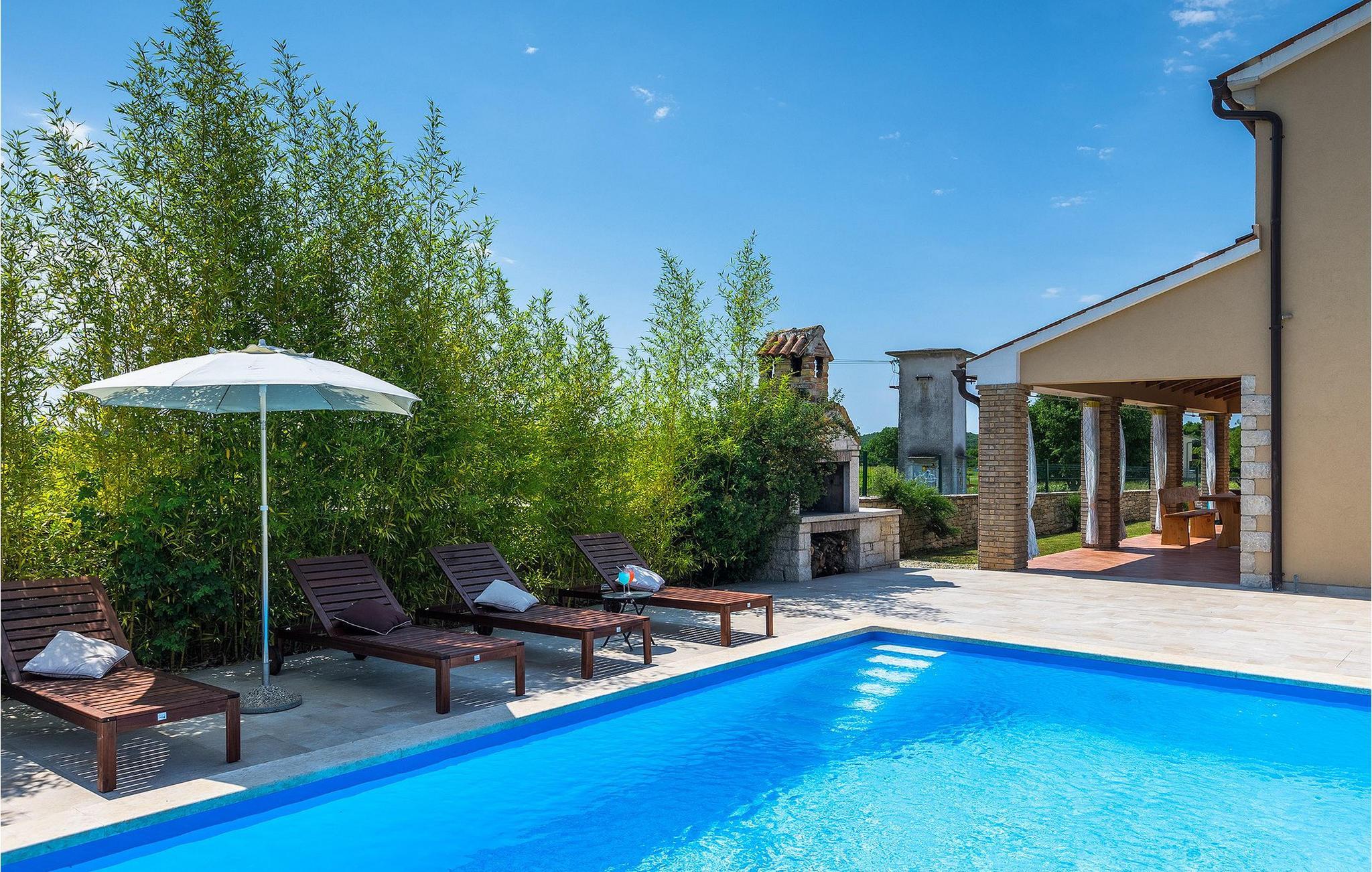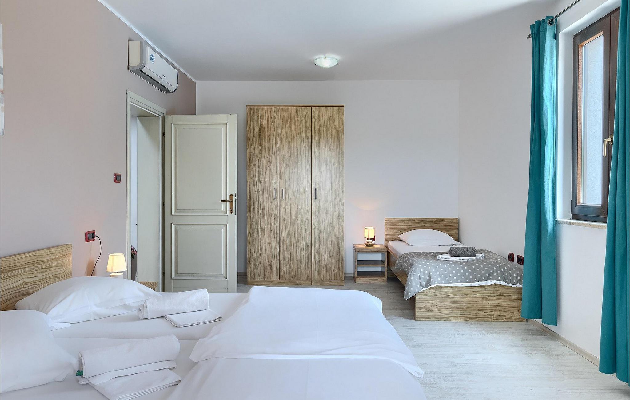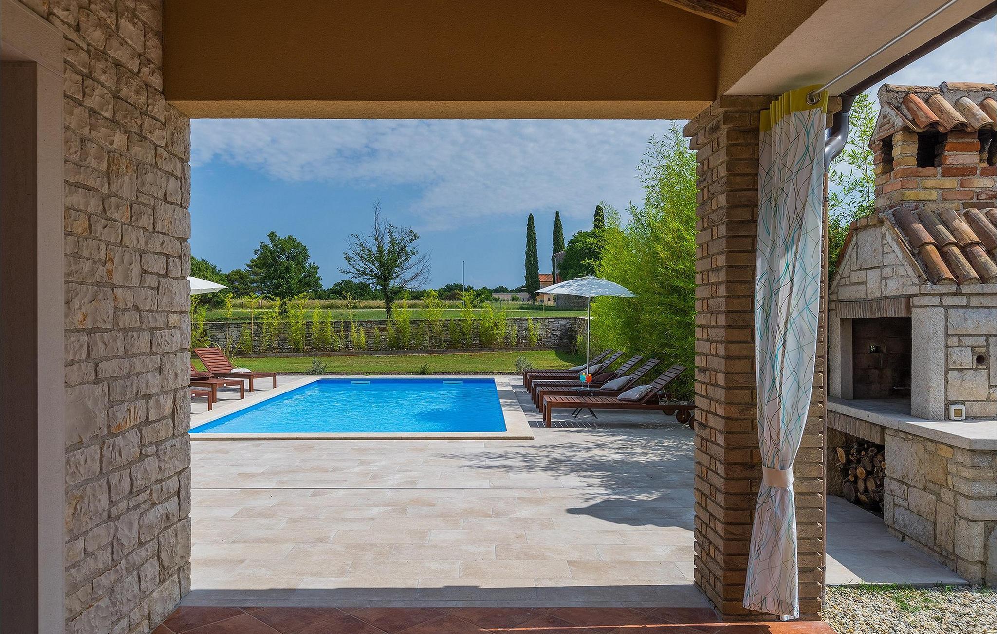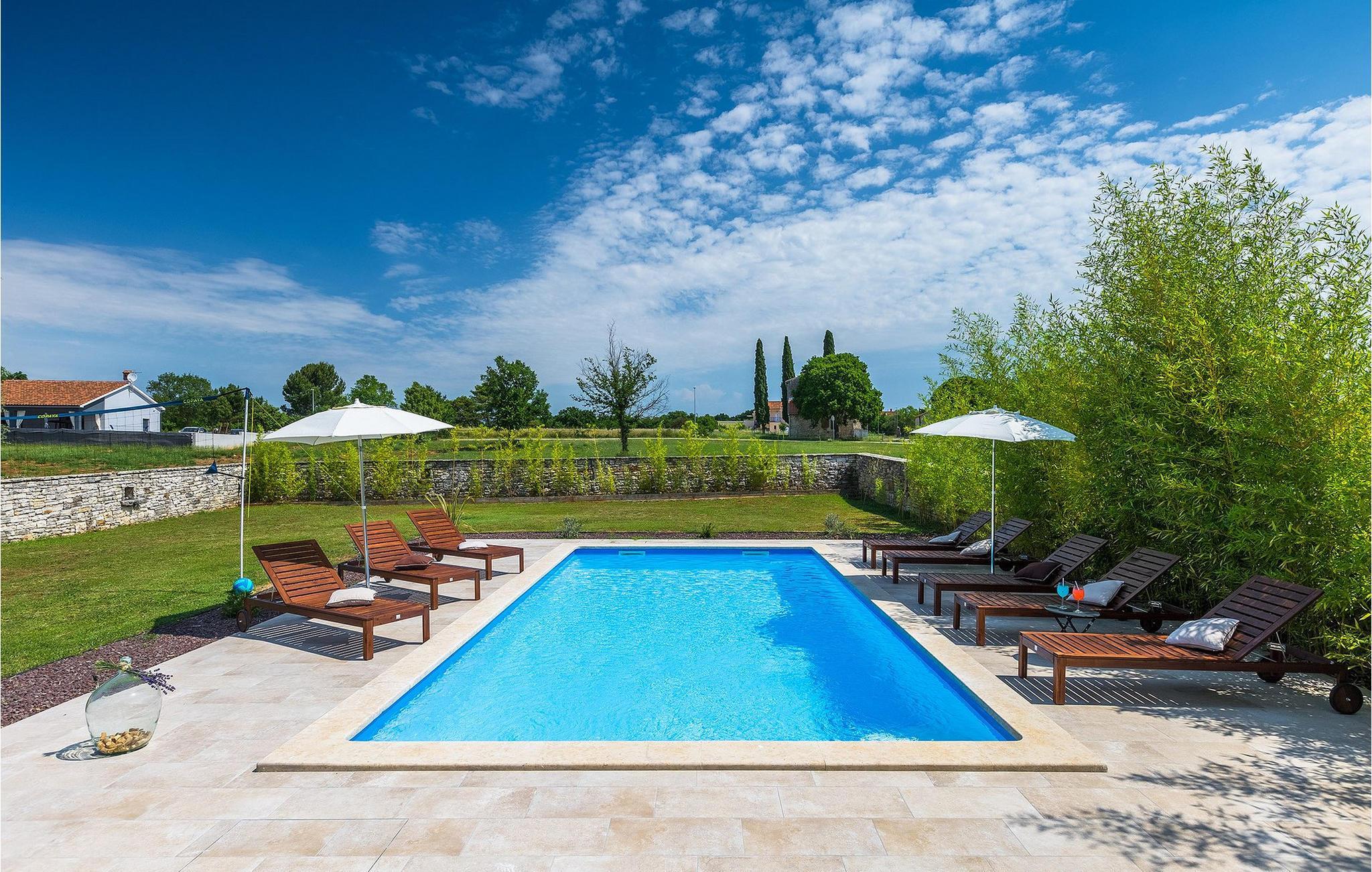 Villa Nino er en familievenlig villa med en kapacitet på op til 10 gæster. Bygget i 2010, men ifølge den traditionelle istriske stil med en masse sten og træ, vil denne villa byde dig velkommen med sin charmerende karakter. Svømmehallen er ideel på varme sommerdage, og i haven kan dine børn boltre sig og lege på trampolinen, mens du ligger på en af solsengene og nyder en kølig drink eller en god bog. Den store, overdækkede terrasse med træ-spisebord indbyder til en fantastisk morgenmad, inden du begynder at opdage regionen. Et af de 4 moderne møblerede soveværelser ligger i stueetagen. Det har en dobbeltseng og en enkeltseng. På første sal er der tre komfortable soveværelser og de to badeværelser. Alle disse soveværelser har dobbeltsenge, men et af dem har en ekstra enkeltseng. Badeværelserne har brusere. Dette hus med swimmingpool, have og parkeringsplads er fuldstændig lukket og fritliggende, hvilket giver dig den ro, du har brug for til en ideel ferie. Istrien er virkelig en fryd for øjet. Dens vandløb strømmer til havet gennem dybe dale og kløfter, som leder tankerne hen på de gamle lokale myter om kæmper. Bølgende bakker har udsigt over markerne og dalene med små byer oppe på toppene, der minder om nogle gamle malerier. Når du opdager skønheden i Kanfanar-området, vil du finde det vigtigste kulturelle monument af verdensomspændende kulturarv - middelalderbyen Dvigrad. Krmed ligger i regionen Kanfanar. Turistseværdighederne, Rovinj og Pula, og andre højdepunkter er kun en kort køretur væk. Kun 15 minutter væk fra ejendommen kan du finde de nærmeste strande med en masse rolige steder at slappe af. En bil anbefales.