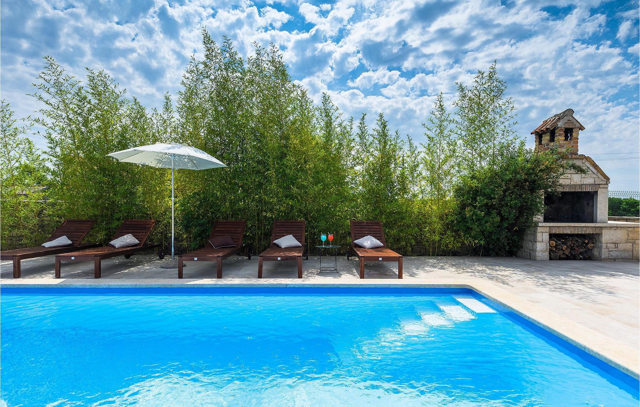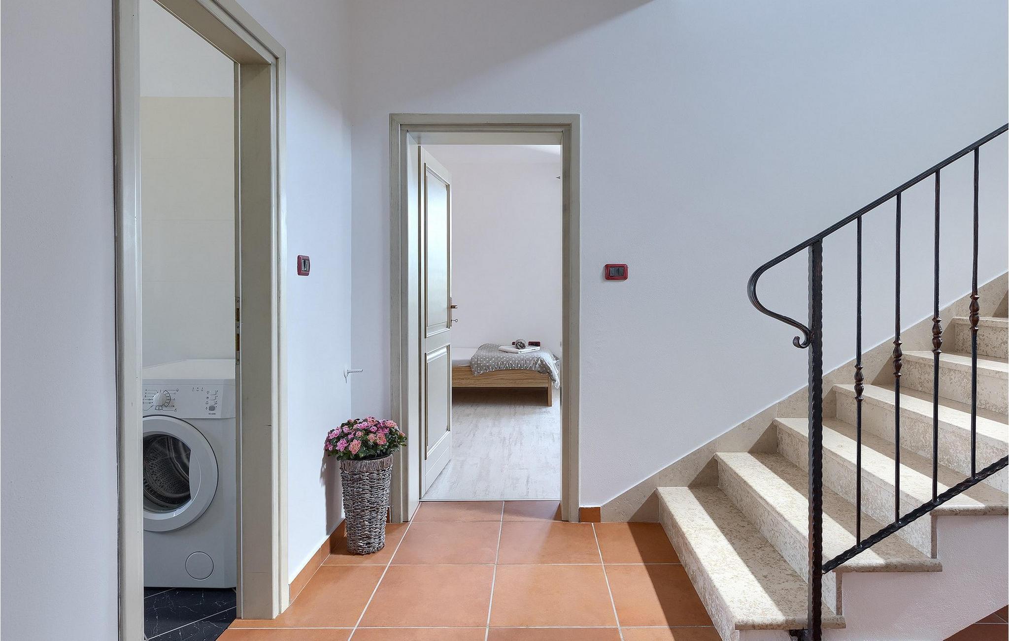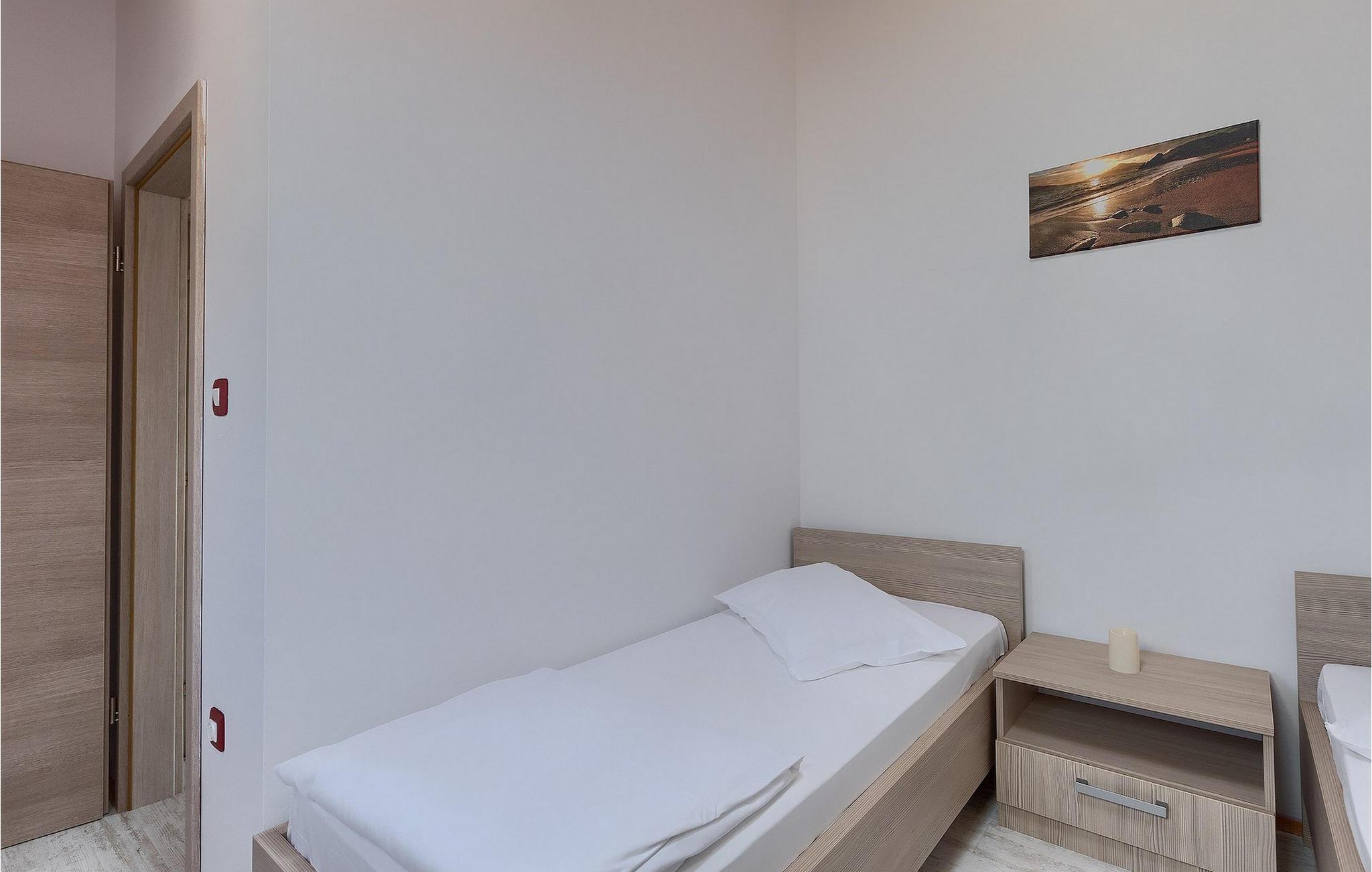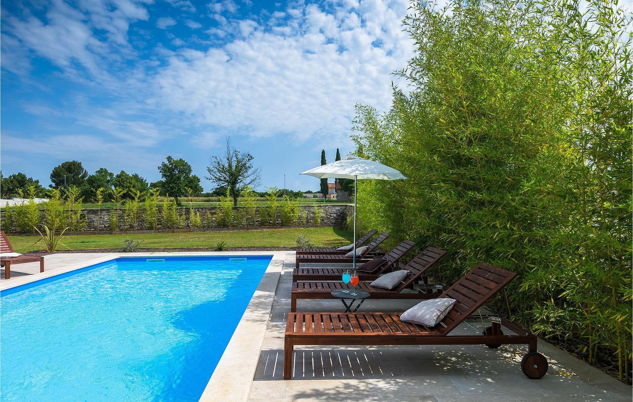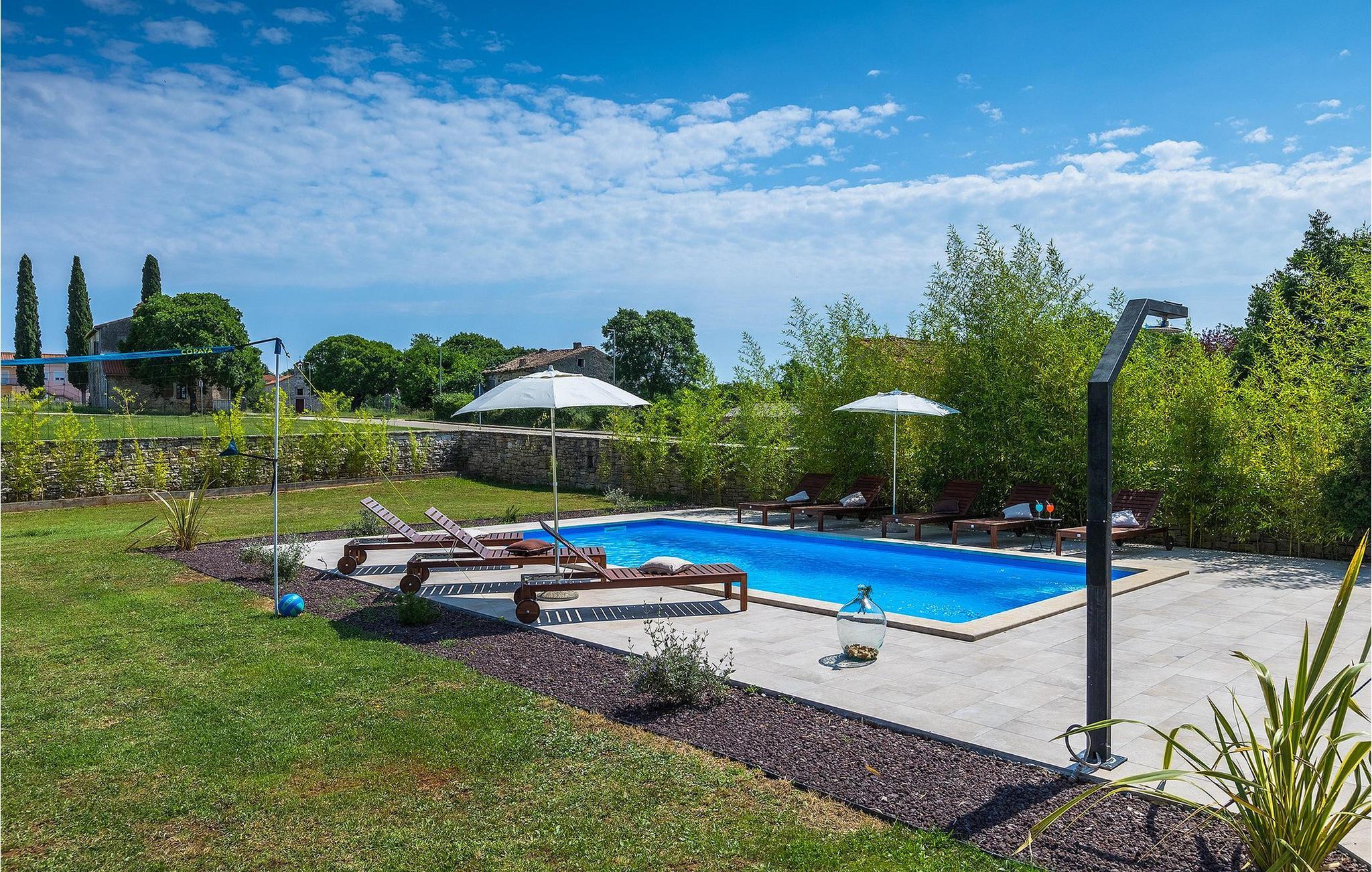 Villa Nino er en familievenlig villa med en kapacitet på op til 10 gæster. Bygget i 2010, men ifølge den traditionelle istriske stil med en masse sten og træ, vil denne villa byde dig velkommen med sin charmerende karakter. Svømmehallen er ideel på varme sommerdage, og i haven kan dine børn boltre sig og lege på trampolinen, mens du ligger på en af solsengene og nyder en kølig drink eller en god bog. Den store, overdækkede terrasse med træ-spisebord indbyder til en fantastisk morgenmad, inden du begynder at opdage regionen. Et af de 4 moderne møblerede soveværelser ligger i stueetagen. Det har en dobbeltseng og en enkeltseng. På første sal er der tre komfortable soveværelser og de to badeværelser. Alle disse soveværelser har dobbeltsenge, men et af dem har en ekstra enkeltseng. Badeværelserne har brusere. Dette hus med swimmingpool, have og parkeringsplads er fuldstændig lukket og fritliggende, hvilket giver dig den ro, du har brug for til en ideel ferie. Istrien er virkelig en fryd for øjet. Dens vandløb strømmer til havet gennem dybe dale og kløfter, som leder tankerne hen på de gamle lokale myter om kæmper. Bølgende bakker har udsigt over markerne og dalene med små byer oppe på toppene, der minder om nogle gamle malerier. Når du opdager skønheden i Kanfanar-området, vil du finde det vigtigste kulturelle monument af verdensomspændende kulturarv - middelalderbyen Dvigrad. Krmed ligger i regionen Kanfanar. Turistseværdighederne, Rovinj og Pula, og andre højdepunkter er kun en kort køretur væk. Kun 15 minutter væk fra ejendommen kan du finde de nærmeste strande med en masse rolige steder at slappe af. En bil anbefales.