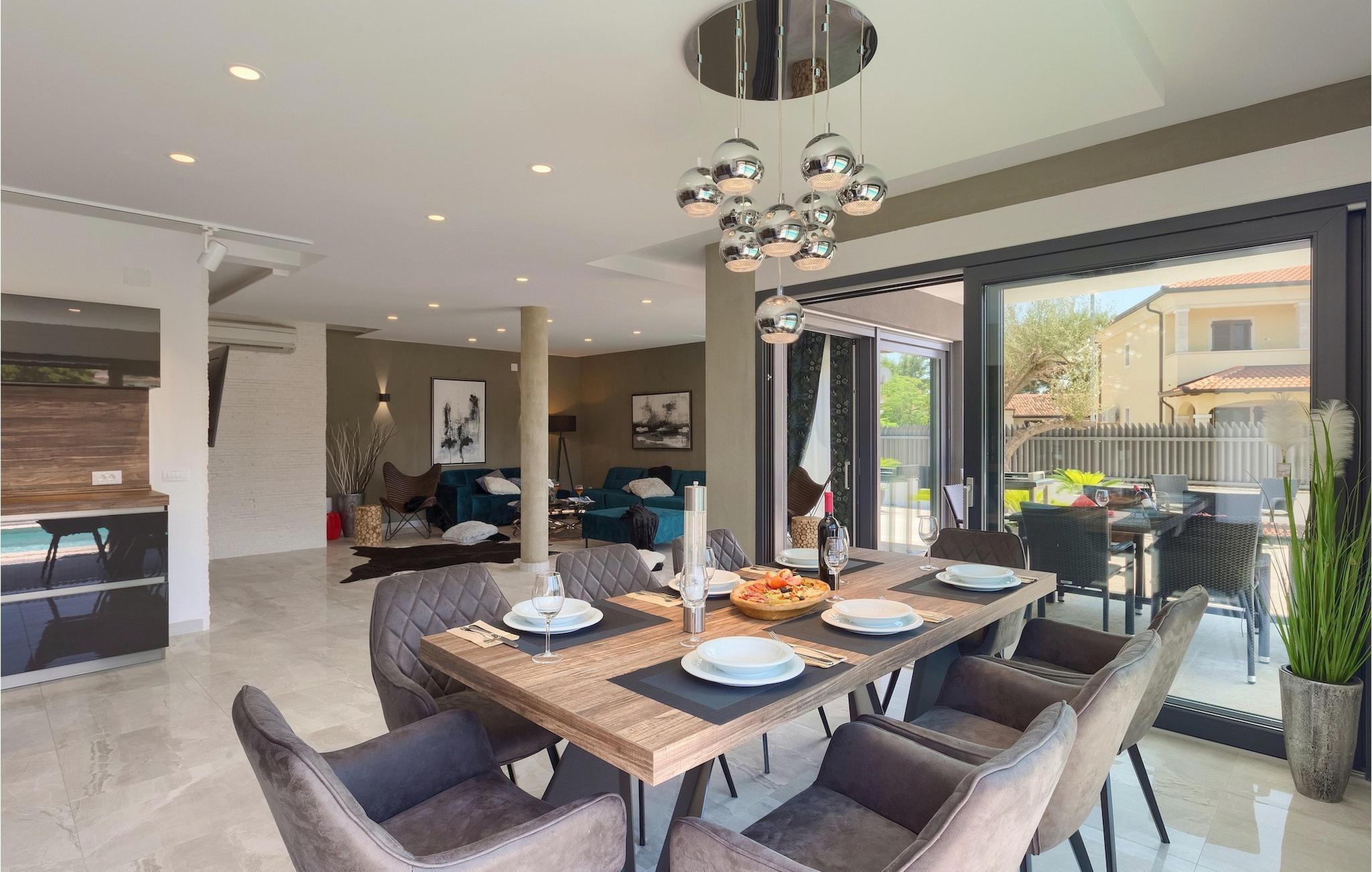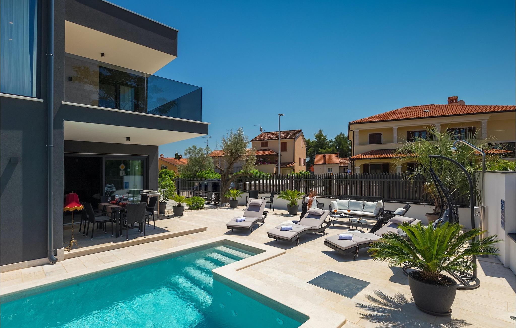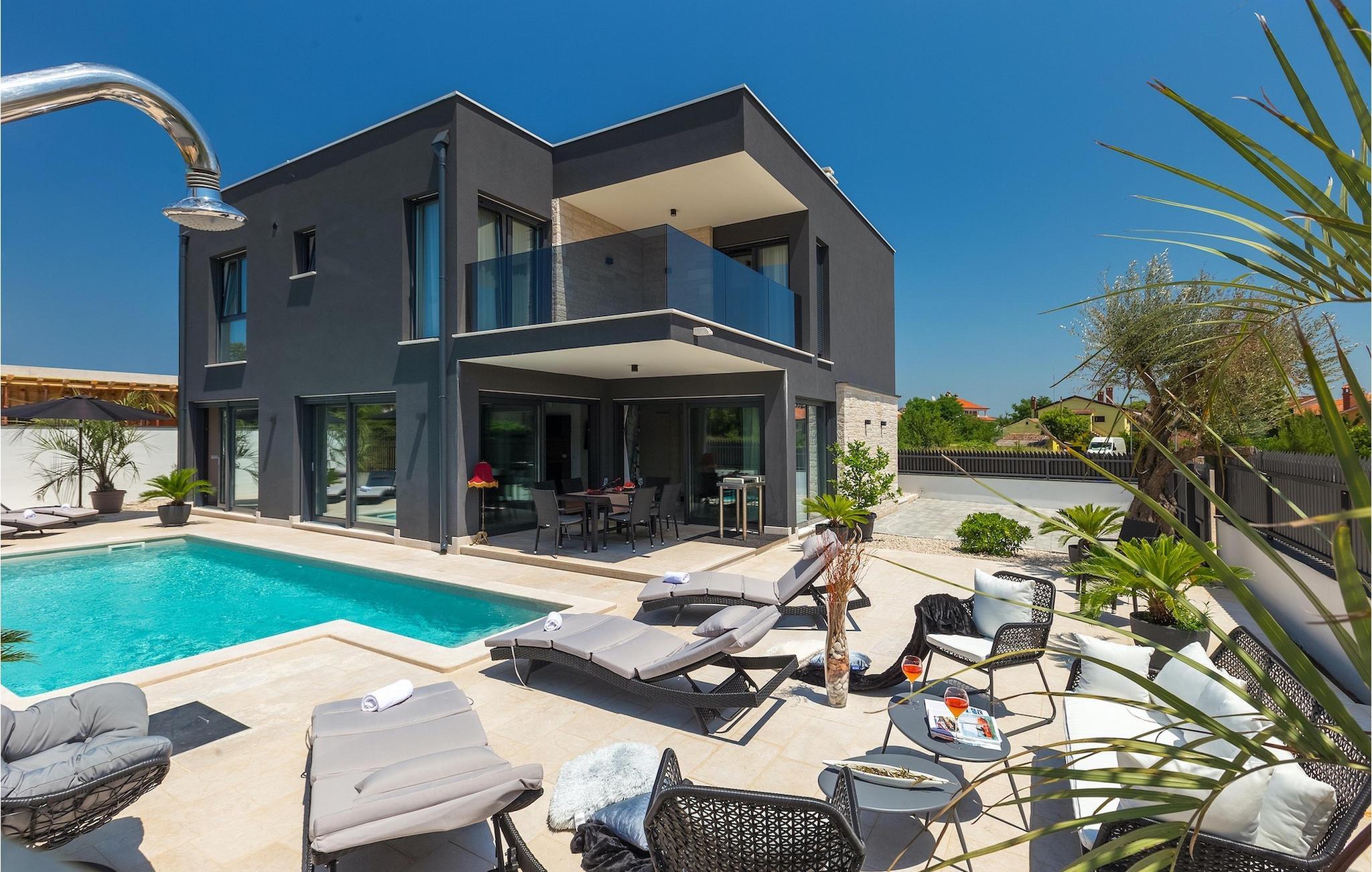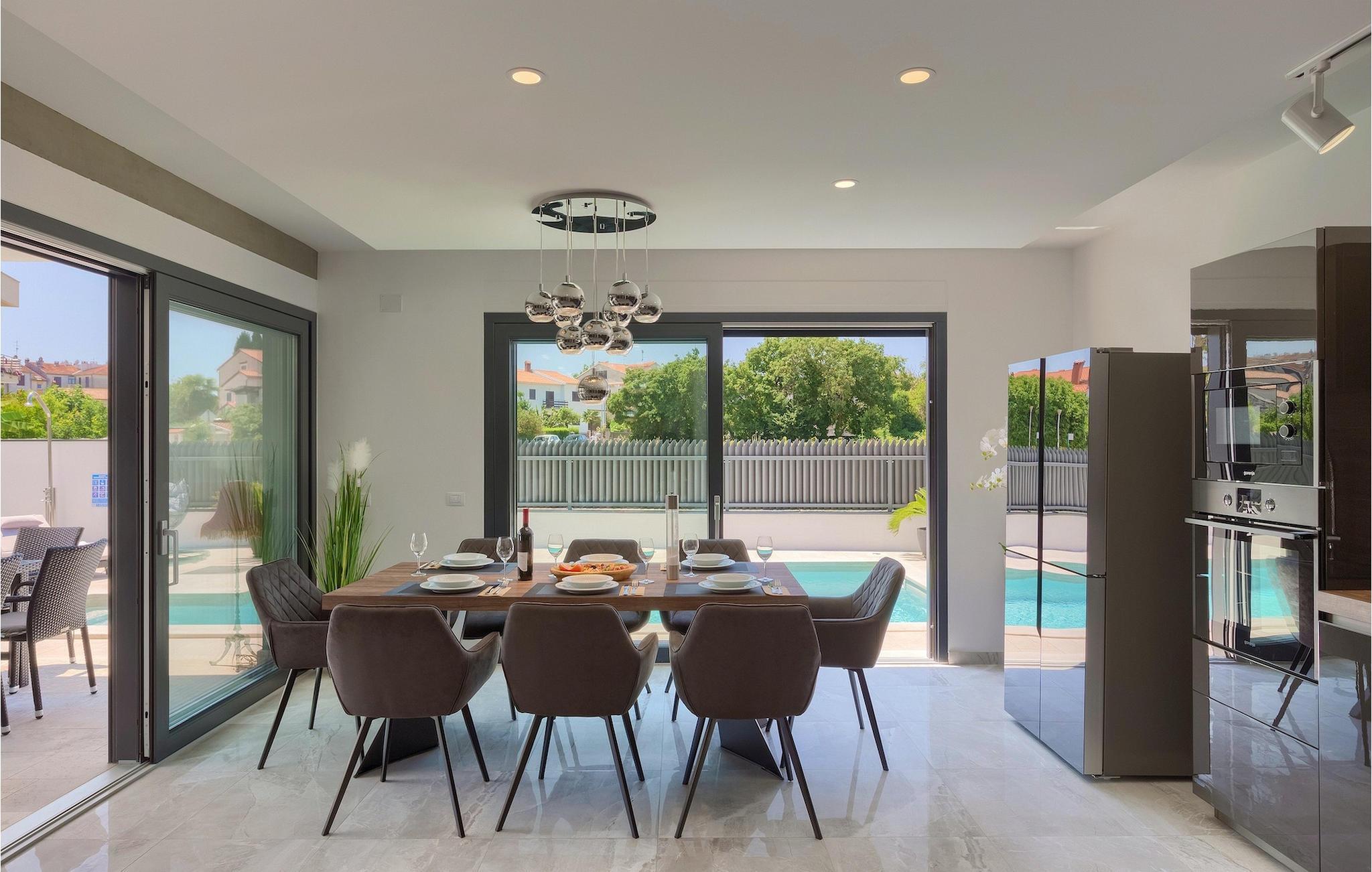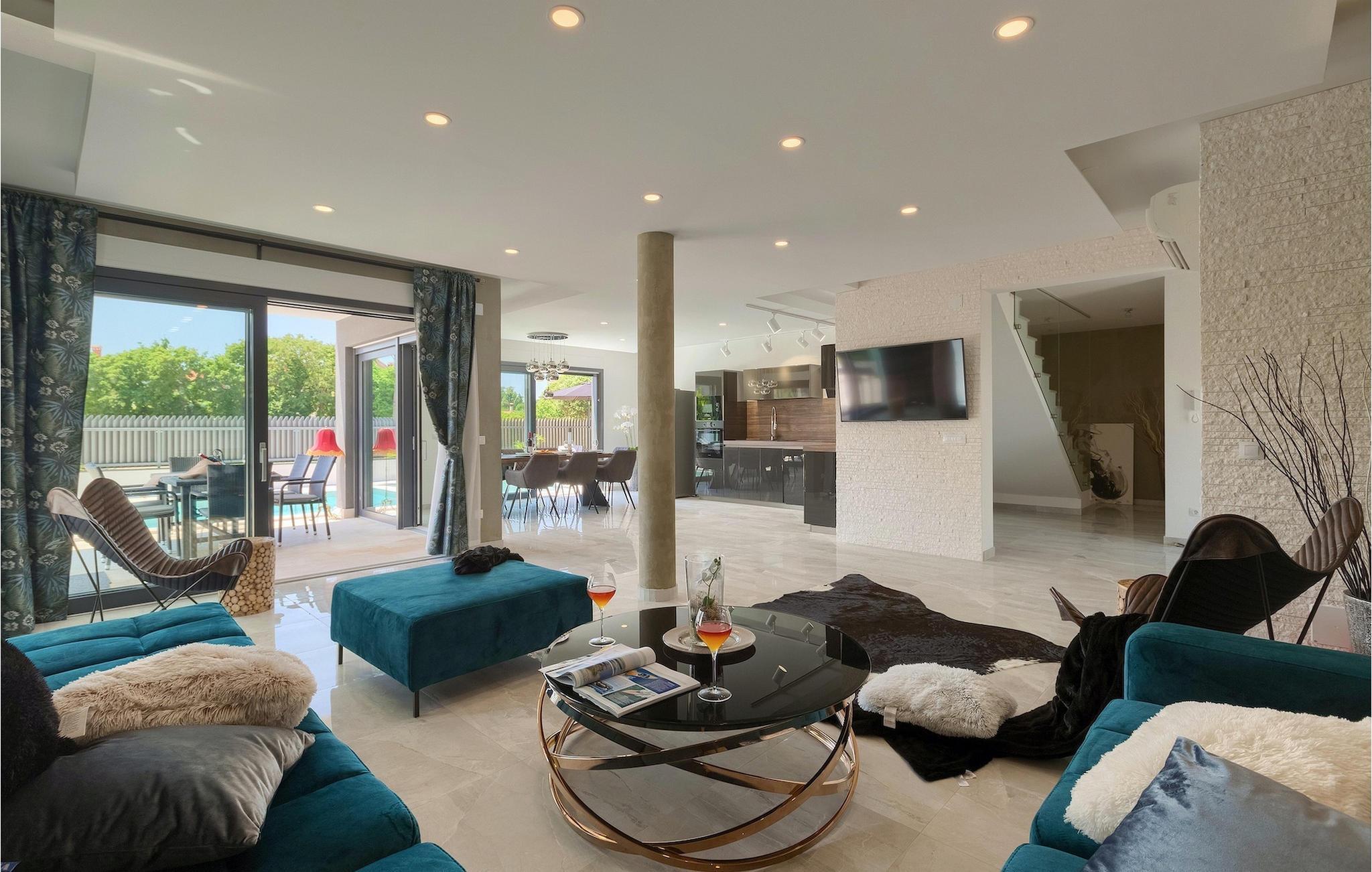 Drømmer du om en afslappet ferie i en designervilla tæt på en turistby og vidunderlige strande? Så er Villa Orion lige perfekt for dig! Denne smukke, moderne villa tilbyder ikke kun et eksklusivt interiør, men også adskillige ekstra aktiviteter til afslapning som den finske sauna eller jacuzzien placeret i wellness-området i villaens stueetage. Her finder du også en åbent konceptstue i blå stil forbundet med spisestuen og et moderne, fuldt udstyret køkken. Mens I spiser sammen, kan I overse den indbydende swimmingpool kun få skridt fra jer. Du kan også spise udendørs og bruge grillen. Udendørsområdet byder på en masse havemøbler og liggestole til at slappe af ved siden af den private pool. På 1. salen kan du finde dejlige møblerede soveværelser med elegante detaljer og nutidige malerier i skønne farvekombinationer. Hvert soveværelse har eget badeværelse, og fra to soveværelser kan du komme ind på balkonen, ideel til din første morgenkaffe. Villa Orion vil forkæle dig med dets utrolige interiør og gode afslapningsmuligheder, alt dette mens du nyder din ferie tæt på havet og byen Rovinj!
