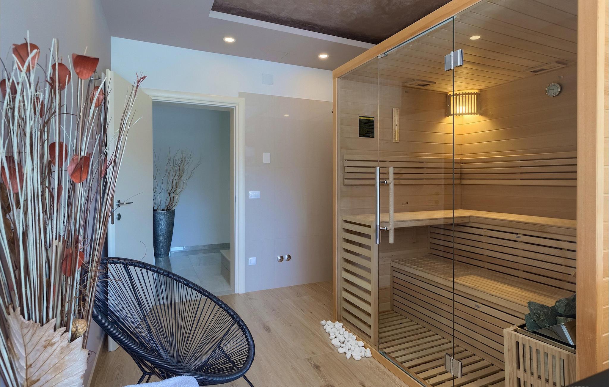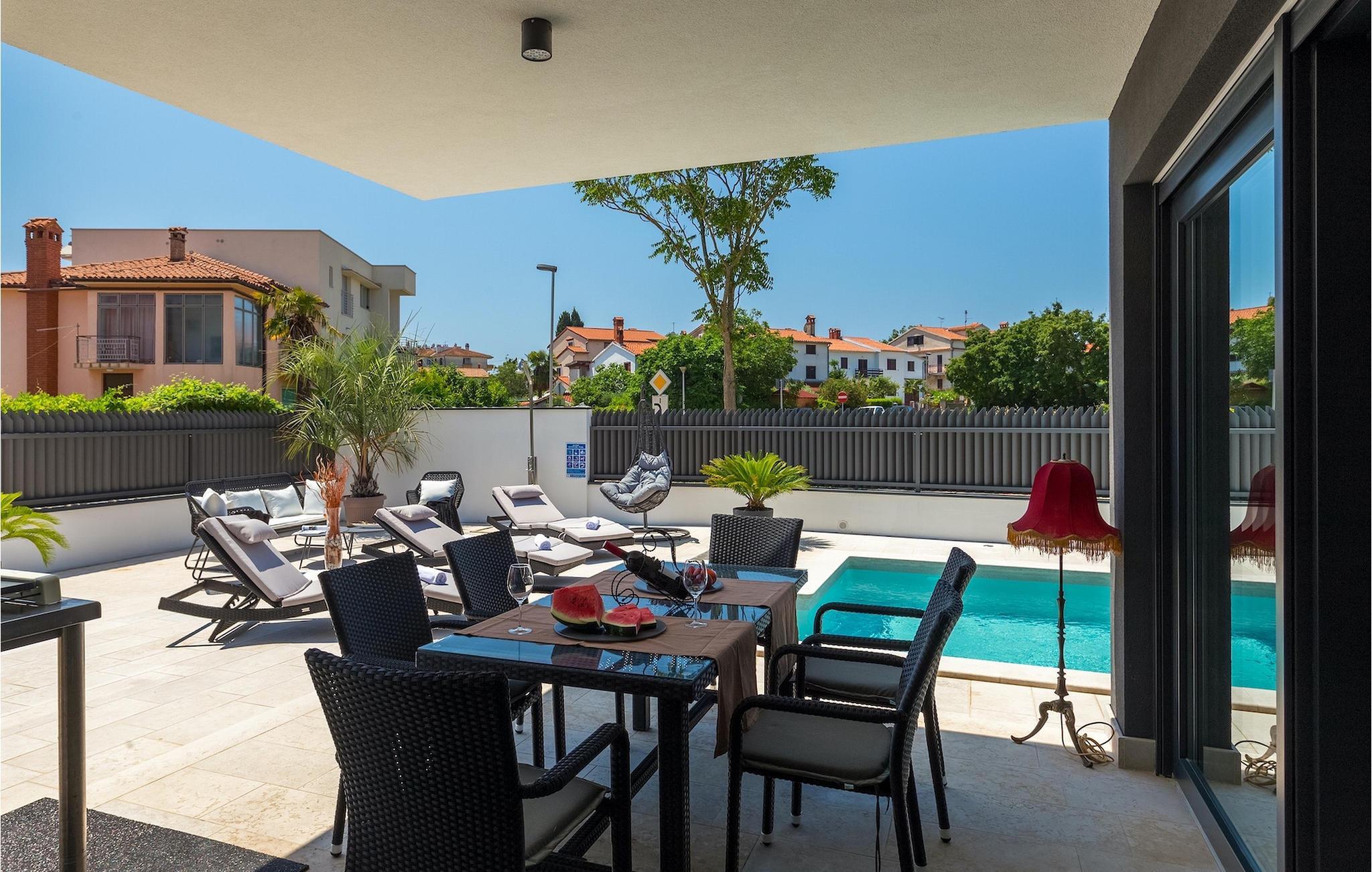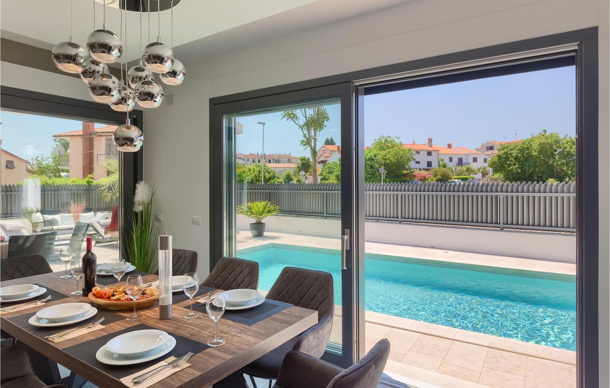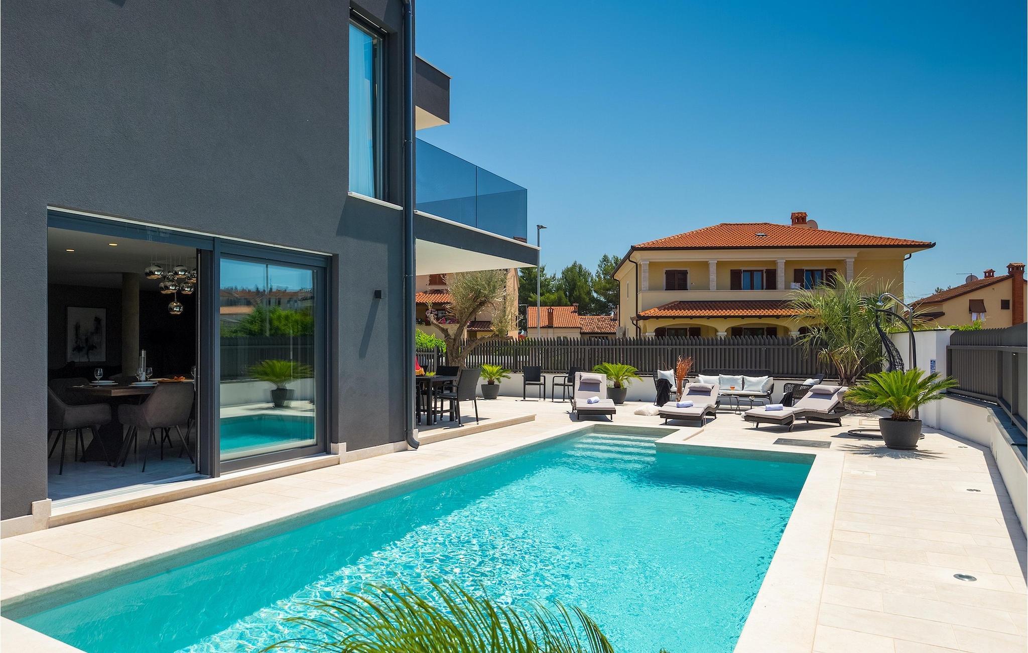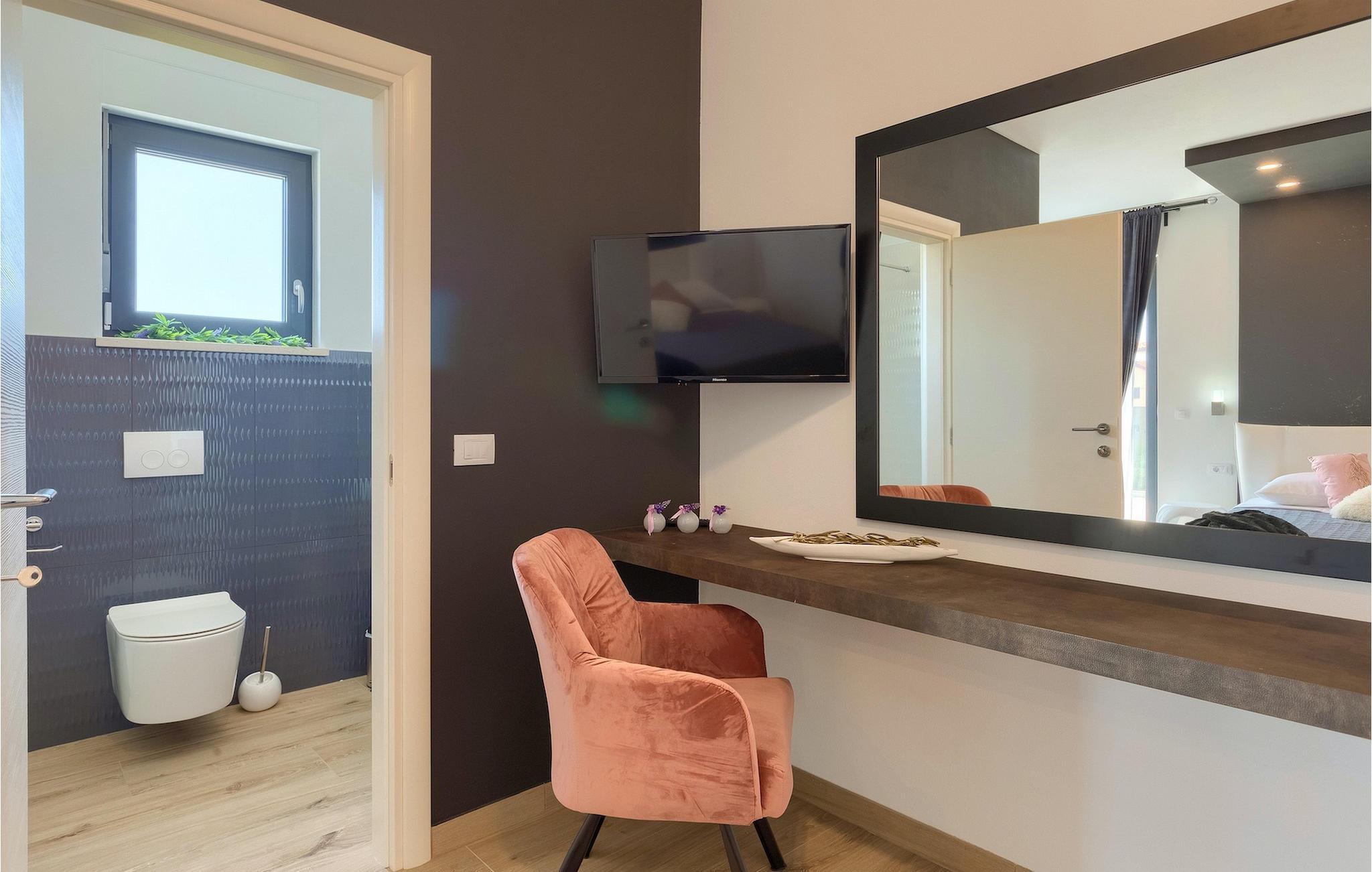 Drømmer du om en afslappet ferie i en designervilla tæt på en turistby og vidunderlige strande? Så er Villa Orion lige perfekt for dig! Denne smukke, moderne villa tilbyder ikke kun et eksklusivt interiør, men også adskillige ekstra aktiviteter til afslapning som den finske sauna eller jacuzzien placeret i wellness-området i villaens stueetage. Her finder du også en åbent konceptstue i blå stil forbundet med spisestuen og et moderne, fuldt udstyret køkken. Mens I spiser sammen, kan I overse den indbydende swimmingpool kun få skridt fra jer. Du kan også spise udendørs og bruge grillen. Udendørsområdet byder på en masse havemøbler og liggestole til at slappe af ved siden af den private pool. På 1. salen kan du finde dejlige møblerede soveværelser med elegante detaljer og nutidige malerier i skønne farvekombinationer. Hvert soveværelse har eget badeværelse, og fra to soveværelser kan du komme ind på balkonen, ideel til din første morgenkaffe. Villa Orion vil forkæle dig med dets utrolige interiør og gode afslapningsmuligheder, alt dette mens du nyder din ferie tæt på havet og byen Rovinj!