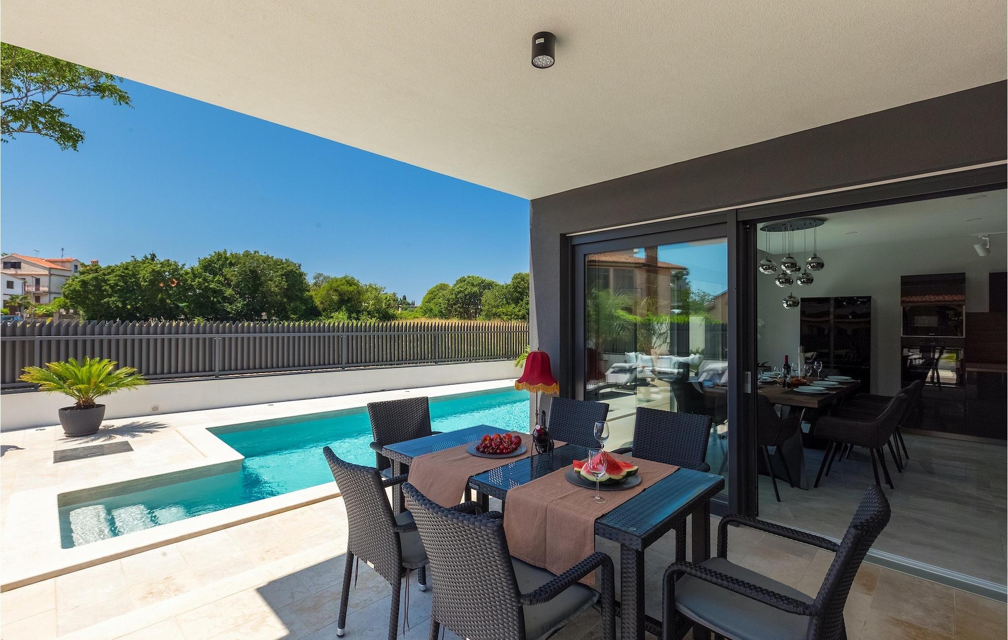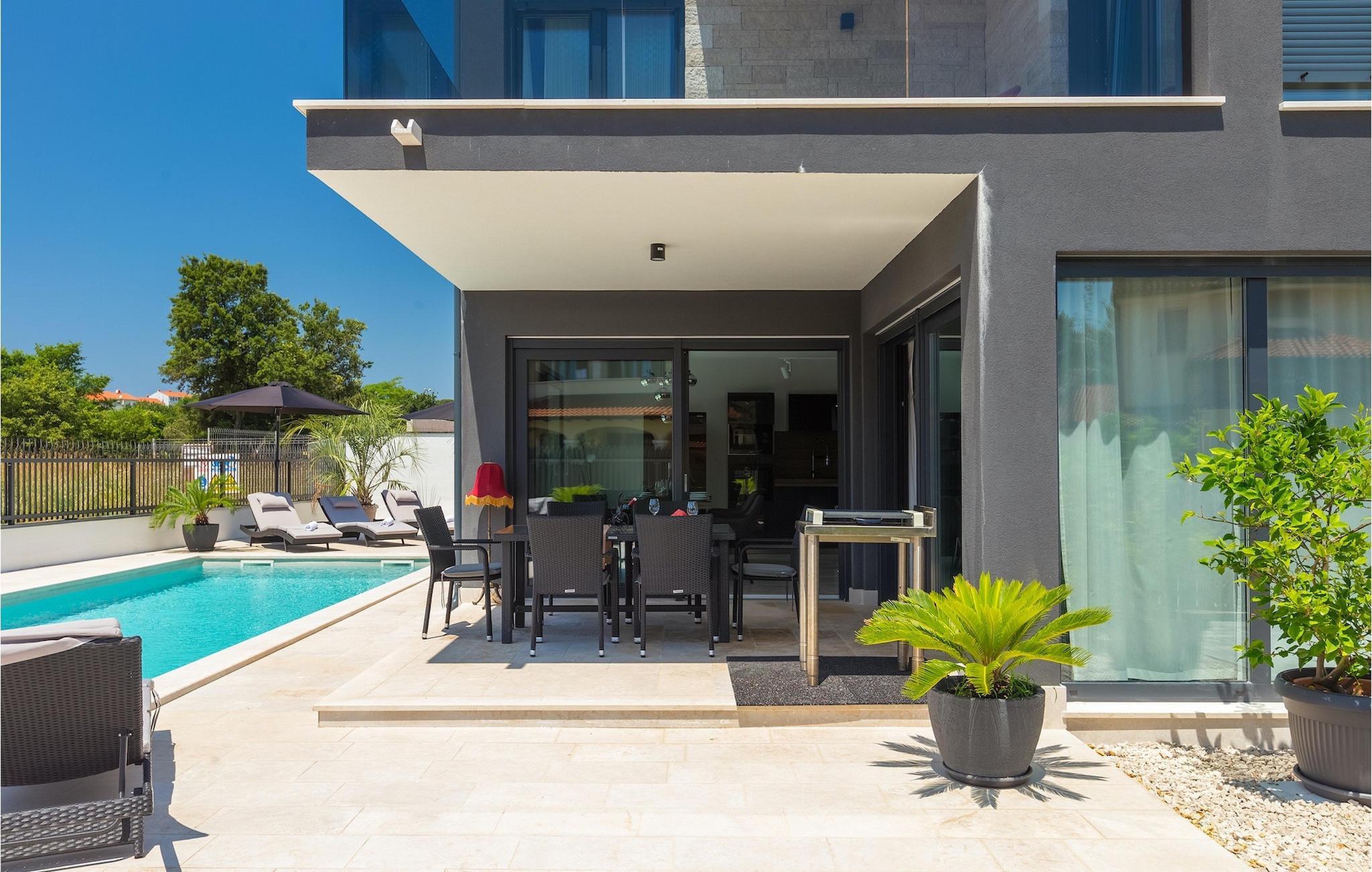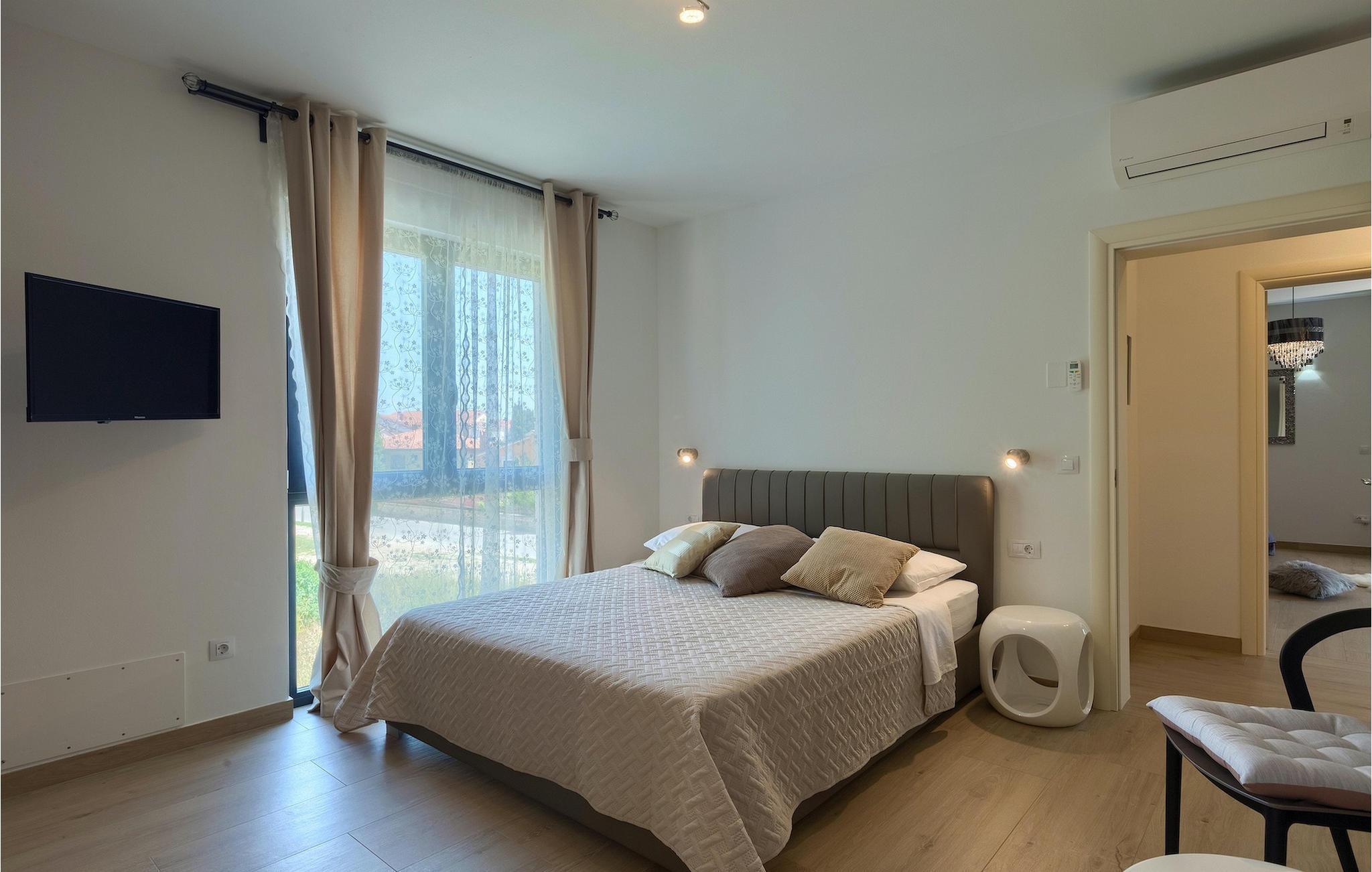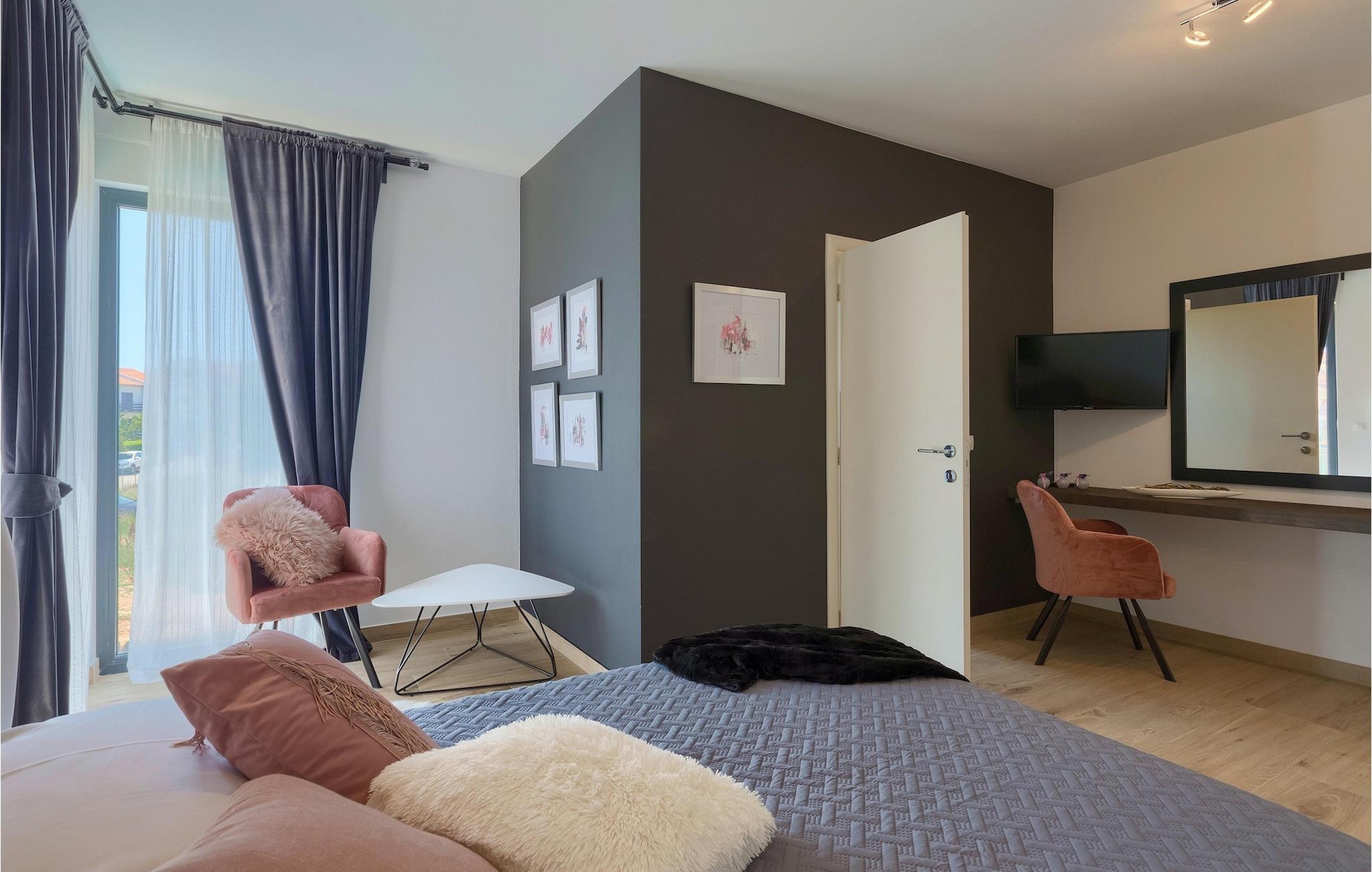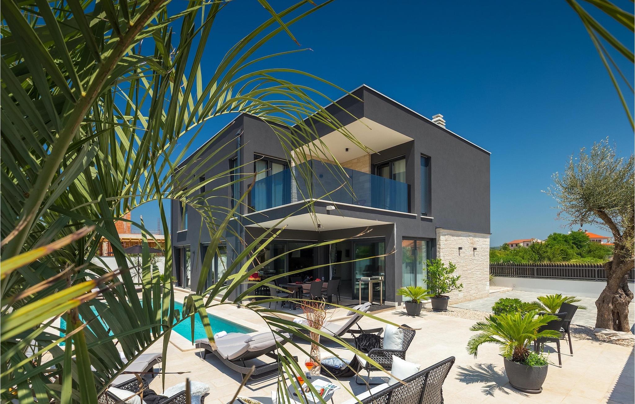 Drømmer du om en afslappet ferie i en designervilla tæt på en turistby og vidunderlige strande? Så er Villa Orion lige perfekt for dig! Denne smukke, moderne villa tilbyder ikke kun et eksklusivt interiør, men også adskillige ekstra aktiviteter til afslapning som den finske sauna eller jacuzzien placeret i wellness-området i villaens stueetage. Her finder du også en åbent konceptstue i blå stil forbundet med spisestuen og et moderne, fuldt udstyret køkken. Mens I spiser sammen, kan I overse den indbydende swimmingpool kun få skridt fra jer. Du kan også spise udendørs og bruge grillen. Udendørsområdet byder på en masse havemøbler og liggestole til at slappe af ved siden af den private pool. På 1. salen kan du finde dejlige møblerede soveværelser med elegante detaljer og nutidige malerier i skønne farvekombinationer. Hvert soveværelse har eget badeværelse, og fra to soveværelser kan du komme ind på balkonen, ideel til din første morgenkaffe. Villa Orion vil forkæle dig med dets utrolige interiør og gode afslapningsmuligheder, alt dette mens du nyder din ferie tæt på havet og byen Rovinj!