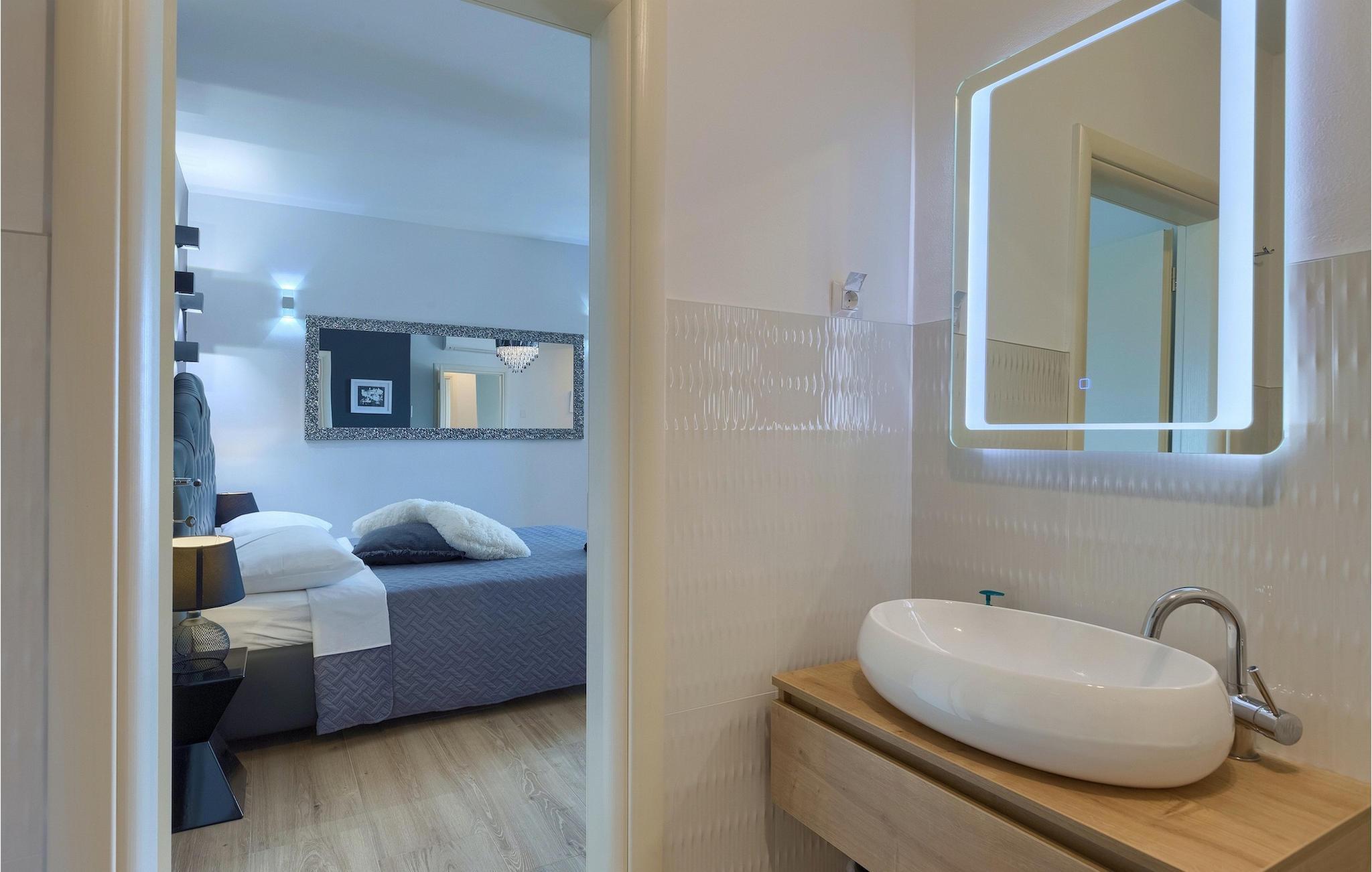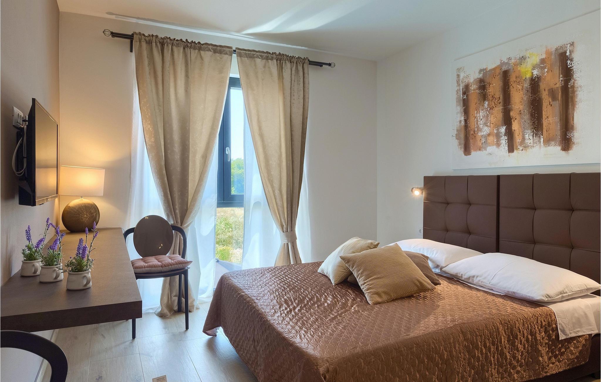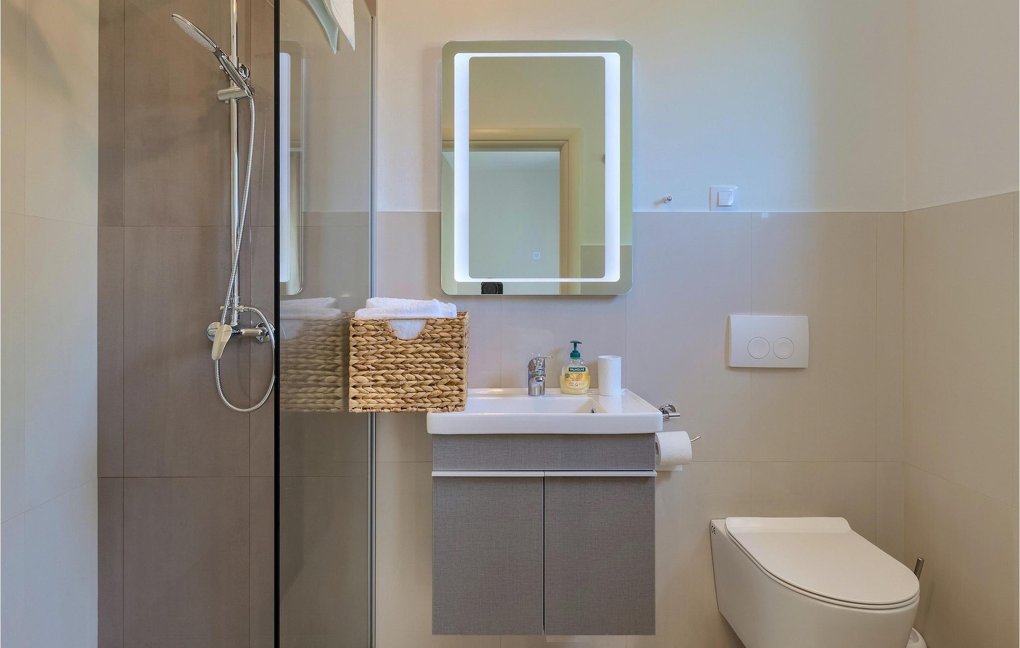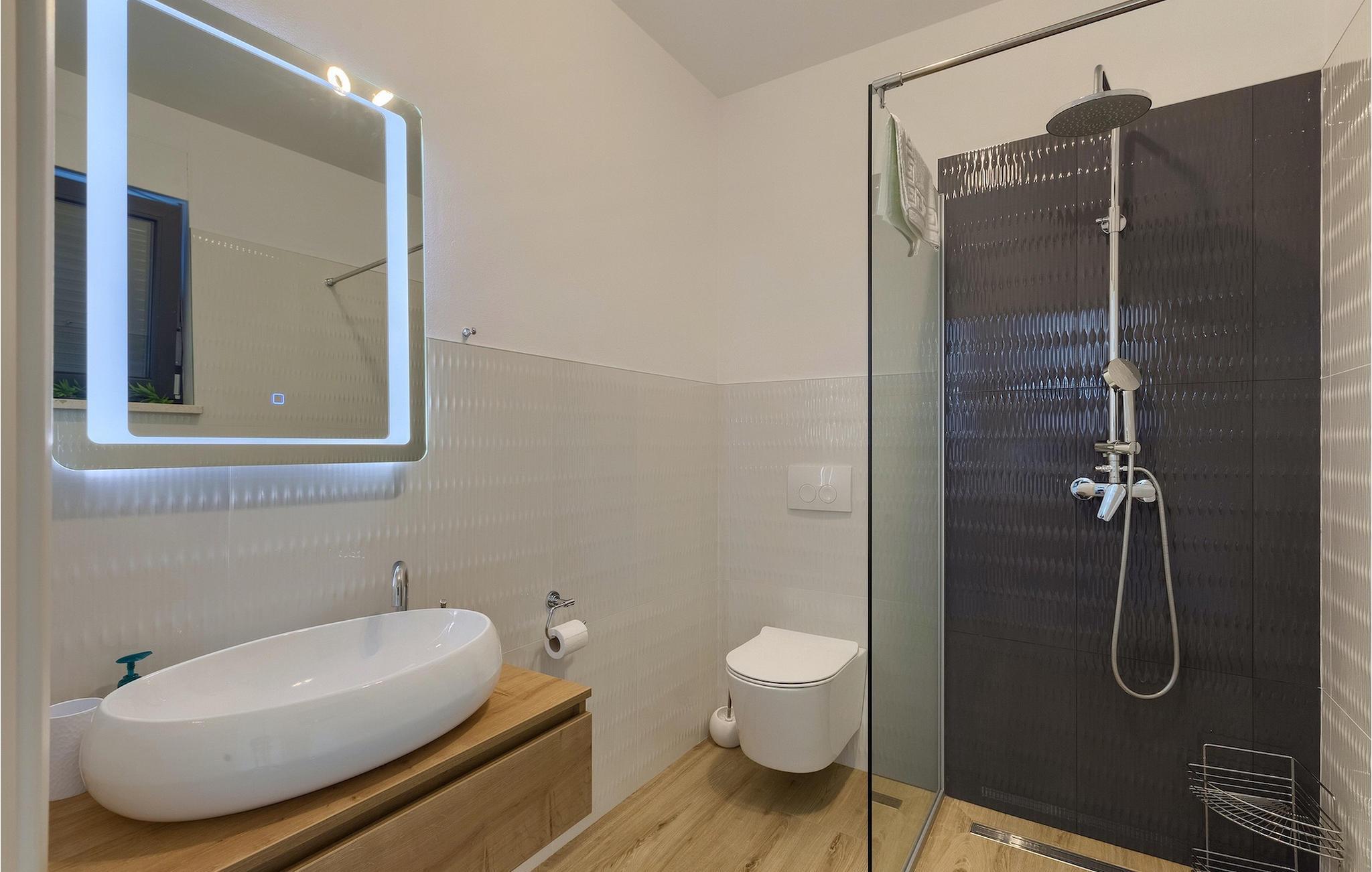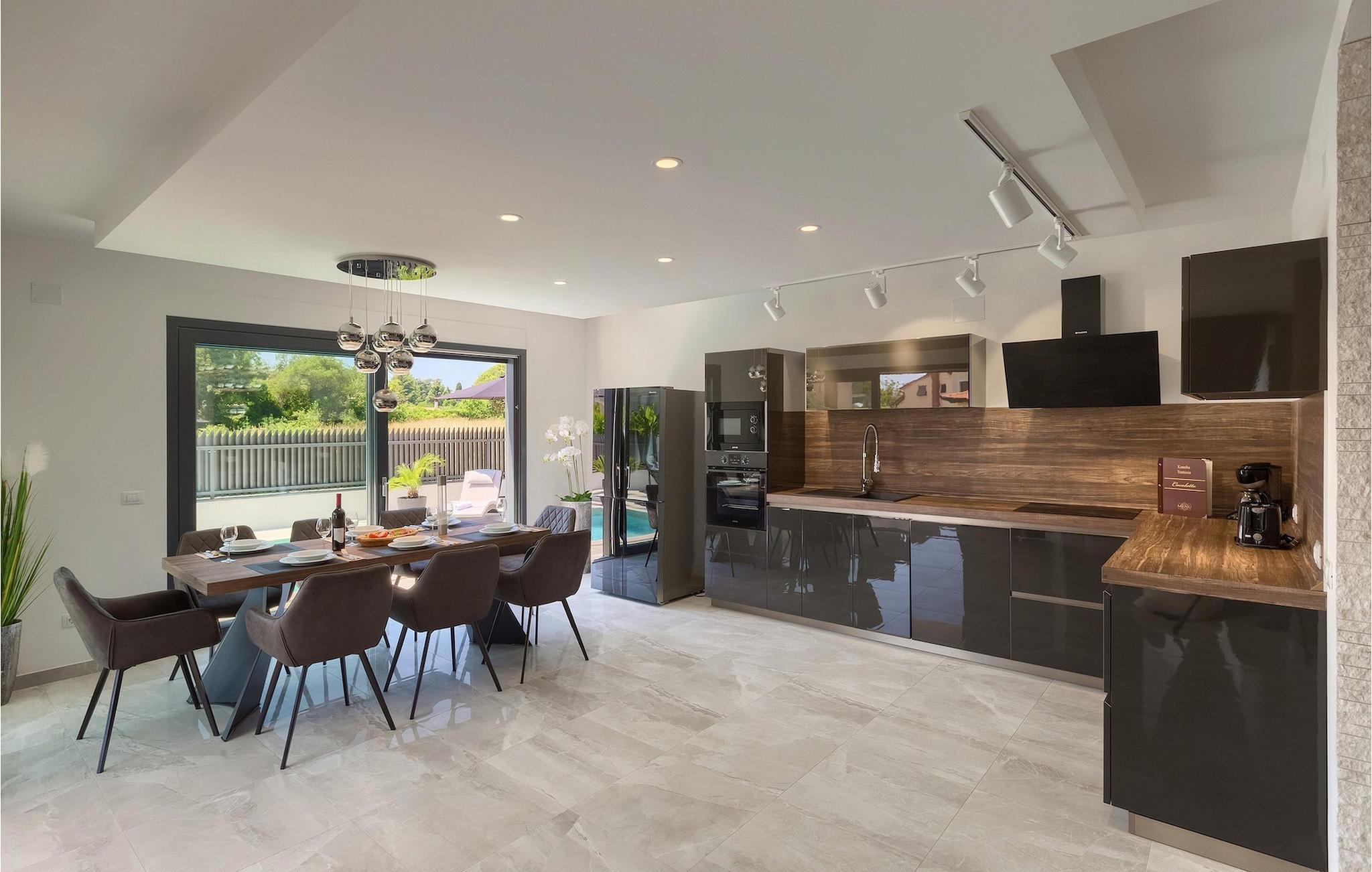 Drømmer du om en afslappet ferie i en designervilla tæt på en turistby og vidunderlige strande? Så er Villa Orion lige perfekt for dig! Denne smukke, moderne villa tilbyder ikke kun et eksklusivt interiør, men også adskillige ekstra aktiviteter til afslapning som den finske sauna eller jacuzzien placeret i wellness-området i villaens stueetage. Her finder du også en åbent konceptstue i blå stil forbundet med spisestuen og et moderne, fuldt udstyret køkken. Mens I spiser sammen, kan I overse den indbydende swimmingpool kun få skridt fra jer. Du kan også spise udendørs og bruge grillen. Udendørsområdet byder på en masse havemøbler og liggestole til at slappe af ved siden af den private pool. På 1. salen kan du finde dejlige møblerede soveværelser med elegante detaljer og nutidige malerier i skønne farvekombinationer. Hvert soveværelse har eget badeværelse, og fra to soveværelser kan du komme ind på balkonen, ideel til din første morgenkaffe. Villa Orion vil forkæle dig med dets utrolige interiør og gode afslapningsmuligheder, alt dette mens du nyder din ferie tæt på havet og byen Rovinj!